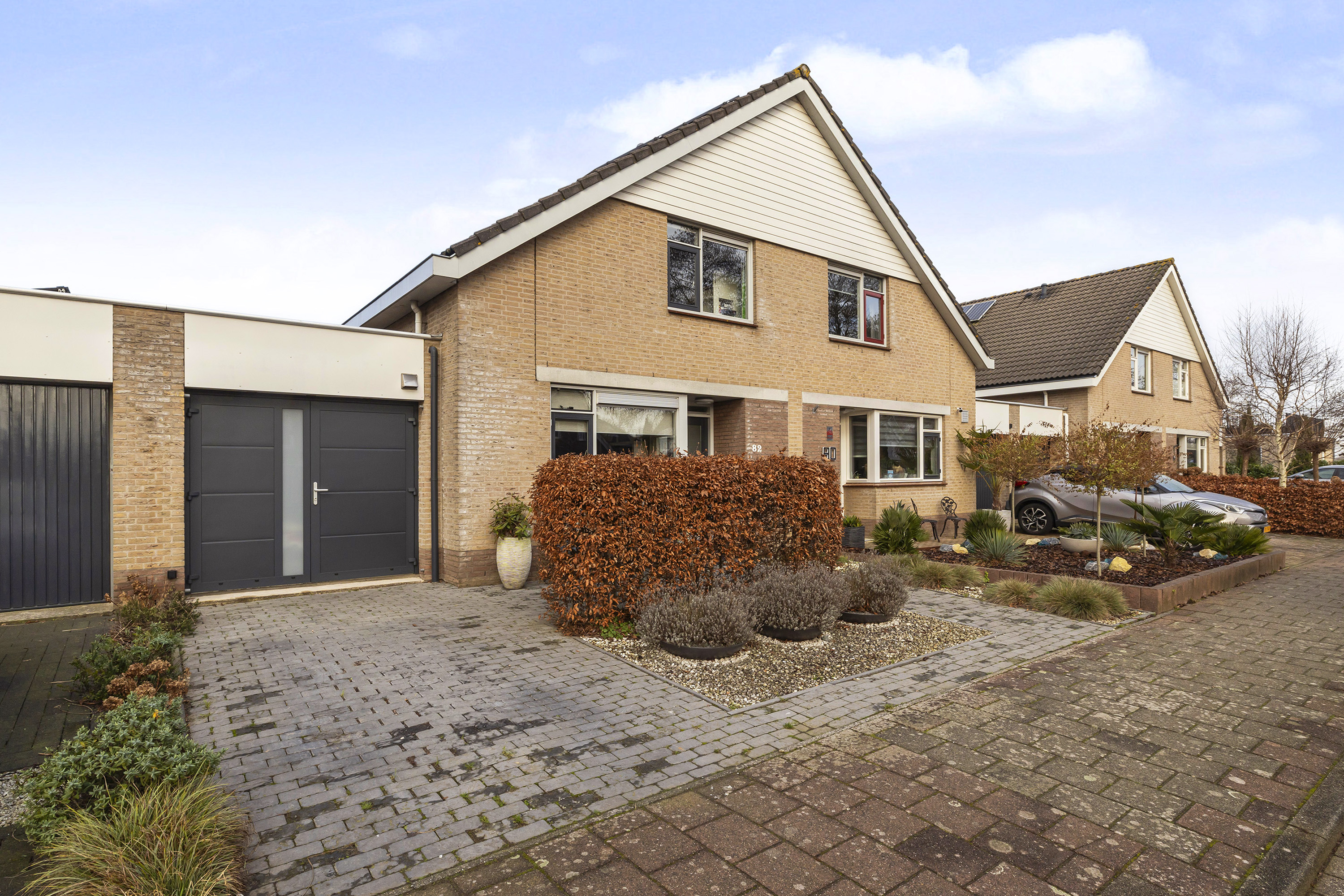 De verzorgde voortuin beschikt over een oprit voor één auto. De sfeervolle achtertuin is ingericht met borders, bestrating en een gezellige terrassen. Achterin de tuin bevindt zich een houten berging met aangebouwde overkapping met daar in een praktische achterom.