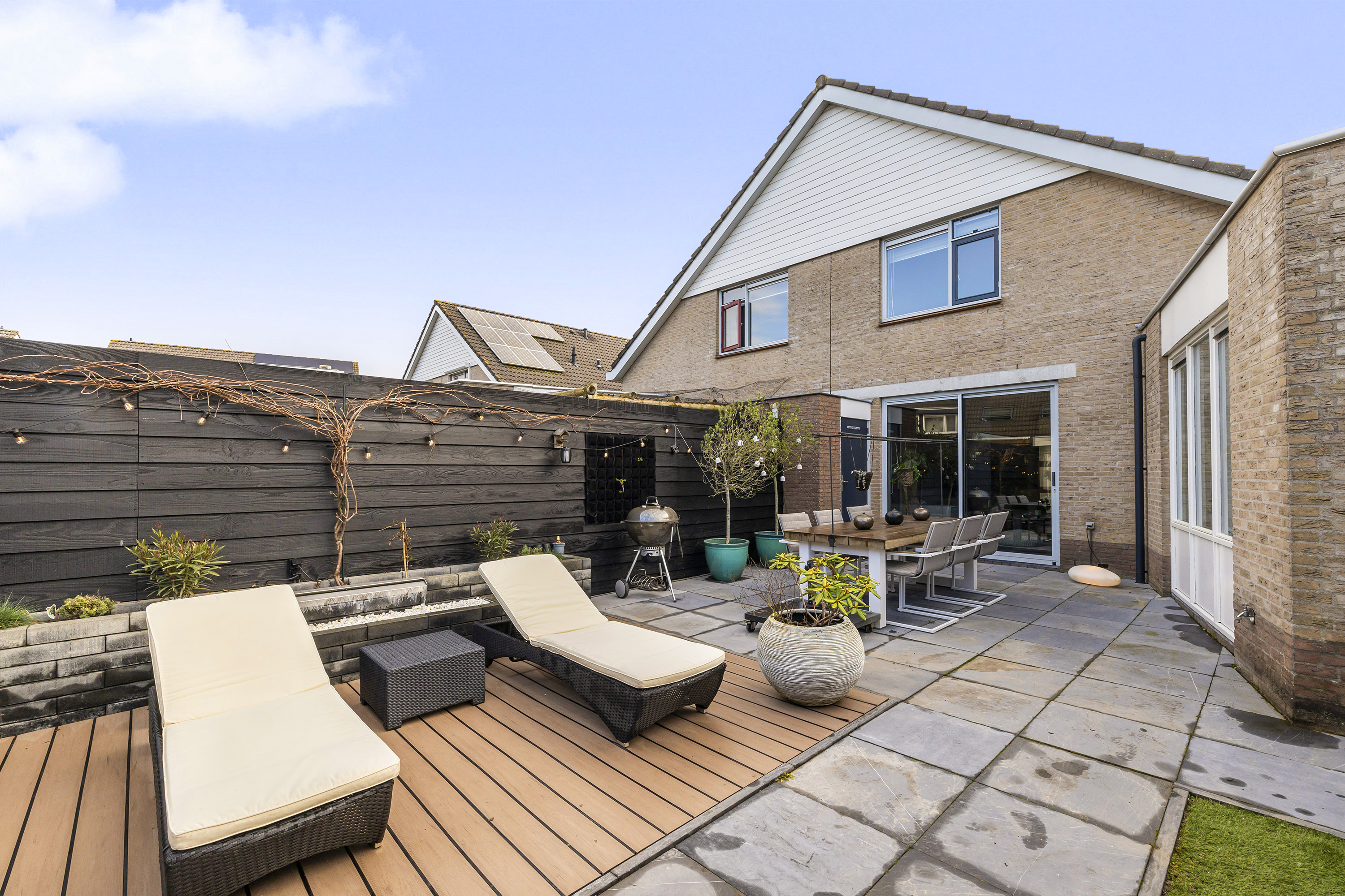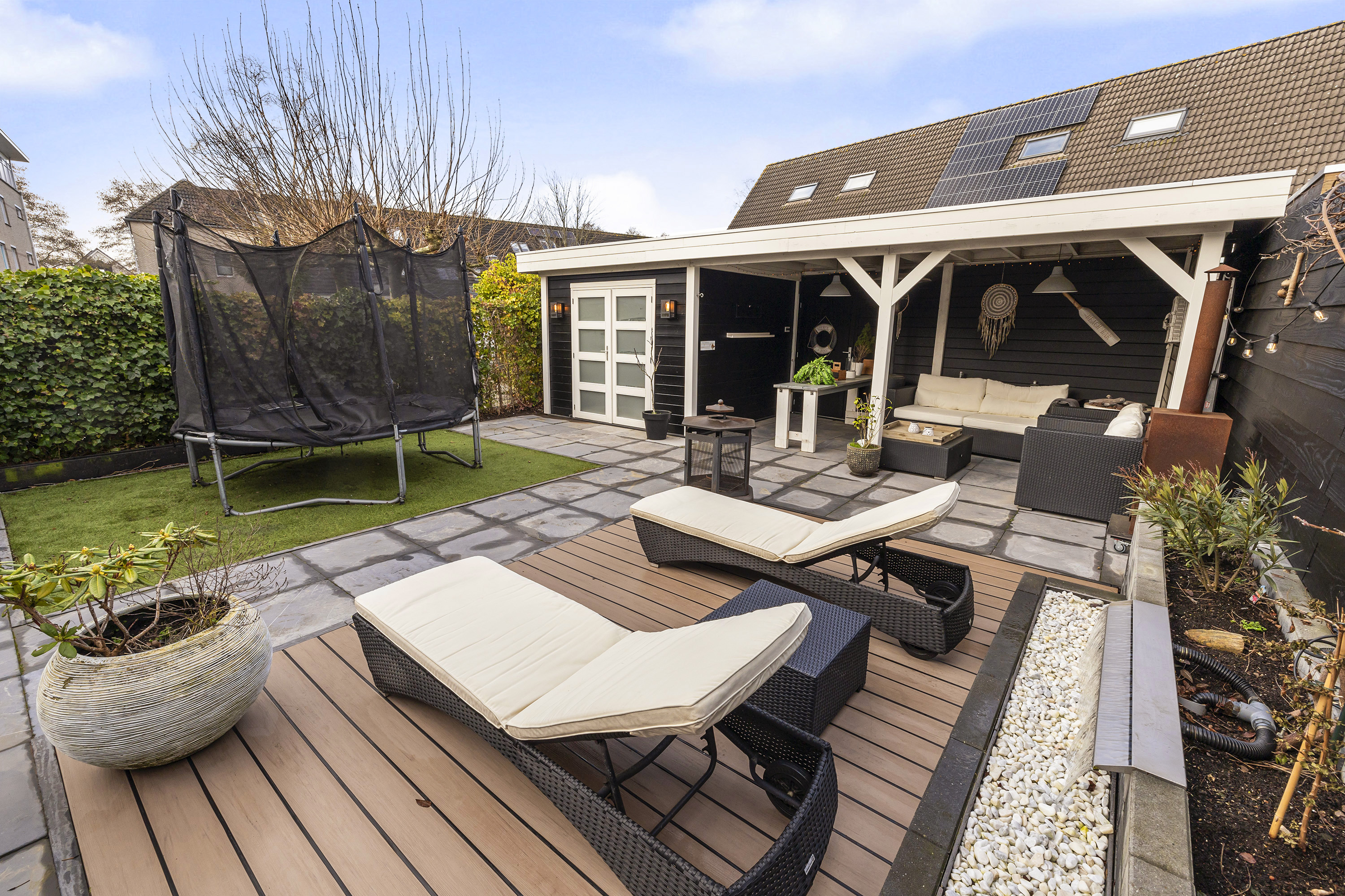 - Verzorgde achtertuin met berging, veranda en praktische achterom.