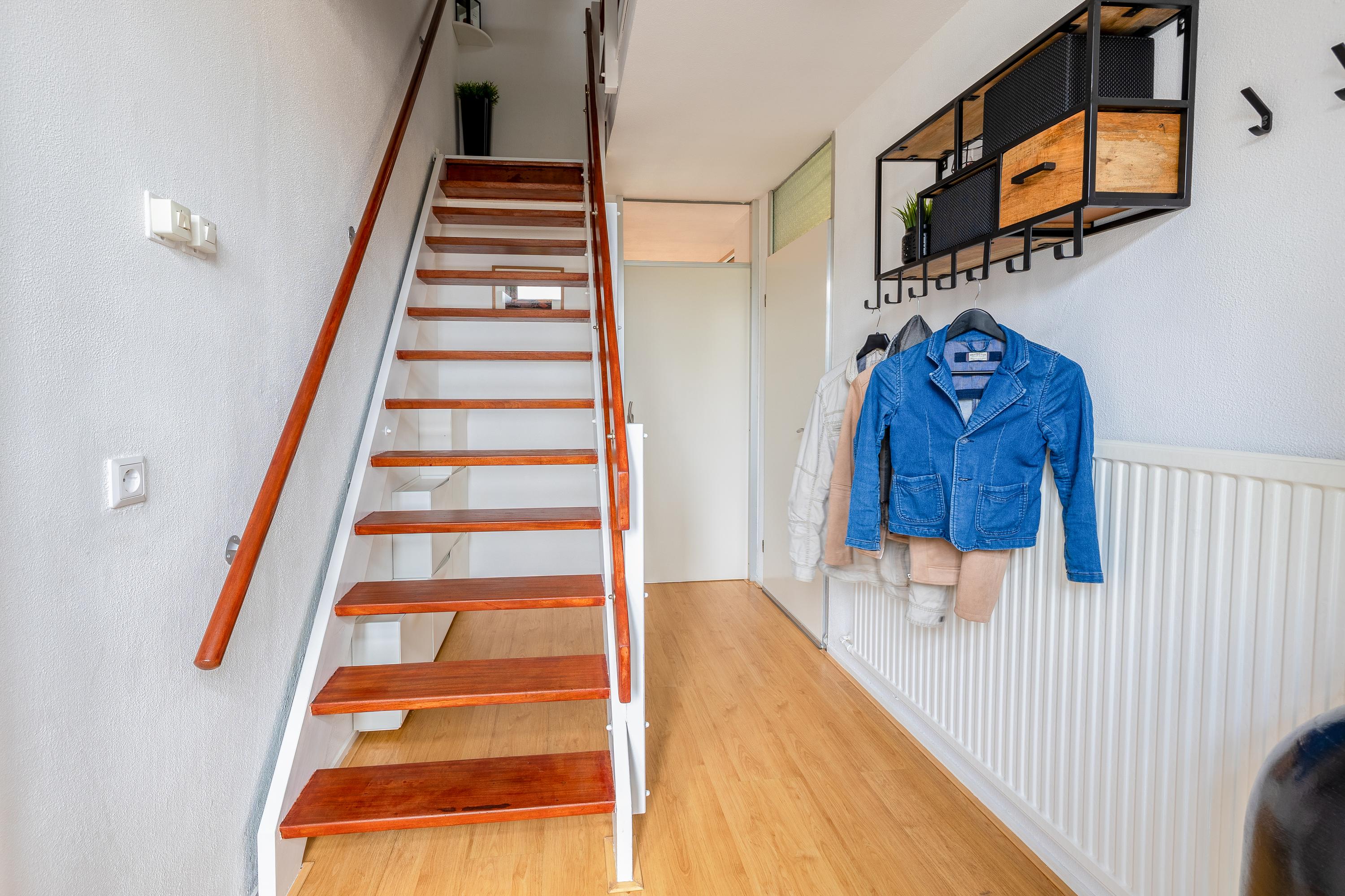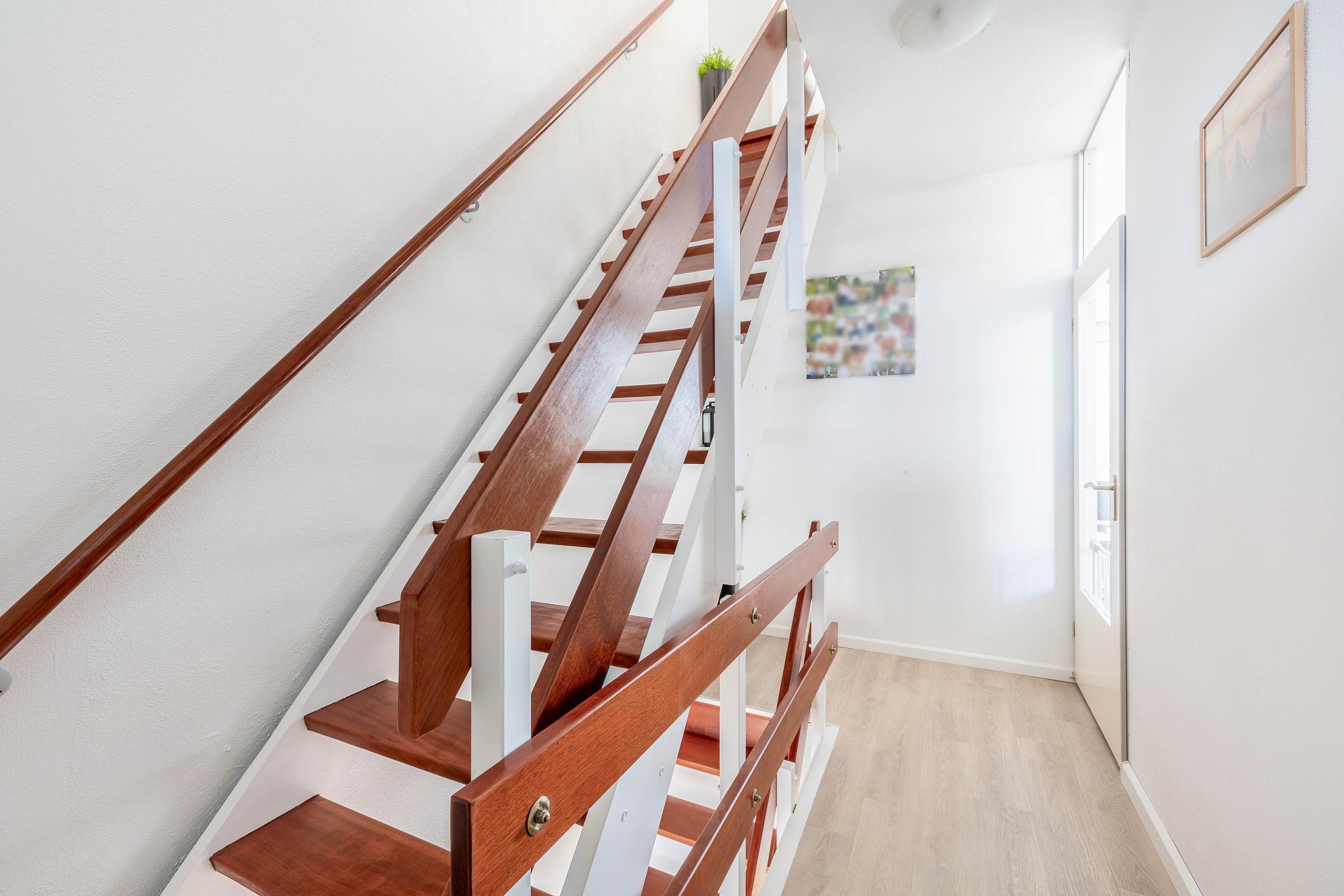 Hal/entree met de meterkast, trap naar de 1e verdieping en toegang tot de garage/berging en de tuinkamer.