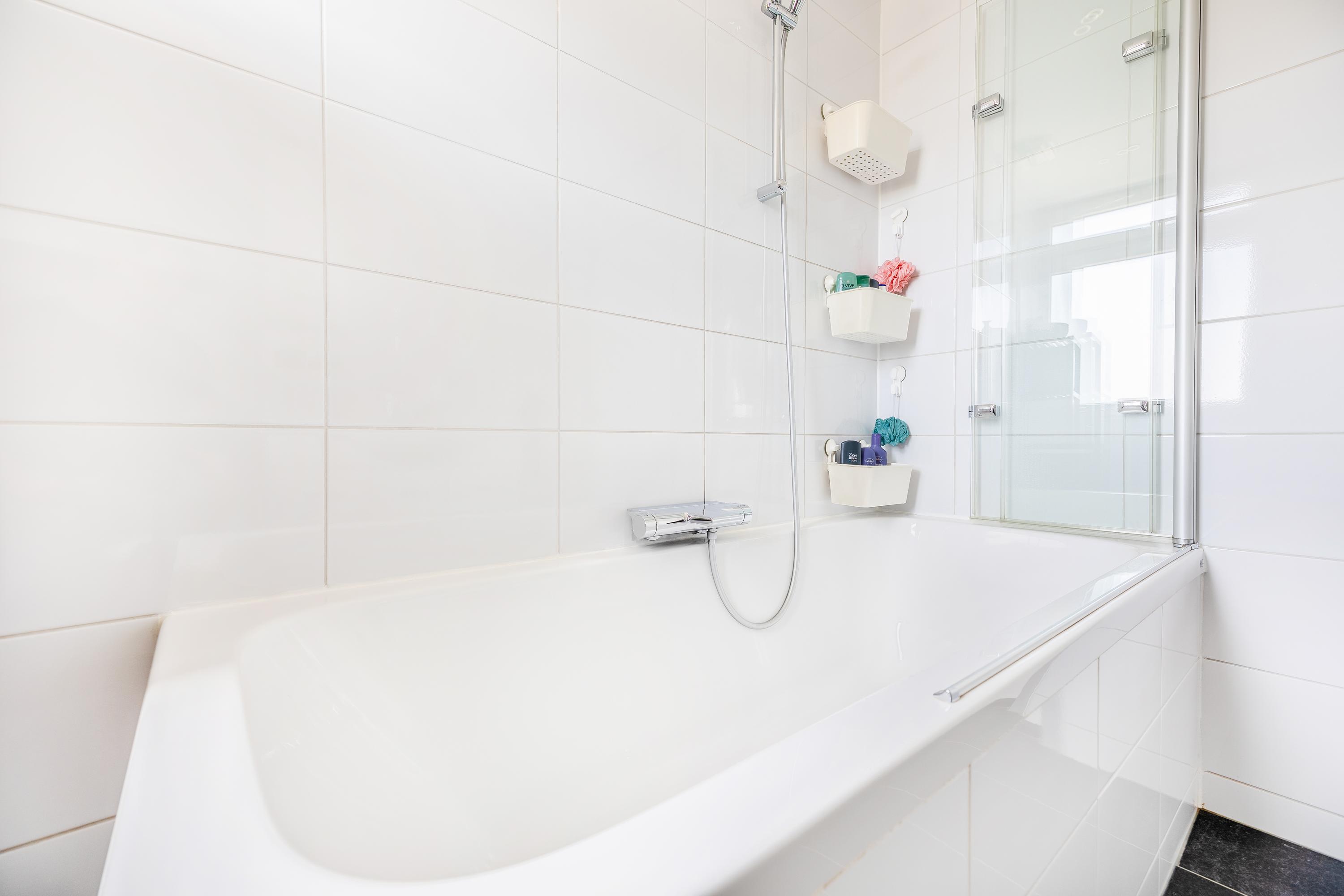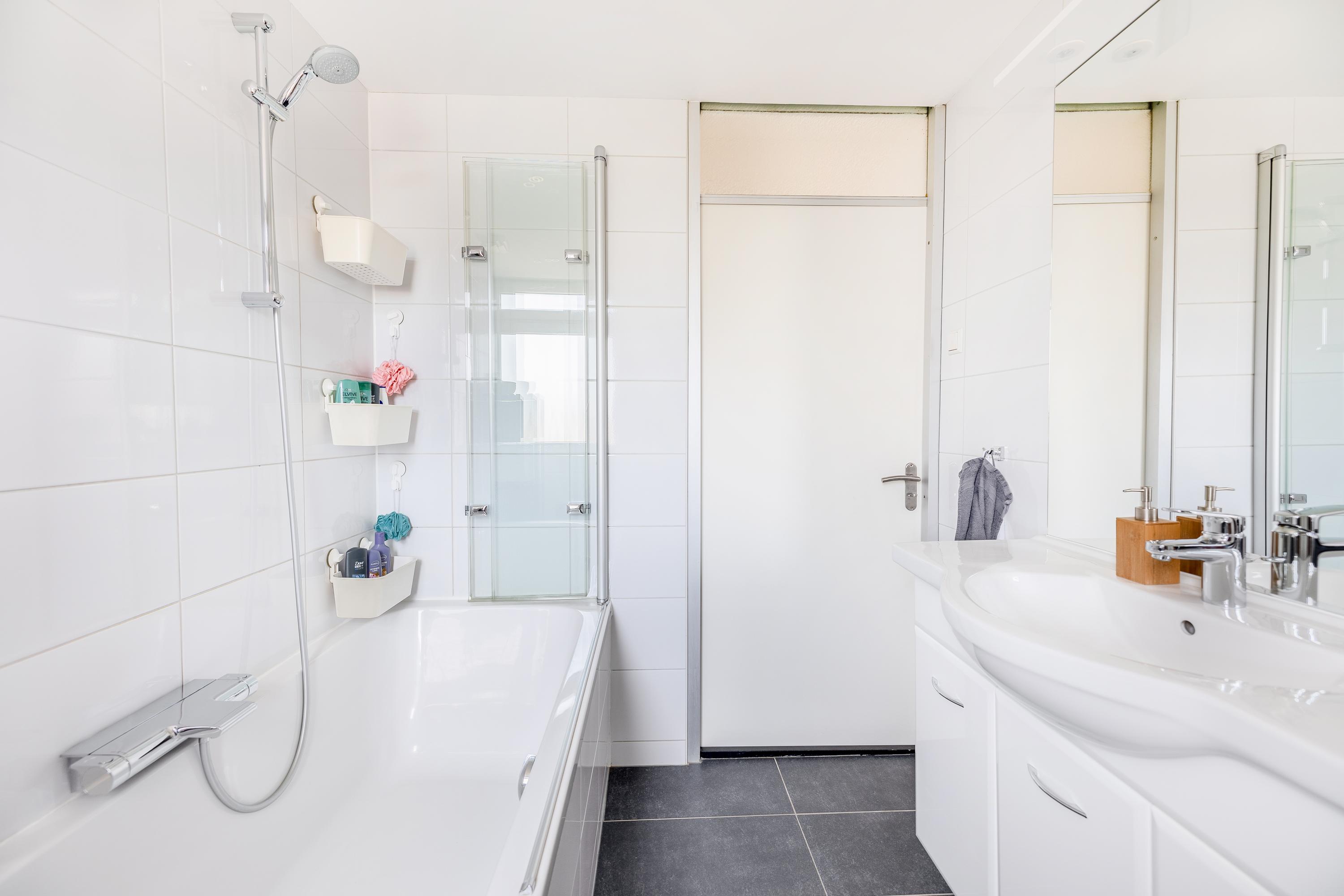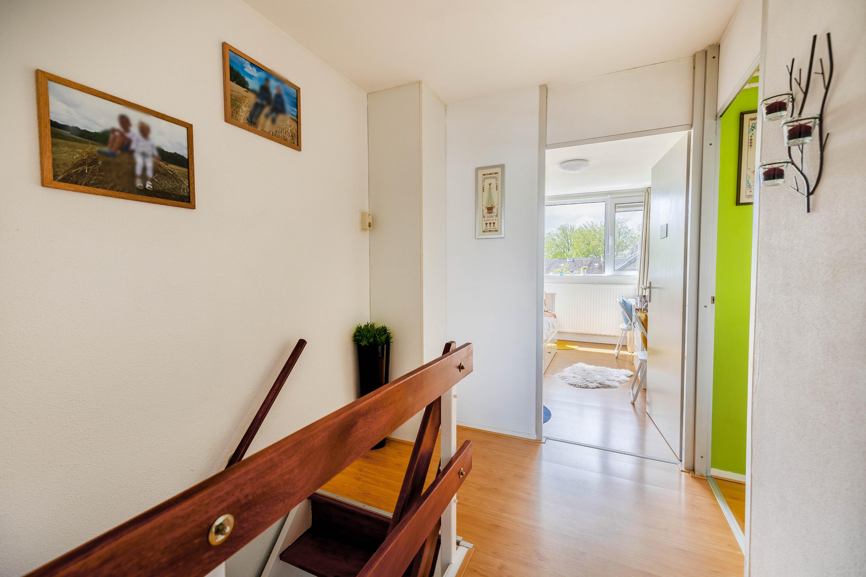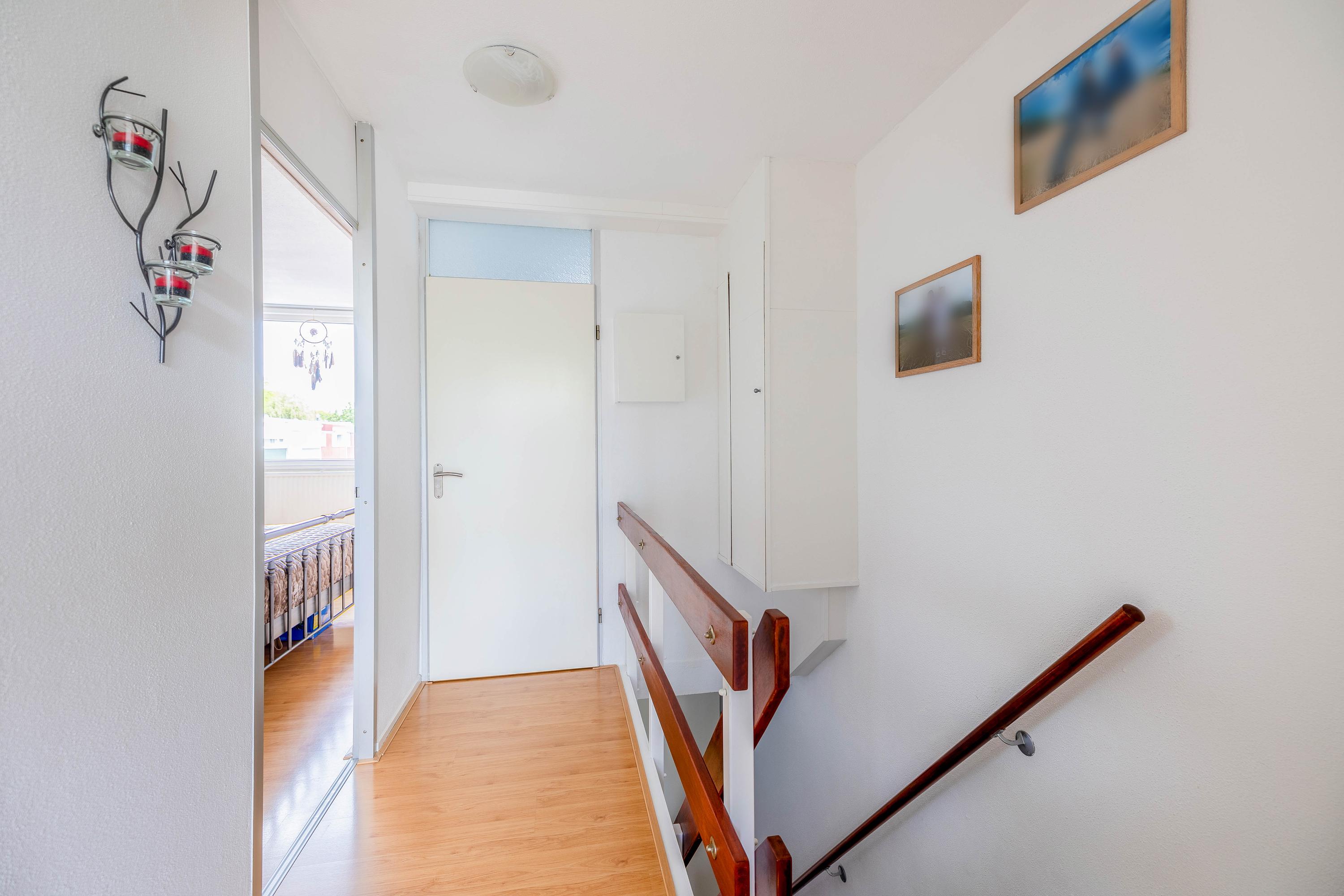 Overloop voorzien van een kast met de opstelling van de Cv-ketel (Remeha Calenta 2014). Ruime hoofdslaapkamer aan de voorzijde van de woning en twee slaapkamers aan de achterzijde met zicht op de tuin. De geheel betegelde badkamer is voorzien van een ligbad met douche gelegenheid, wastafelmeubel, hangend closet en een designradiator. Door het raam is natuurlijke ventilatie mogelijk, maar is het ook een lichte ruimte. Deze verdiepingsvloer is voorzien van een laminaatvloer.