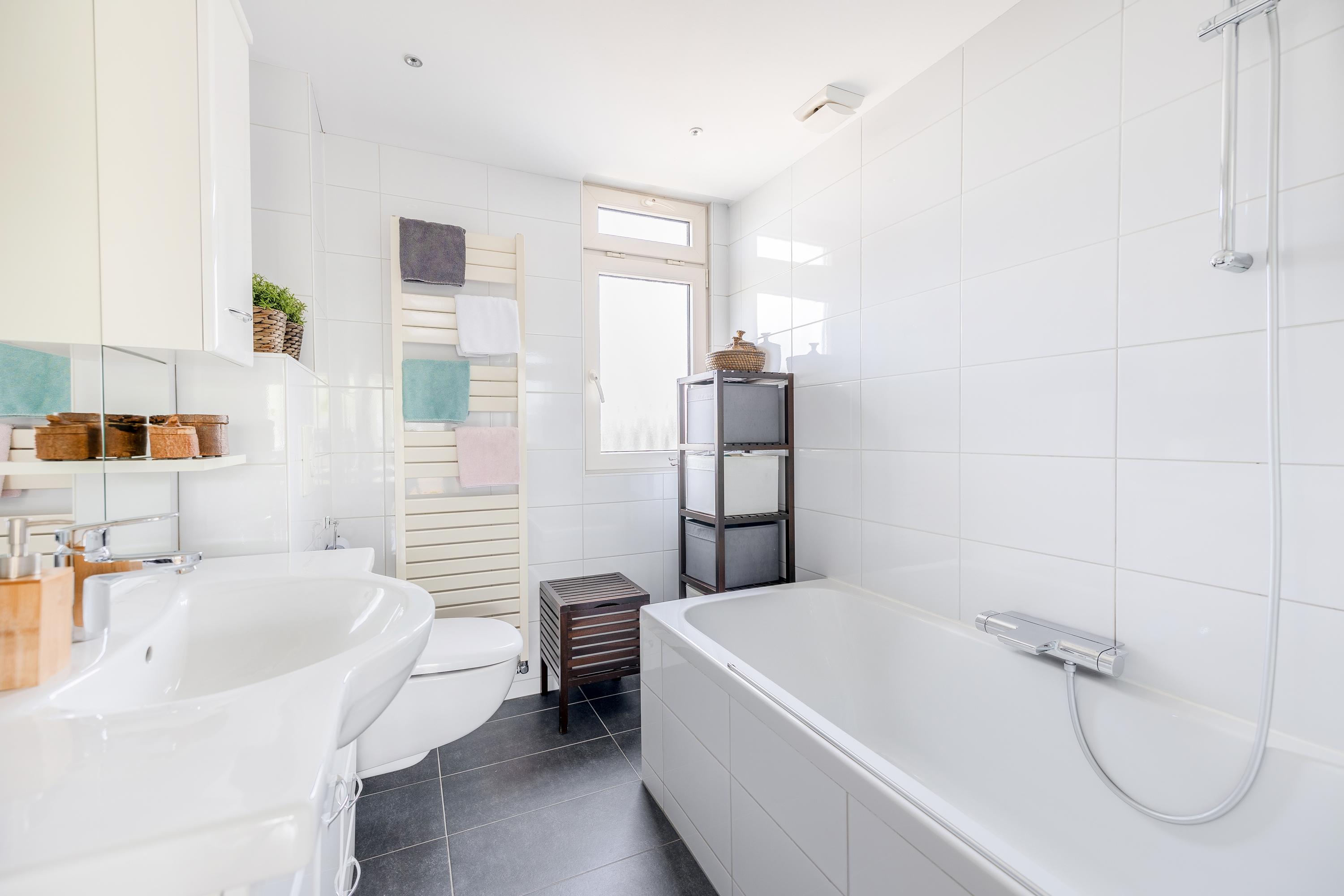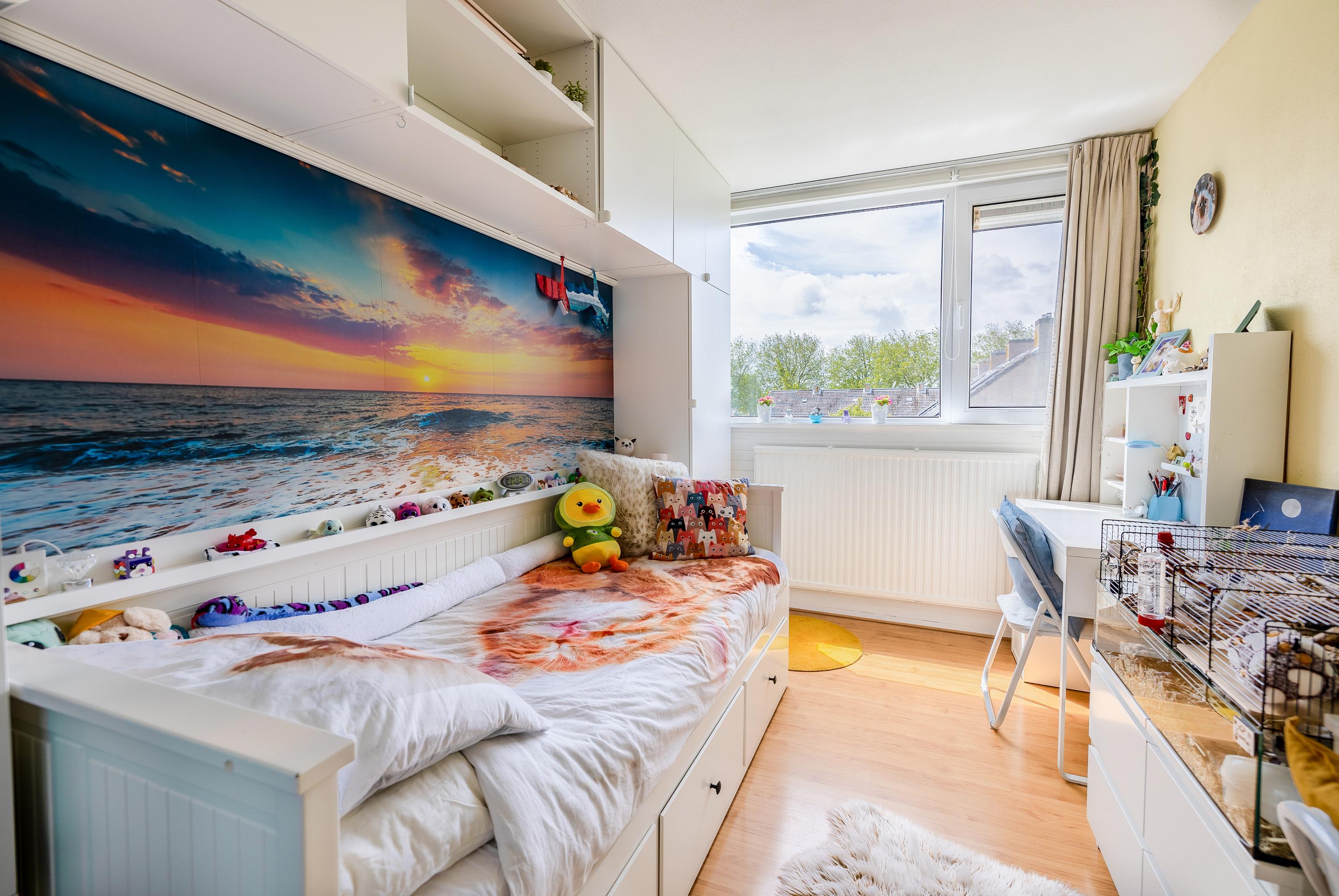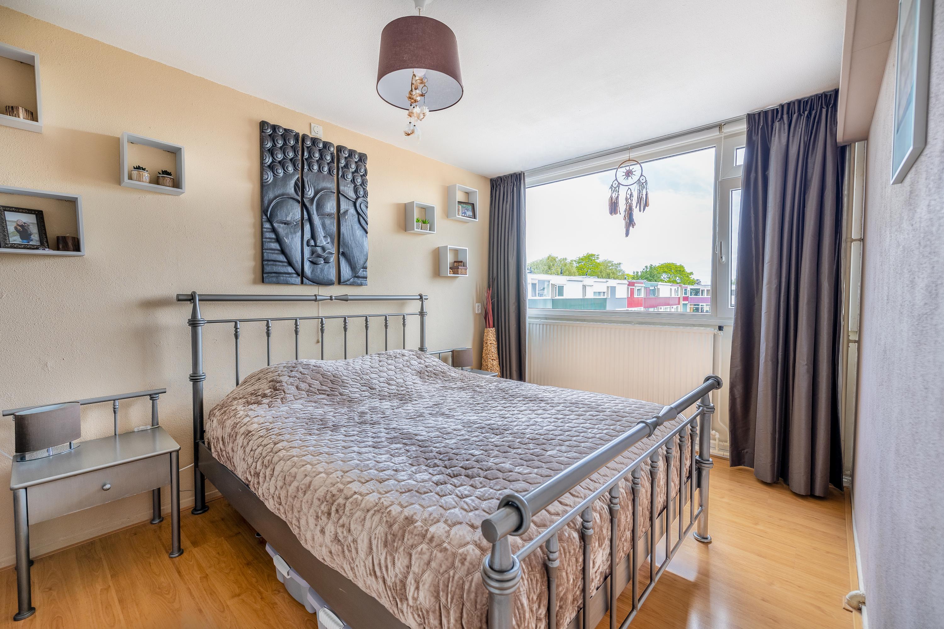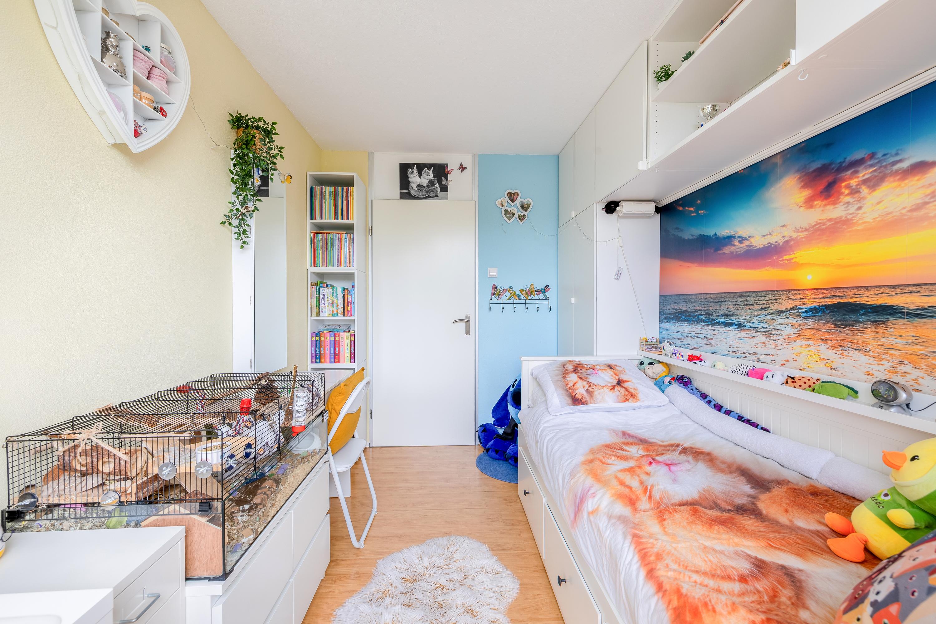 Overloop voorzien van een kast met de opstelling van de Cv-ketel (Remeha Calenta 2014). Ruime hoofdslaapkamer aan de voorzijde van de woning en twee slaapkamers aan de achterzijde met zicht op de tuin. De geheel betegelde badkamer is voorzien van een ligbad met douche gelegenheid, wastafelmeubel, hangend closet en een designradiator. Door het raam is natuurlijke ventilatie mogelijk, maar is het ook een lichte ruimte. Deze verdiepingsvloer is voorzien van een laminaatvloer.