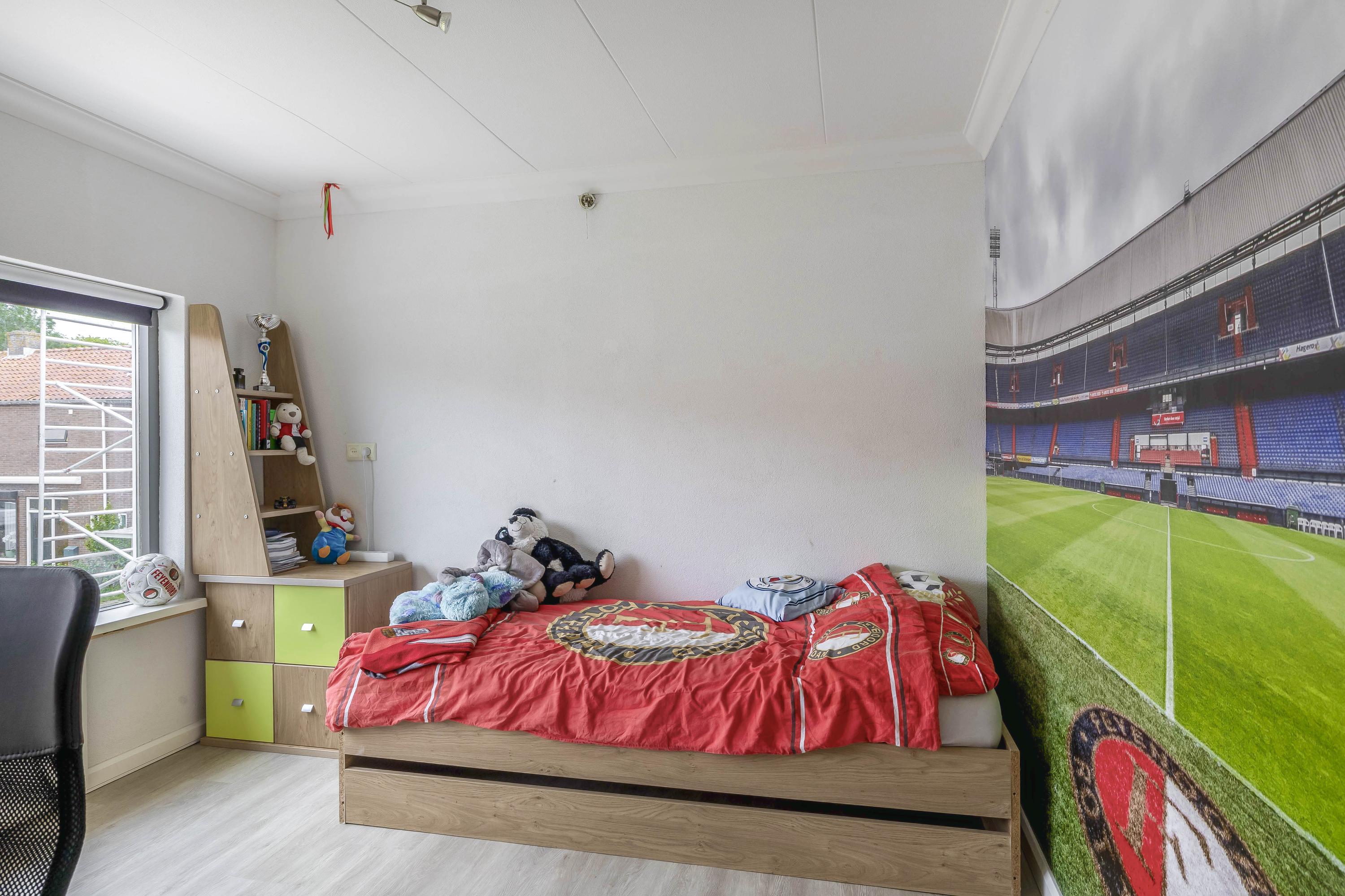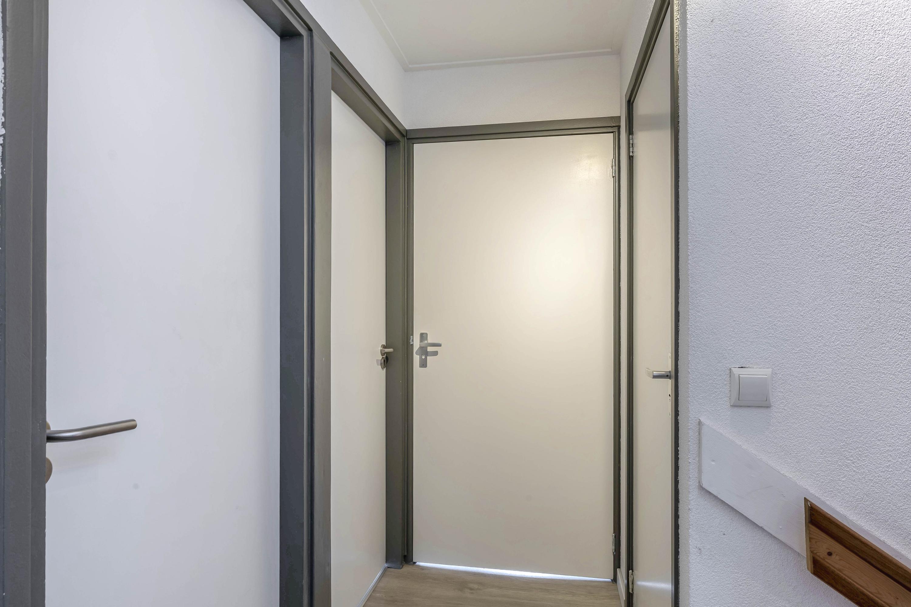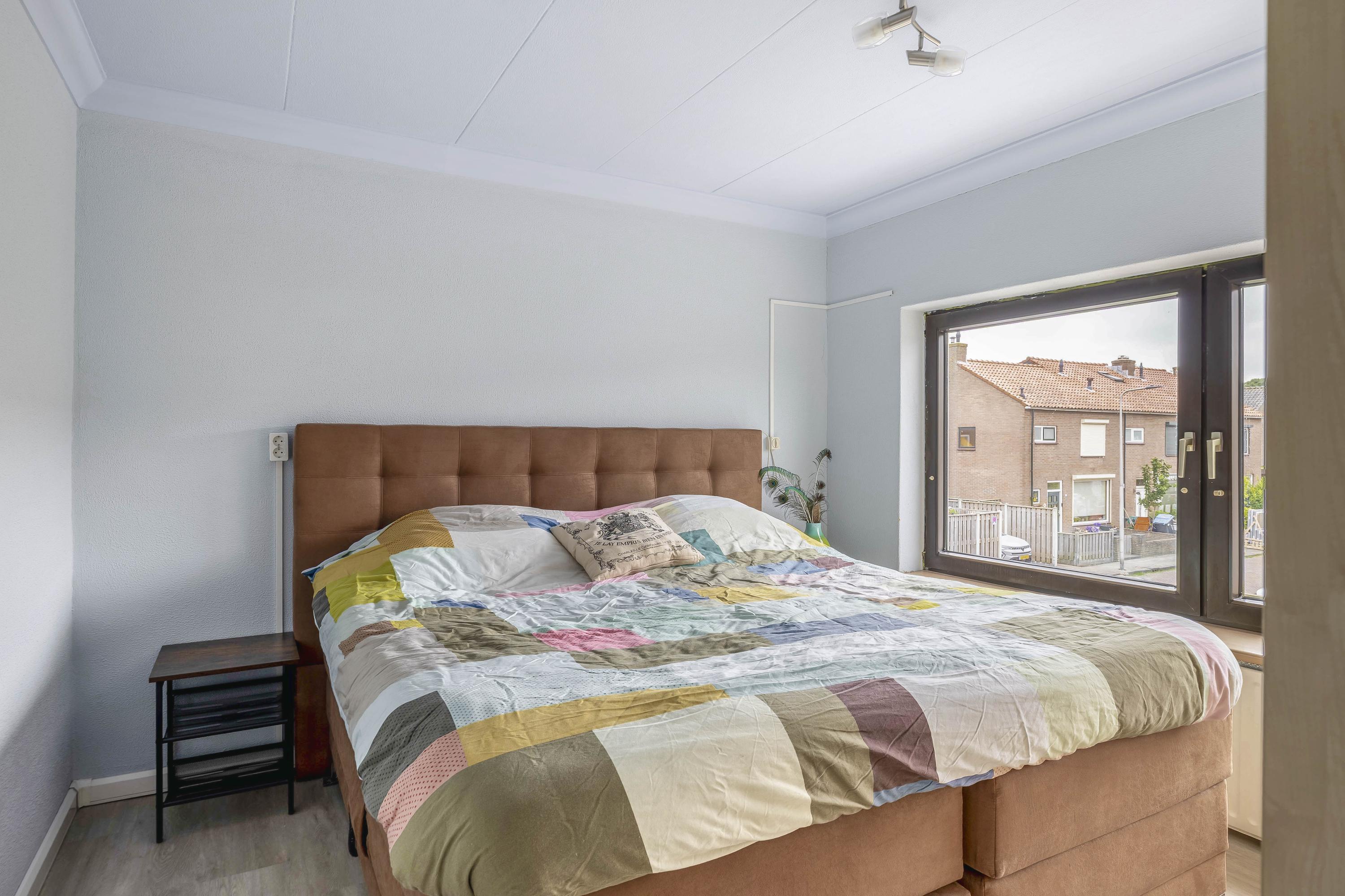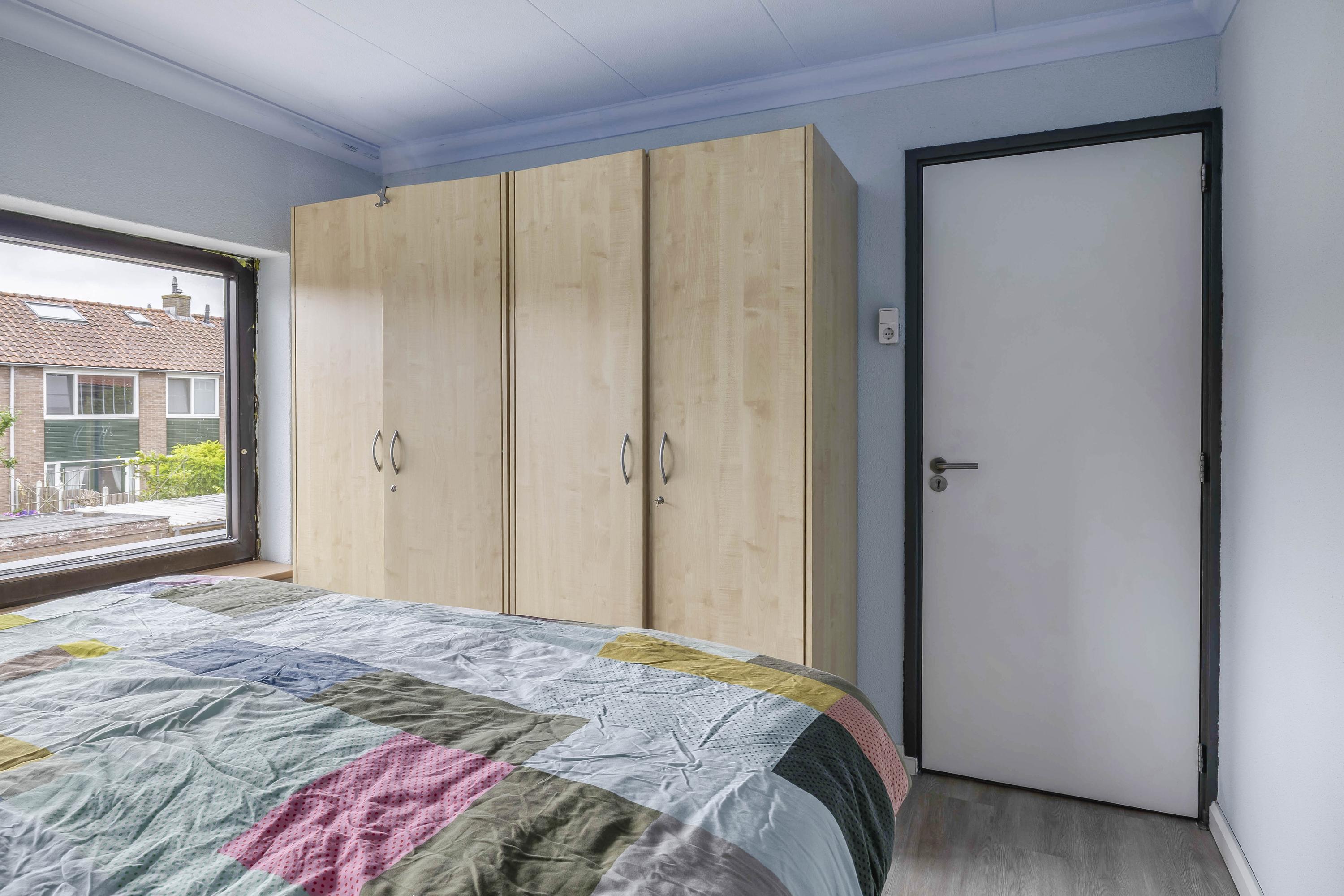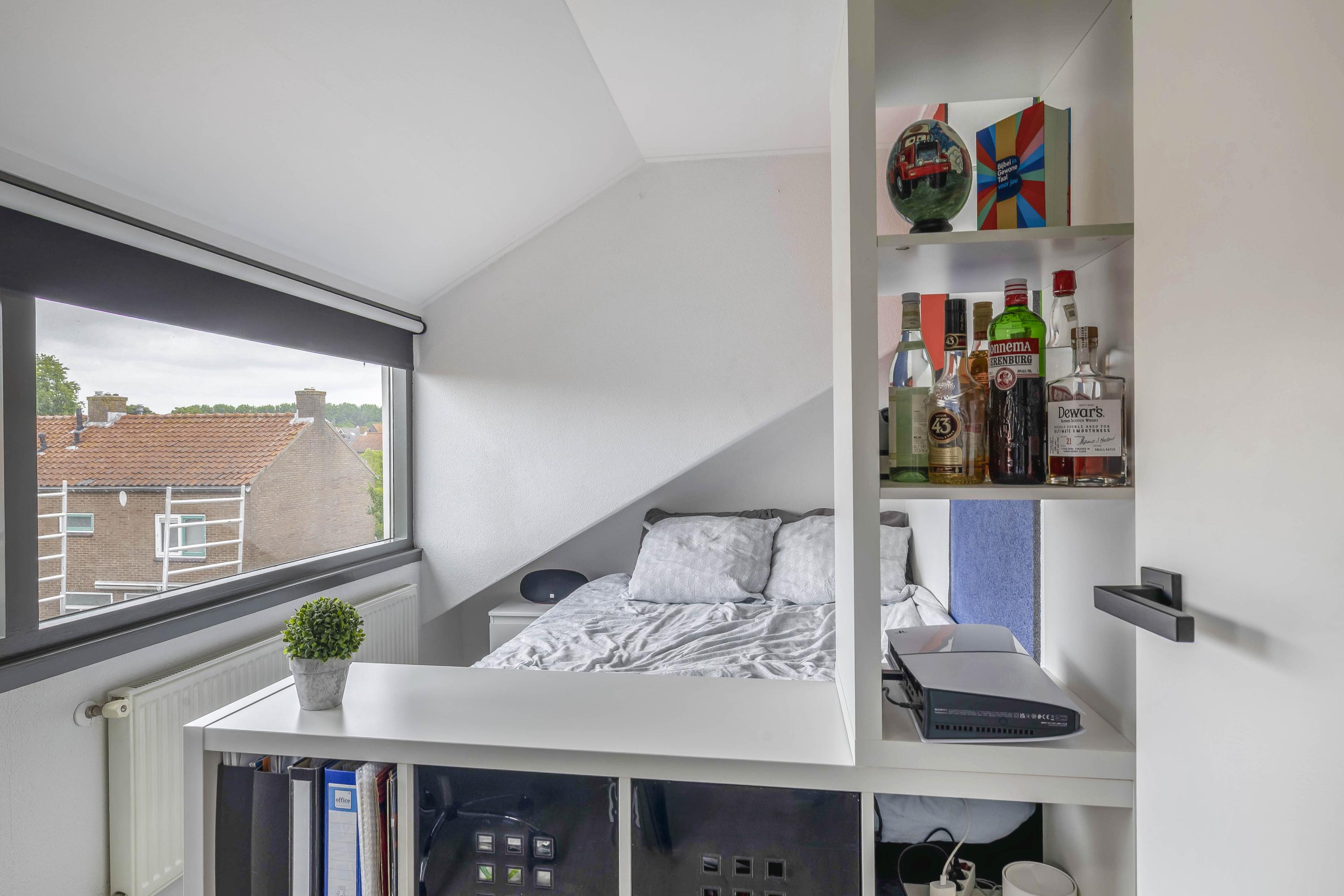 Door de dubbelzijdige nokverhoging is hier veel extra ruimte ontstaan. Op de voorzolder een luik naar de bergvliering en de opstelling van de cv-combiketel (AWB 2009). Verder vind je hier twee slaapkamers, beide met een PVC vloer. De slaapkamer aan de achterzijde is voorzien van screens.