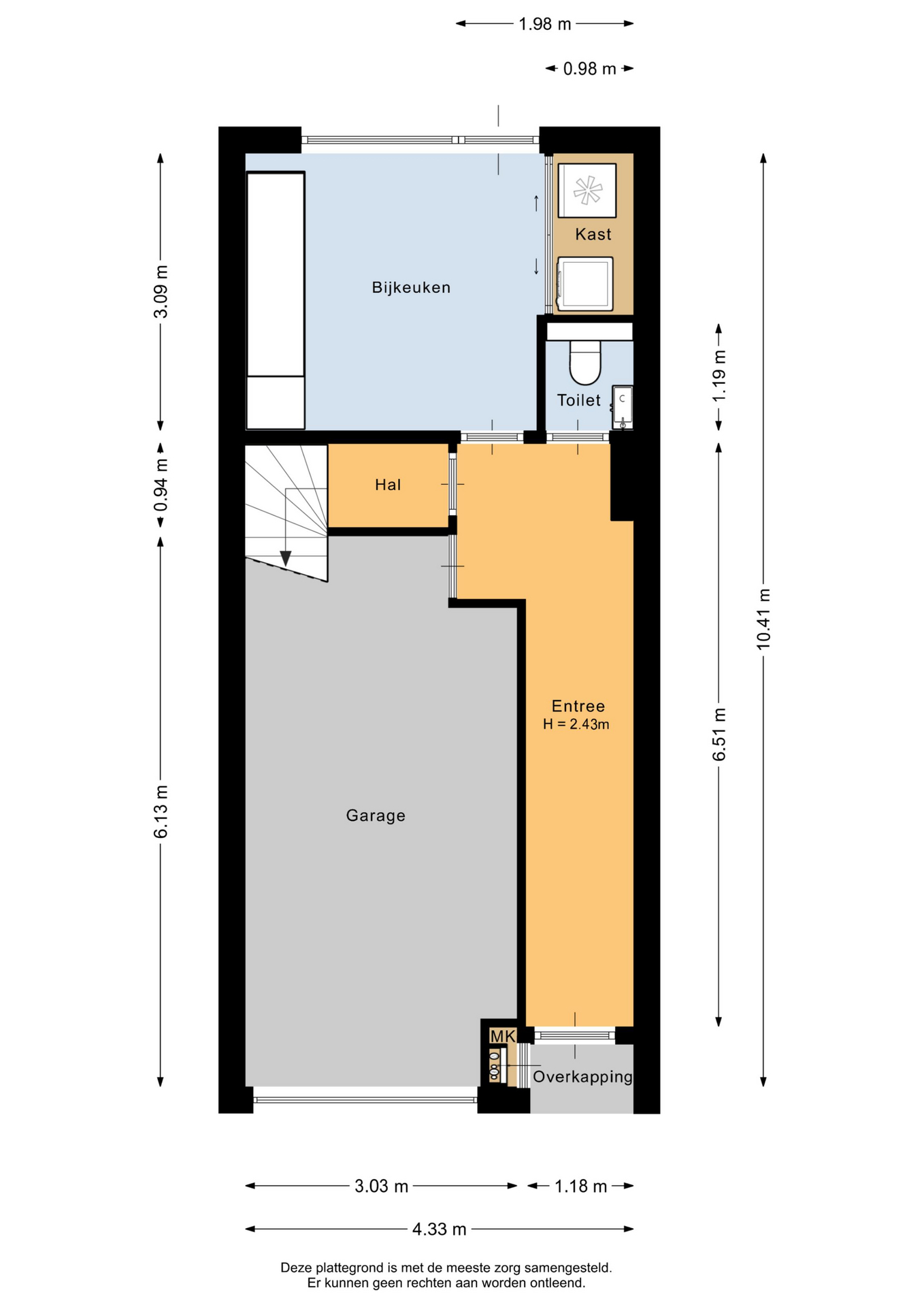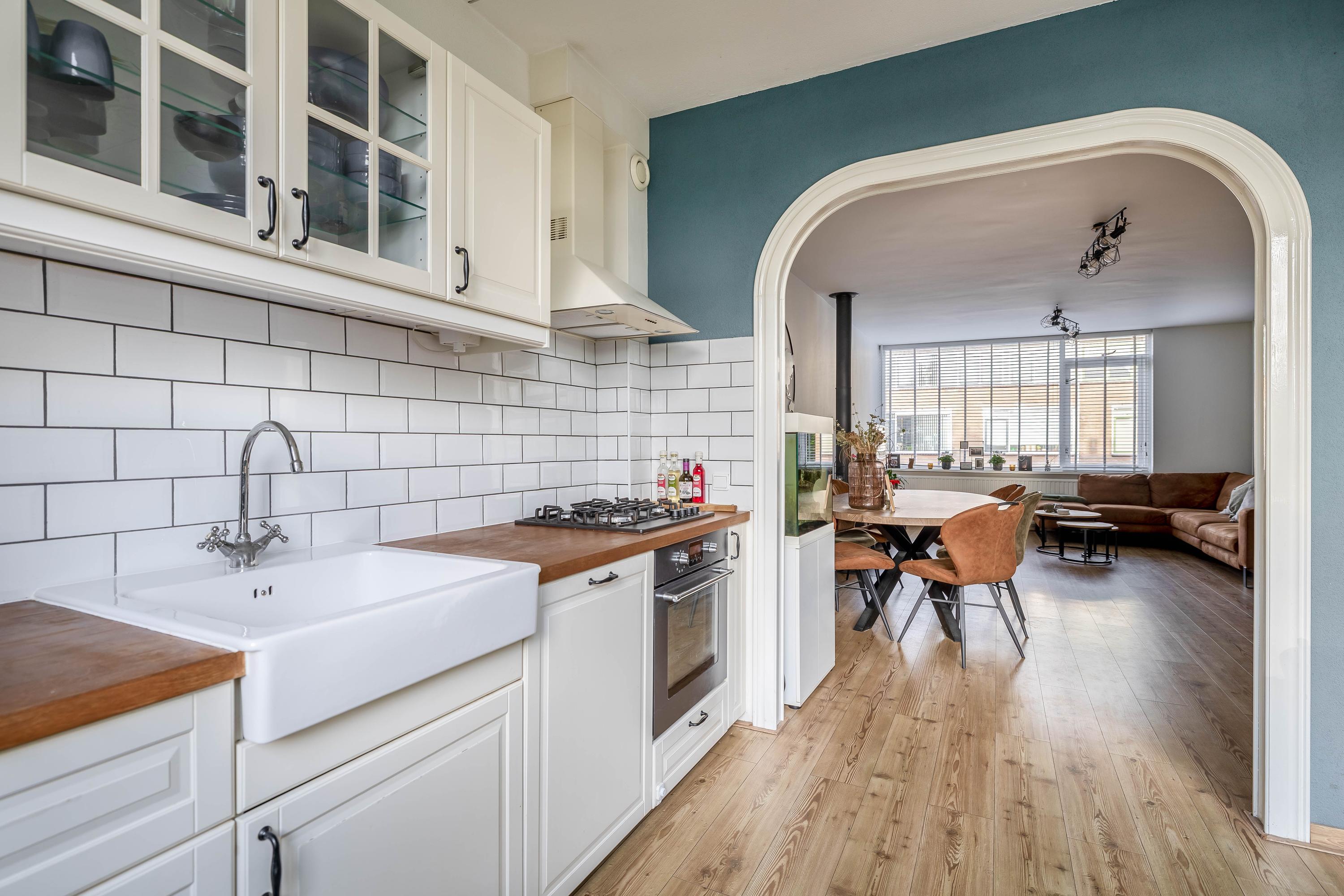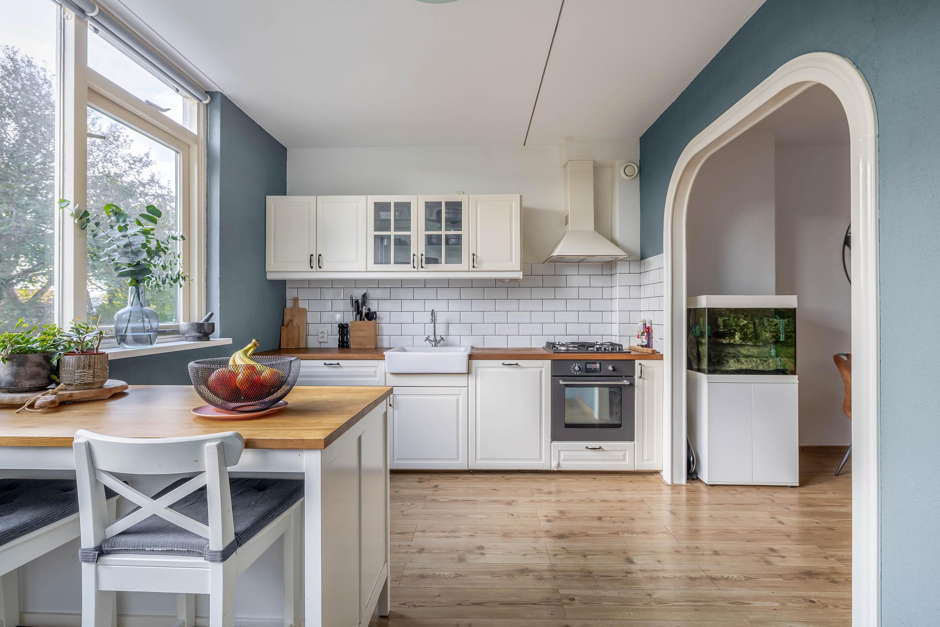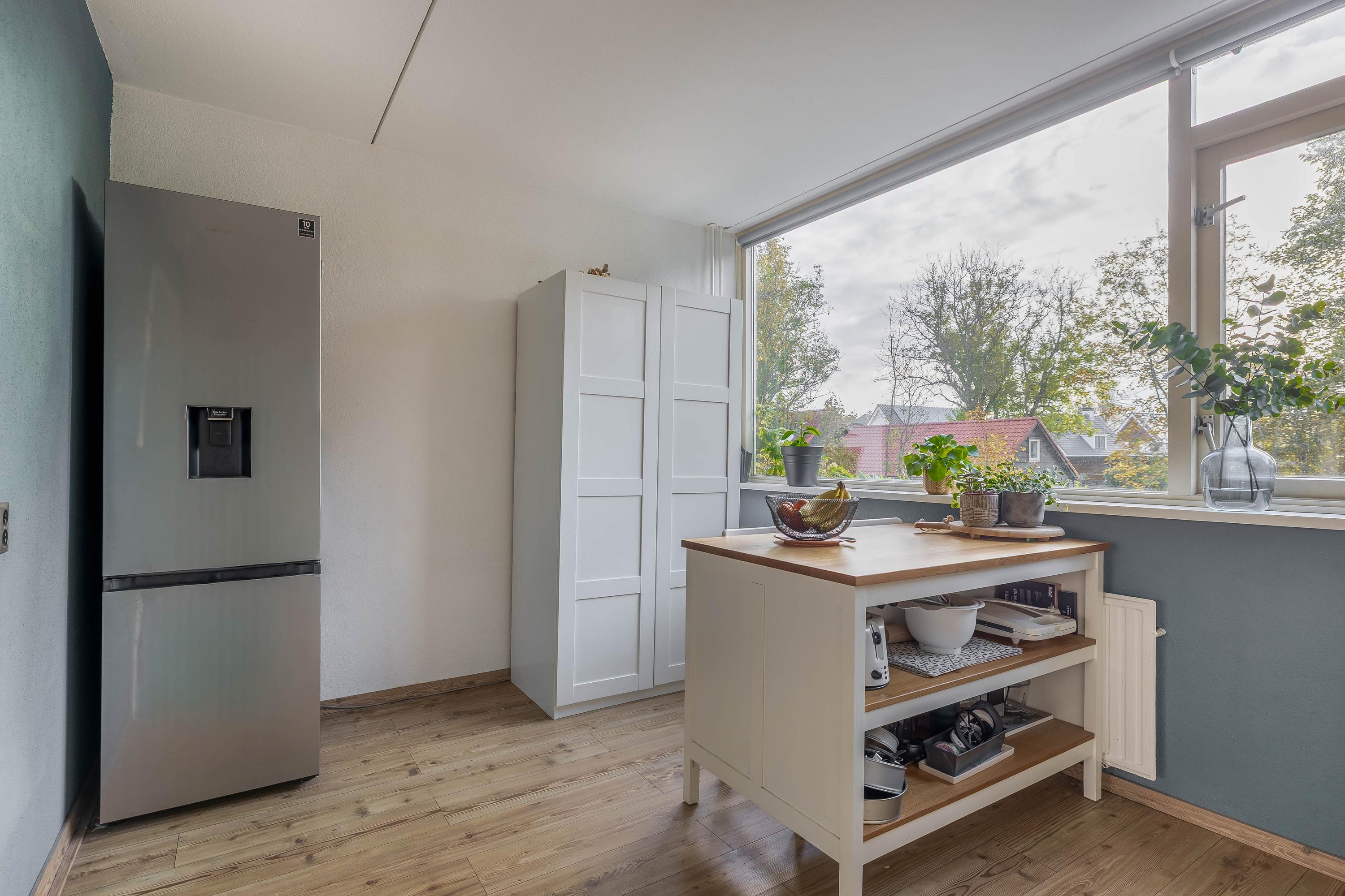 Via de voortuin met eigen oprit bereik je de entree van de woning en de meterkast links naast de voordeur. In de hal vind je een toilet met hangend closet en fonteintje én de deur naar de inpandige garage. De garage is voorzien van elektra, wateraansluiting, een sectionaaldeur en biedt voldoende ruimte voor opslag of het parkeren van een auto. Aan de achterzijde van de woning bevindt zich de tuinkamer die nu is ingericht als bijkeuken. Deze praktische ruimte beschikt over een vaste kast met wasmachine- en drogeraansluiting en biedt via een deur toegang tot de achtertuin. Vanuit de hal is er tevens een tussenhal met de trapopgang naar de eerste verdieping. De begane grond is voorzien van een laminaatvloer.