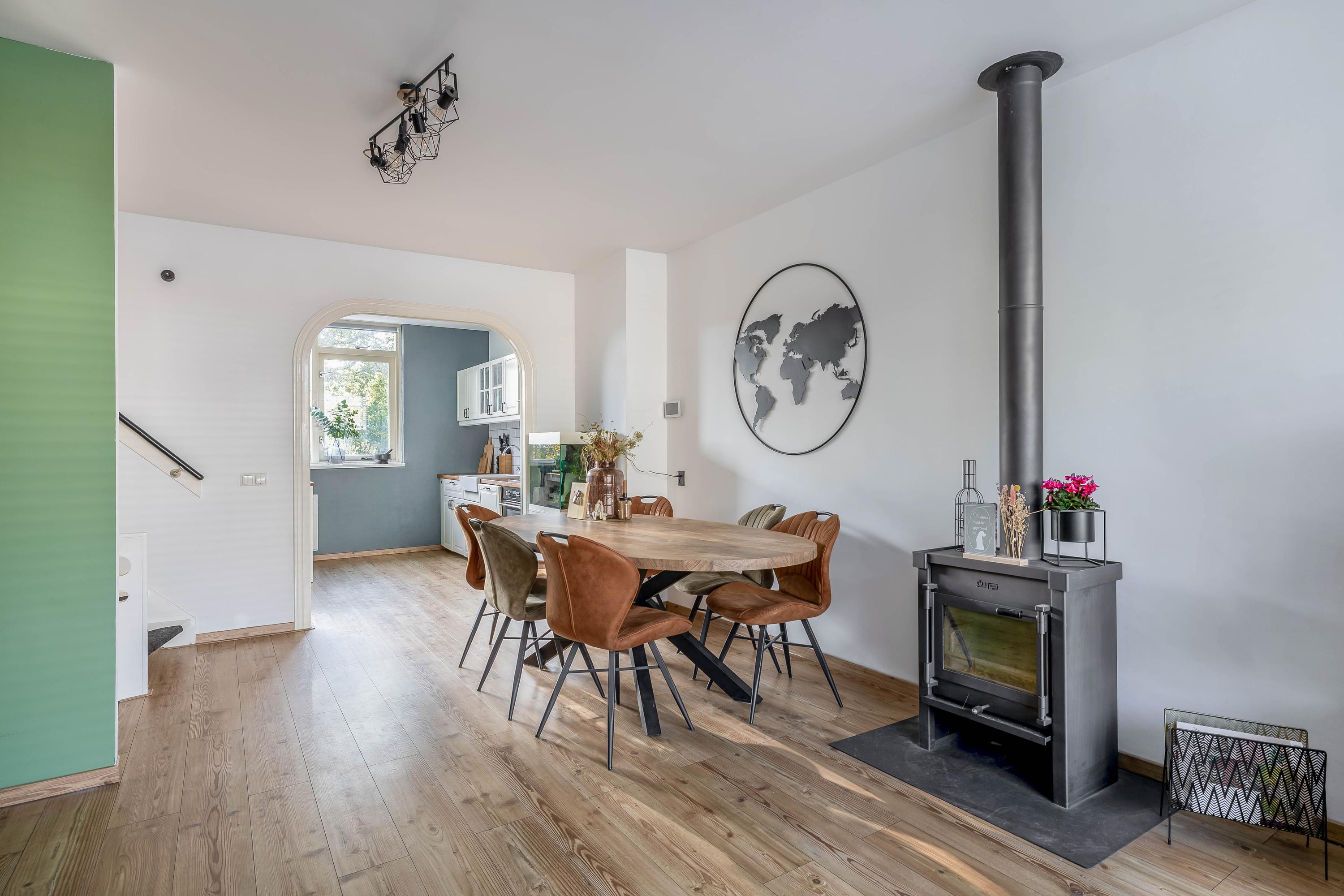 - Sfeervolle houtkachel in de lichte en ruime woonkamer.