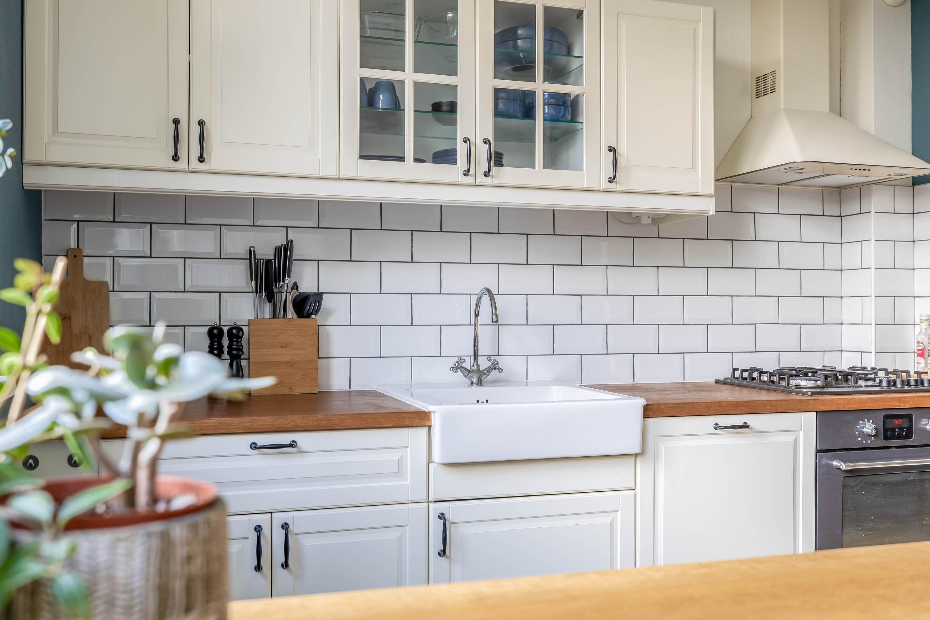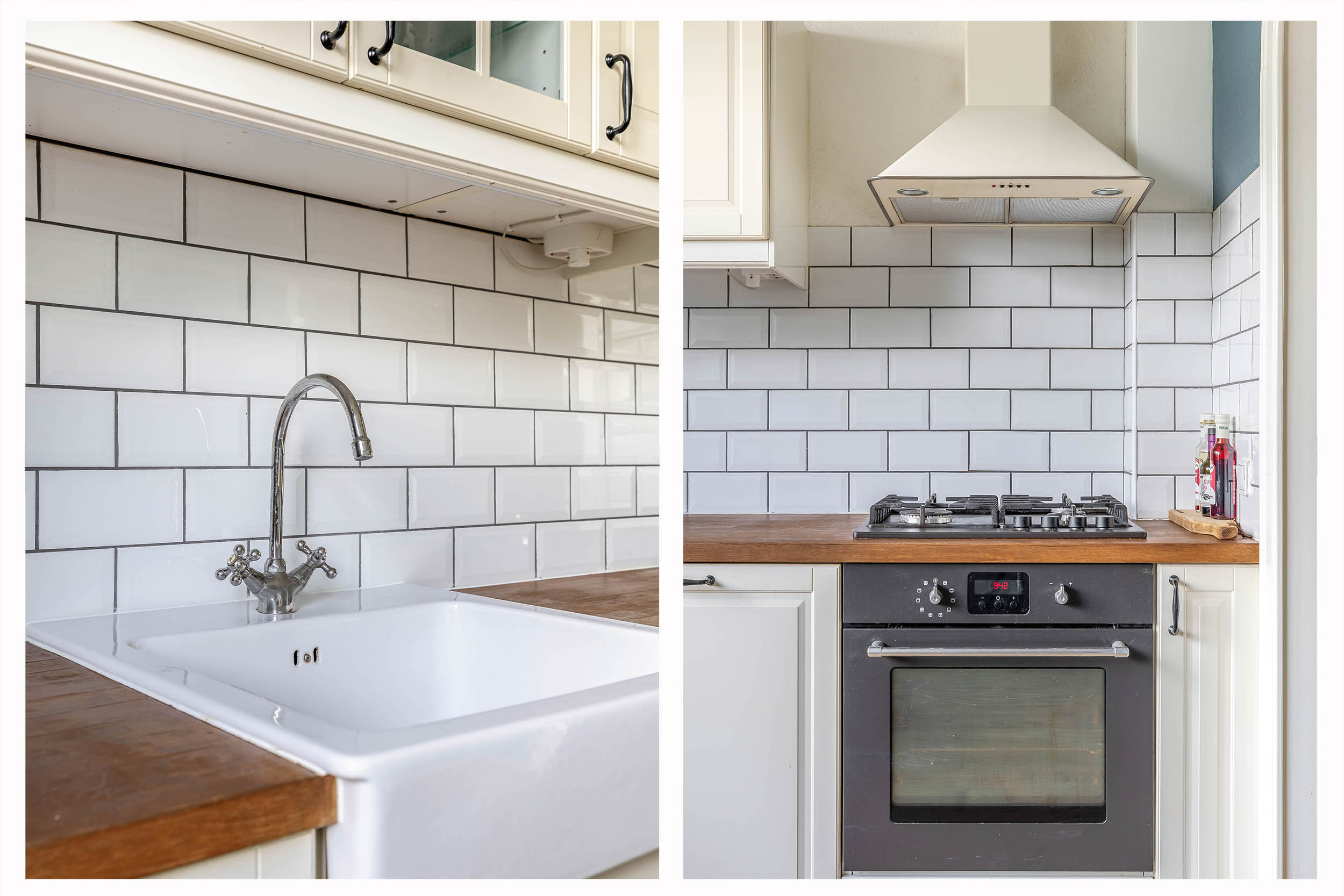 Via de trap bereik je de ruime en lichte woonkamer met een sfeervolle houtkachel, wat zorgt voor een warme en uitnodigende sfeer. De woonkamer biedt voldoende ruimte voor een eethoek, waardoor het een fijne plek is om te ontspannen en samen te komen. Via een toog kom je in de half open keuken die op de achtertuin uitkijkt, deze is uitgerust met een gaskookplaat, afzuigkap, oven en vaatwasser. Deze verdieping is ook voorzien van een laminaatvloer.