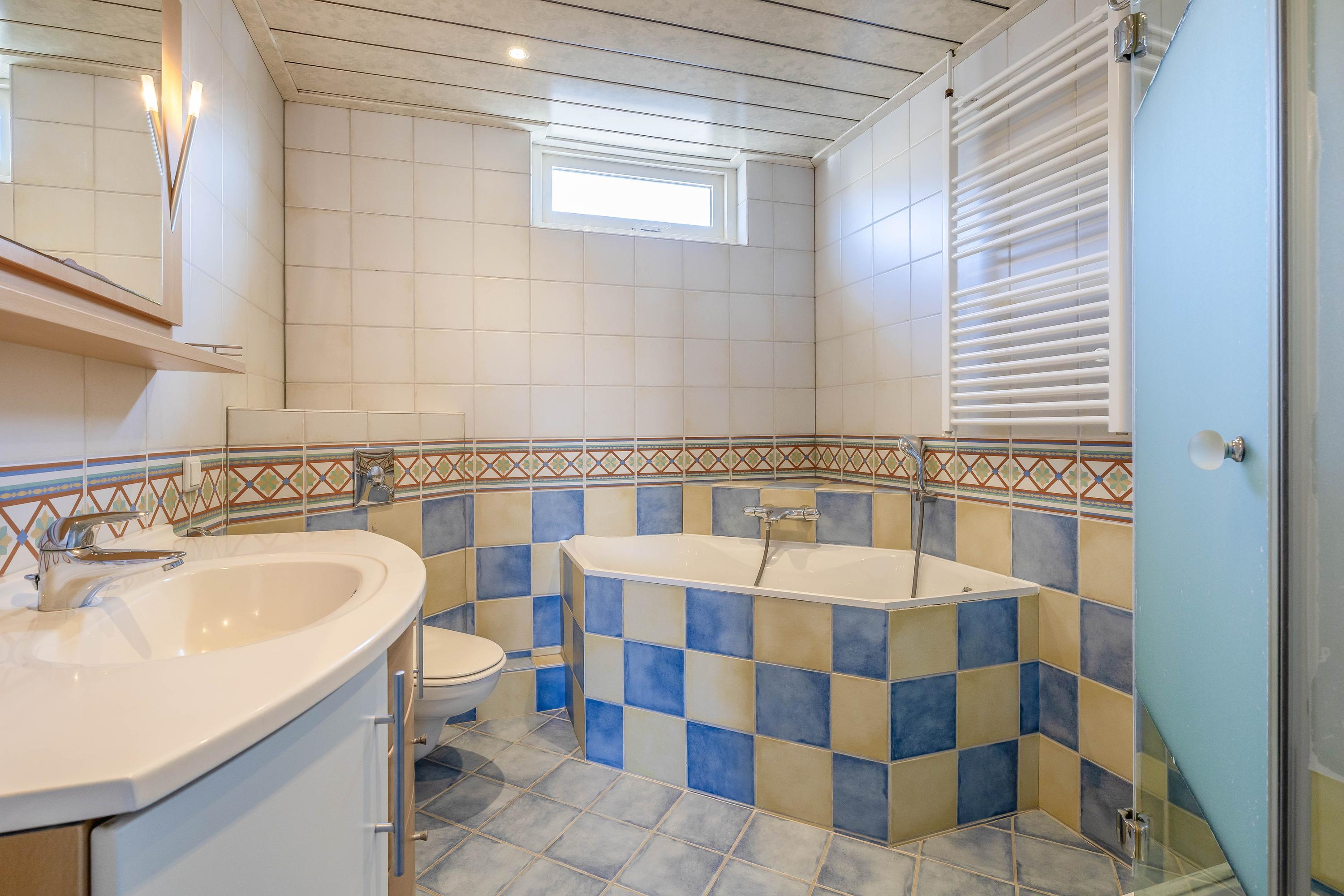 De overloop geeft toegang tot drie ruime slaapkamers, die allemaal zijn voorzien van handmatige rolluiken voor extra comfort en privacy. Verder is de gehele verdieping is afgewerkt met vloerbedekking. Vanuit de overloop bereik je tevens de badkamer, die van alle gemakken is voorzien: een ligbad, douche, hangend closet, wastafelmeubel en een designradiator. Dankzij het aanwezige raam is er een prettige natuurlijke ventilatie, waardoor de badkamer een frisse en aangename ruimte is.