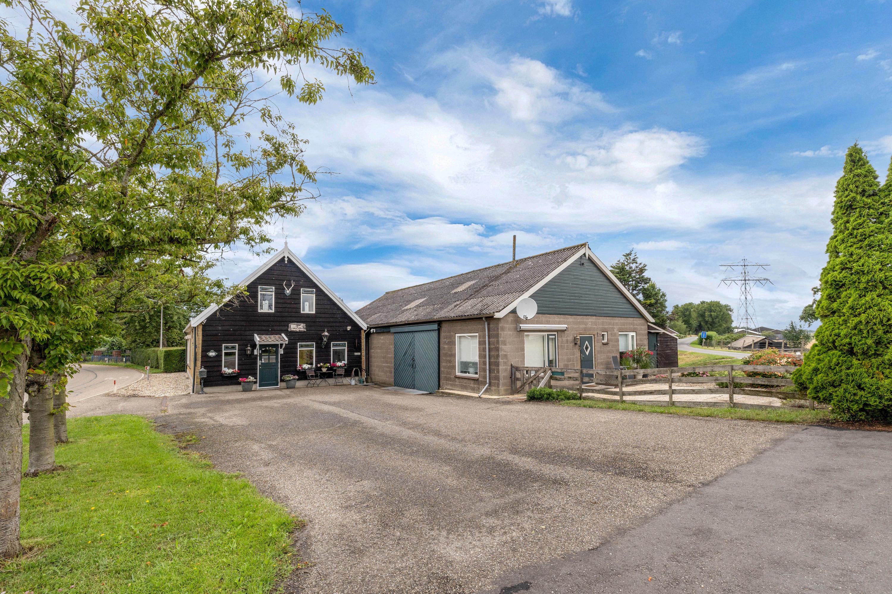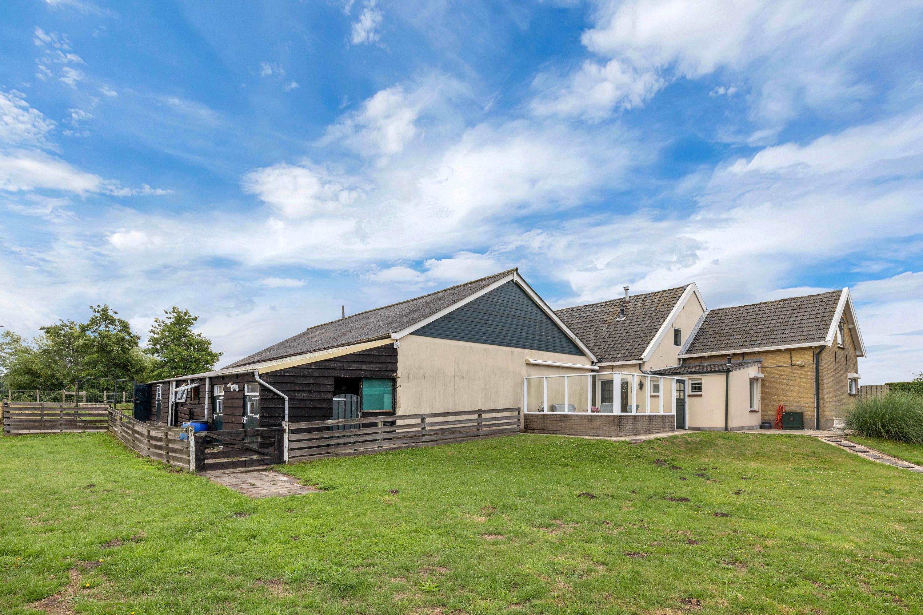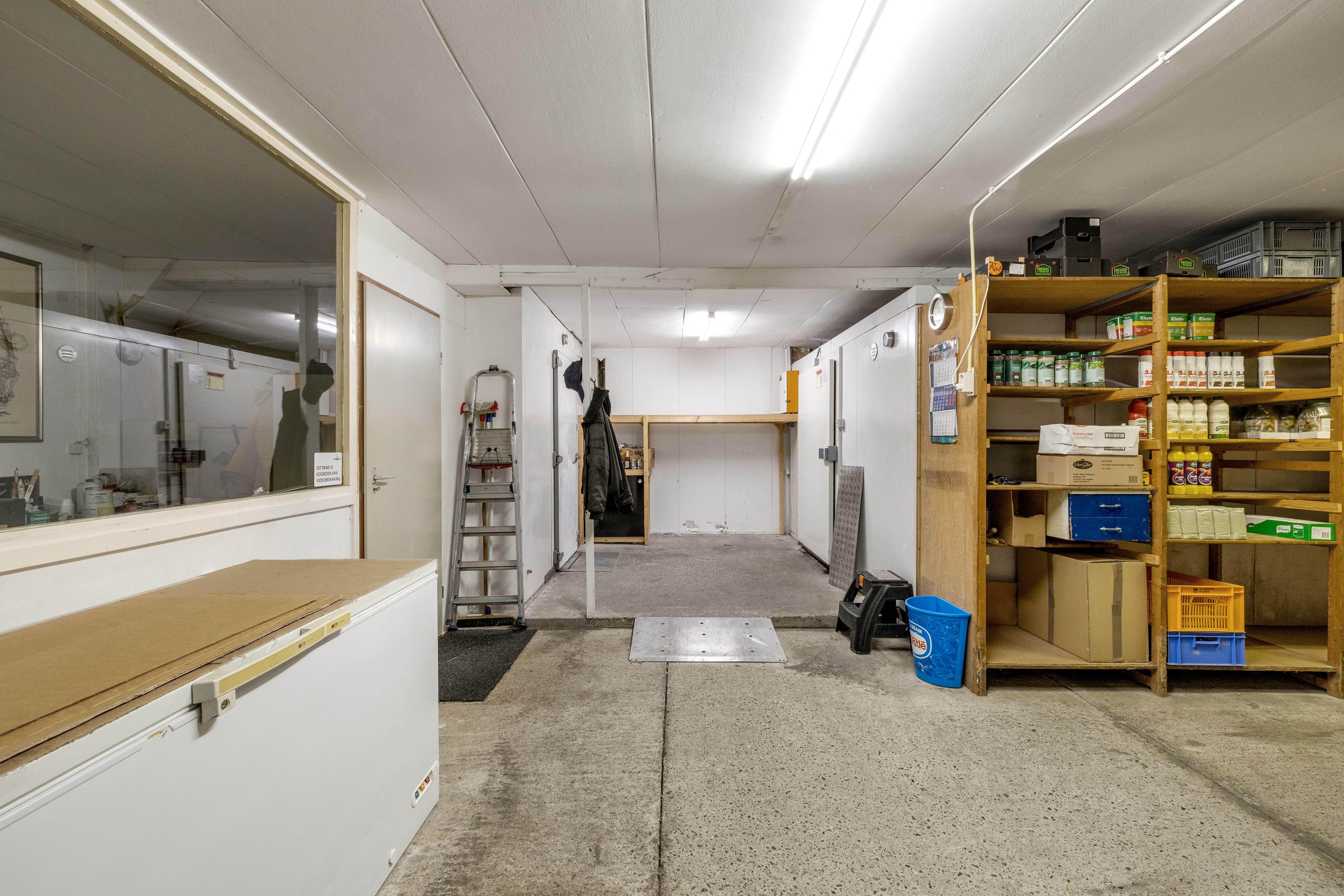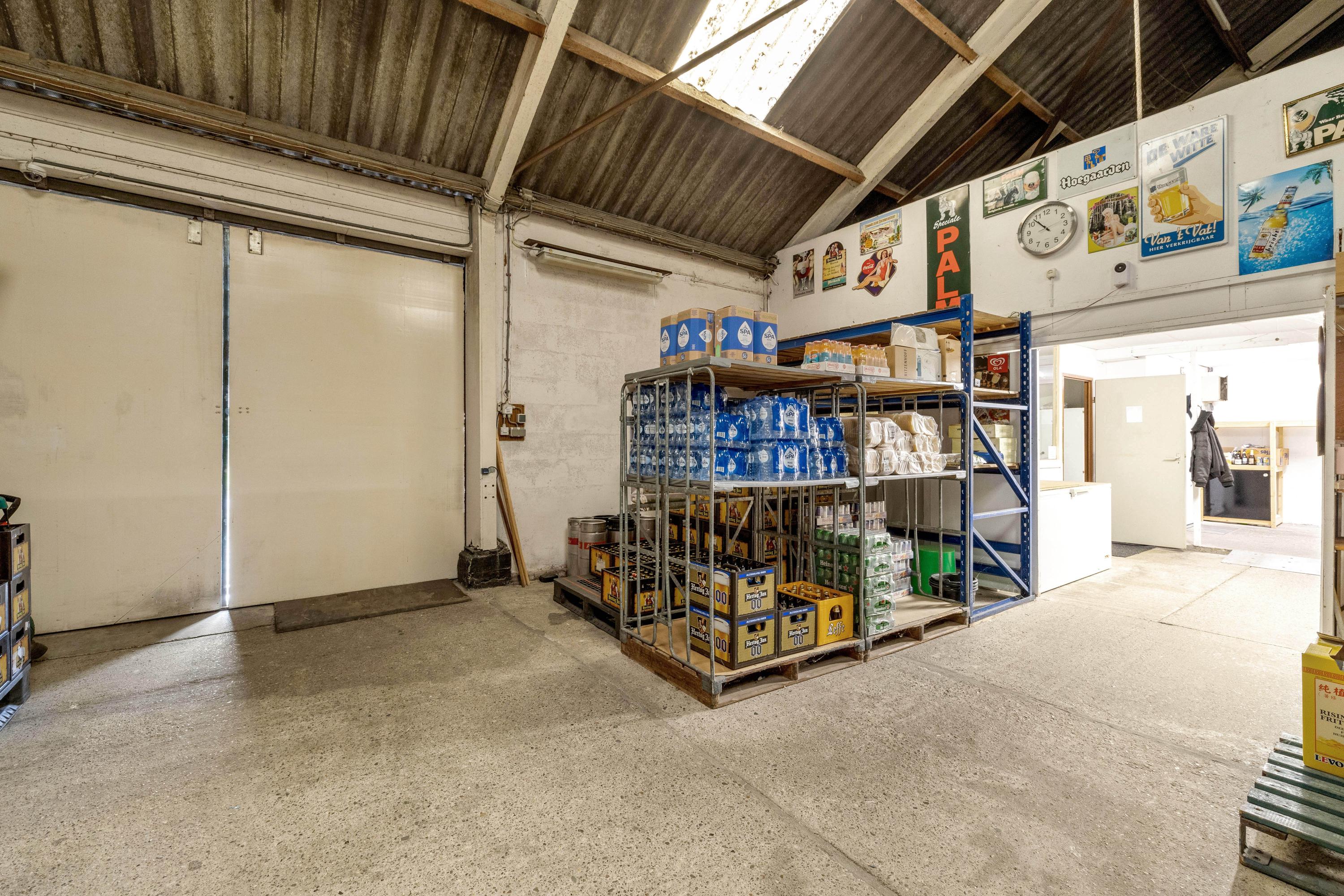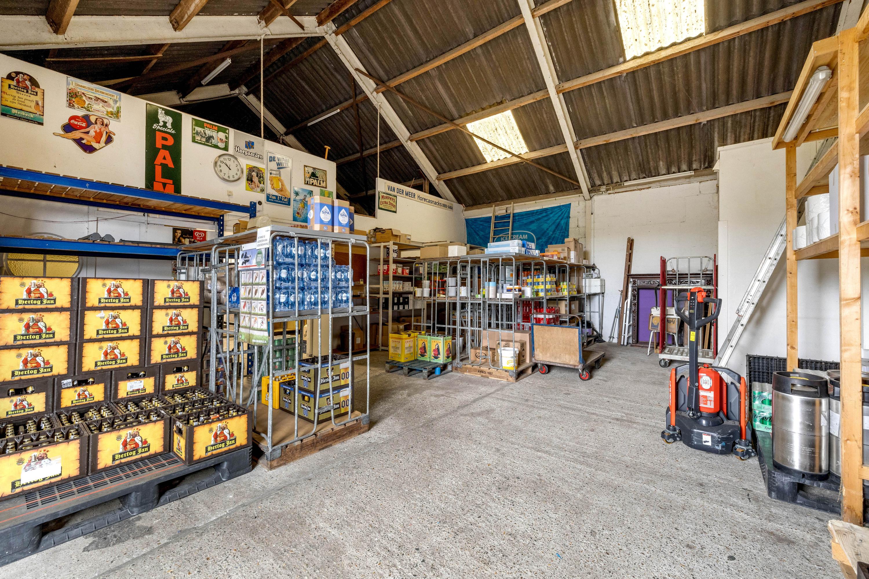 Een van de grootste pluspunten is de grote aangebouwde stenen loods met zadeldak, betonvloer en vide. Deze loods is verdeeld in meerdere ruimten. In het magazijn gedeelte van de loods zijn een grote koel- en viescel te vinden. Aan de voorzijde van de loods is er nog een gastenverblijf, verder zijn er stallen en een extra berging aangebouwd. Daarnaast staat er in de tuin een chalet (ca. 24 m²).