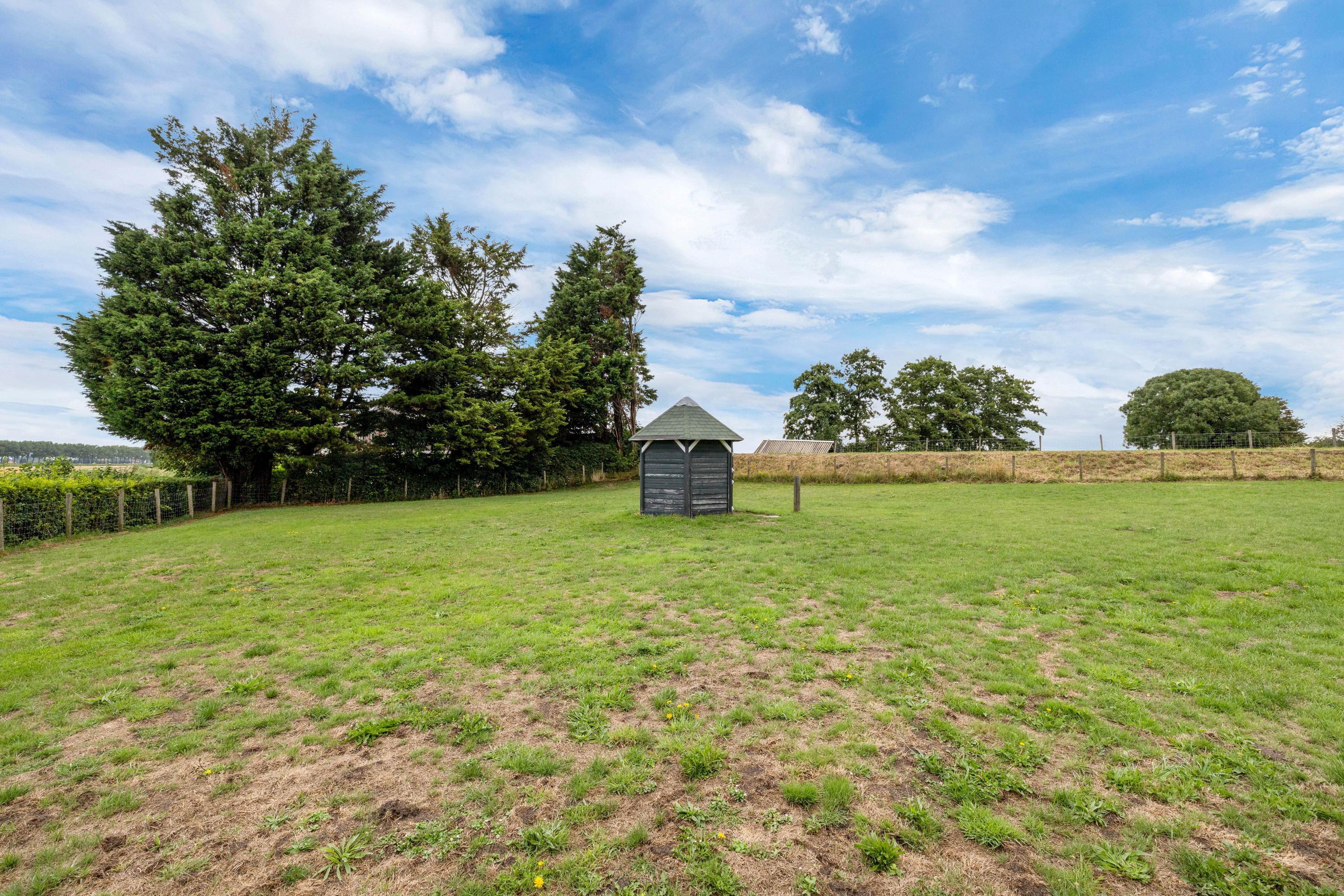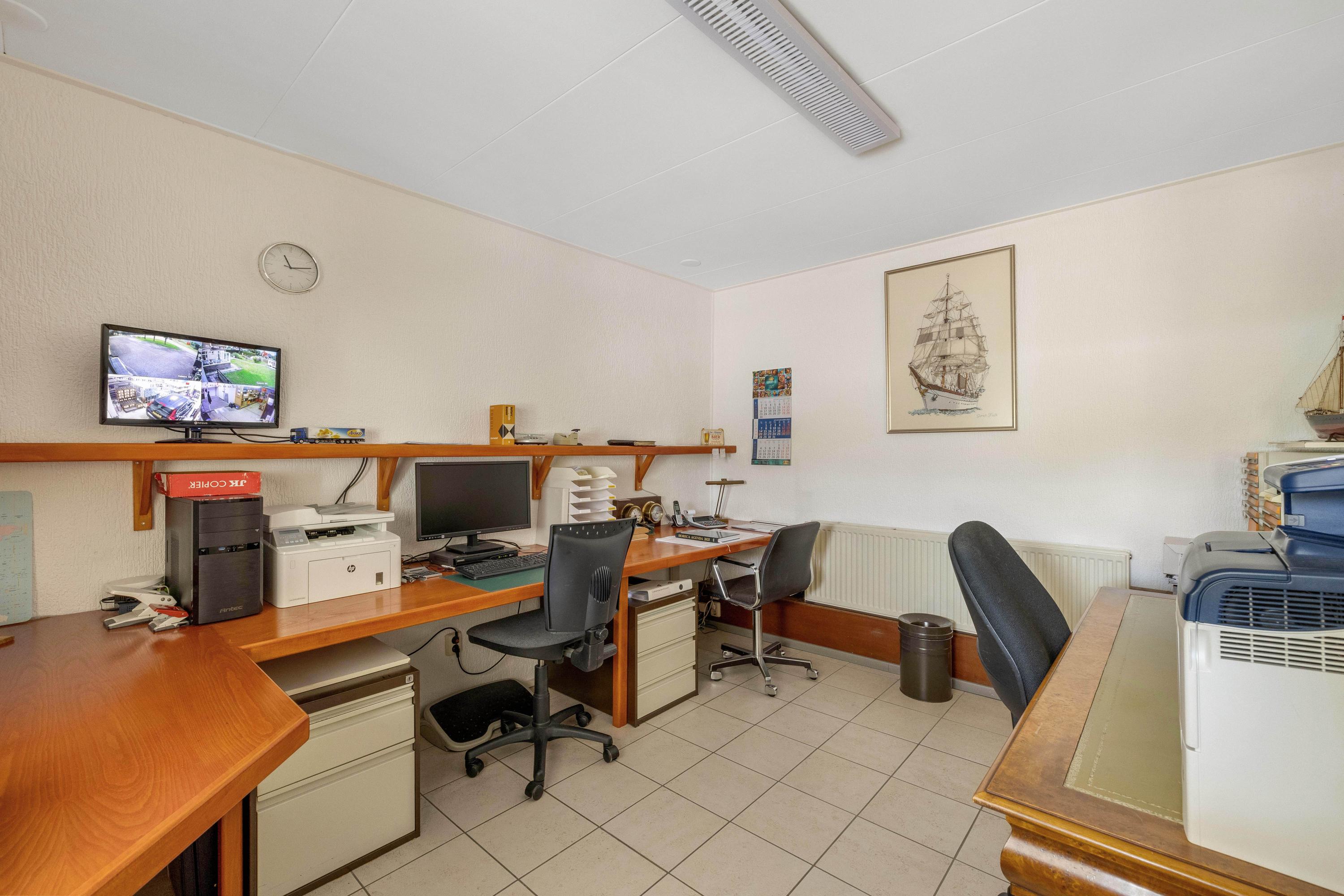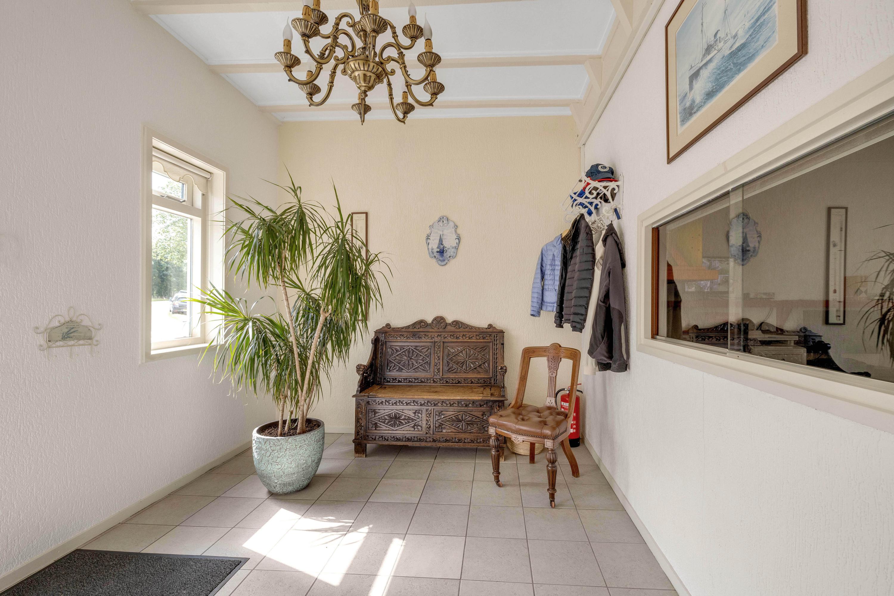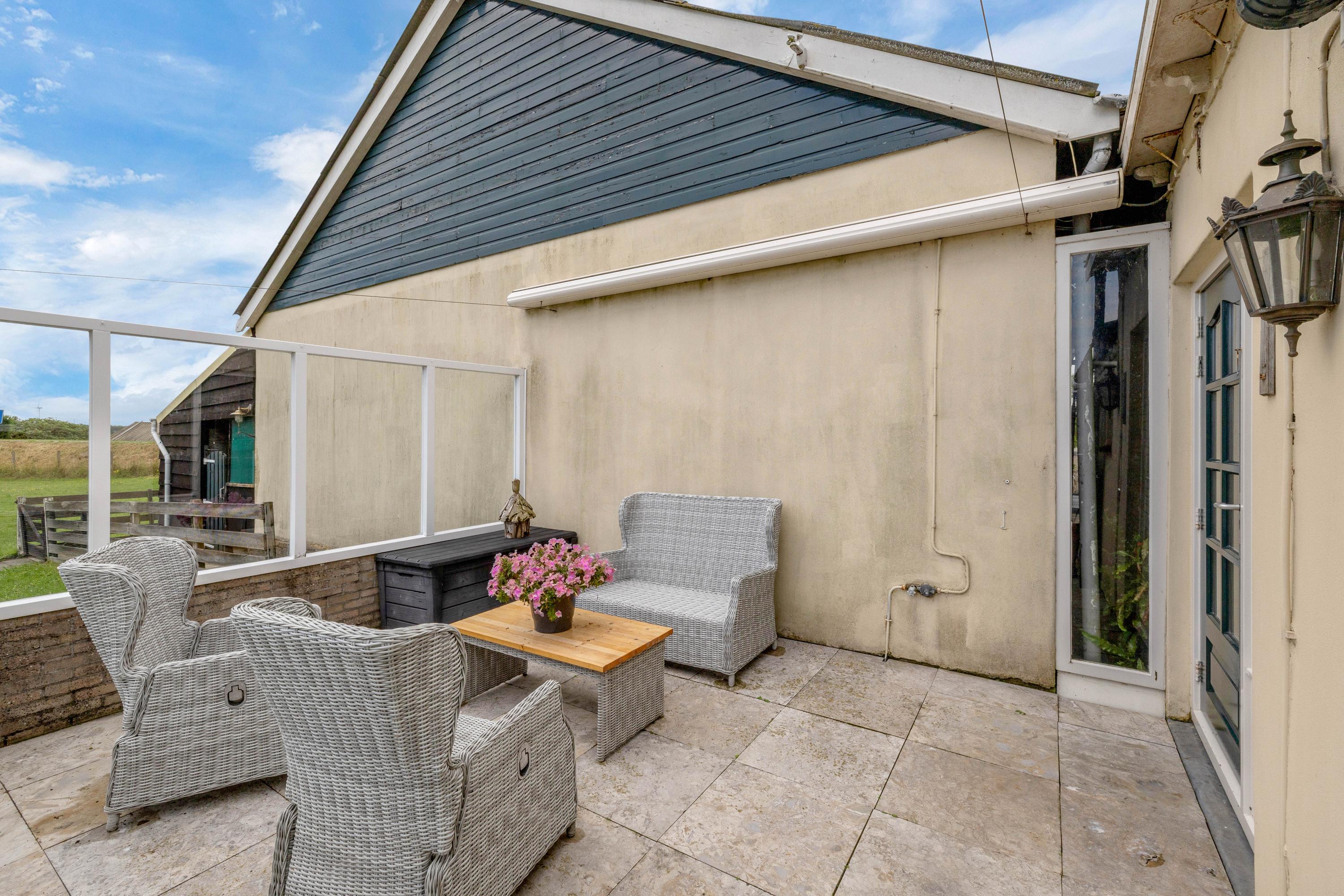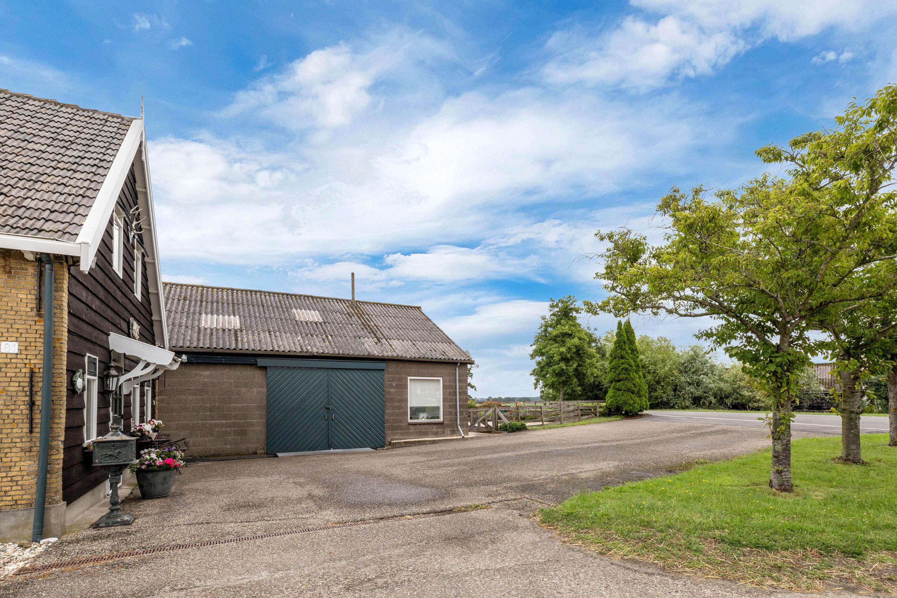 Een van de grootste pluspunten is de grote aangebouwde stenen loods met zadeldak, betonvloer en vide. Deze loods is verdeeld in meerdere ruimten. In het magazijn gedeelte van de loods zijn een grote koel- en viescel te vinden. Aan de voorzijde van de loods is er nog een gastenverblijf, verder zijn er stallen en een extra berging aangebouwd. Daarnaast staat er in de tuin een chalet (ca. 24 m²).