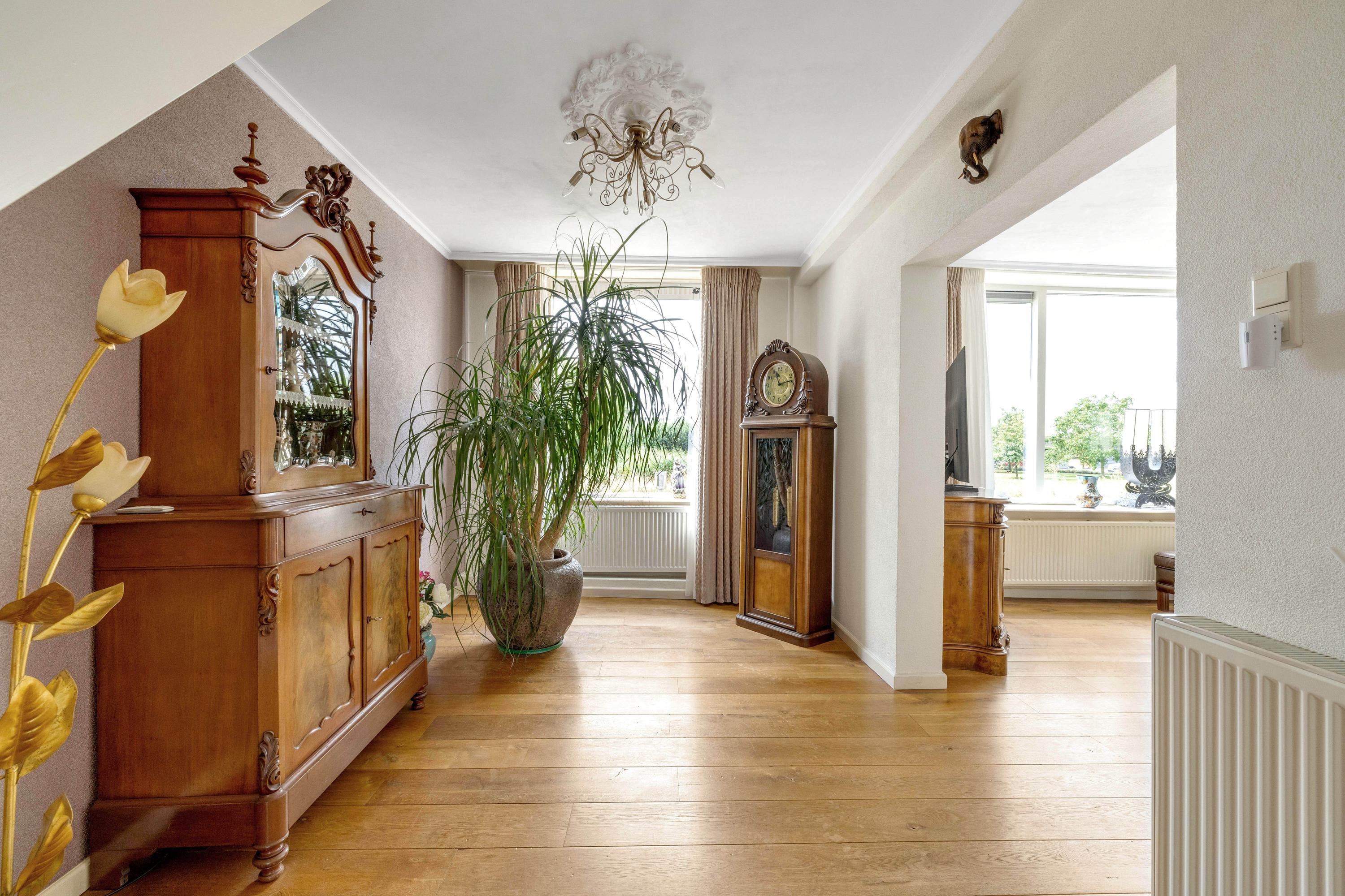 De woning heeft een royale oprit met ruimte voor meerdere auto’s. De tuin is ruim en ingericht met groene gazonnen en zonnige terrassen, ideaal om volop van het buitenleven te genieten.