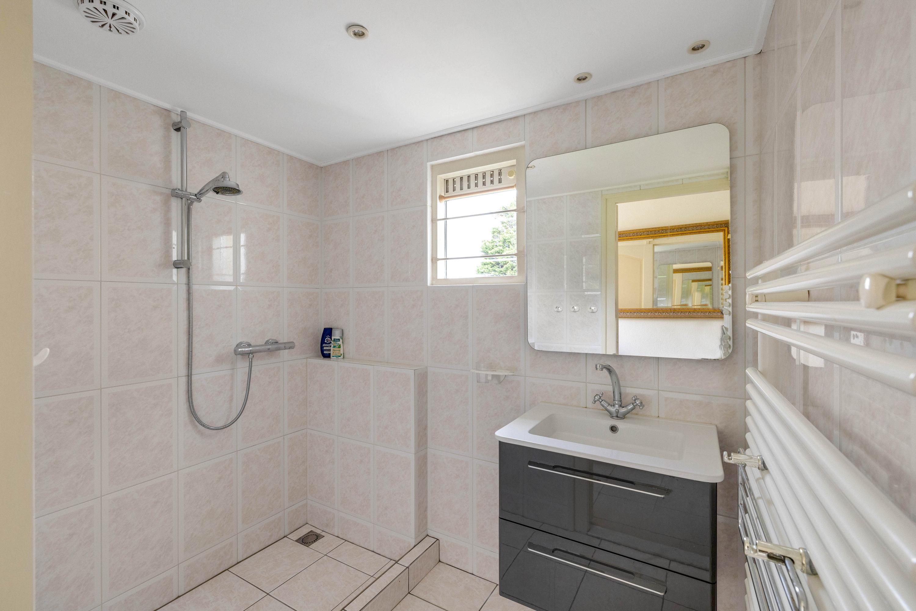 De woonkamer is een lichte, sfeervolle ruimte met grote doorgang vanaf de hal. De badkamer beschikt over een douche ruimte, wastafelmeubel, designradiator en heeft een raam met ventilatierooster voor daglicht en natuurlijke ventilatie. Het aparte toilet is grotendeels betegeld. Meerdere ramen op de begane grond zijn voorzien van elektrische rolluiken.