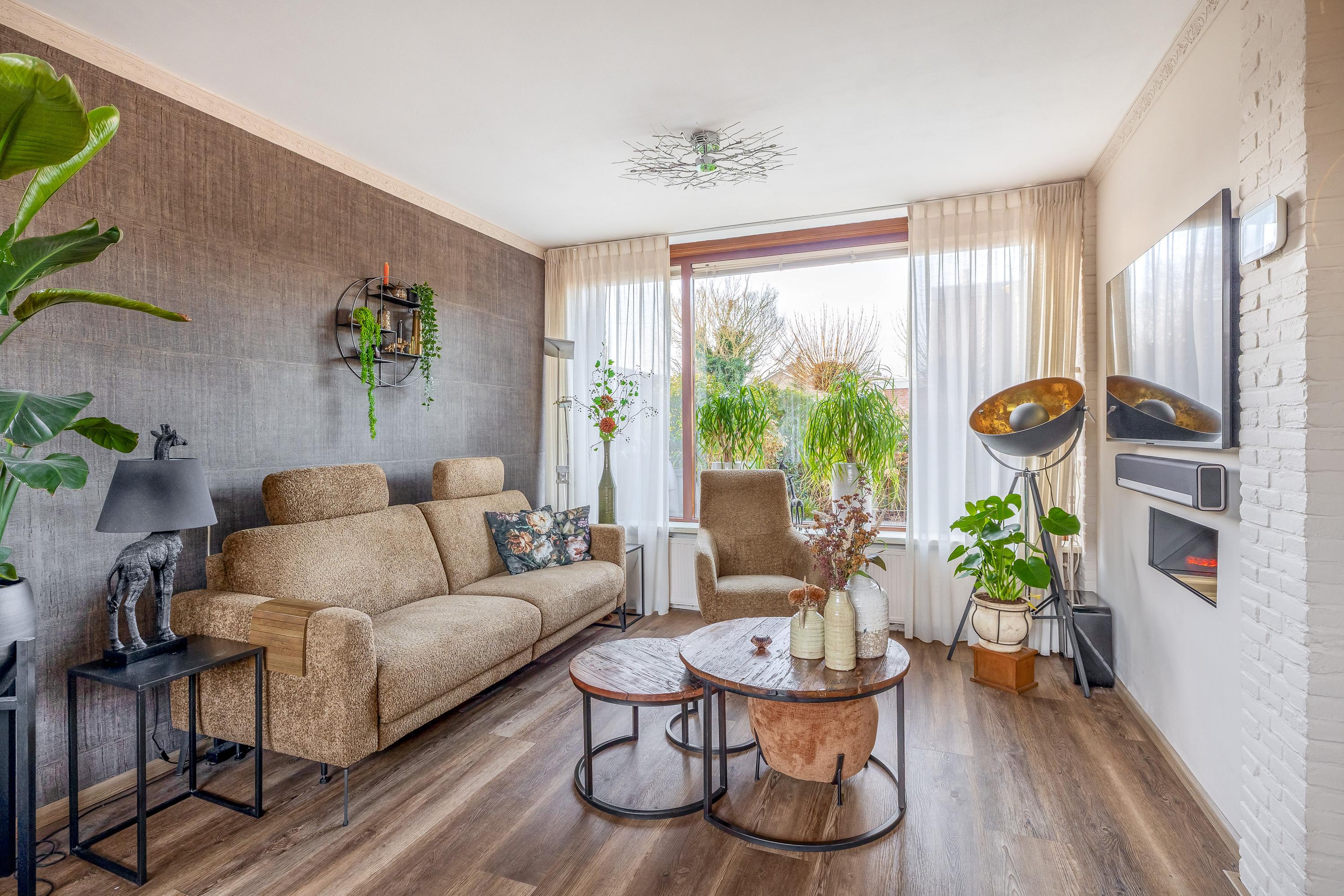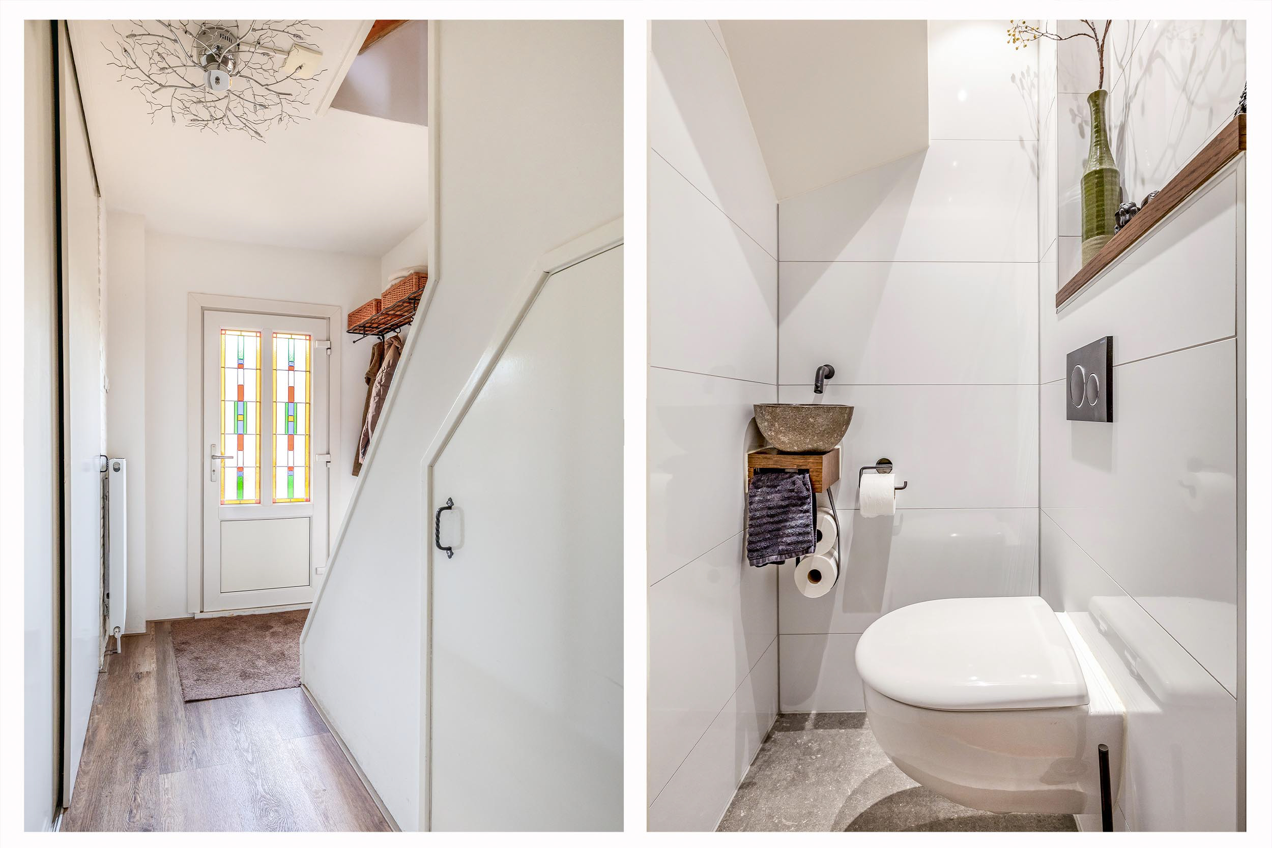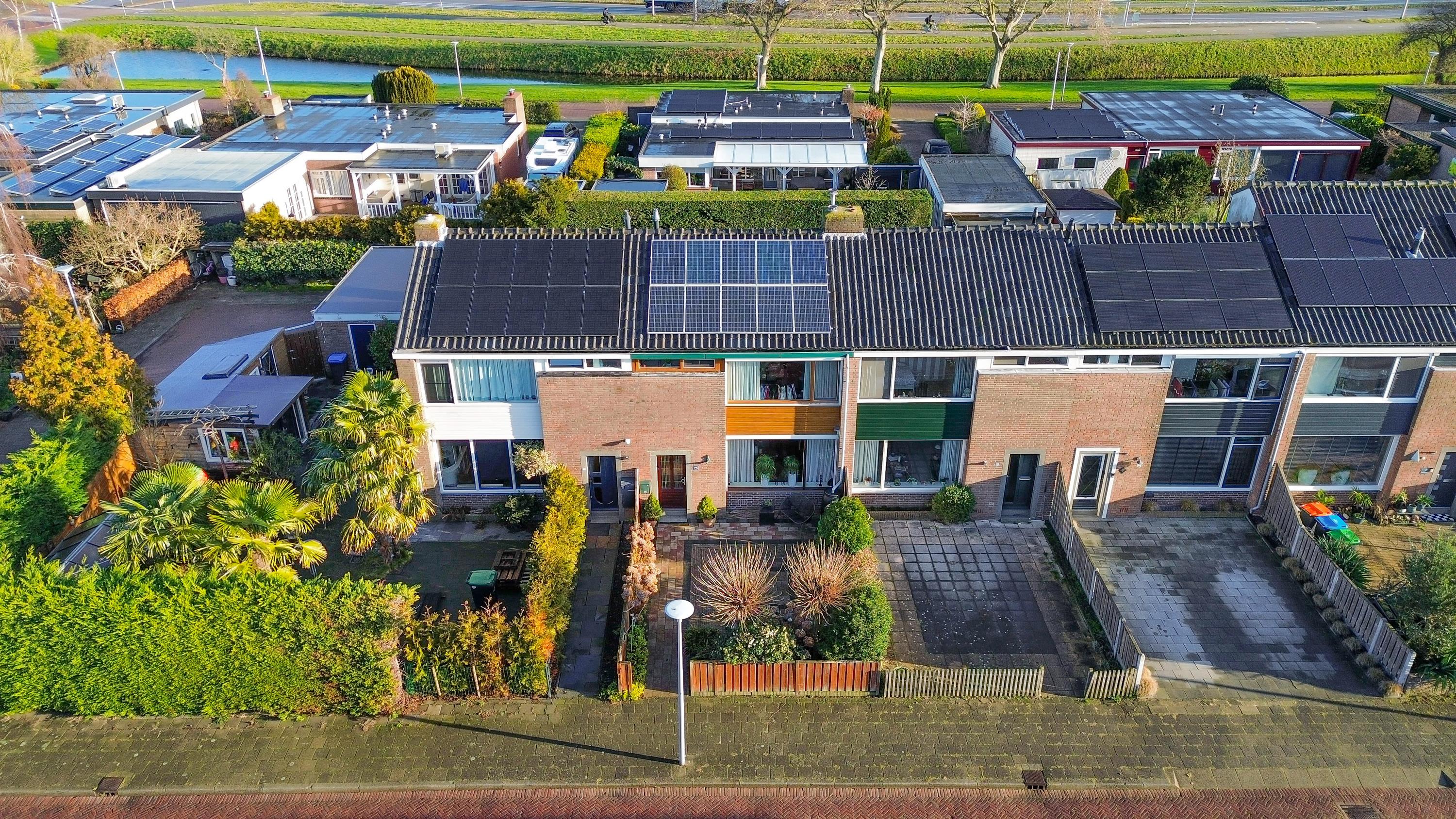 De hal/entree is voozien van een meterkast met schuifdeuren tot aan het plafond, trapopgang naar de 1e verdieping met een trapkast met een slimme thuisbatterij (10 kWh) en een volledig betegeld toilet met hangend closet en waskom. Dan stap je binnen in de lichte doorzonwoonkamer, die sfeervol en comfortabel is ingericht en beschikt over een elektrische sfeerhaard en airconditioning. Aangrenzend, via een toog, de moderne keuken die voorzien is van een inductiekookplaat, schuine wandschouw afzuigkap, Quooker, vaatwasser, oven en koel-vriescombinatie. Vanuit de keuken is er een deur naar de achtertuin. Zowel de voor- als achterzijde van de woning zijn uitgerust met elektrische rolluiken en de begane grond is afgewerkt met een strakke en onderhoudsvriendelijke PVC laminaatvloer.