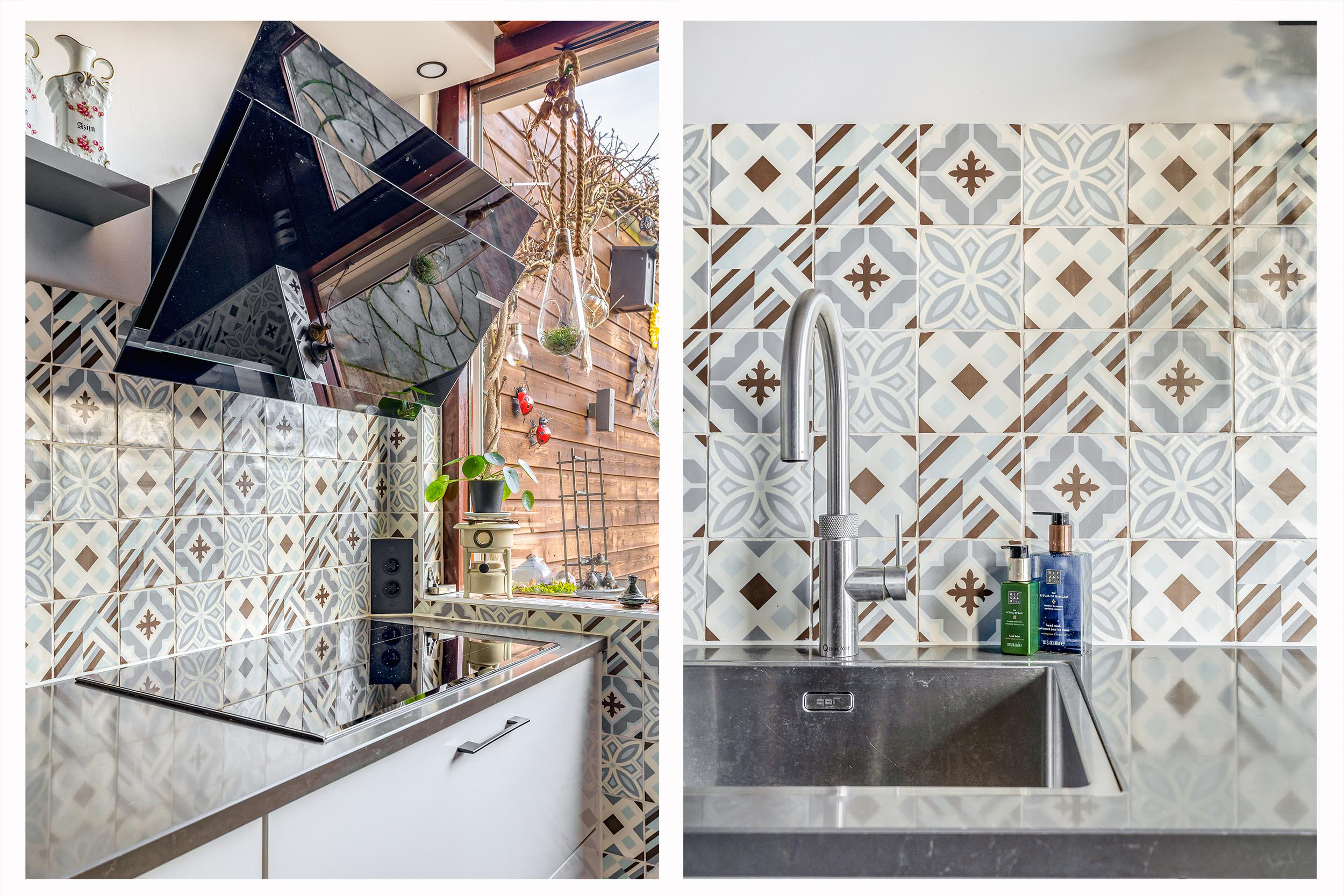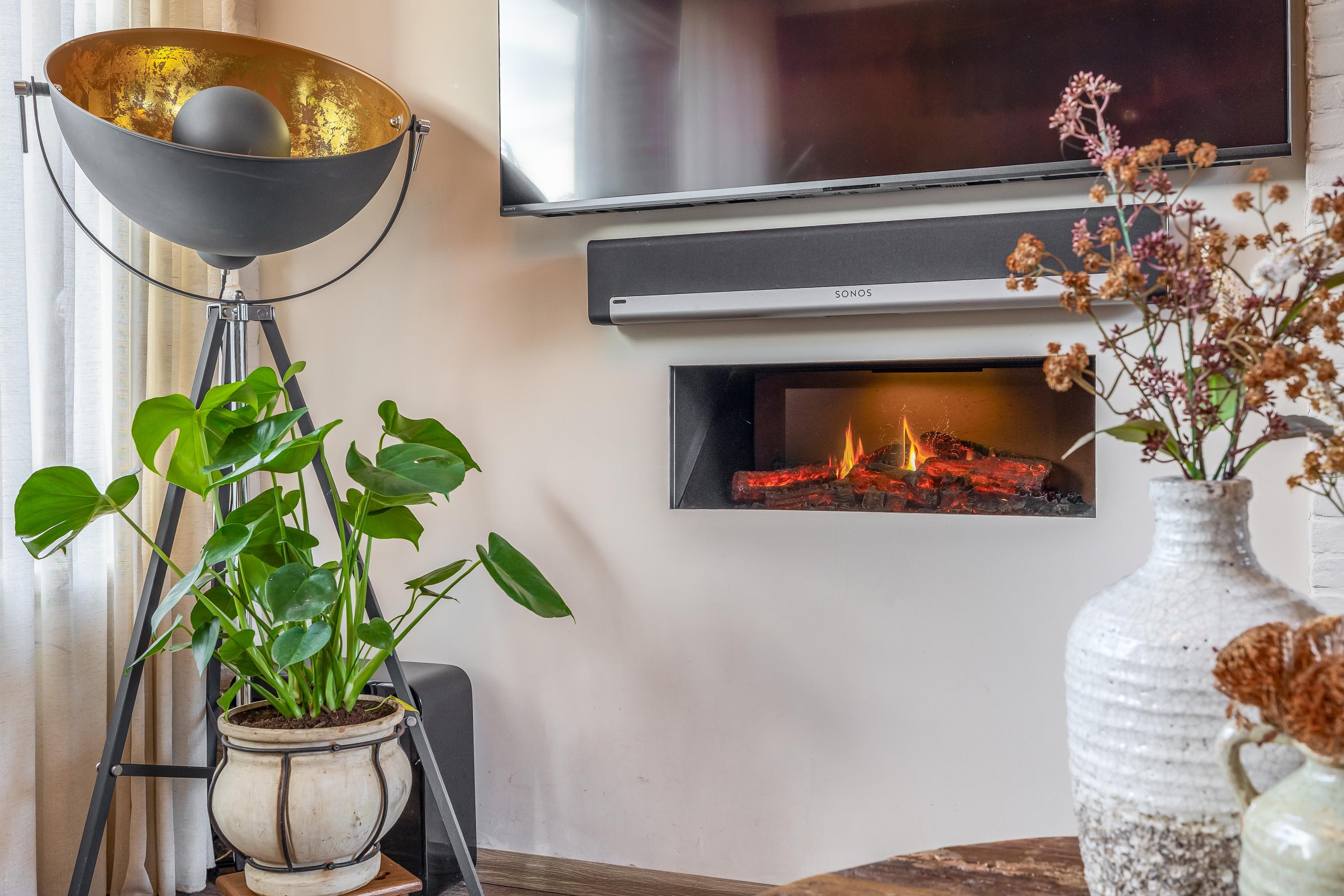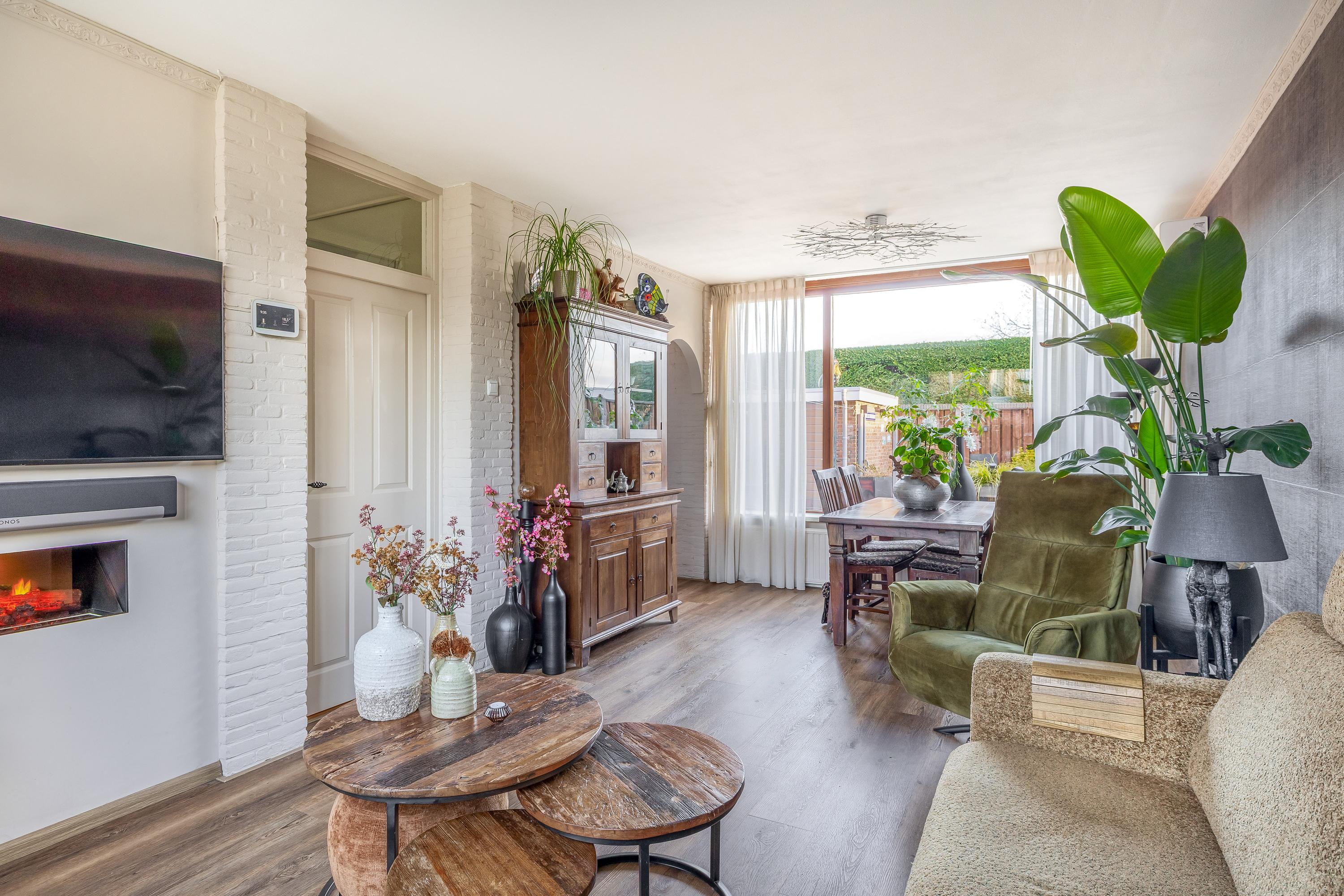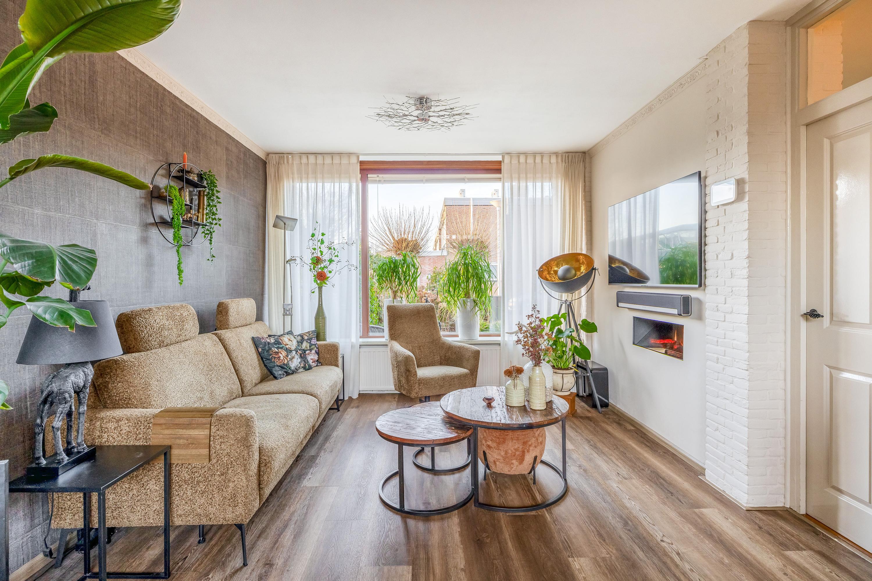 De hal/entree is voozien van een meterkast met schuifdeuren tot aan het plafond, trapopgang naar de 1e verdieping met een trapkast met een slimme thuisbatterij (10 kWh) en een volledig betegeld toilet met hangend closet en waskom. Dan stap je binnen in de lichte doorzonwoonkamer, die sfeervol en comfortabel is ingericht en beschikt over een elektrische sfeerhaard en airconditioning. Aangrenzend, via een toog, de moderne keuken die voorzien is van een inductiekookplaat, schuine wandschouw afzuigkap, Quooker, vaatwasser, oven en koel-vriescombinatie. Vanuit de keuken is er een deur naar de achtertuin. Zowel de voor- als achterzijde van de woning zijn uitgerust met elektrische rolluiken en de begane grond is afgewerkt met een strakke en onderhoudsvriendelijke PVC laminaatvloer.