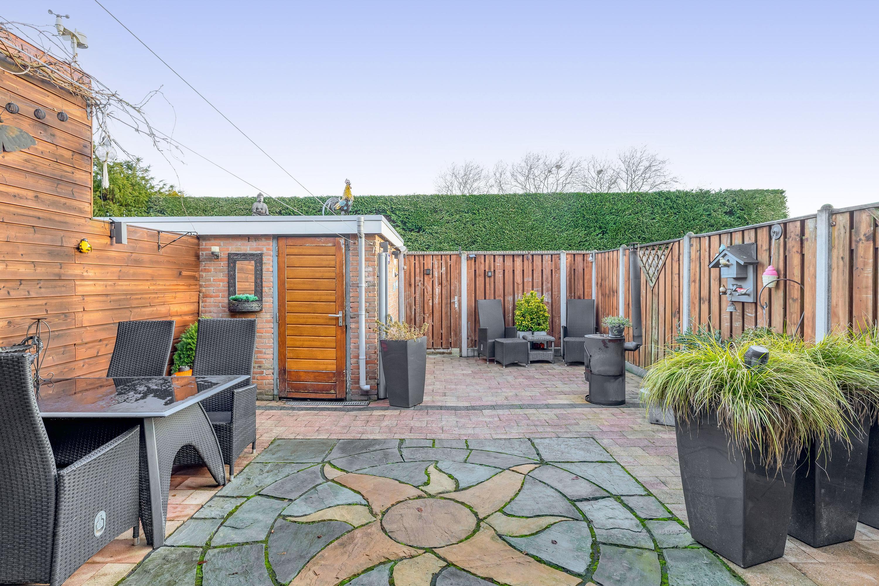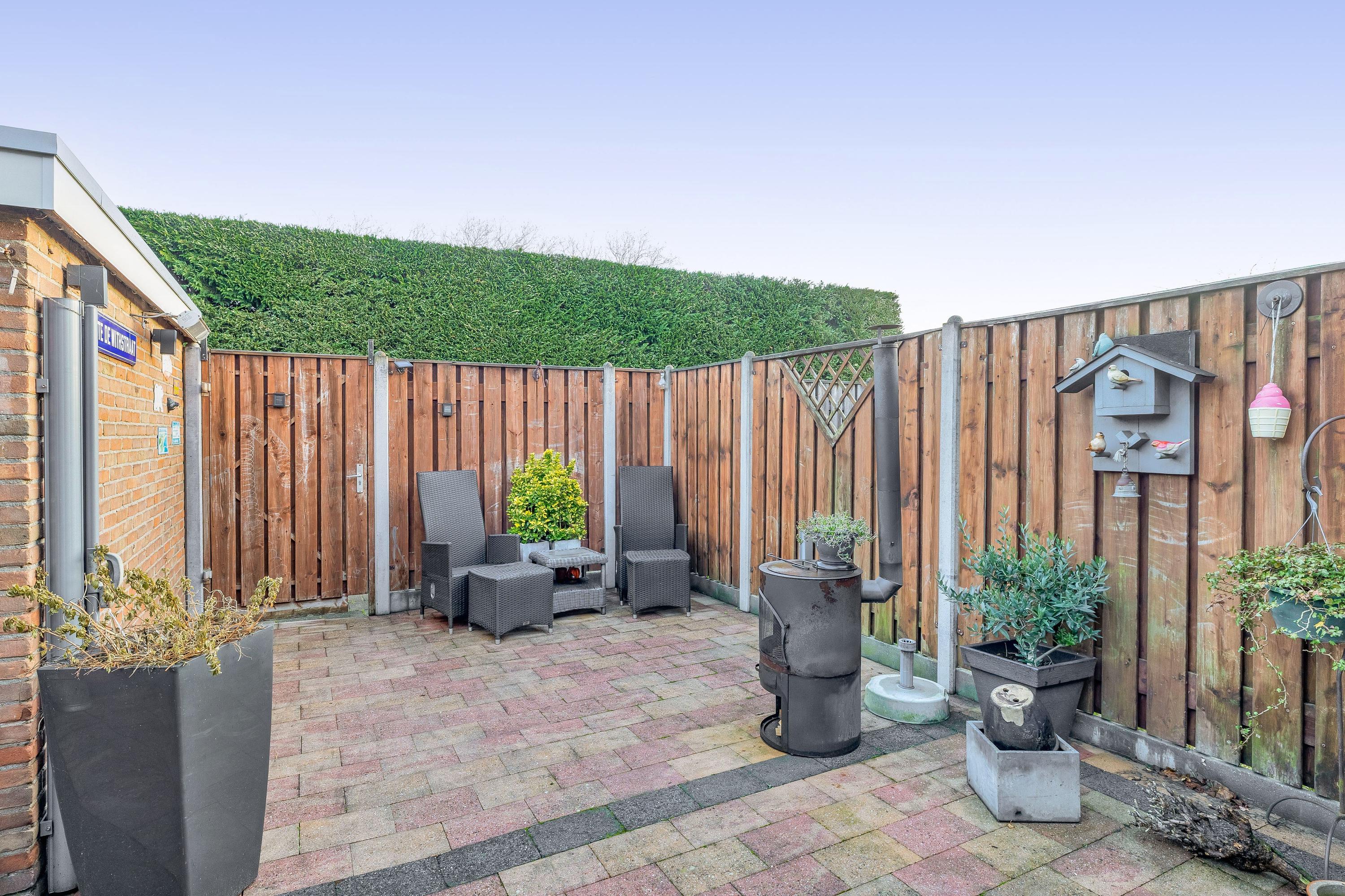 Riante voortuin op het zuidwesten, omheind met houten schuttingen en voorzien van buitenkraan en grotendeels sietbestrating. De achtertuin is onderhoudsvriendelijk. De tuin is geheel voorzien van sierbestratng en houten schuttingen met betonpalen. Verder is er sfeerverlichting, een terrasverwarmer, een buitenkraan, een achterom en een stenen berging (dak van 2025) voorzien van elektra voor het stallen van je fiets aanwezig.