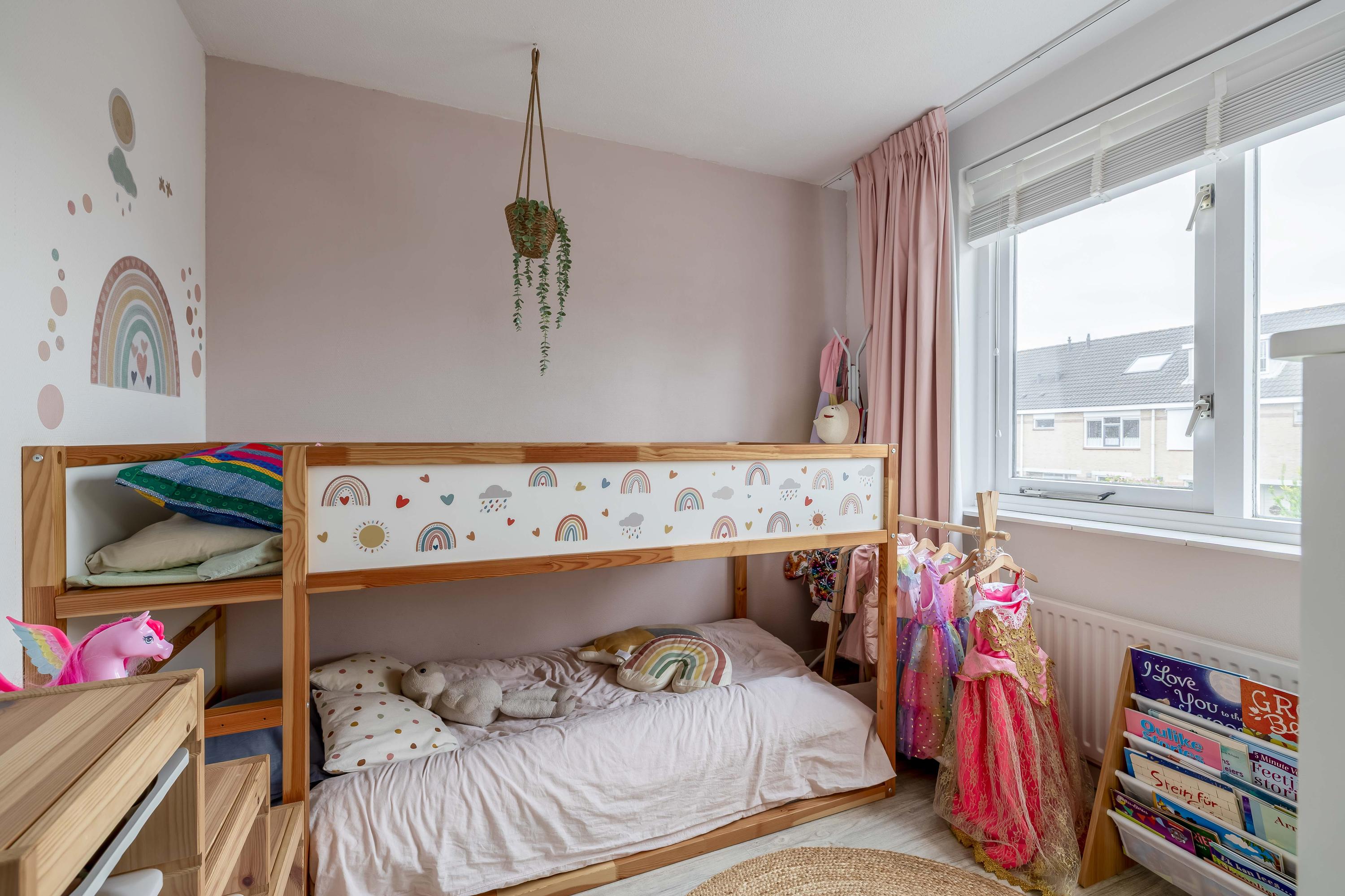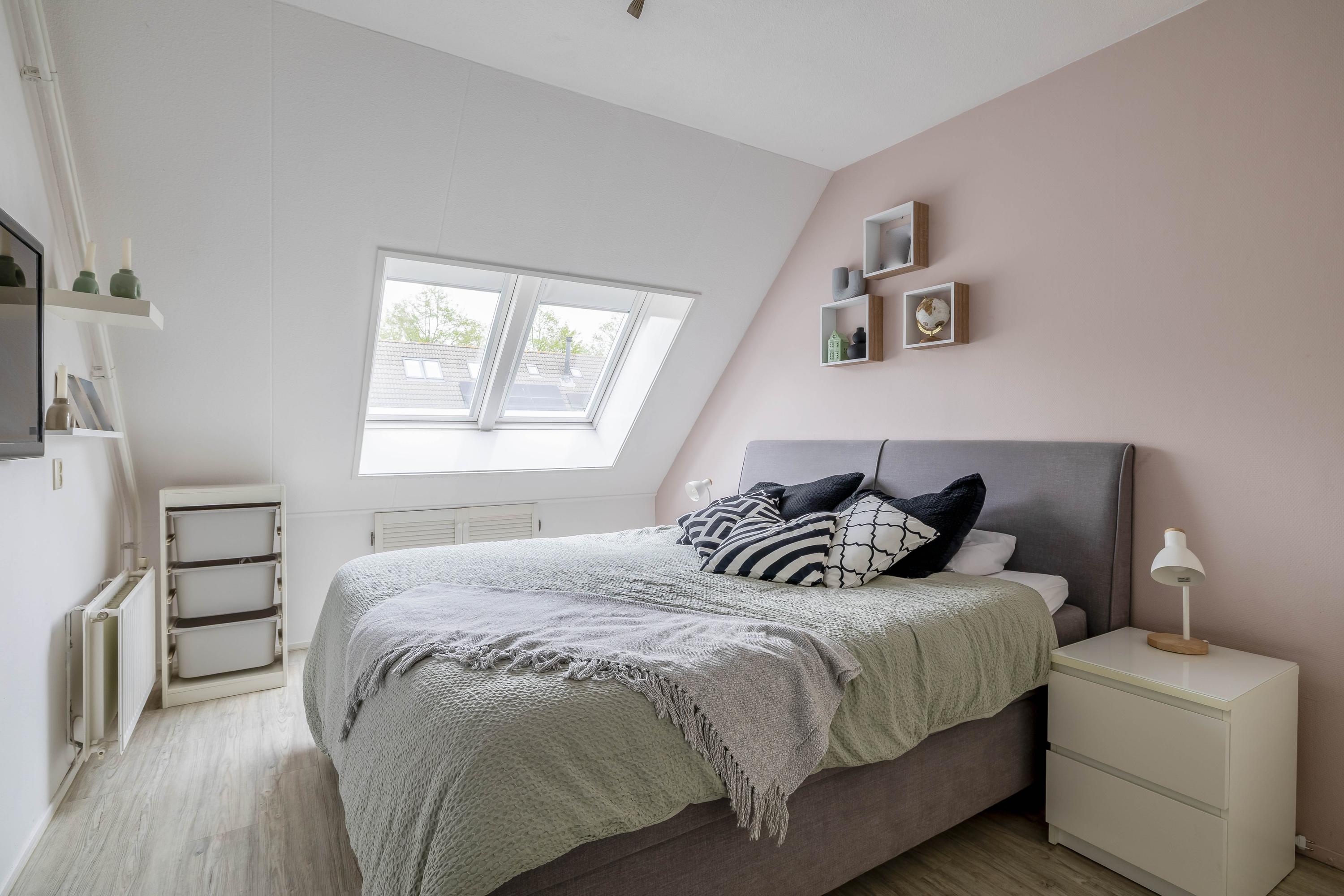 Aankomend op de overloop vind je hier naast de open trap naar de 2e verdieping, toegang tot de 3 slaapkamers en de badkamer. Aan de achterzijde van de woning bevindt zich de hoofdslaapkamer en slaapkamer 2, beide voorzien van dakramen. De 3e slaapkamer ligt aan de voorzijde van de woning. De badkamer is uitgerust met een ligbad met douchegelegenheid, wastafelmeubel met spiegelkast, radiator en er is een toilet aanwezig. Het aanwezig raam zorgt voor natuurlijk licht en ventilatie. De gehele verdieping is netjes afgewerkt met een laminaatvloer.