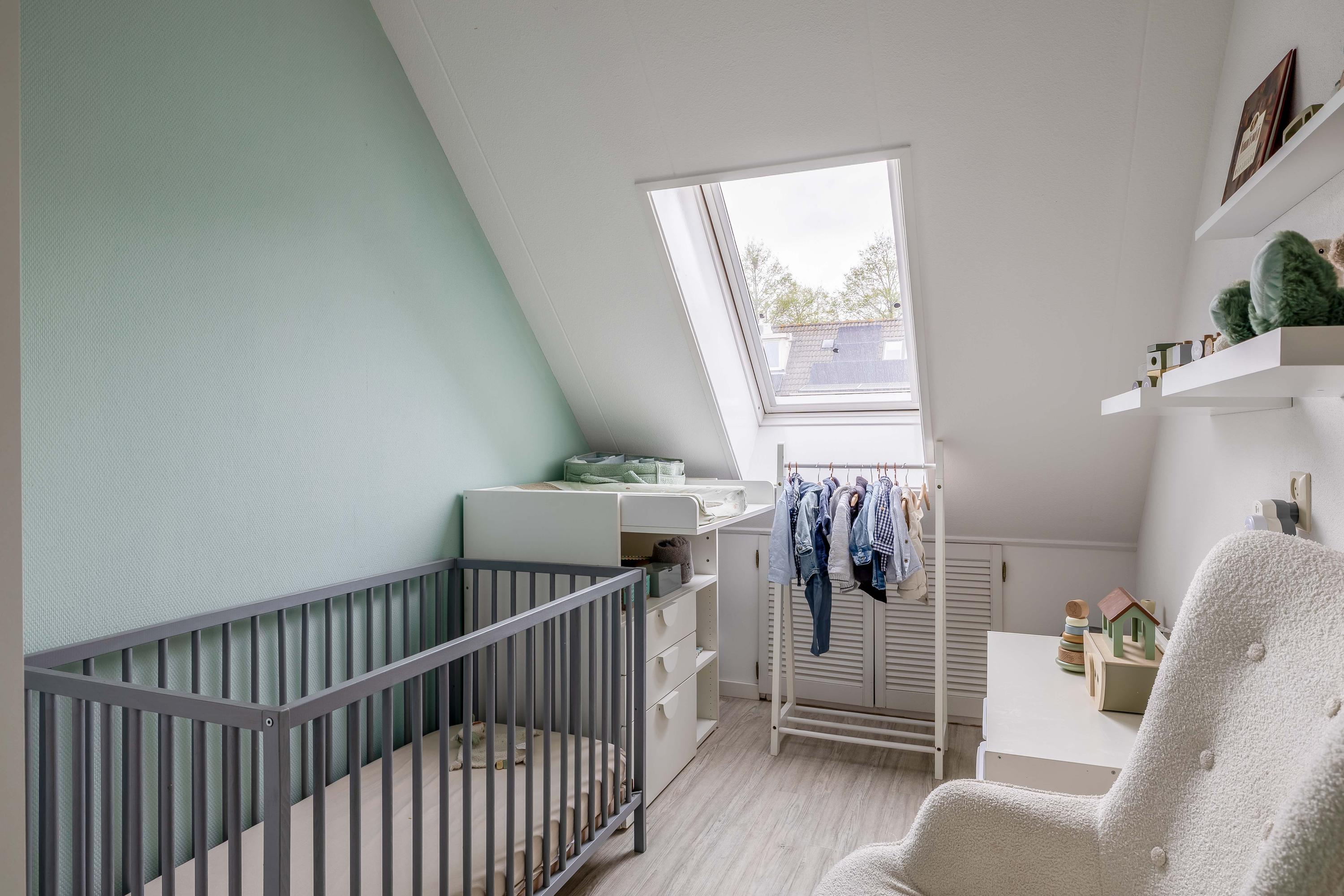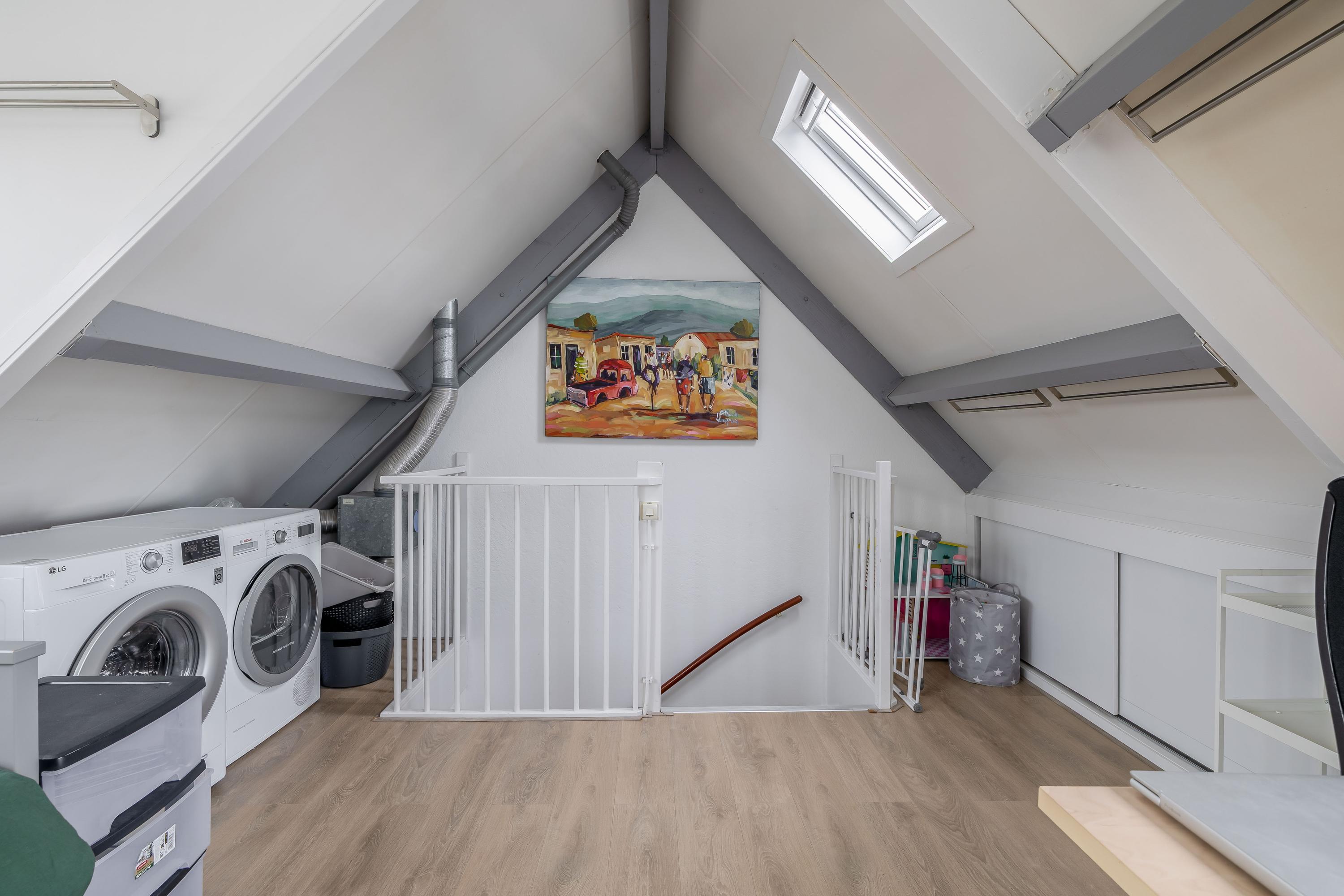 De 2e verdieping bestaat uit een ruime hobby/werk/slaapkamer met 3 dakramen en een dakkapel. De ruimte is verder voorzien van nette knieschotbergingen, de wasmachine aansluiting, de mechanische ventilatie eenheid en een vaste schuifdeurenkast met daarachter de opstelling van de cv-ketel (Vaillant 2013).