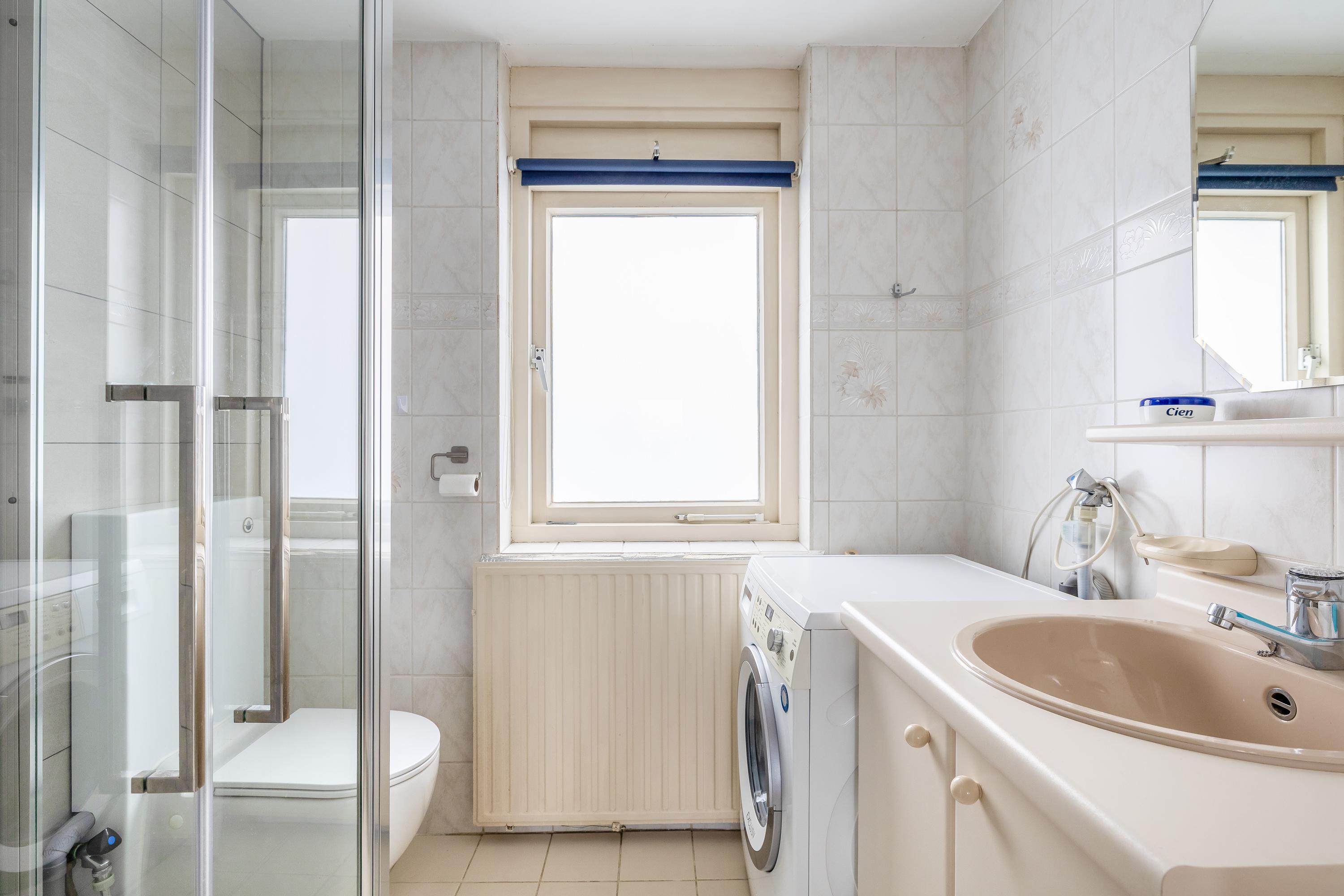 De overloop biedt toegang tot 3 slaapkamers en de trap naar de 2e verdieping. Twee slaapkamers zijn voorzien van tapijt en één slaapkamer van laminaat. Alle kamers beschikken over vaste kasten en bovendien is de hoofdslaapkamer uitgerust met een elektrisch rolluik. De badkamer is voorzien van een sanibroyeur toilet, douche ruimte (drempelloos), wastafel en aansluiting voor de wasmachine. Het aanwezige raam zorgt voor natuurlijk licht en ventilatie in deze ruimte.