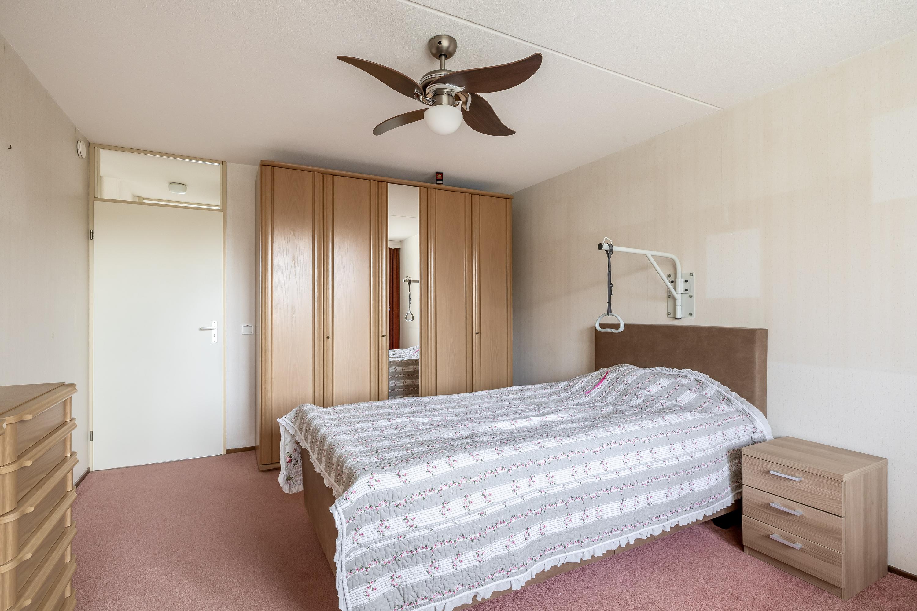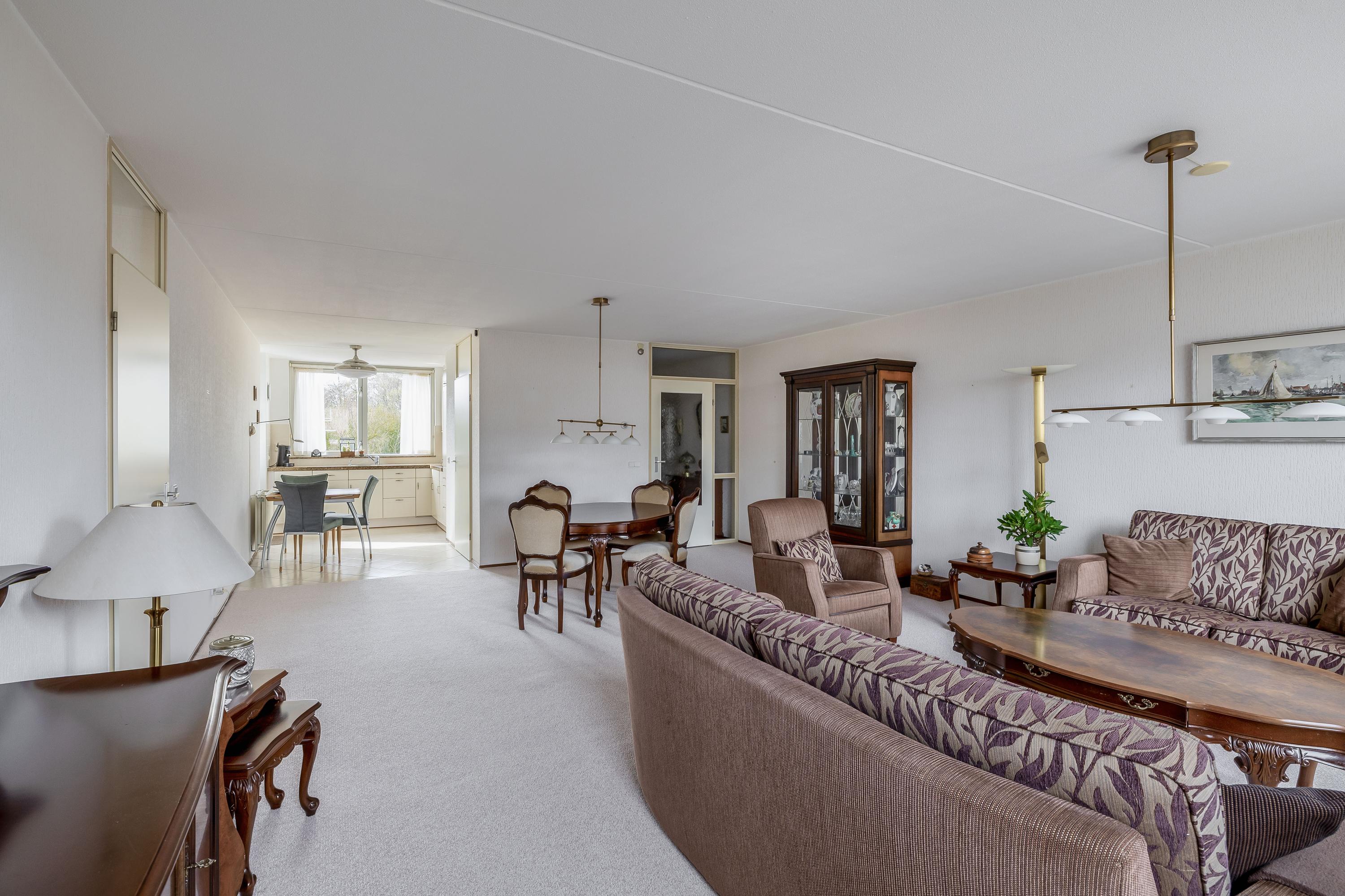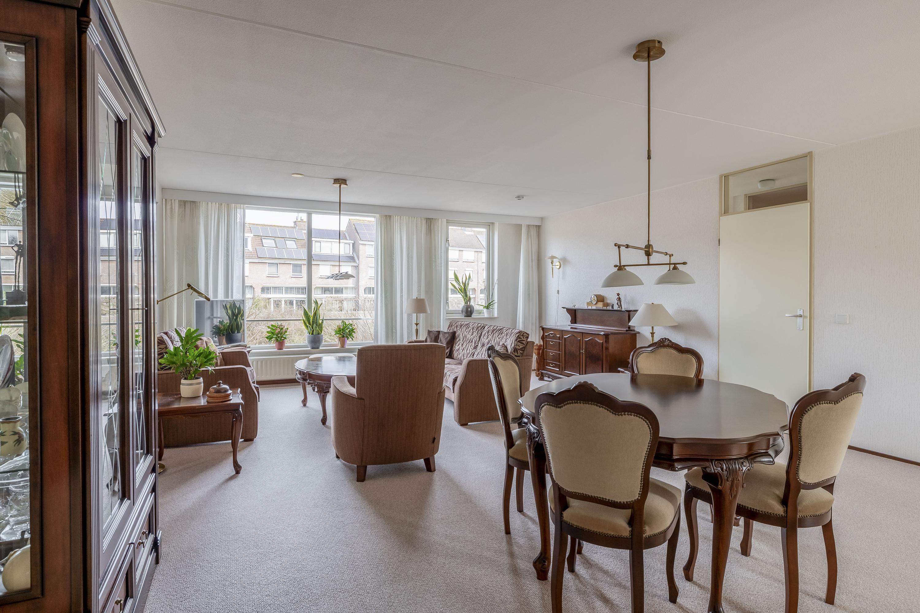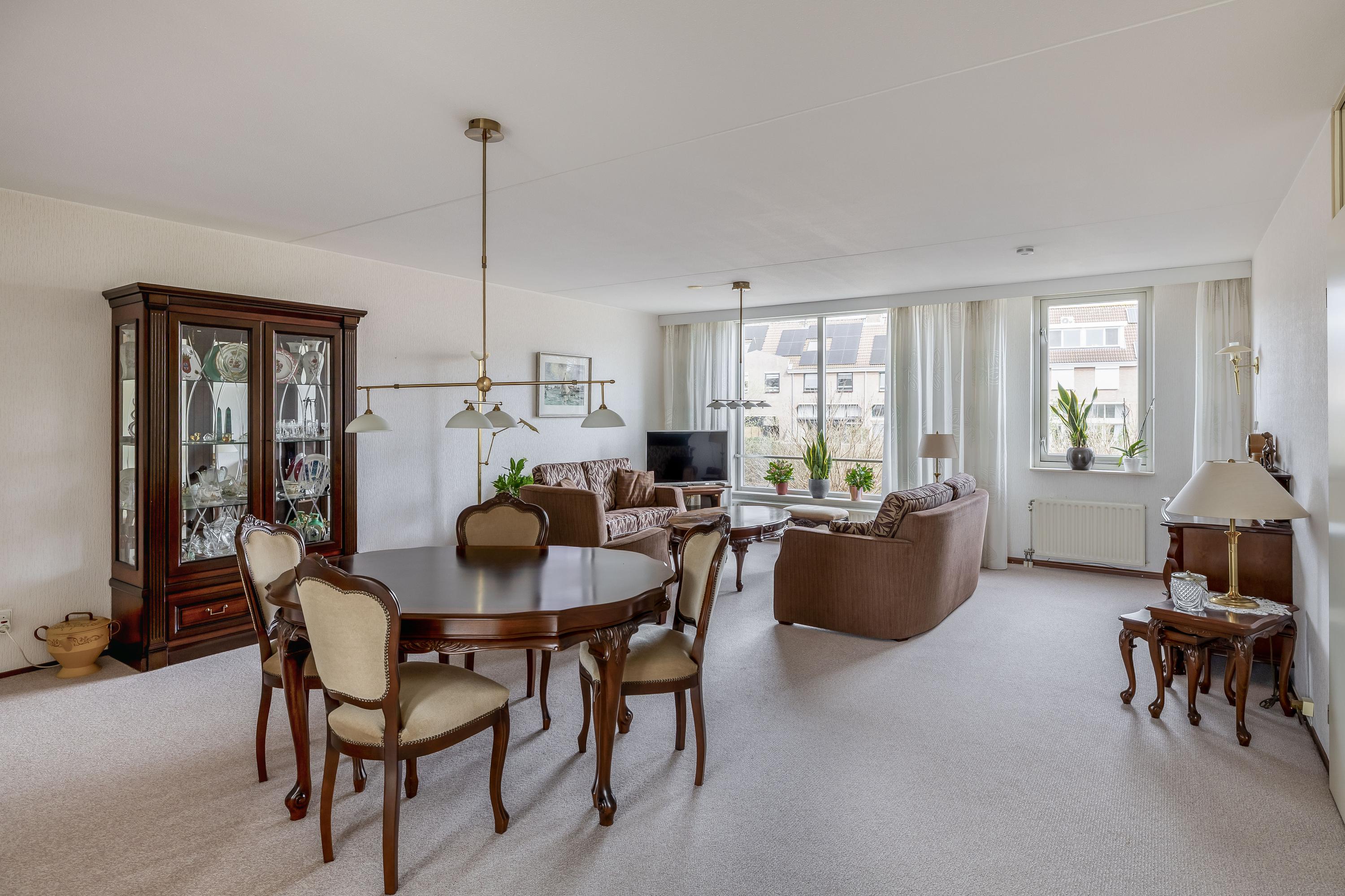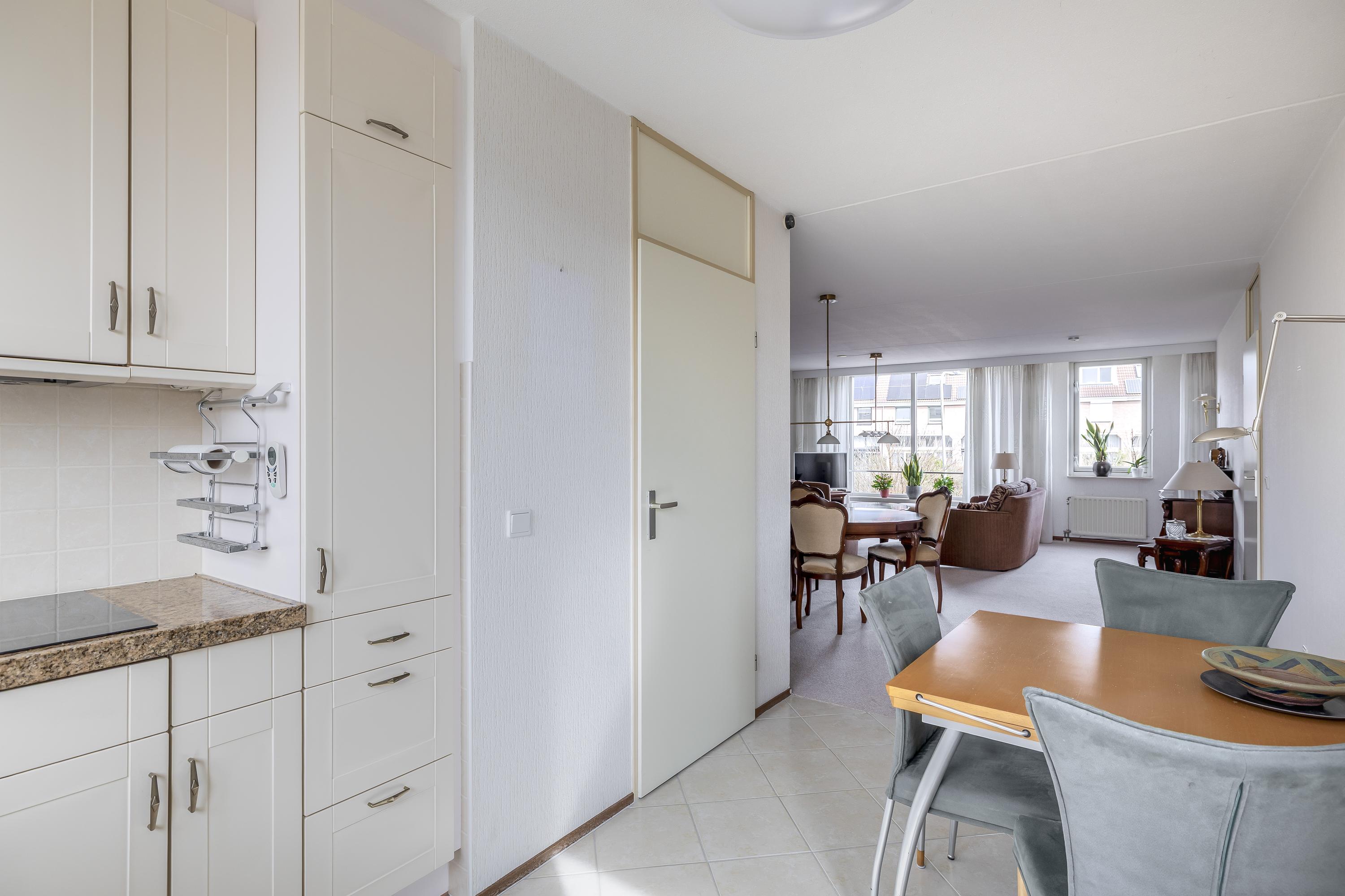 Je komt binnen via de entree met toegang tot het volledig betegelde toilet, de meterkast en de woonkamer. De ruime en lichte woonkamer staat in open verbinding met de keuken, voorzien van inductiekookplaat, afzuigkap, koelkast, vaatwasser en een deur naar het balkon. De keuken heeft een plavuizenvloer, terwijl het gehele appartement verder is afgewerkt met vloerbedekking. Aansluitend is een berging met aansluitingen voor wasmachine en droger, de opstelling van de cv-combiketel (Remeha, 2019) en mechanische ventilatie. Via een tussenhal bereik je de twee slaapkamers en de badkamer. De hoofdslaapkamer aan de achterzijde geeft eveneens toegang tot het balkon op het zuidwesten met uitzicht op groen en met voorzien van elektrische zonwering. De tweede slaapkamer ligt aan de voorzijde met uitzicht op de singel. De badkamer is voorzien van een douche, wastafelmeubel, toilet en bidet.