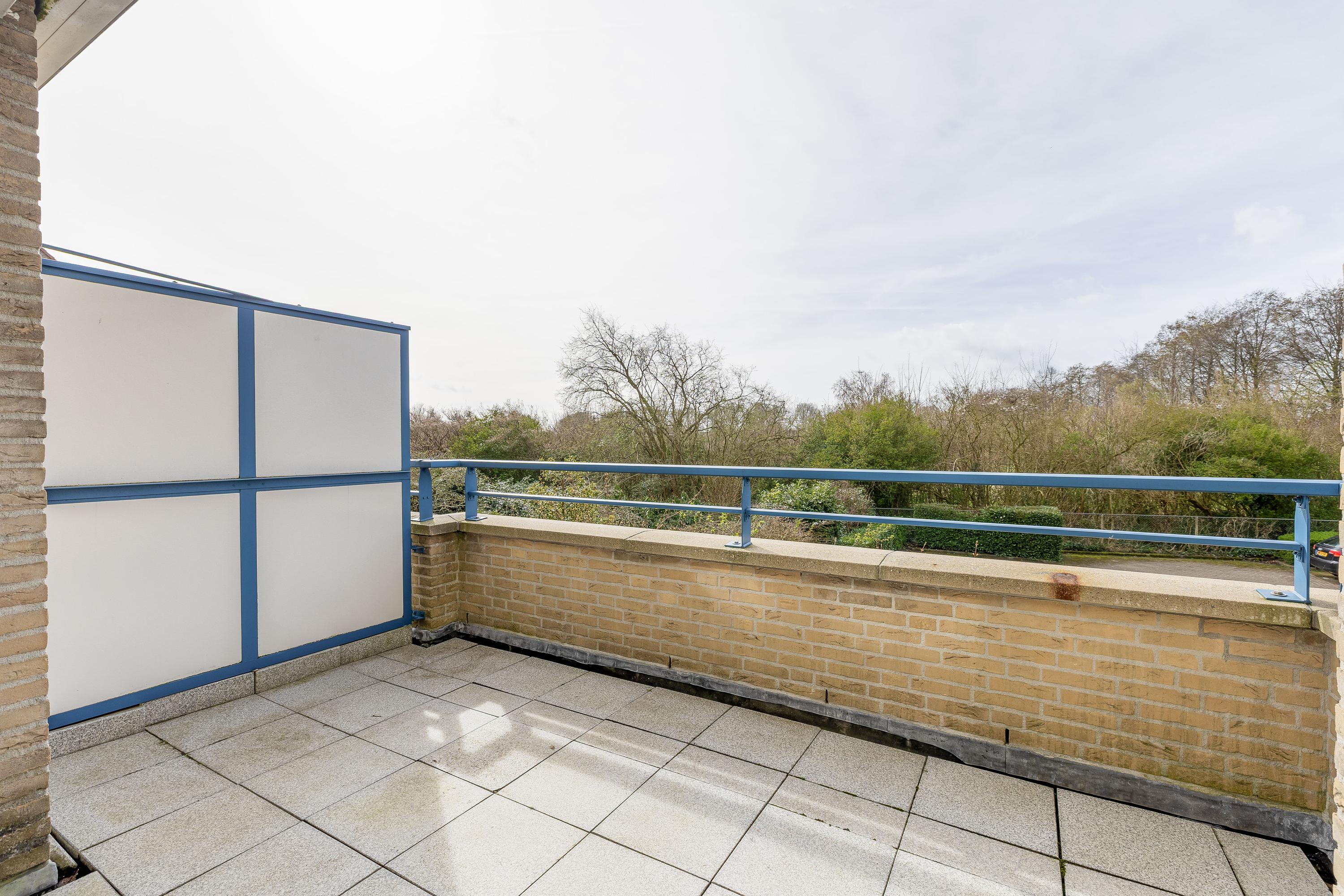 Het dakterras van circa 10 m² is gelegen op het zuidwesten en biedt een prettig en groen uitzicht, waardoor je hier volop kunt genieten van rust en privacy. Dankzij de elektrische zonwering is het dakterras een comfortabele plek om zowel in de middag- als avondzon te zitten en kun je al vroeg in het voorjaar genieten van de zon.