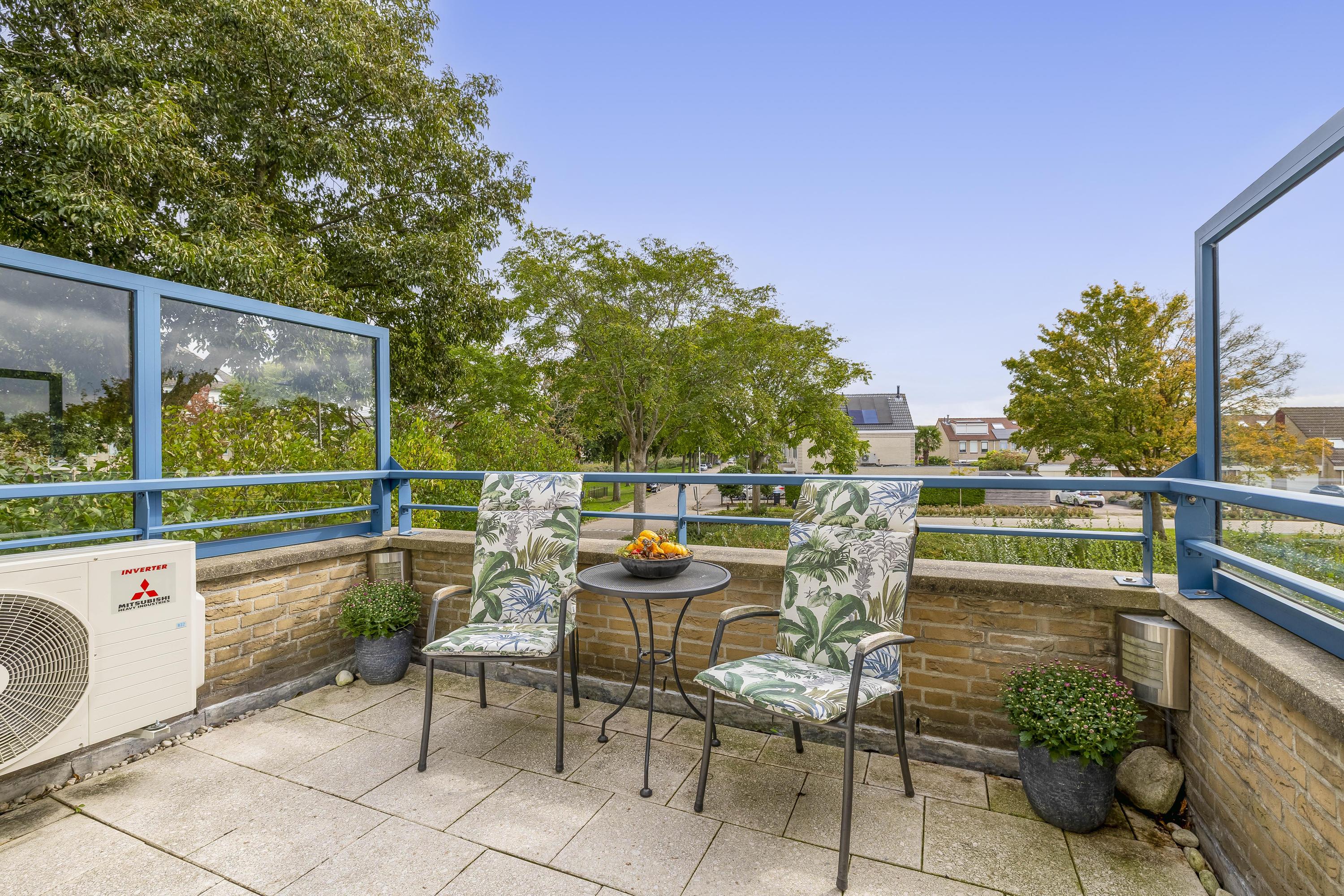 De woning heeft een dakterras van circa 9 m² en is gelegen op het zuidoosten. Over de gehele breedte van de schuifpui is elektrische zonnewering aanwezig en ook is op het dakterras de unit van de airconditioning te vinden. Daarnaast zorgen de aanwezige schermen ervoor dat je hier heerlijk uit de wind kunt zitten, waardoor het een comfortabele plek is om al vroeg in het voorjaar en tot laat in de zomer van het buitenleven te genieten.