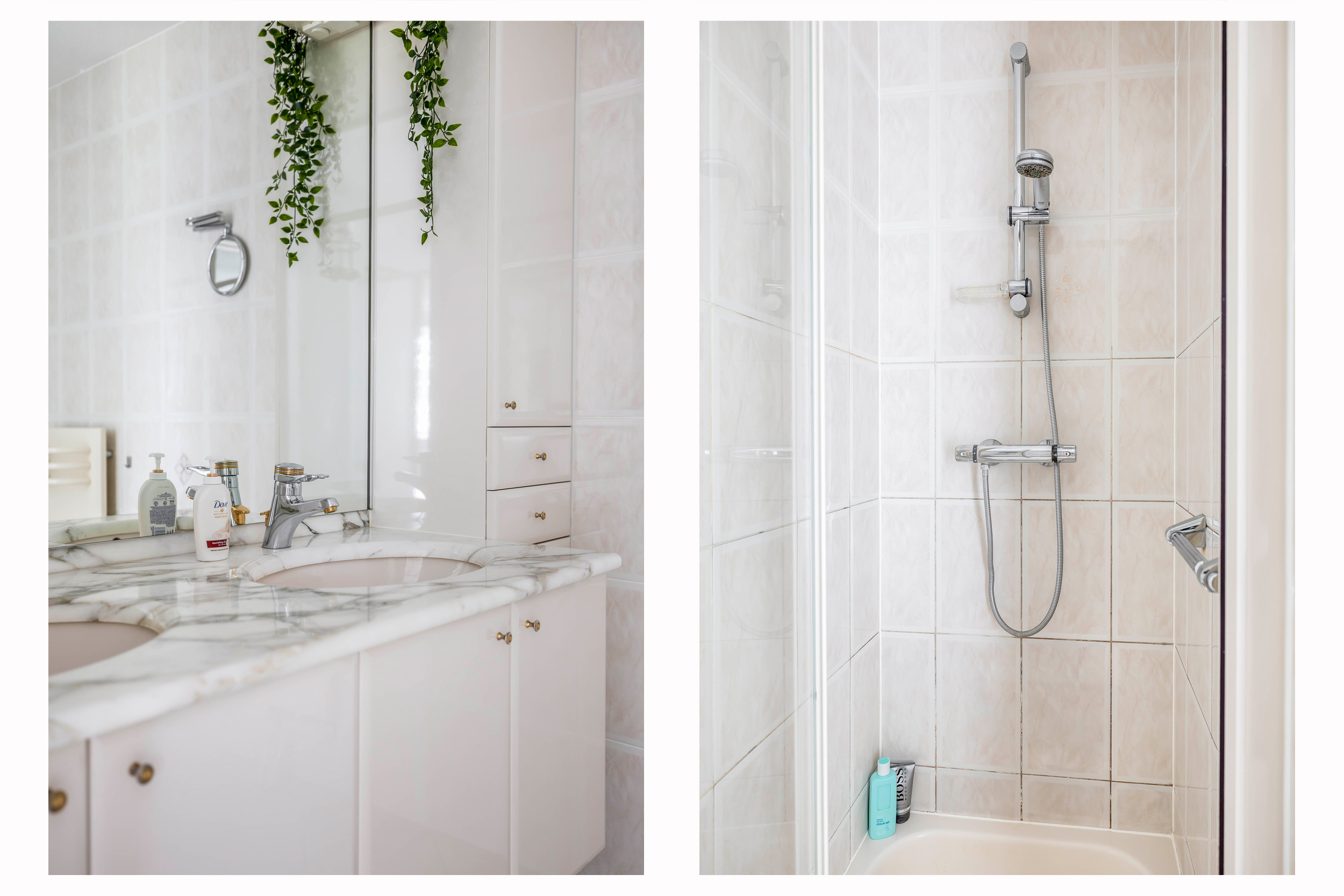 Vanuit de hal heb je toegang tot 2 slaapkamers beide met een schuifdeurenkast. De hoofdslaapkamer is ook voorzien van airconditioning. De badkamer heeft een groot dubbel wastafelmeubel, douchecabine en een designradiator.