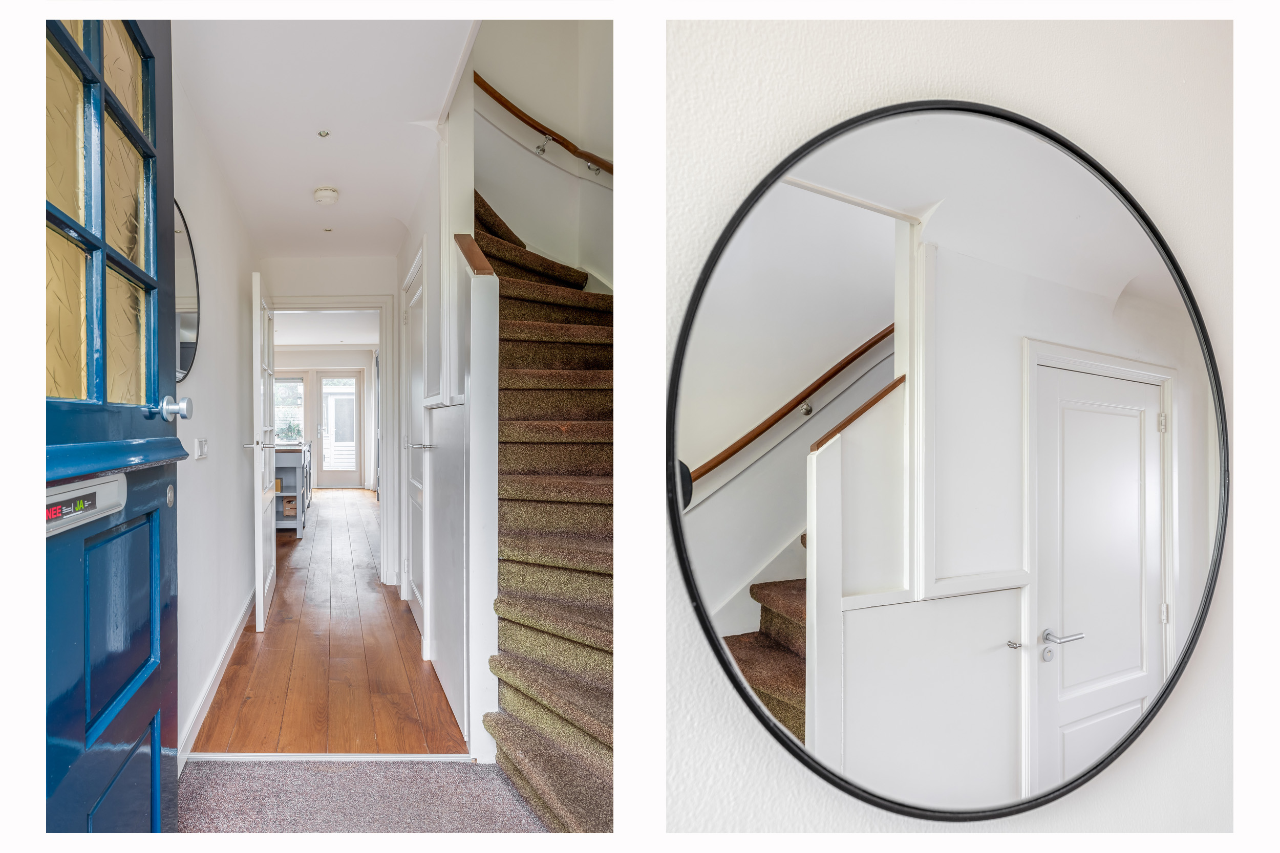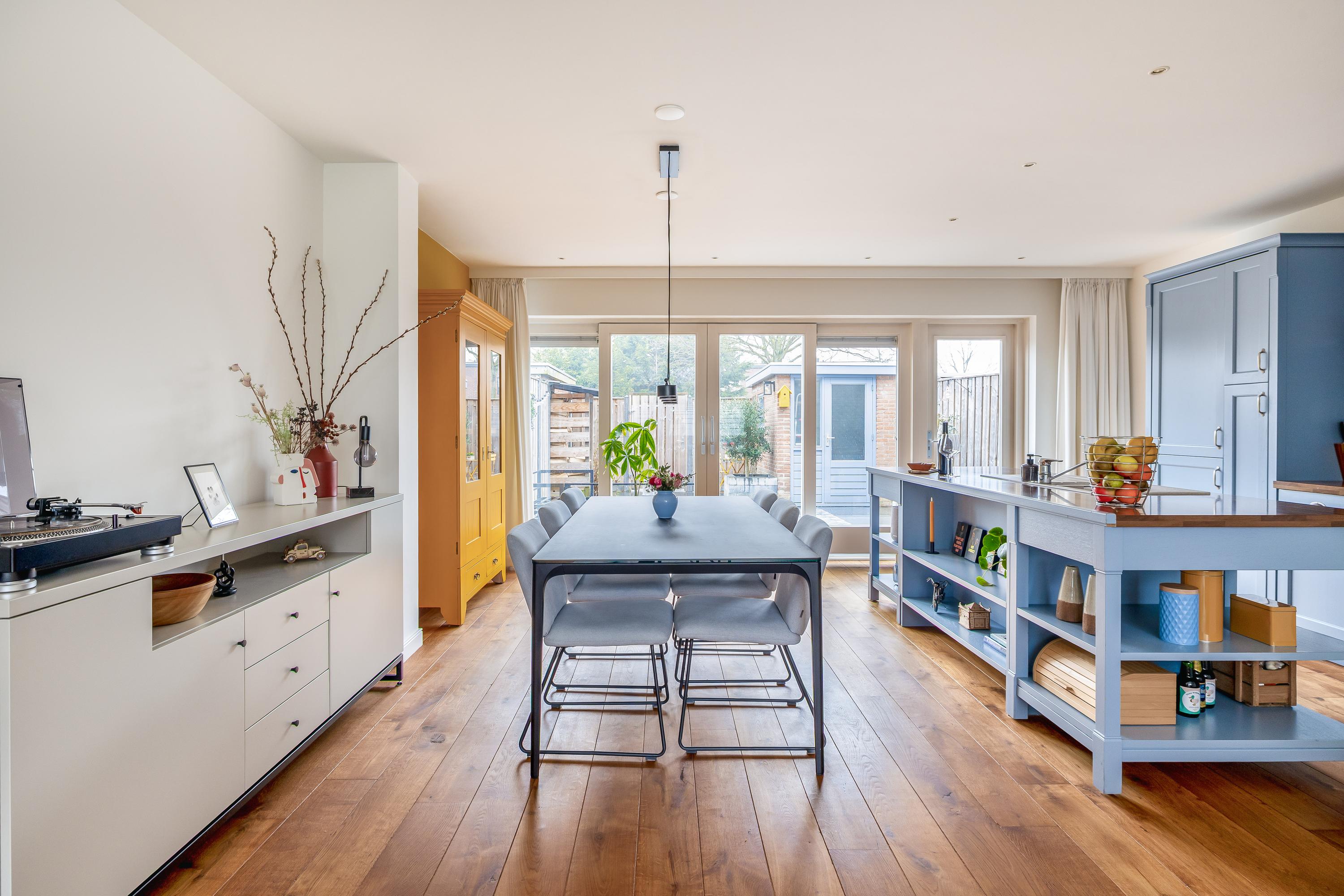 Je komt de woning binnen via de entree met meterkast, trapkast, trapopgang naar de 1e verdieping en een deels betegeld toilet met hangend closet. De hal biedt toegang tot de open keuken, die is voorzien van een 5-pits gasfornuis met oven (2024), afzuigkap, vaatwasser en een koel-vriescombinatie (2021). Daarnaast beschikt de keuken over een praktisch keukeneiland met wasbak en extra werkruimte. Aangrenzend aan de keuken bevindt zich de eethoek, die door middel van een schuifpui in directe verbinding staat met de achtertuin. Dankzij de uitbouw aan de achterzijde is er veel extra leefruimte is gecreëerd. Verder vind je aan de voorzijde de lichte woonkamer, voorzien van een sfeervolle houtkachel, die in combinatie met de houten vloer op de begane grond zorgt voor een warme en gezellige leefruimte.
