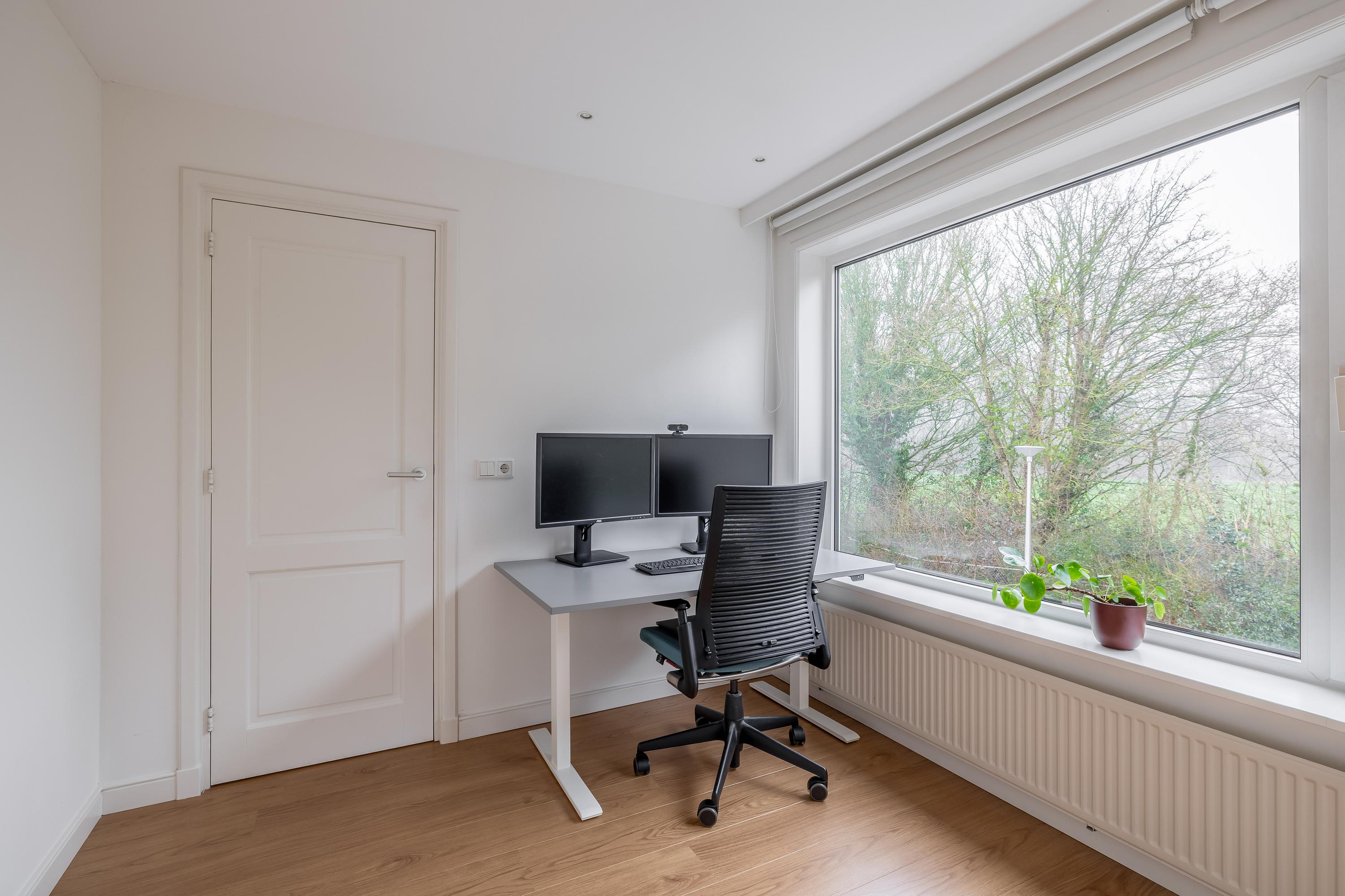 - De woning s grotendeels voorzien van kunststof kozijnen met dubbel glas, de uitbouw is uitgevoerd met houten kozijnen met HR+ glas (m.u.v. voordeur raam).
