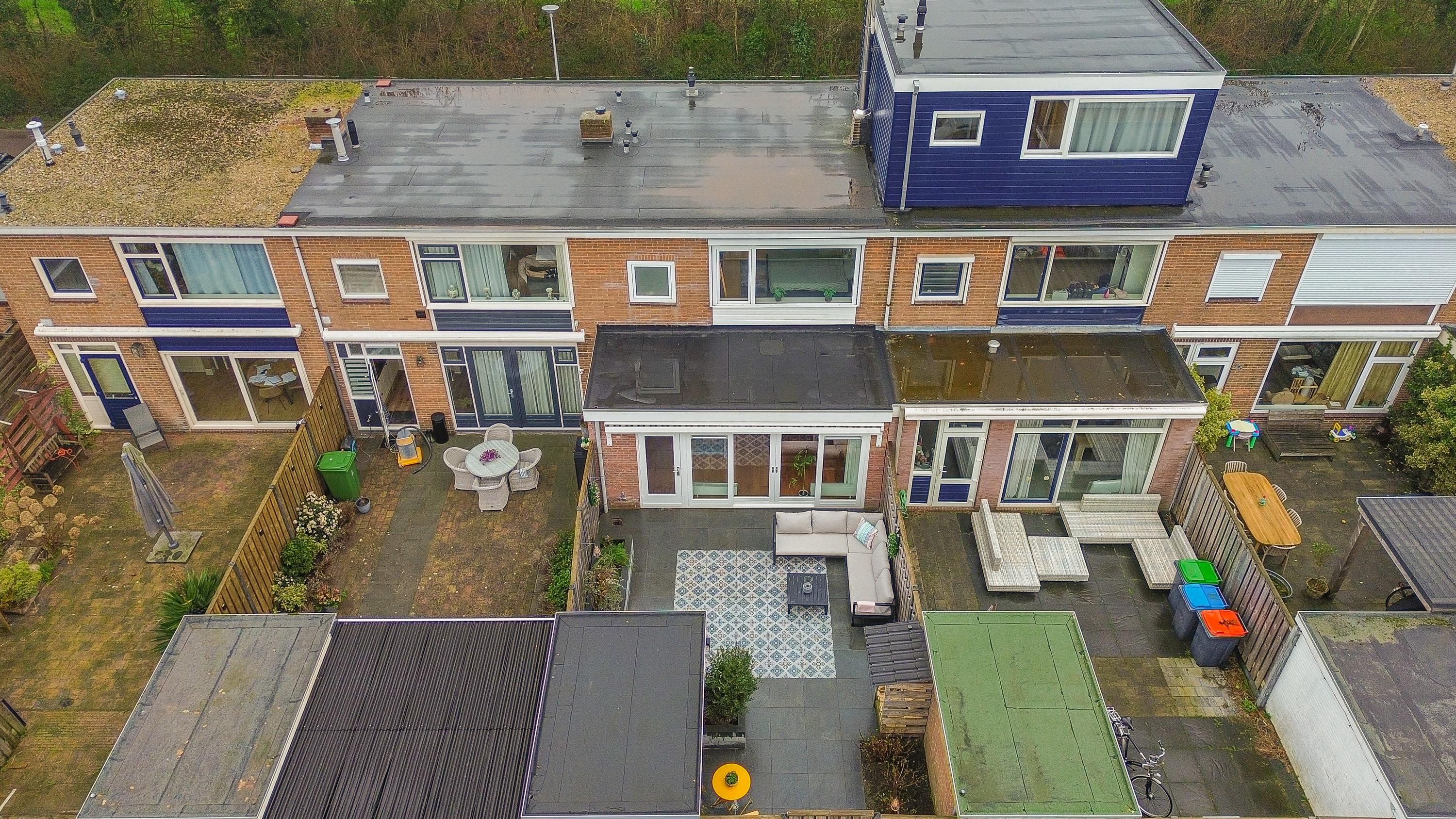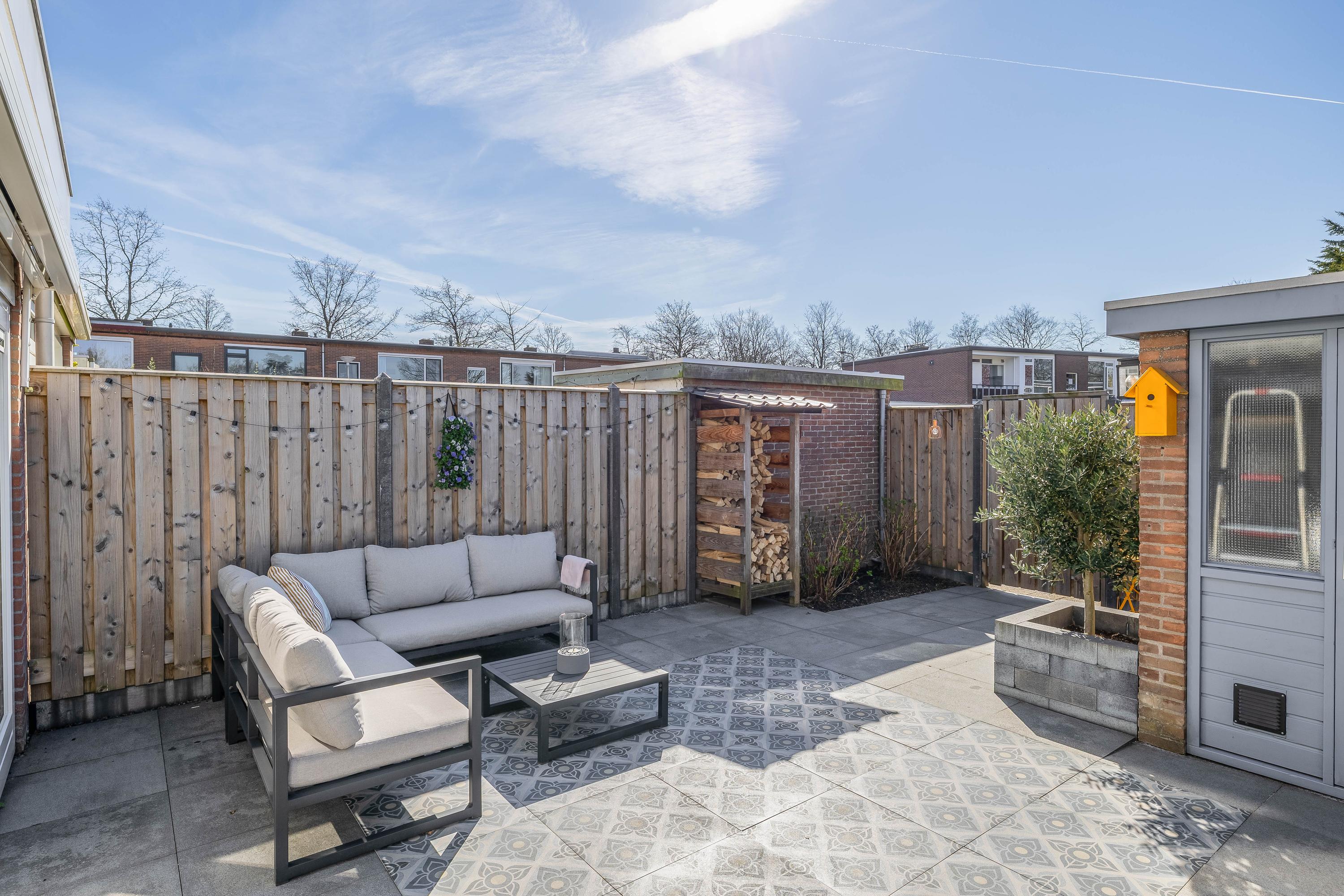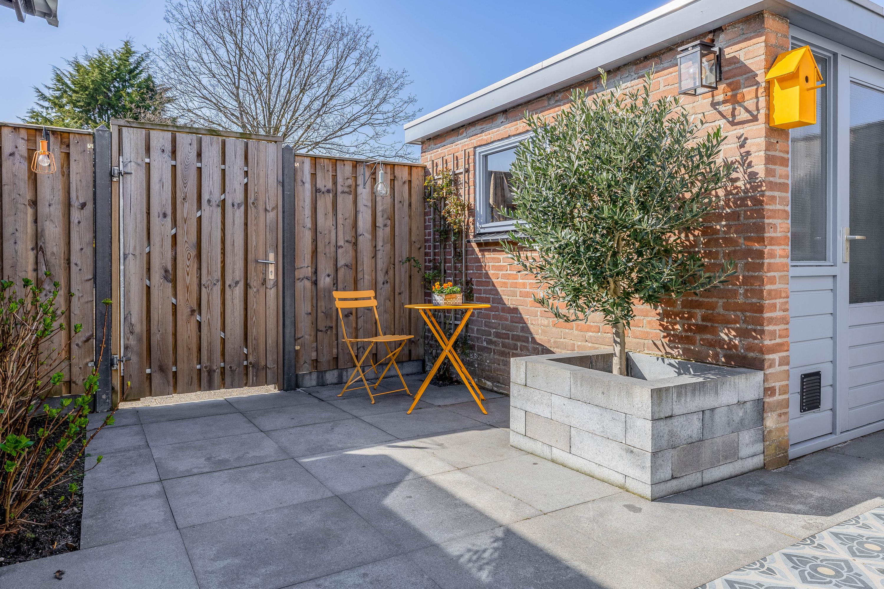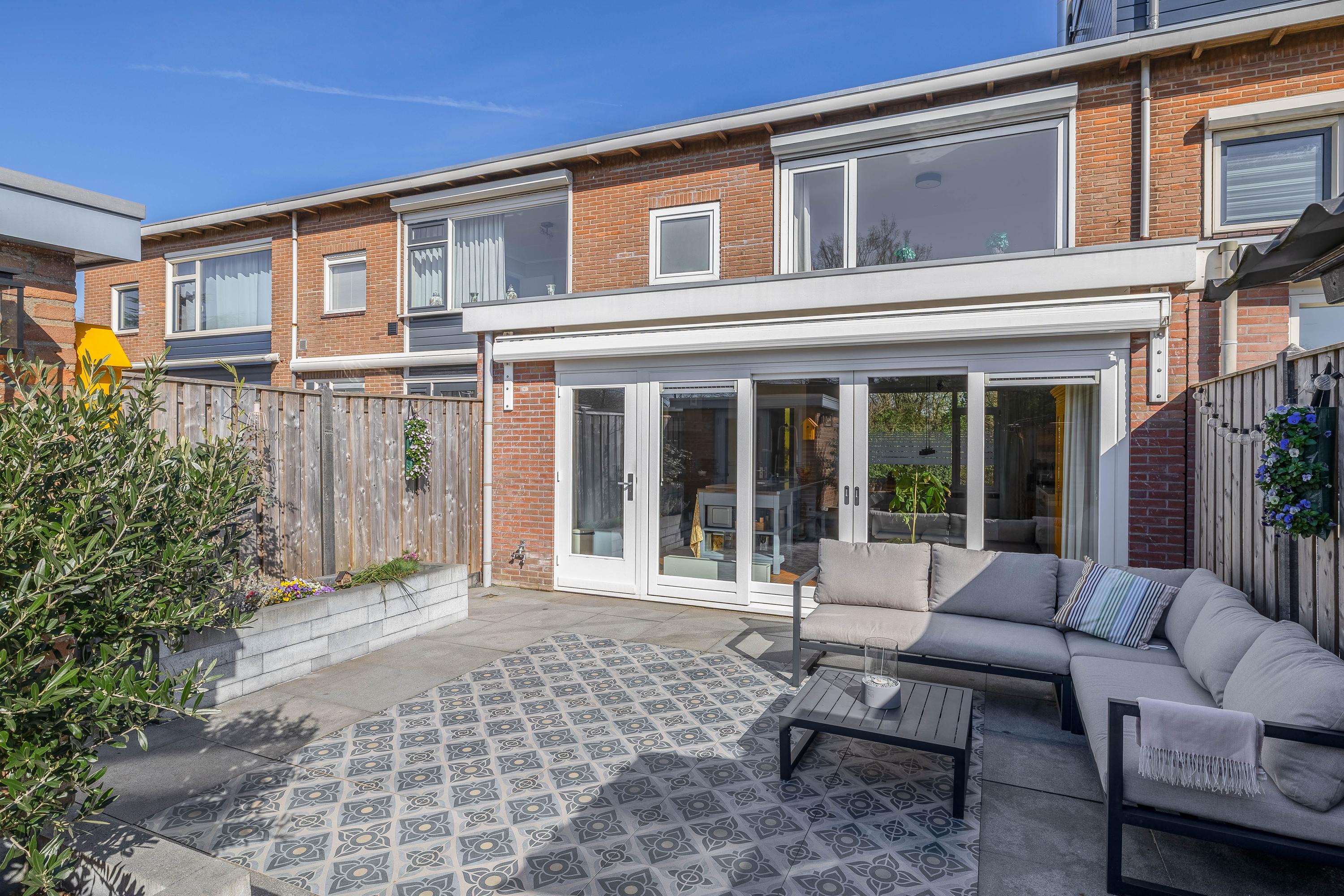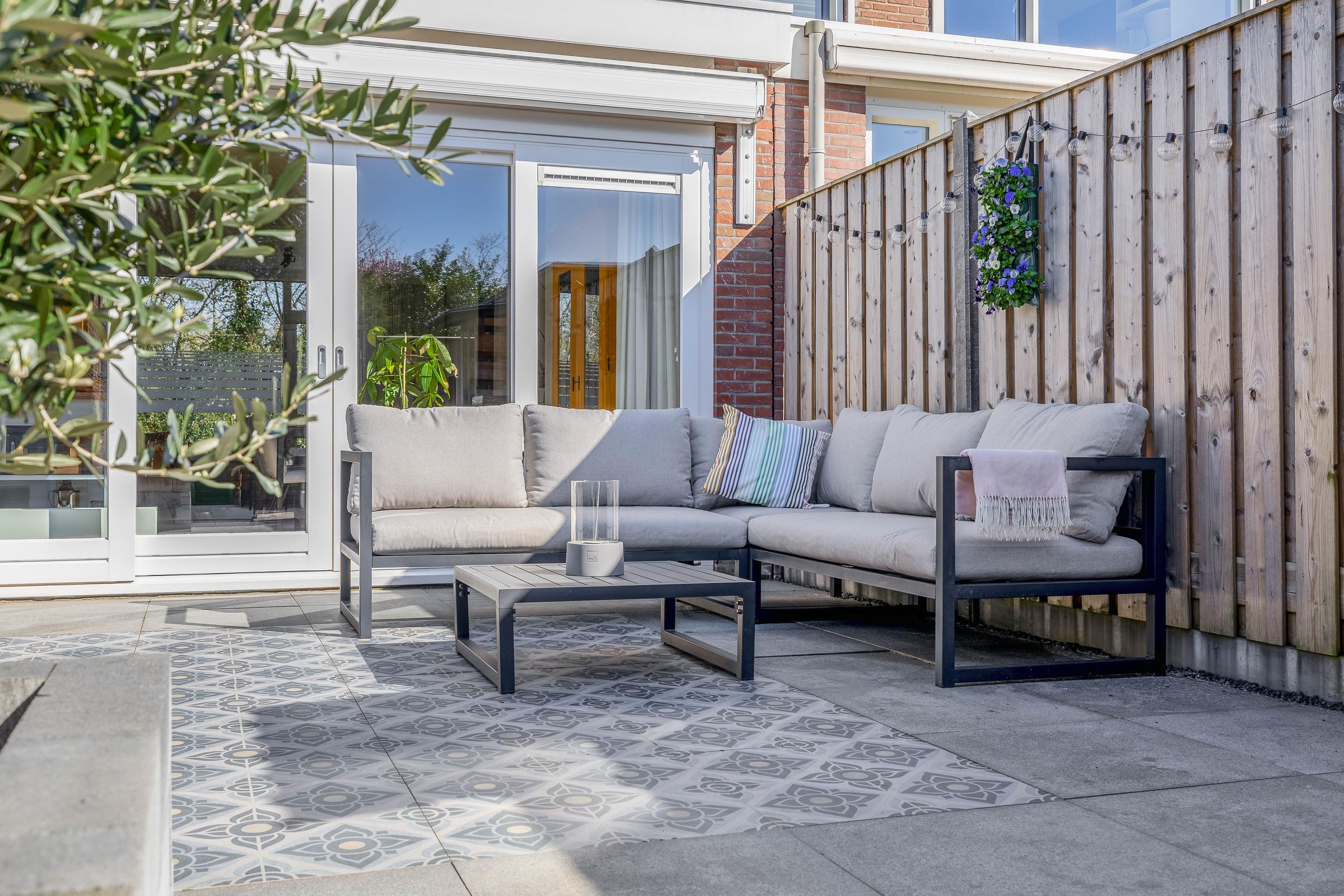 De verzorgde en onderhoudsvriendelijke achtertuin is gelegen op het zuidwesten, waardoor je hier heerlijk van de zon kunt genieten. De tuin is deels vernieuwd in 2022 en biedt een fijne plek om te ontspannen. Verder is de tuin voorzien van buitenverlichting, een buitenkraan, houten schuttingen, een zonnescherm en een praktische achterom. Achter in de tuin bevindt zich een berging met elektra, ideaal voor het stallen van fietsen en het opbergen van tuingereedschap.