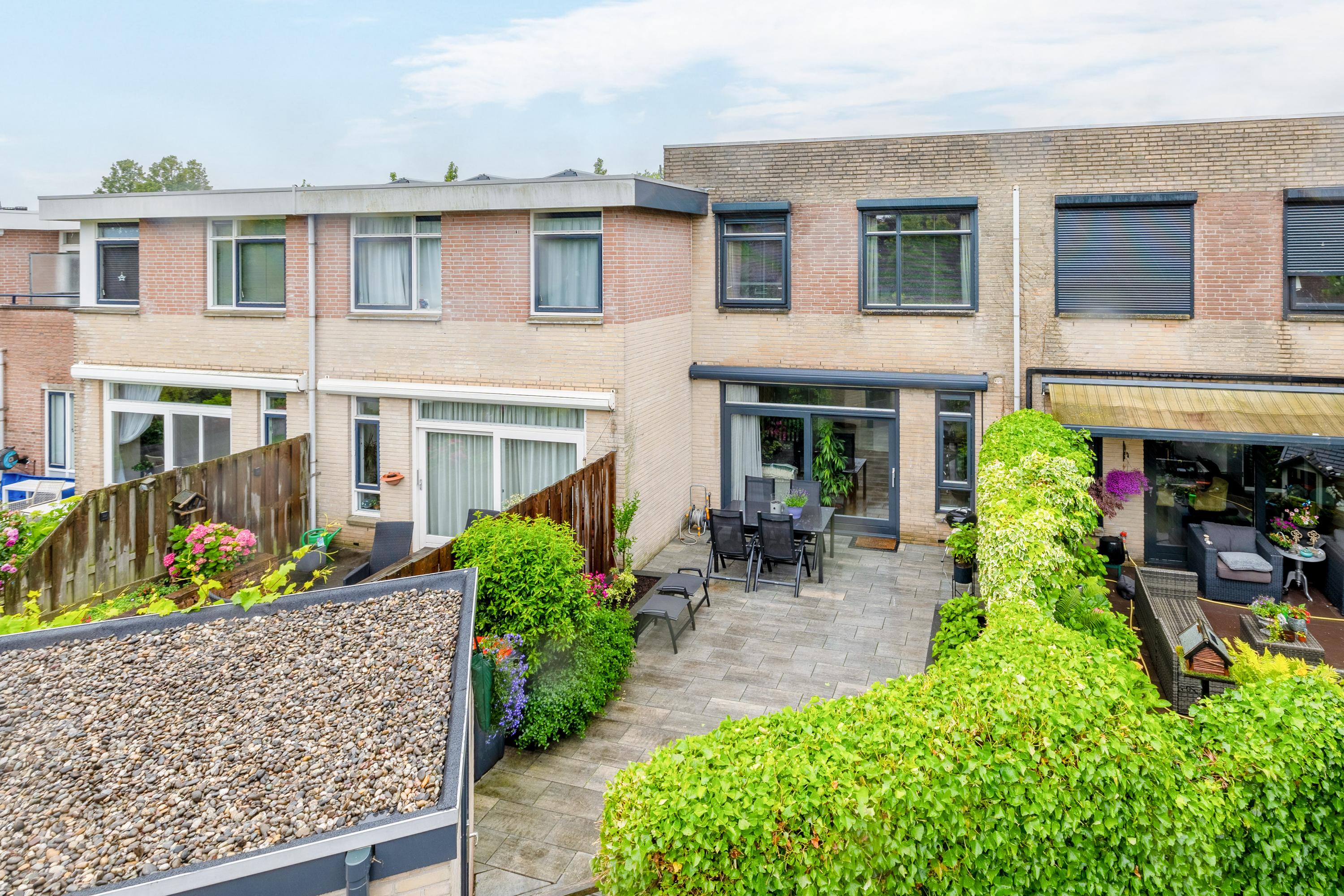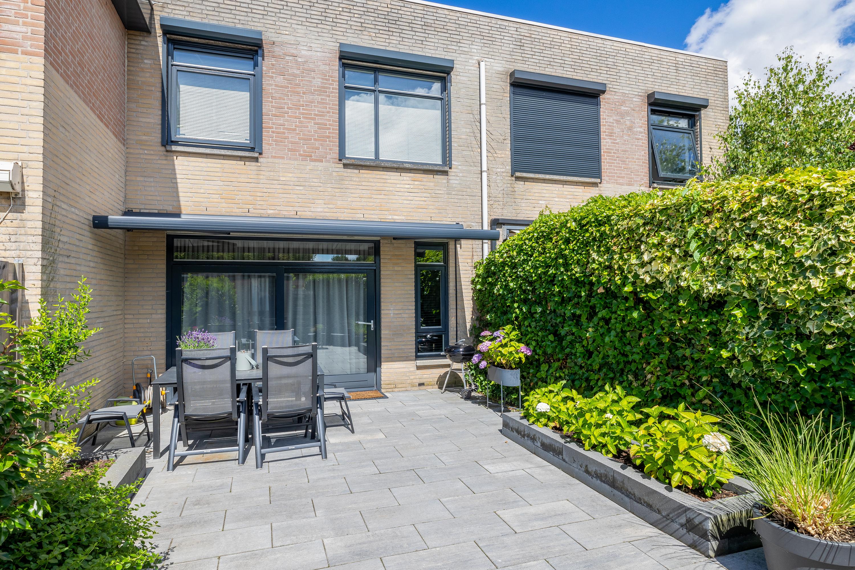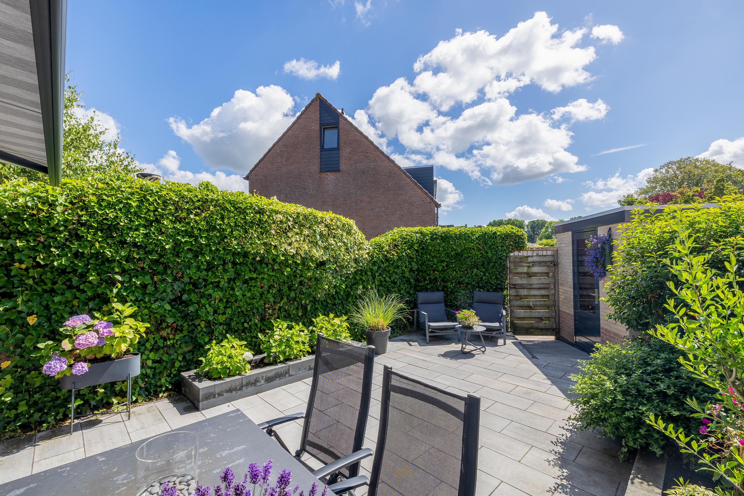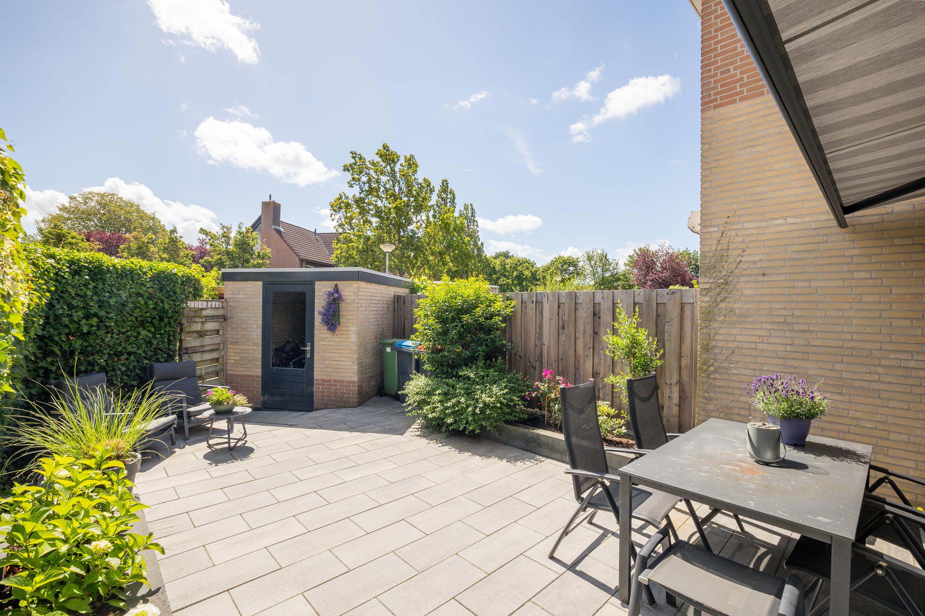 Aan de voorzijde beschikt de woning over een eigen oprit met ruimte voor twee auto’s. De achtertuin is in 2022 volledig vernieuwd en modern aangelegd. De tuin is grotendeels bestraat en voorzien van plantenborders, elektrische zonwering, een buitenkraan en zowel houten schuttingen als groen erfafscheidingen. Achterin bevindt zich een praktische berging met elektra en een achteruitgang. Met de ligging op het zuidoosten is dit een zonnige tuin waar je heerlijk kunt genieten van de buitenruimte.