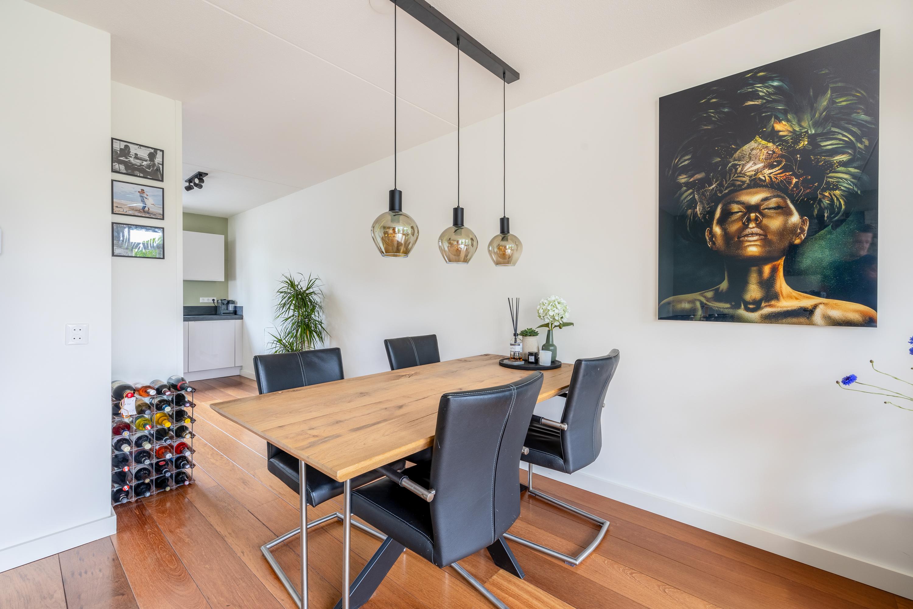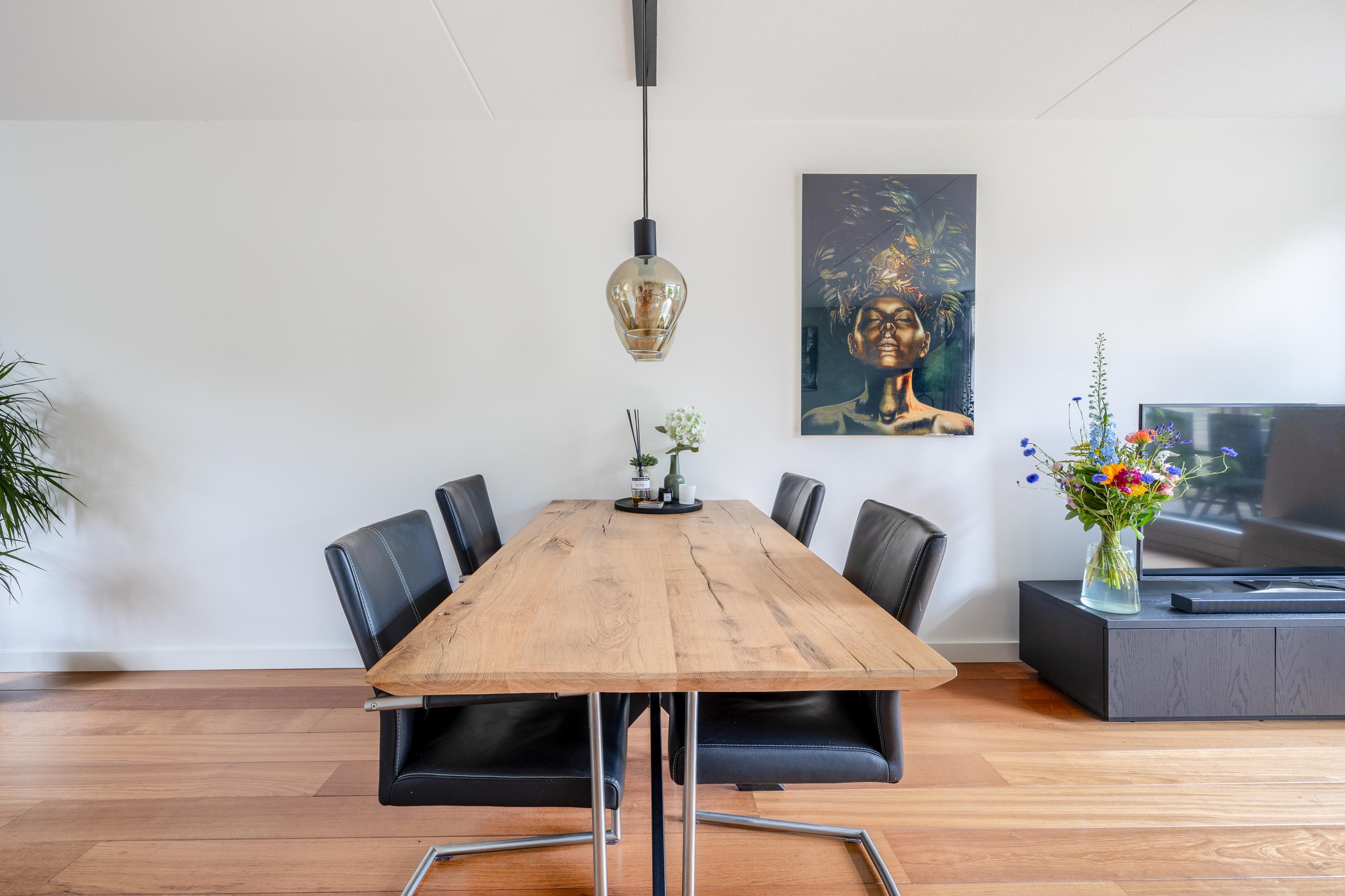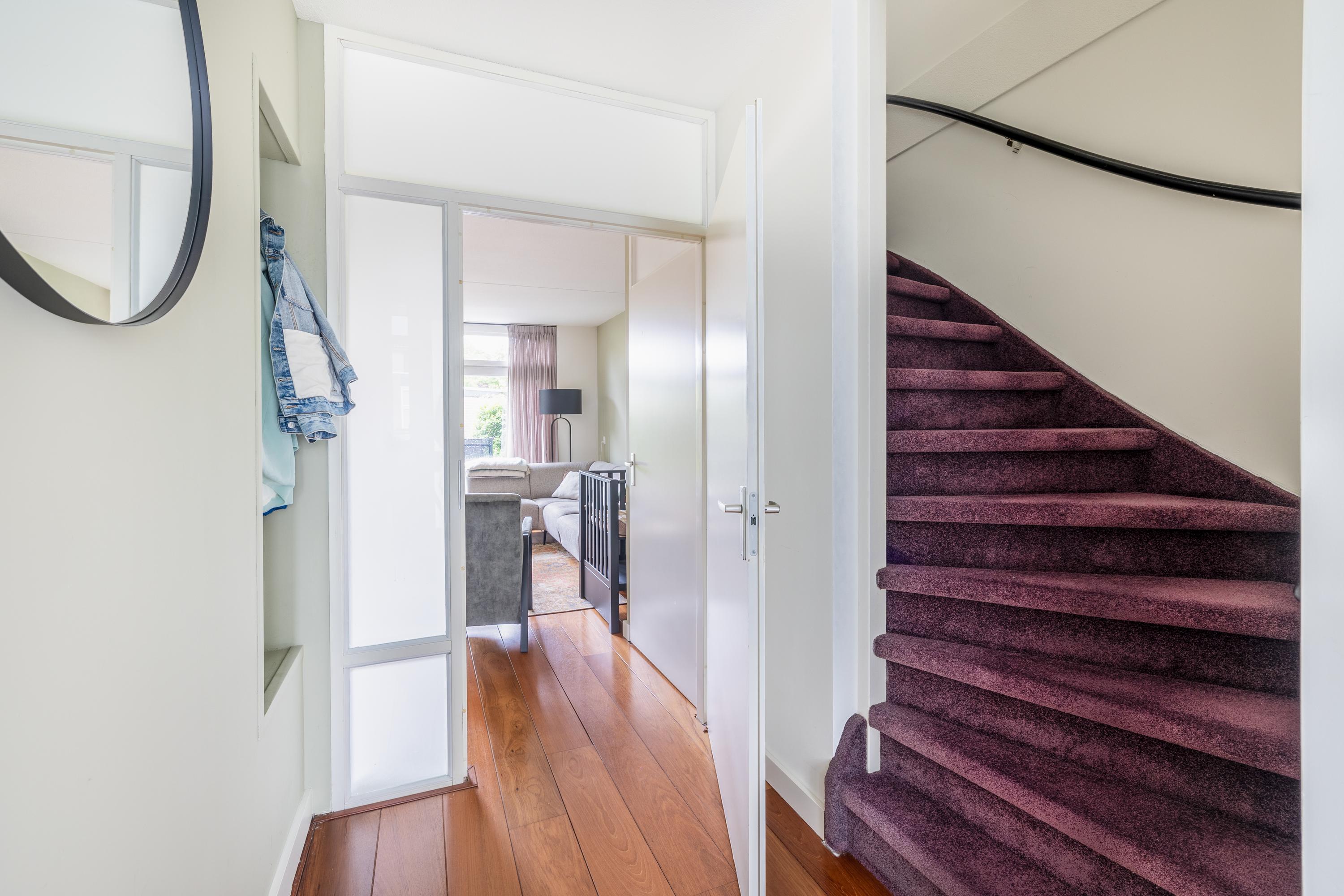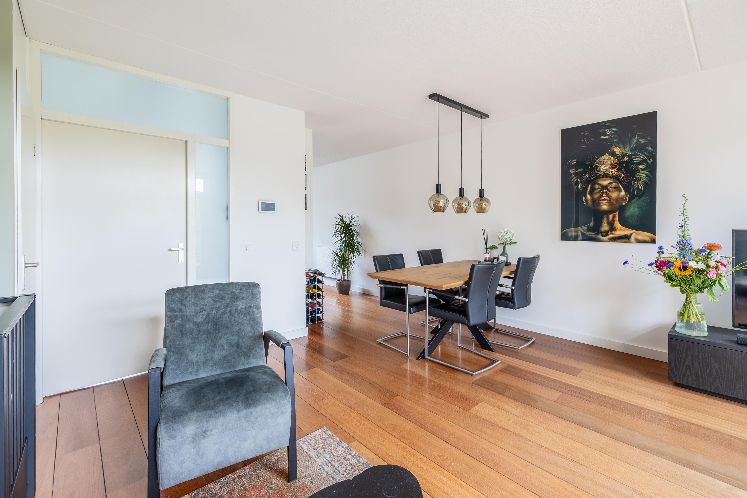 Via de entree kom je in de hal met toegang tot de meterkast, het moderne toilet met fontein, de trap naar de 1e verdieping en de woonkamer. De lichte woonkamer met open keuken is afgewerkt met een mooie parketvloer, strak gestuukte wanden en plafonds én beschikt over een praktische trapkast. Dankzij de grote schuifpui heb je een directe verbinding met de zonnige achtertuin. De moderne keuken (2022) bevindt zich aan de voorzijde, staat in een praktische L-opstelling en is volledig uitgerust met een inductiekookplaat, afzuigkap, combi-magnetron, Quooker, vaatwasser en een koel-vriescombinatie — een fijne plek voor iedere kookliefhebber.
