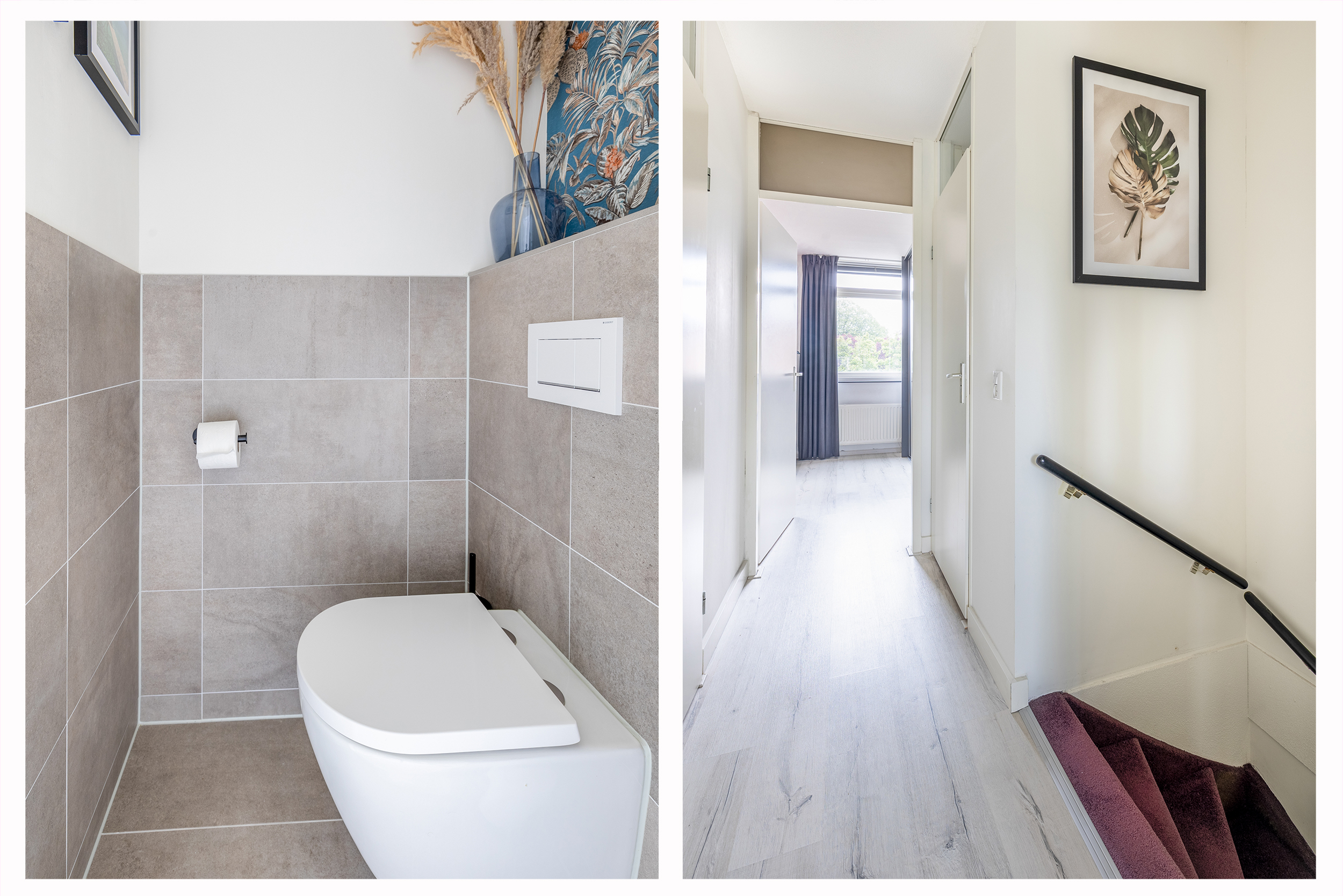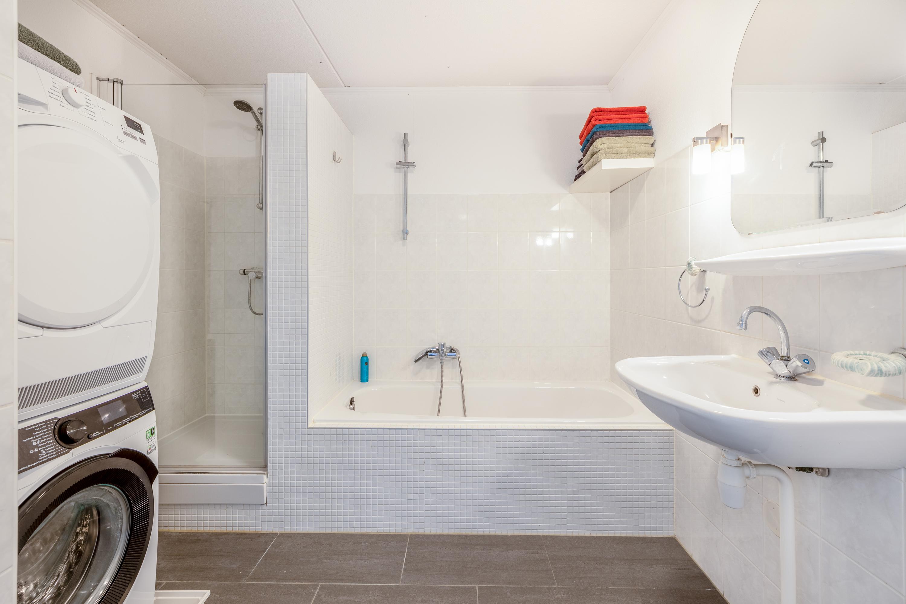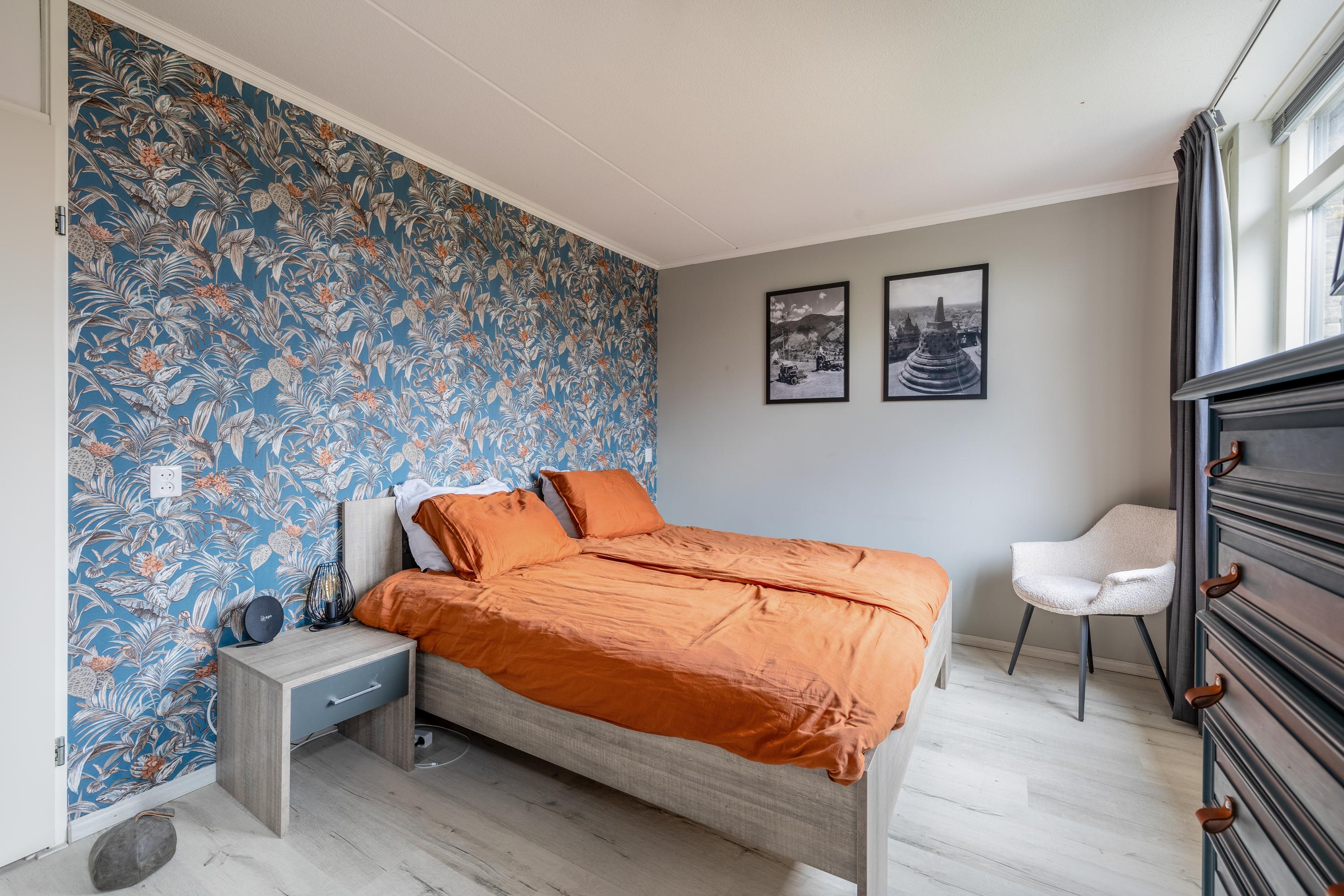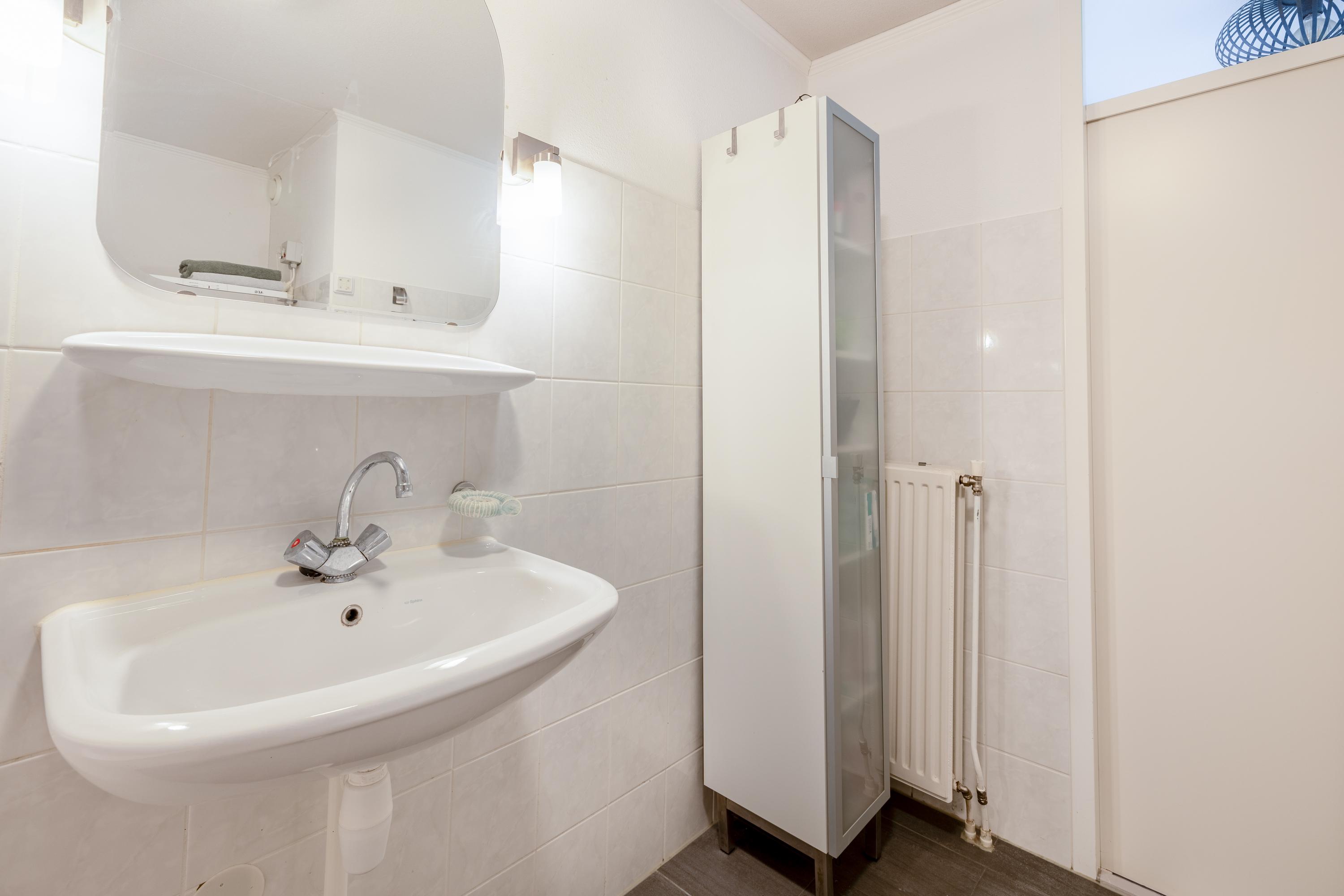 Via de trap kom je op de overloop van de verdieping, die toegang geeft tot drie slaapkamers, een aparte toiletruimte met hangend closet, de badkamer en een bergkast met de cv-installatie (Nefit 2016). 2 slaapkamers liggen aan de voorzijde, terwijl de ruime hoofdslaapkamer zich aan de achterzijde bevindt. Deze kamer beschikt over twee ramen met elektrische rolluiken in dezelfde moderne antracietkleur als het buitenschilderwerk en heeft daarnaast een praktische schuifdeurenkast. De badkamer is royaal en compleet ingericht met een ligbad, douche, wastafel en aansluitingen voor de wasmachine en droger. Ook deze verdieping is netjes afgewerkt met een laminaatvloer en strak gestuukte wanden en plafonds.