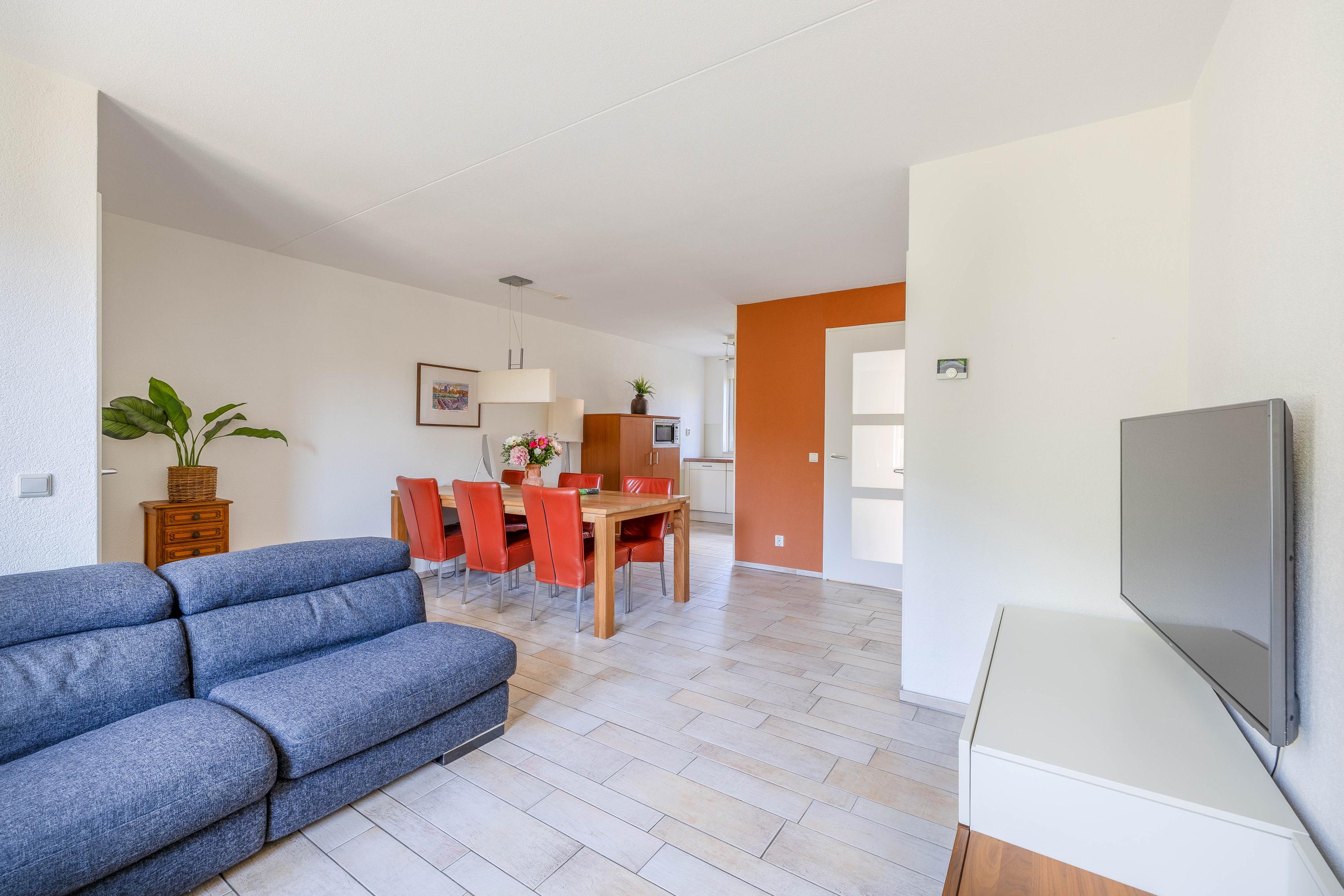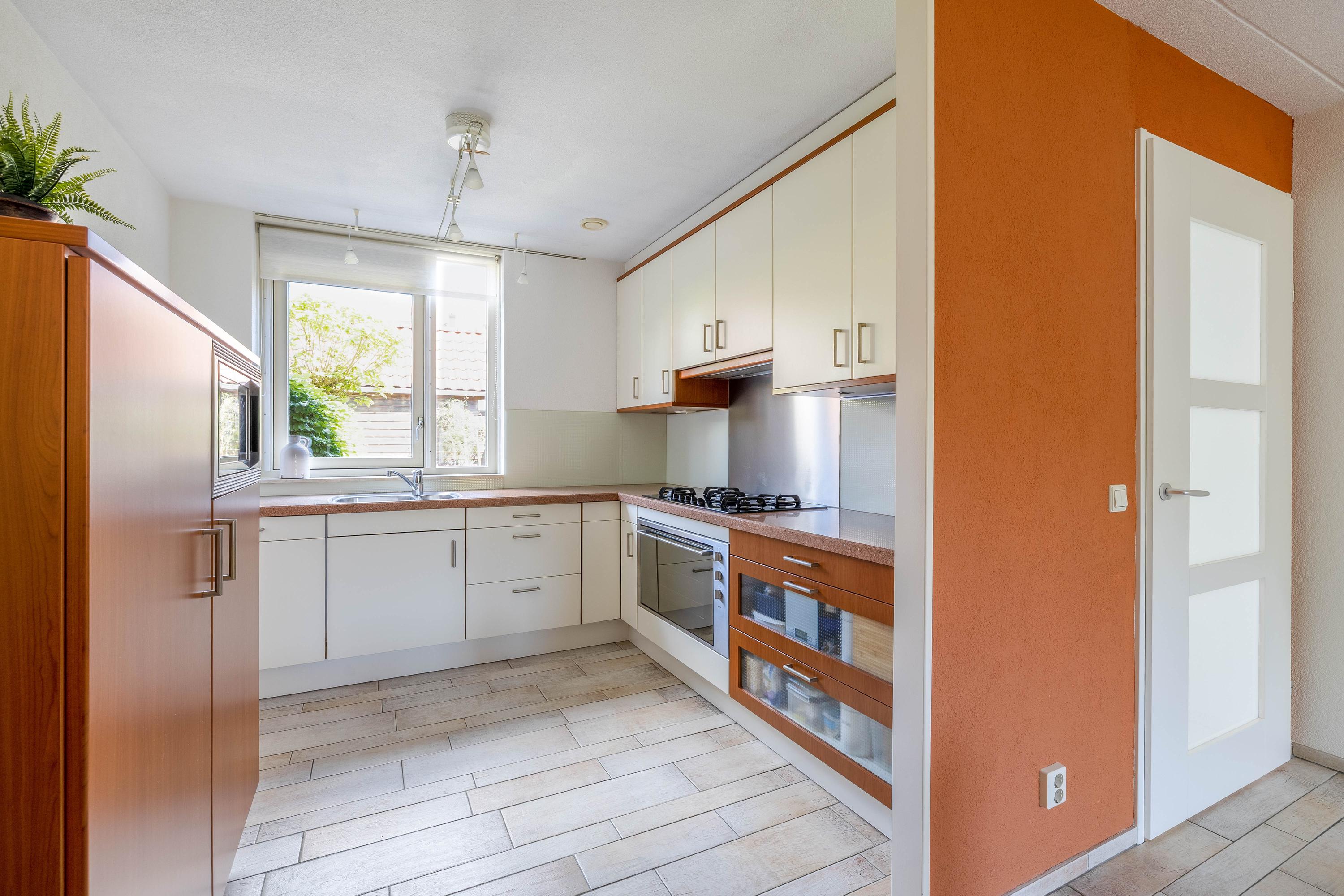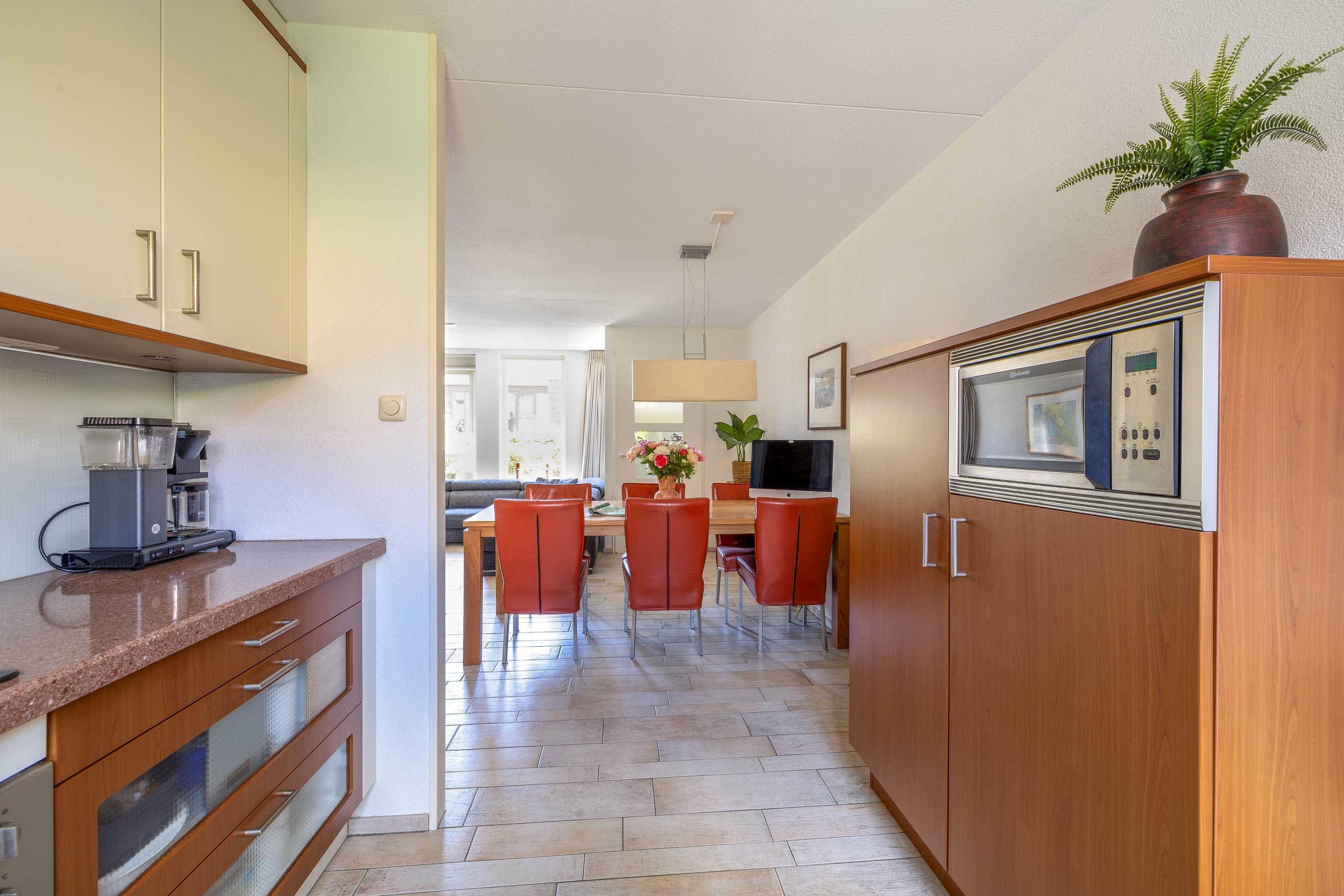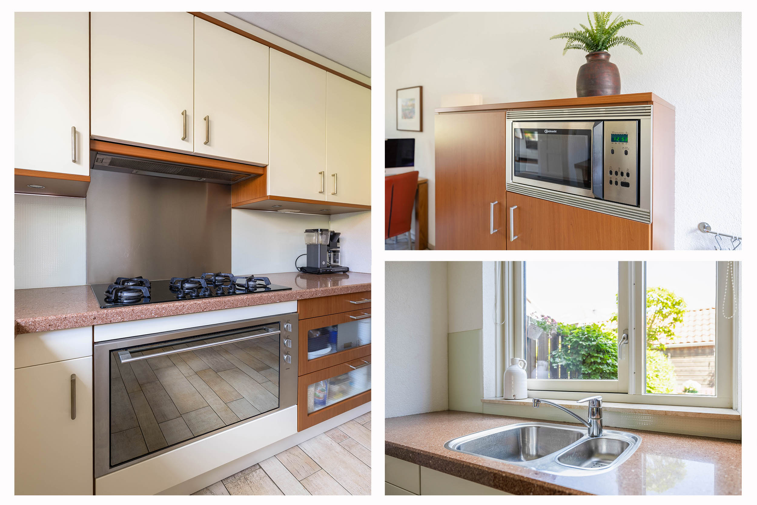Via een afdakje boven de voordeur kom je binnen in de hal/entree. Hier vind je de meterkast, een garderobekast én de toegang tot de woonkamer. De woonkamer voelt direct licht en uitnodigend aan. De open keuken in praktische L-opstelling is compleet uitgerust met een 5-pits gaskookplaat, een afzuigkap, koelkast, vriezer, oven, magnetron en vaatwasser. Daarnaast is er een los keukenblok dat zorgt voor extra bergruimte. Onder de trap is nog een handige trapkast aanwezig, ideaal voor voorraad of huishoudspullen.