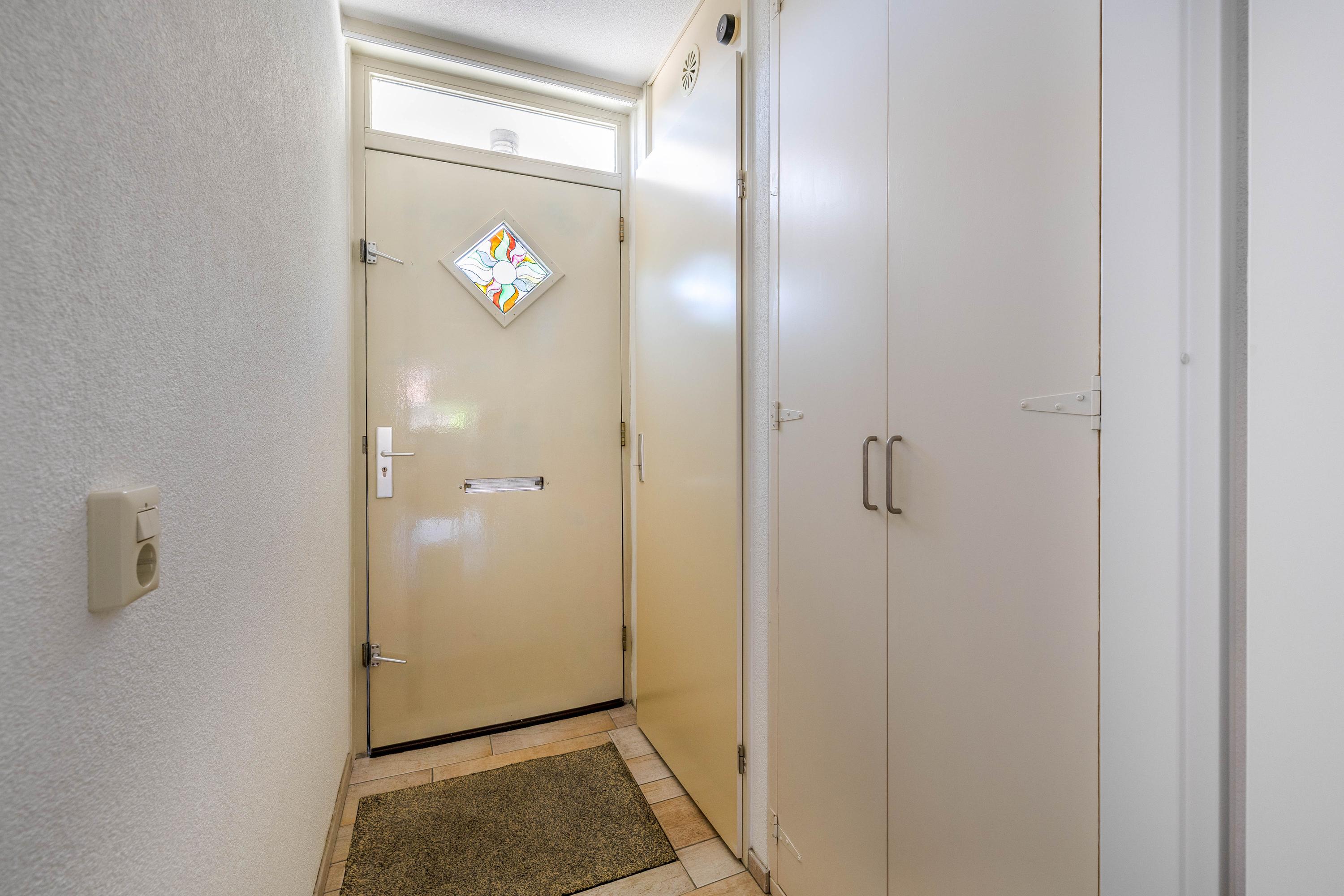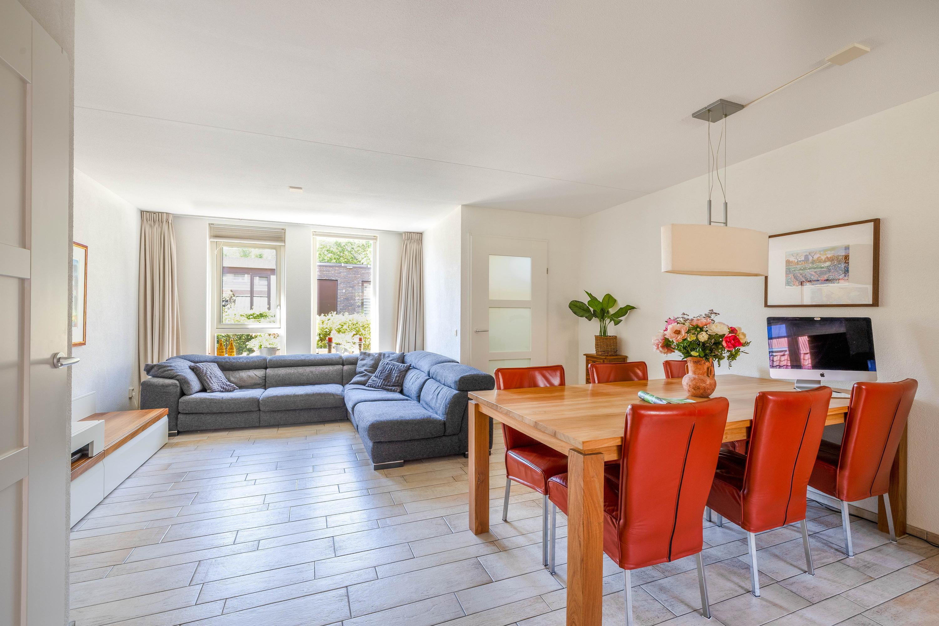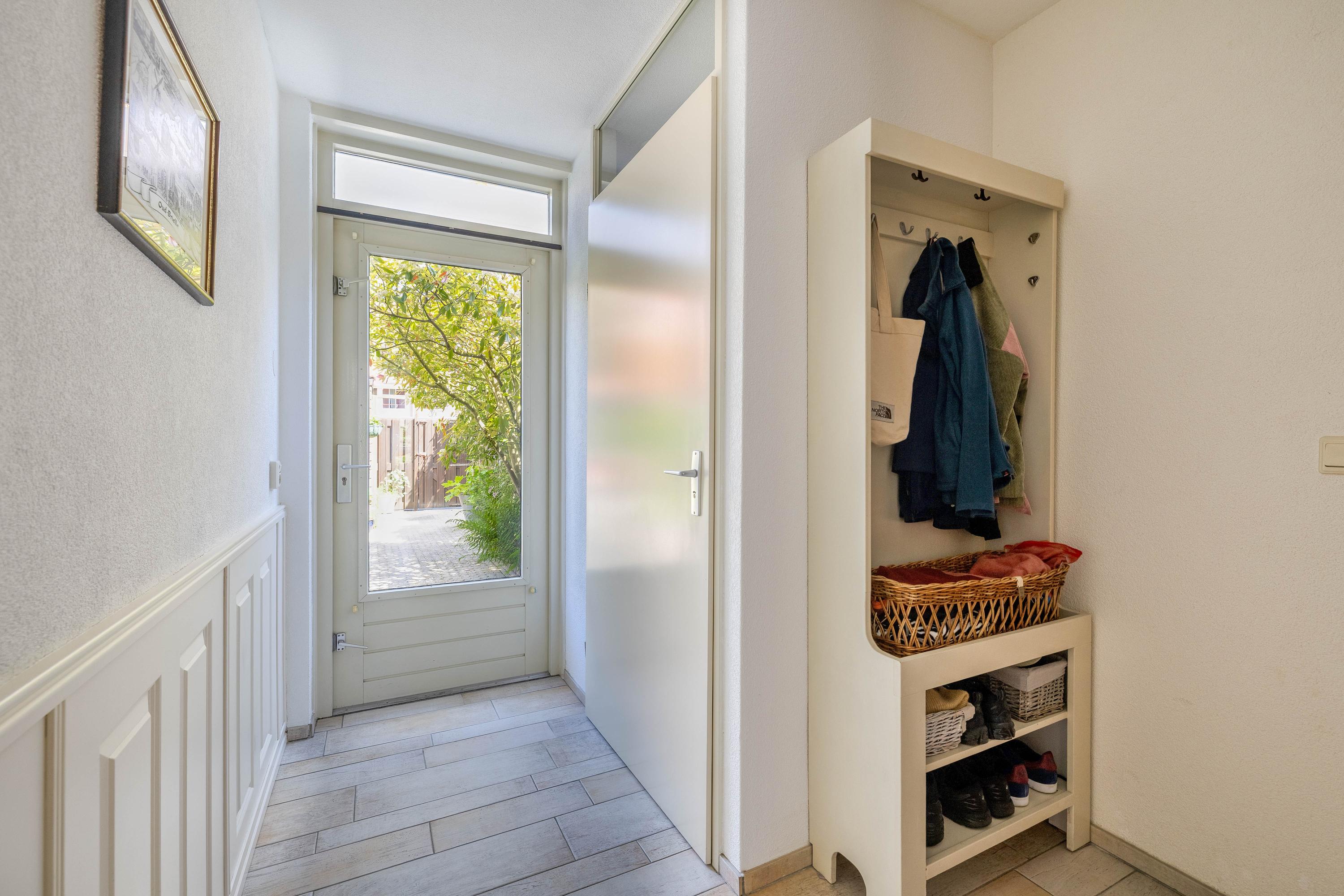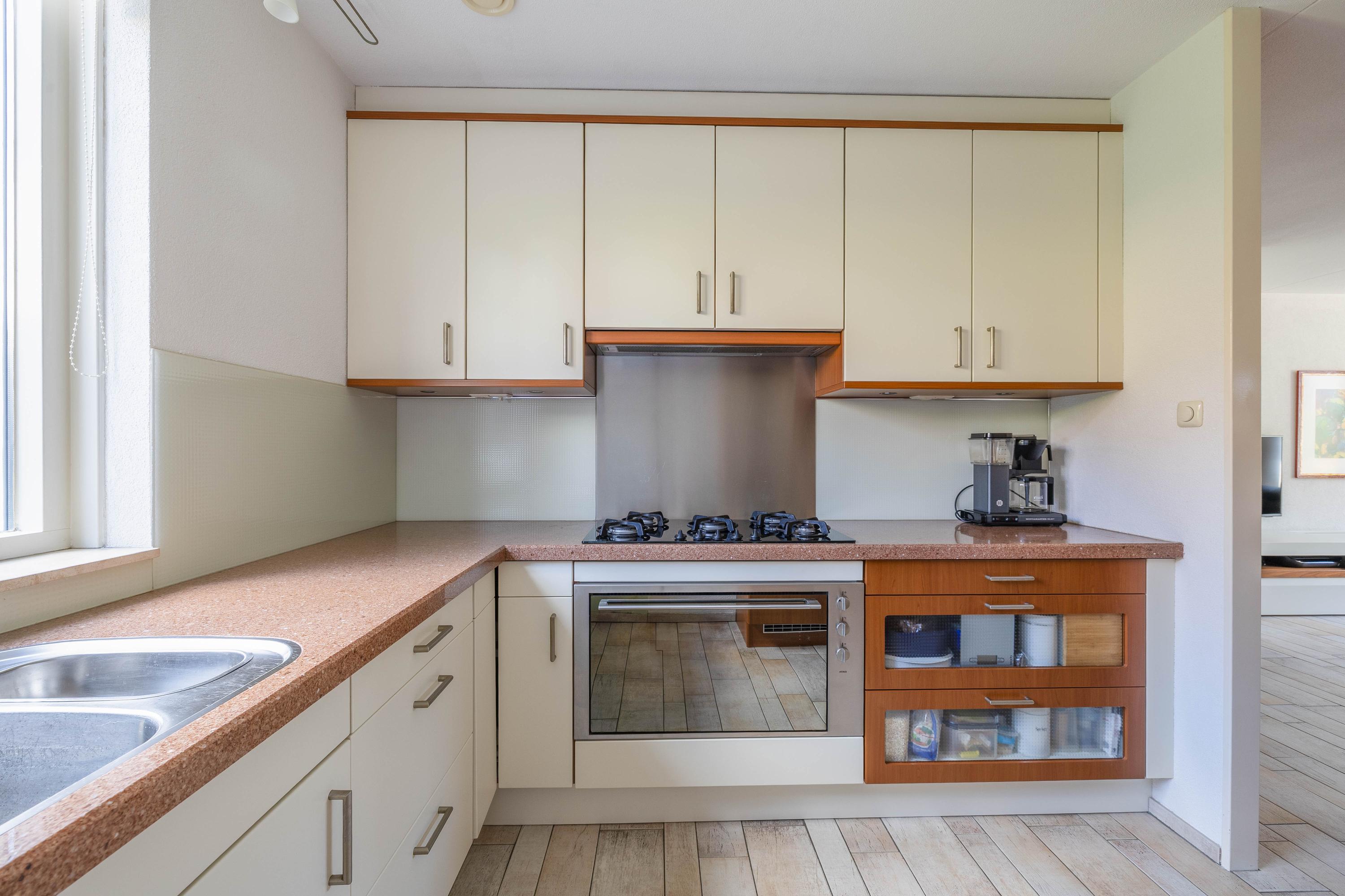 Via een afdakje boven de voordeur kom je binnen in de hal/entree. Hier vind je de meterkast, een garderobekast én de toegang tot de woonkamer. De woonkamer voelt direct licht en uitnodigend aan. De open keuken in praktische L-opstelling is compleet uitgerust met een 5-pits gaskookplaat, een afzuigkap, koelkast, vriezer, oven, magnetron en vaatwasser. Daarnaast is er een los keukenblok dat zorgt voor extra bergruimte. Onder de trap is nog een handige trapkast aanwezig, ideaal voor voorraad of huishoudspullen.