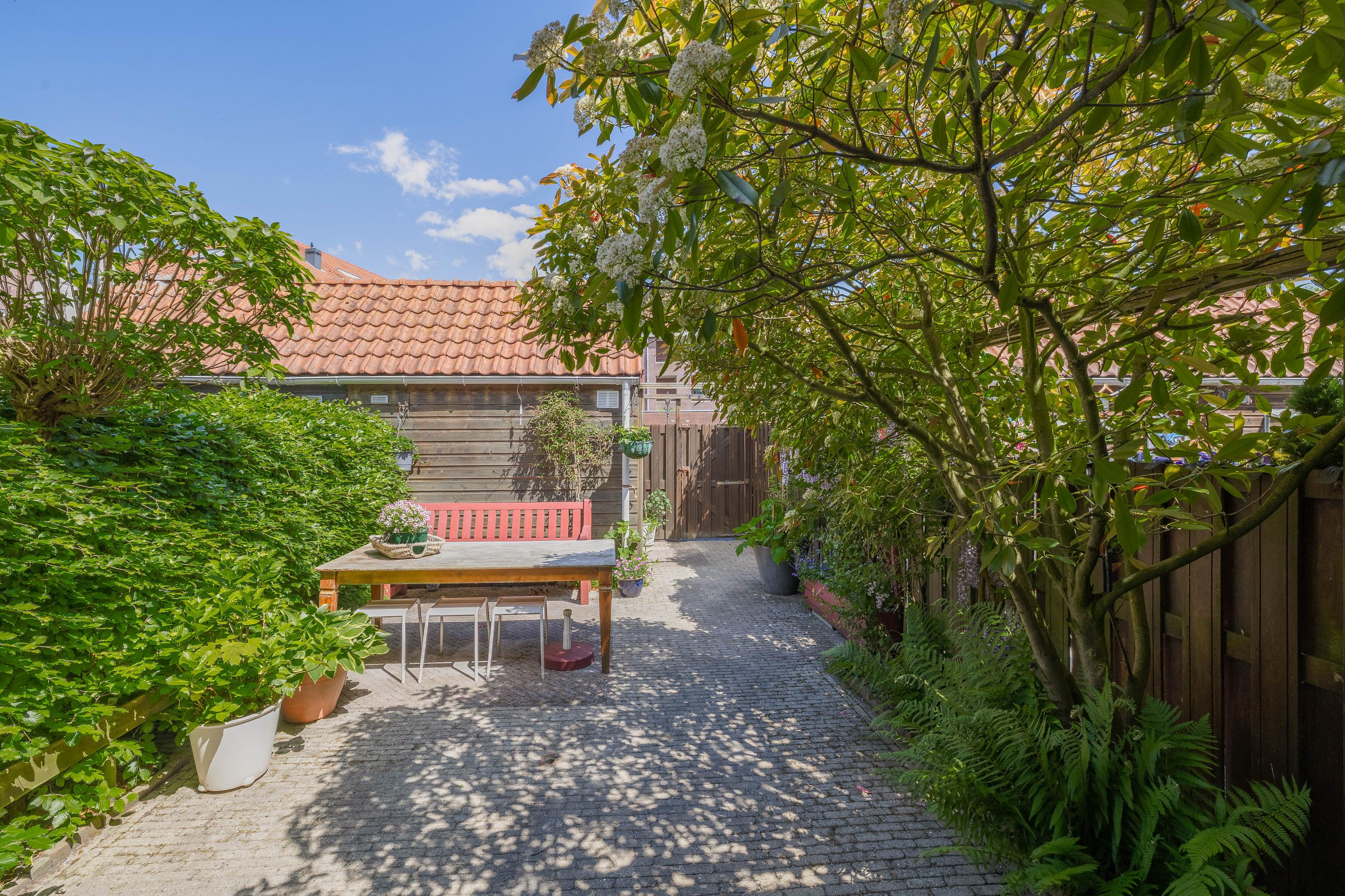 De achtertuin is verzorgd en biedt volop privacy dankzij de houten schuttingen. De tuin is grotendeels bestraat met plantenborders. Verder is deze gelegen op het noordoosten en beschikt over een achteruitgang, buitenkraan en een berging met elektra en een handige vliering.