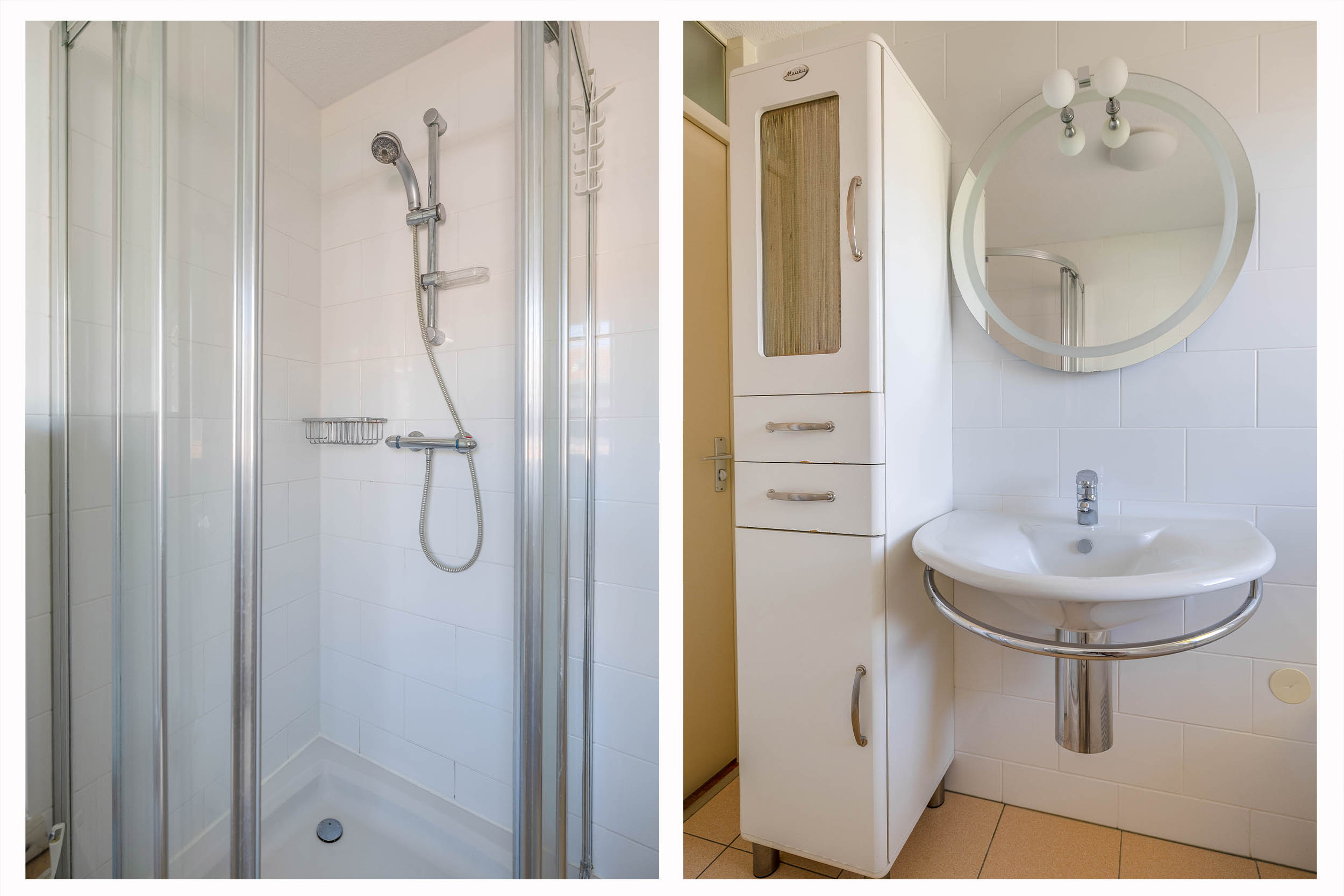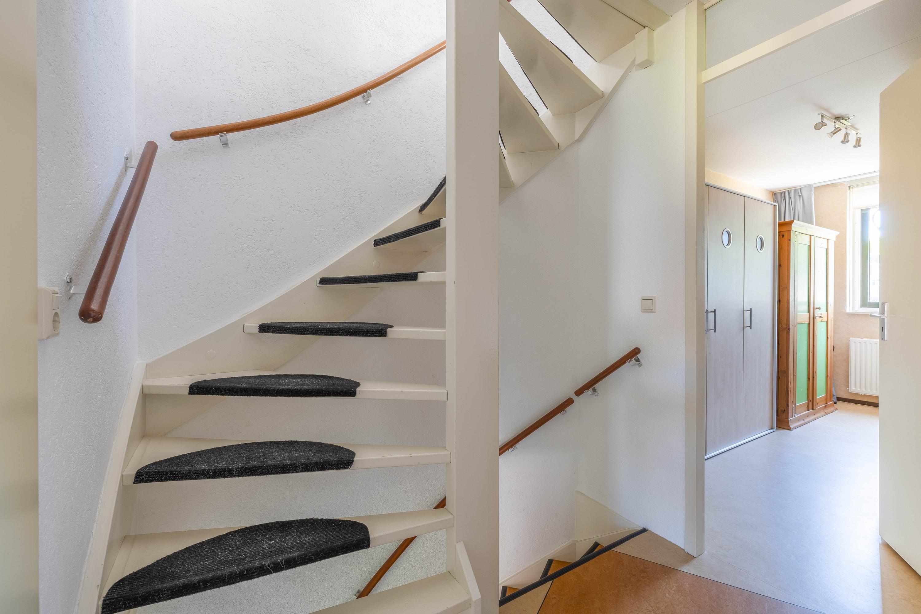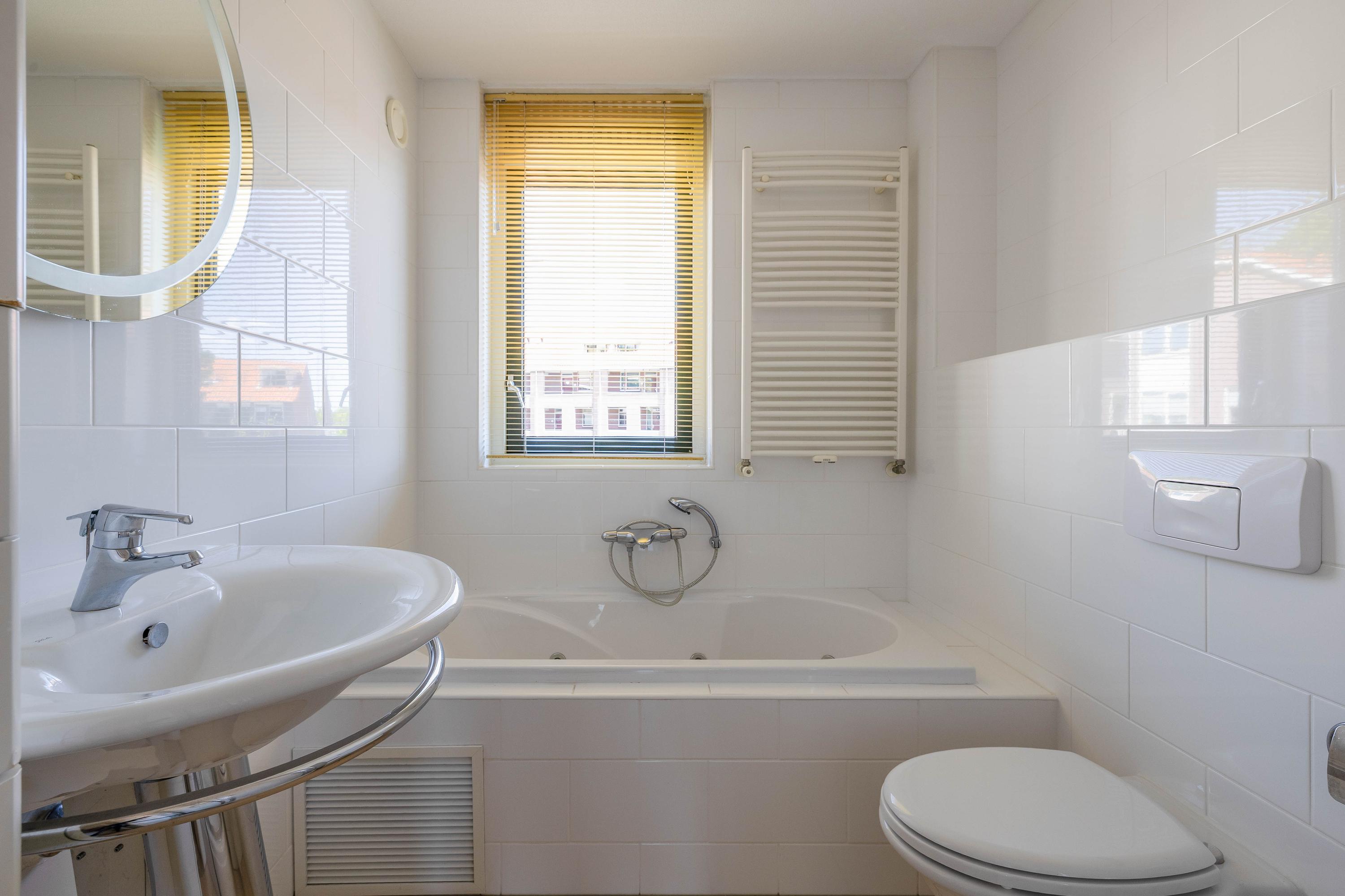 Op de overloop tref je de vaste trap naar de tweede verdieping. Verder vind je hier drie slaapkamers, allemaal voorzien van marmoleumvloerafwerking. De badkamer is compleet ingericht met een douchecabine, whirpool ligbad, wastafel, toilet, designradiator en een raam voor natuurlijk licht en ventilatie.