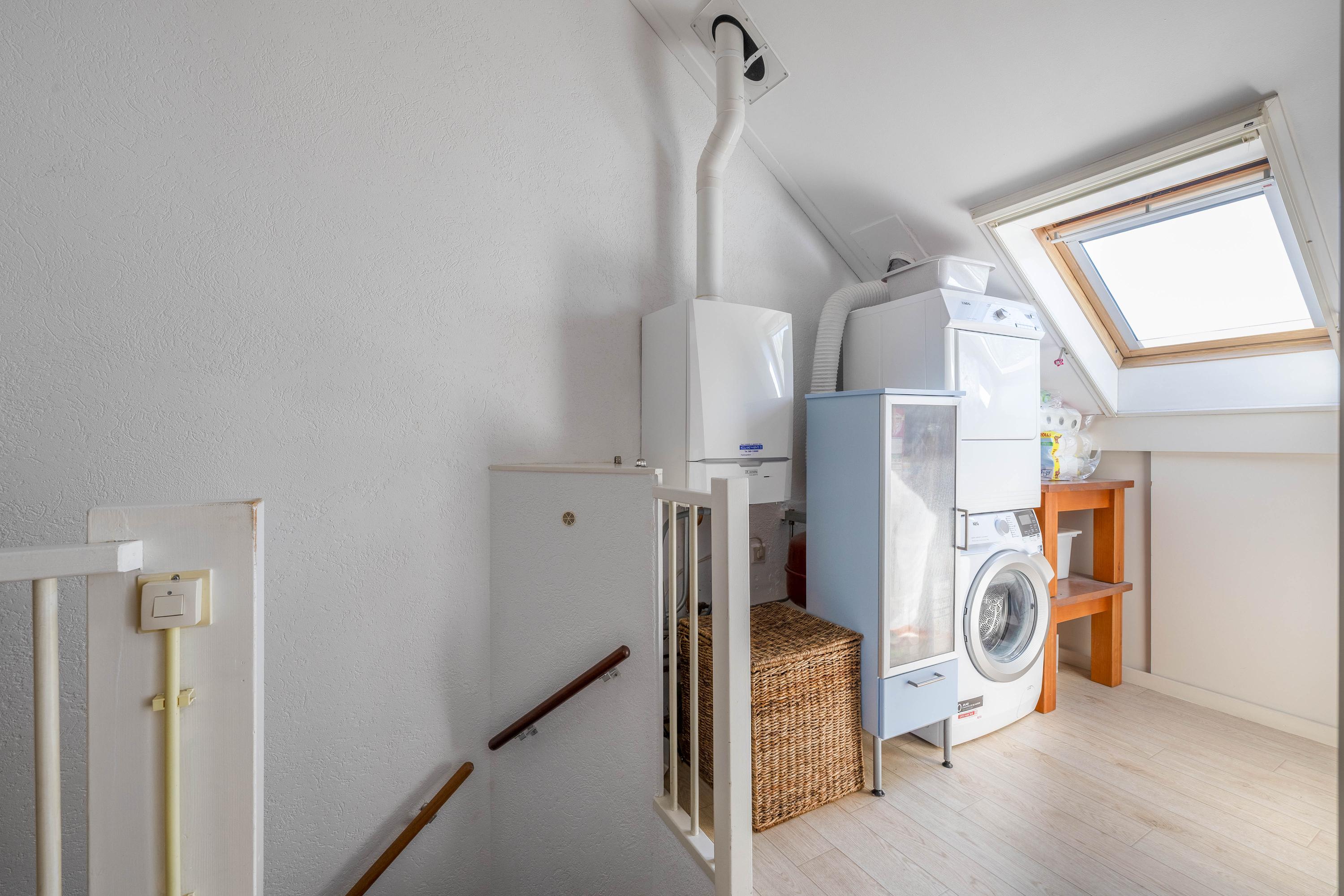 Op de voorzolder is ruimte voor de wasmachine en hier staat de opstelling van de cv-combiketel (Remeha 2017). Een dakraam zorgt hier voor natuurlijk licht. Daarnaast hangt hier de mechanische ventilatie-unit. De vierde slaapkamer is ruim opgezet en heerlijk licht dankzij een dakraam aan de ene kant en een dakkapel aan de andere kant. De laminaatvloer maakt het geheel netjes af.