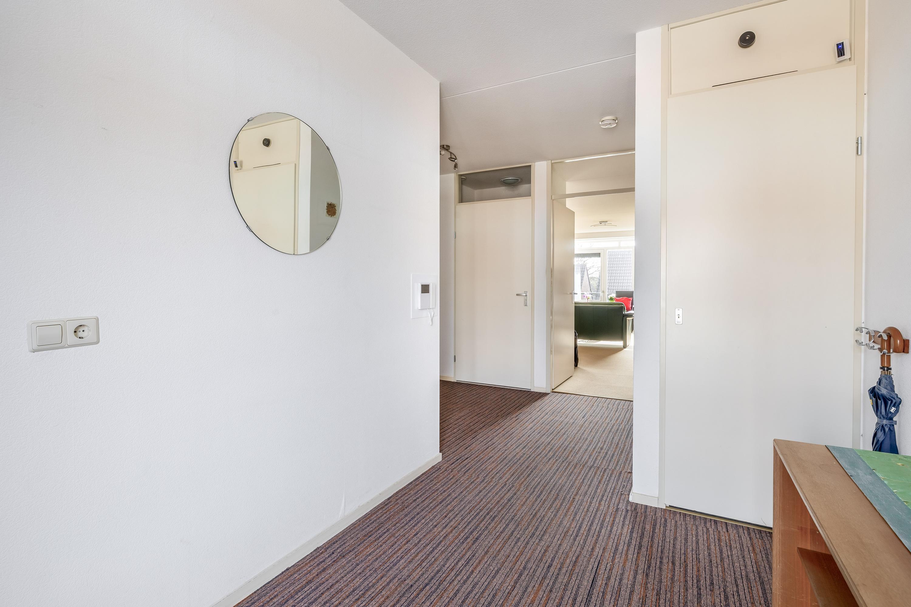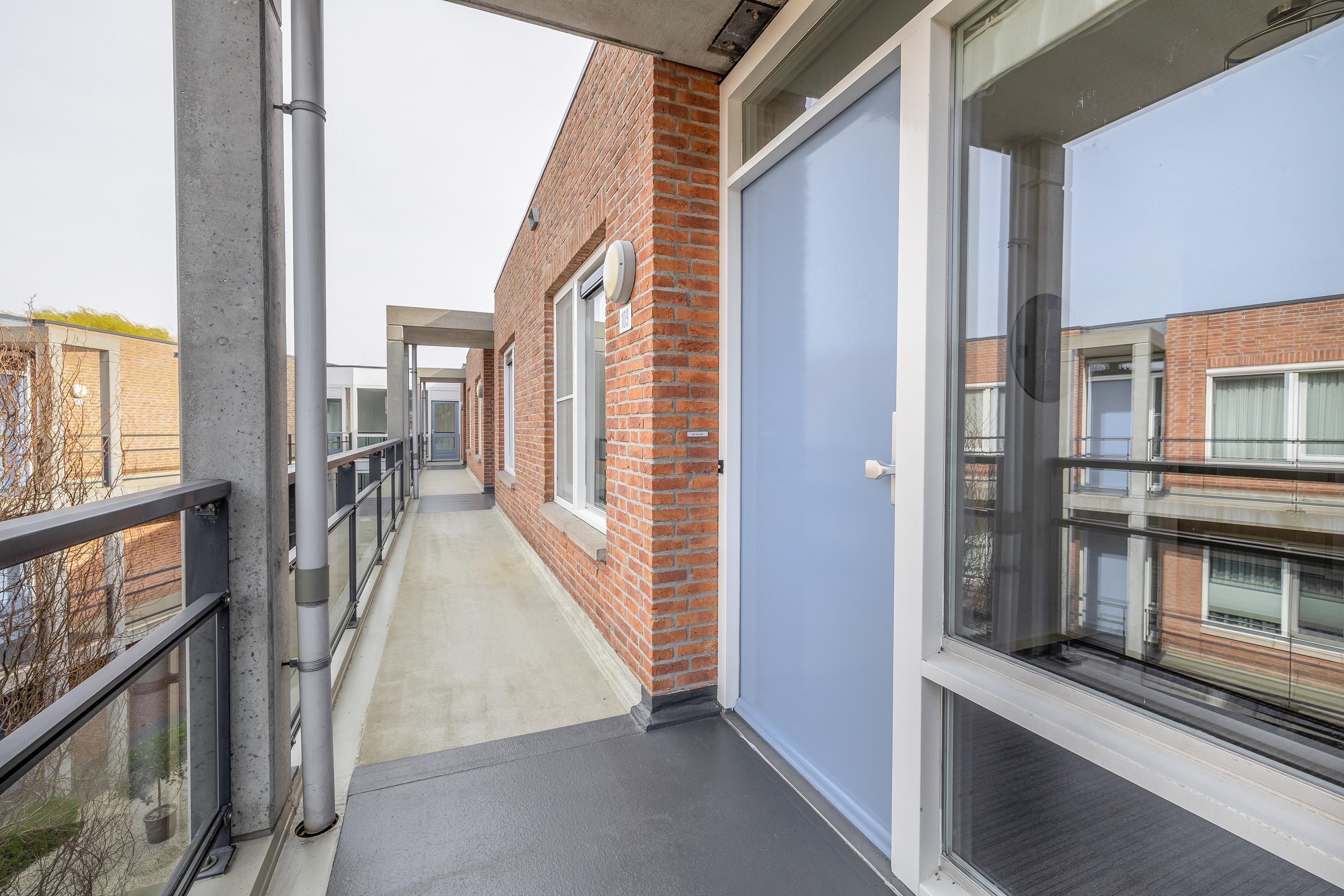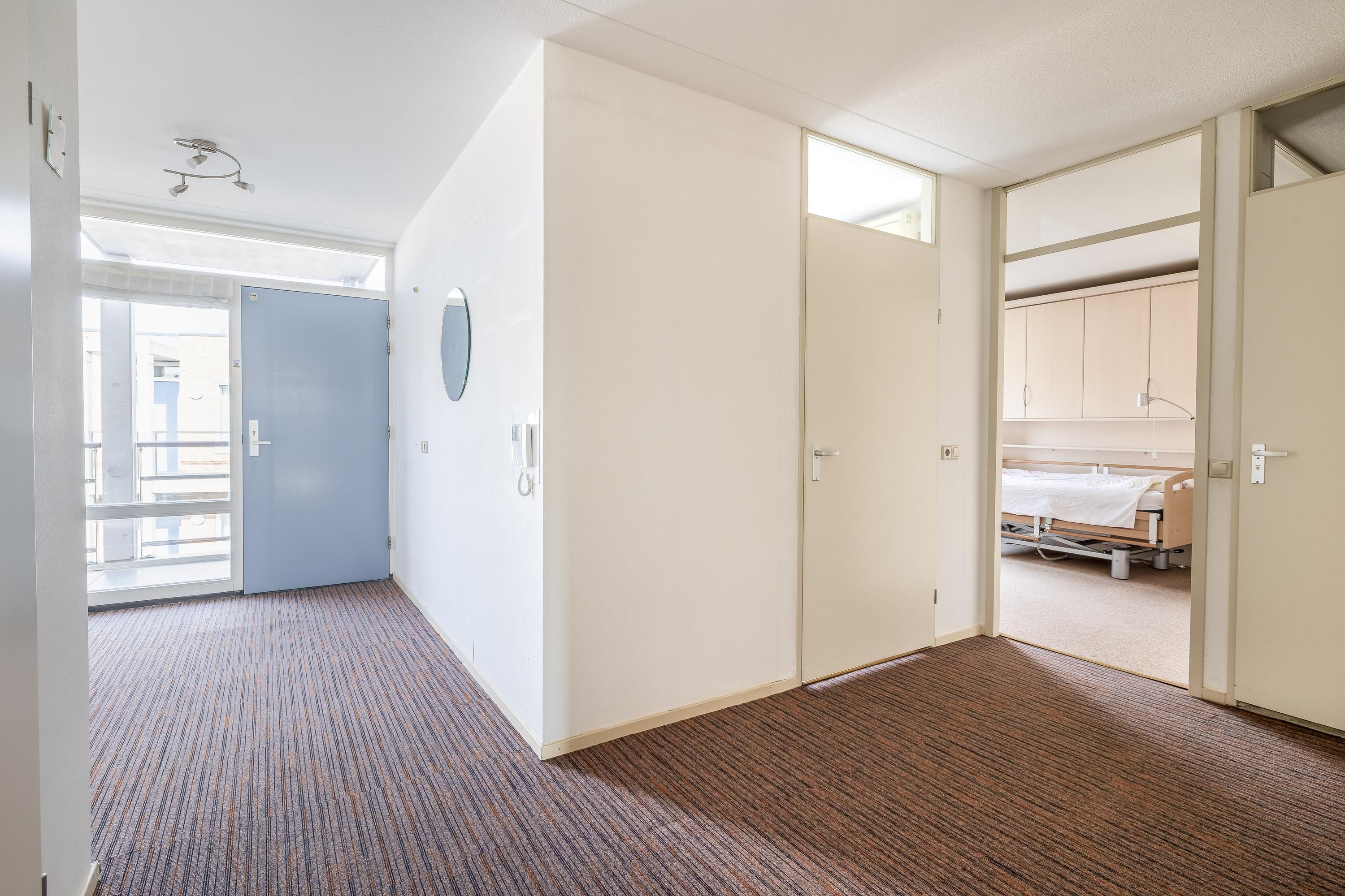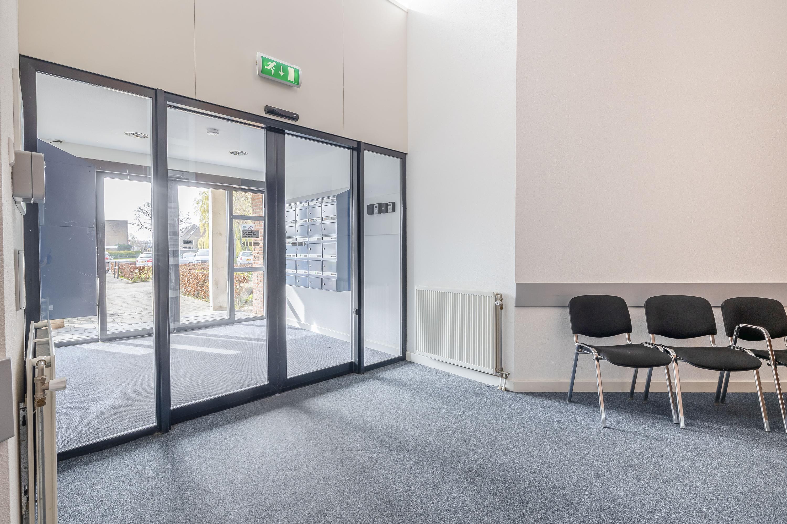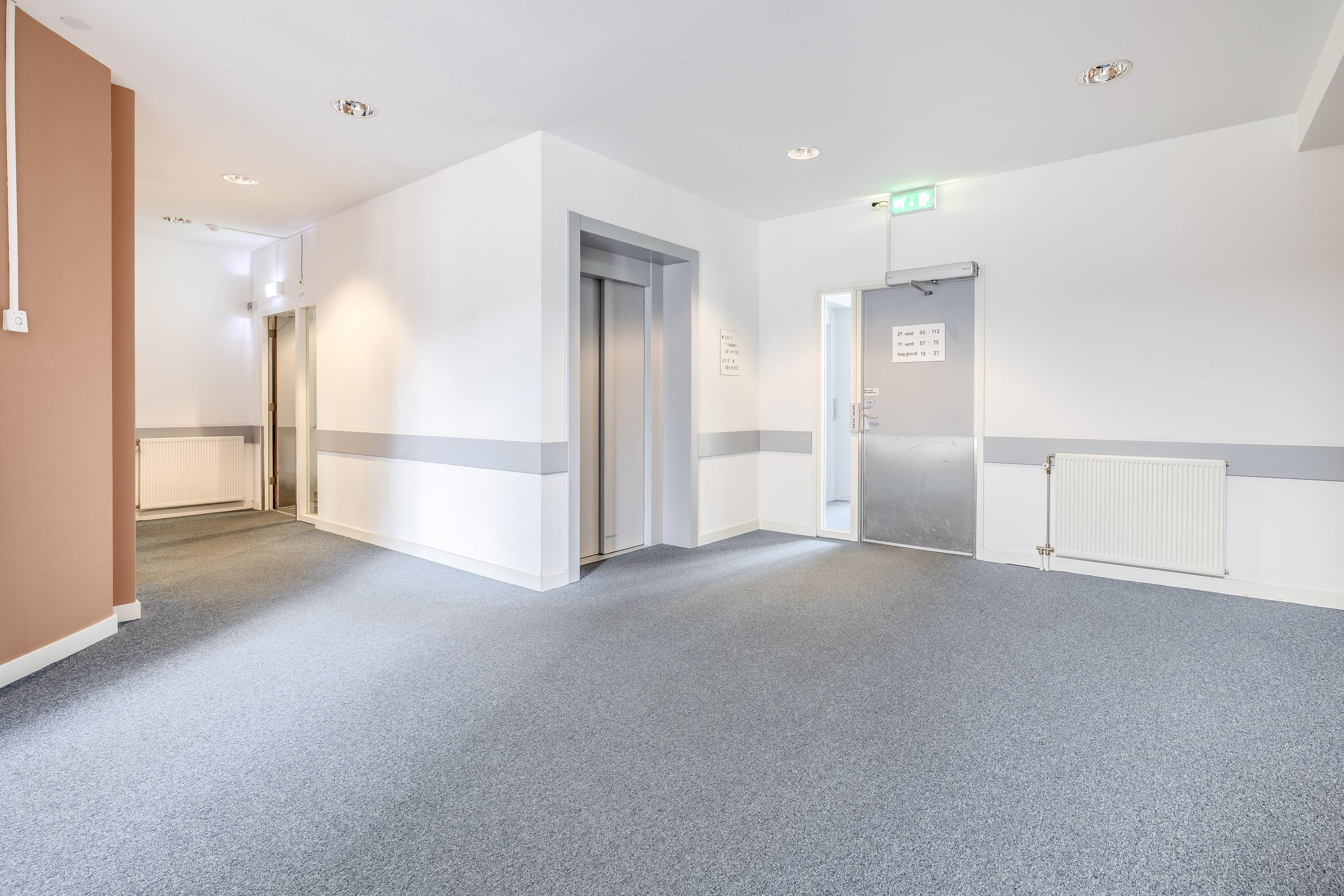 Gemeenschappelijke entree met een videofooninstallatie, brievenbussen, een centrale hal, lift en trappenhuis. Vanuit de entree bereiken we via de lift of een trap de 2e verdieping. Hier vinden we de voordeur van dit fijne appartement.
