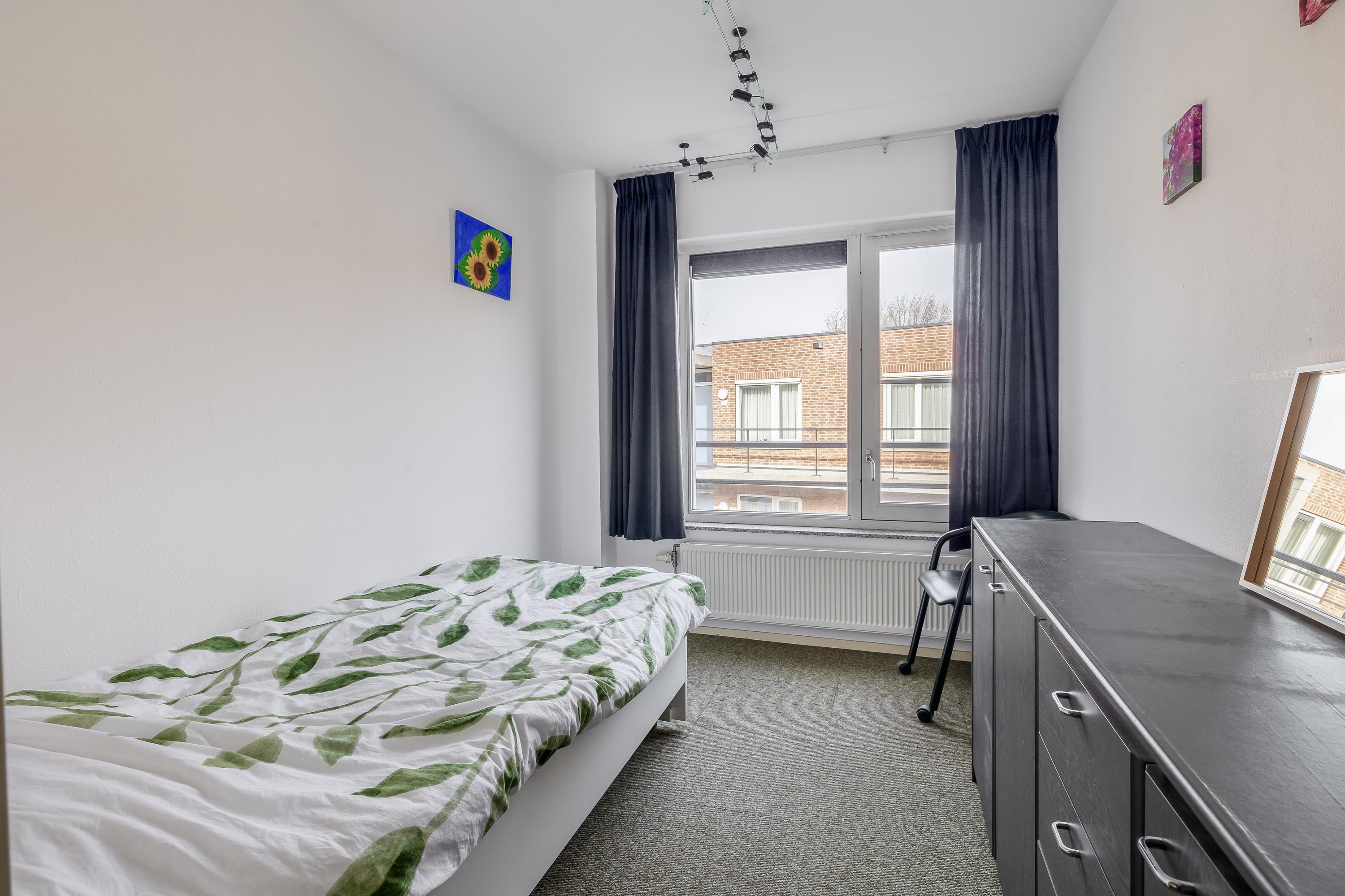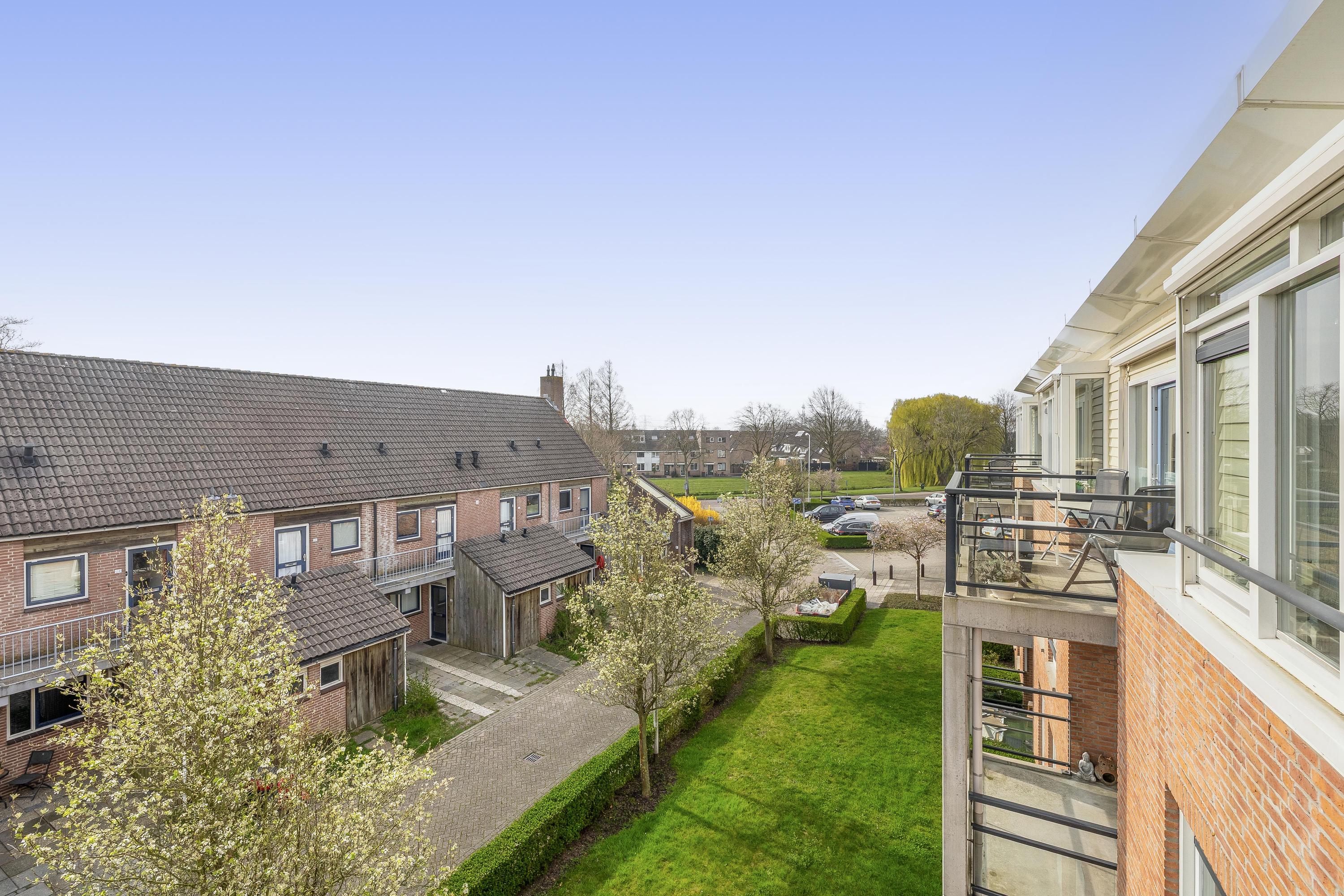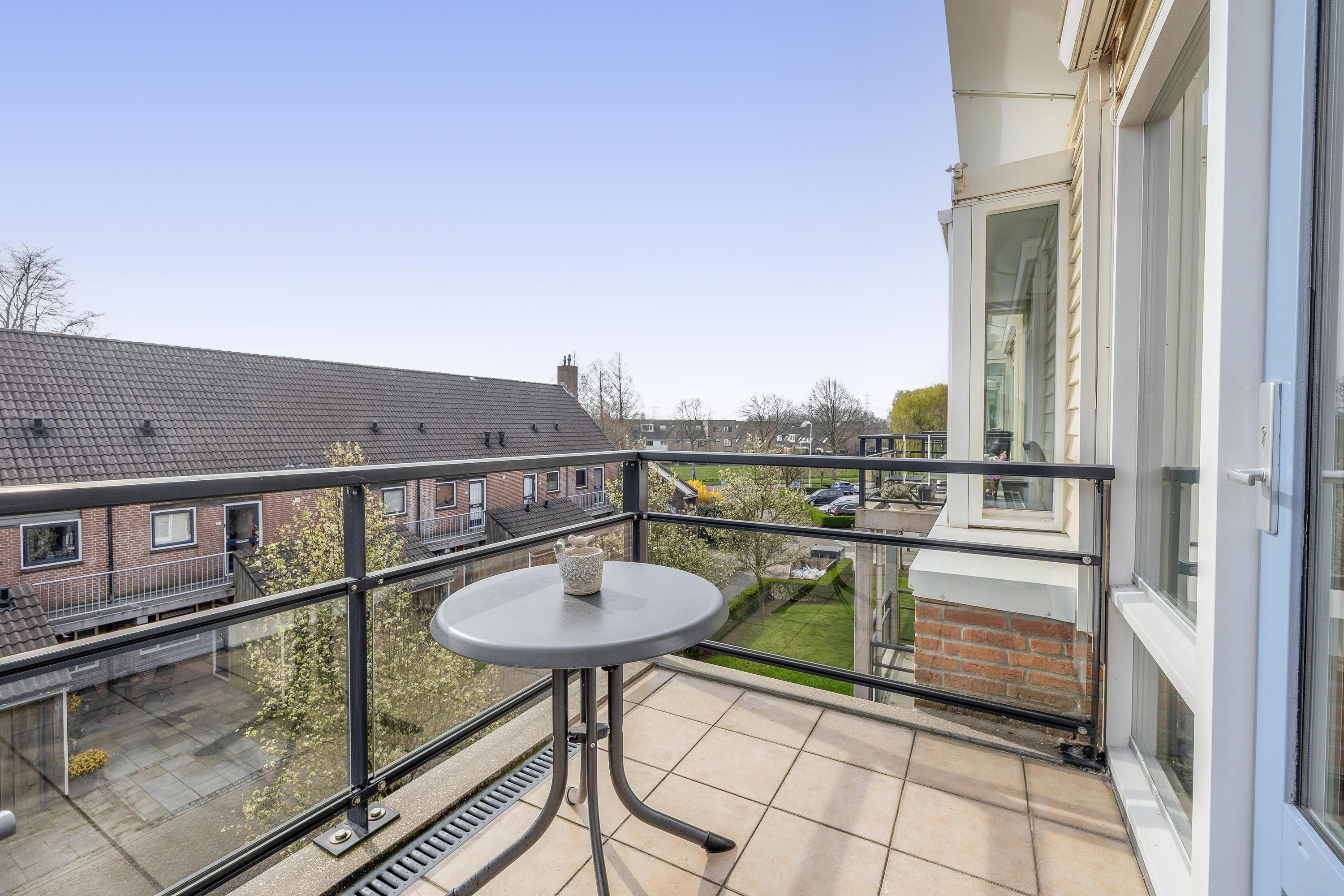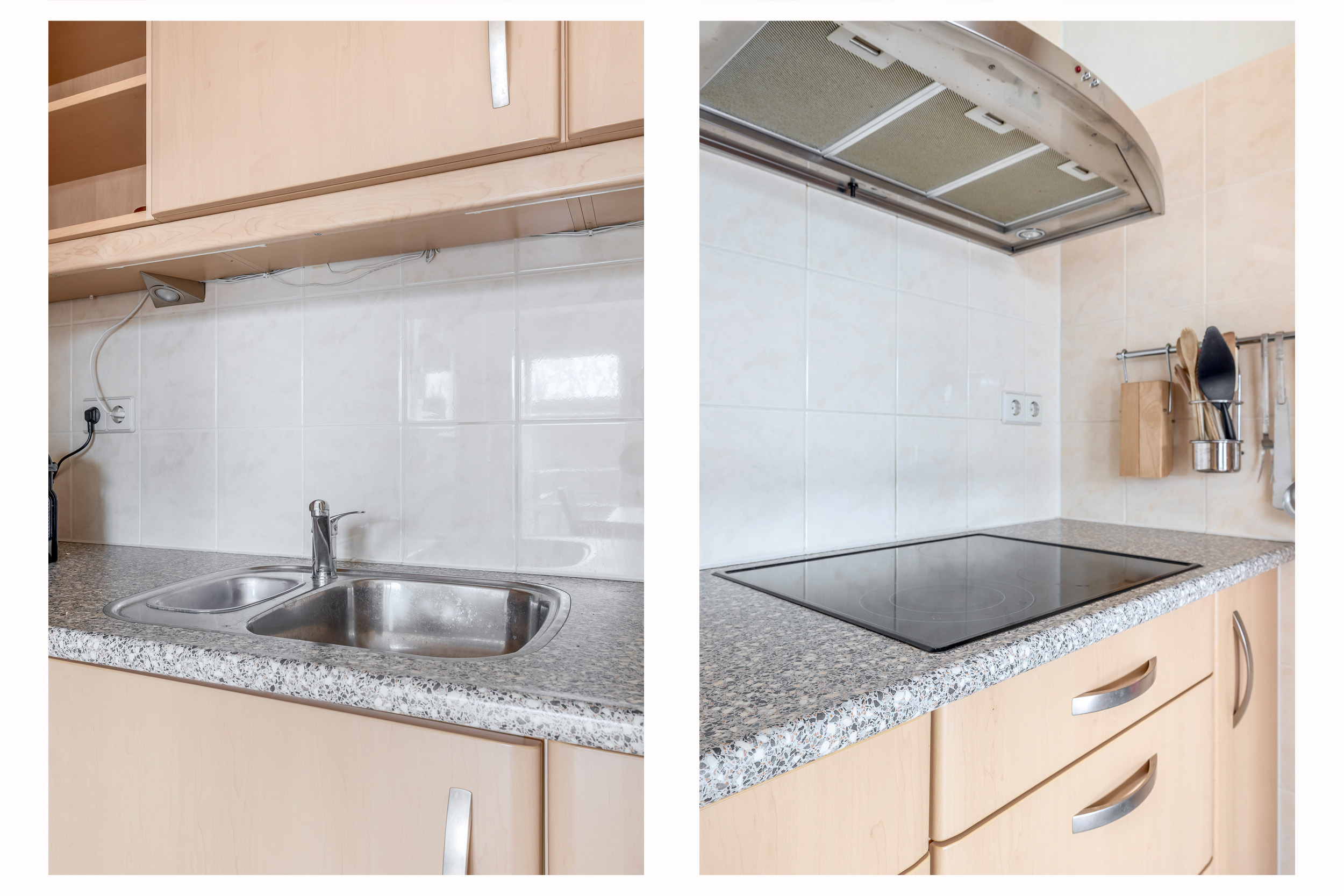 Vanuit de hal stap je de lichte en ruim opgezette woonkamer binnen, die is voorzien van airconditioning en in open verbinding staat met de keuken. Vanuit de woonkamer is er via een deur toegang tot het zonnige balkon, een fijne plek om buiten te zitten. Het raam in het woongedeelte is voorzien van screens, wat zorgt voor extra comfort door het weren van zonlicht en warmte. De keuken is uitgevoerd in een hoekopstelling met extra kastenwand en beschikt over diverse inbouwapparatuur, waaronder een keramische kookplaat, afzuigkap, koel-vriescombinatie, vaatwasser en combimagnetron.