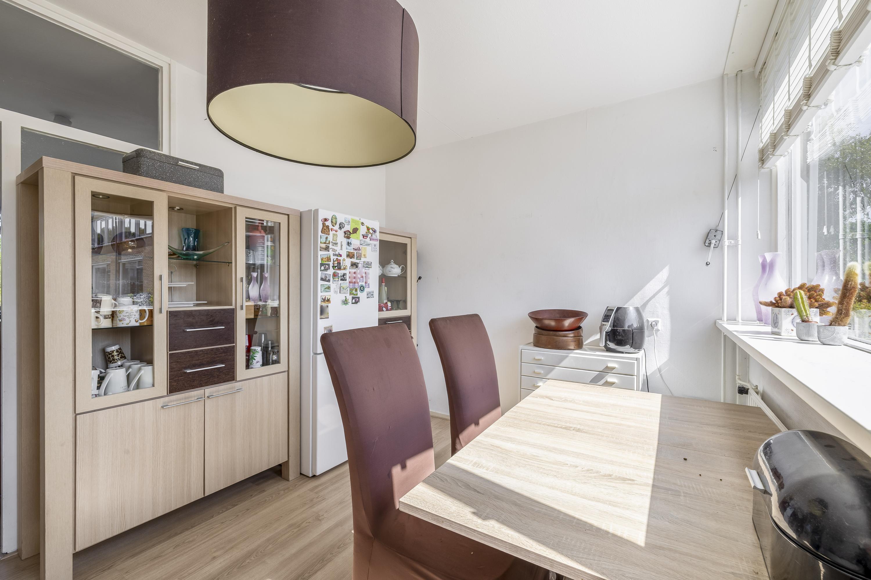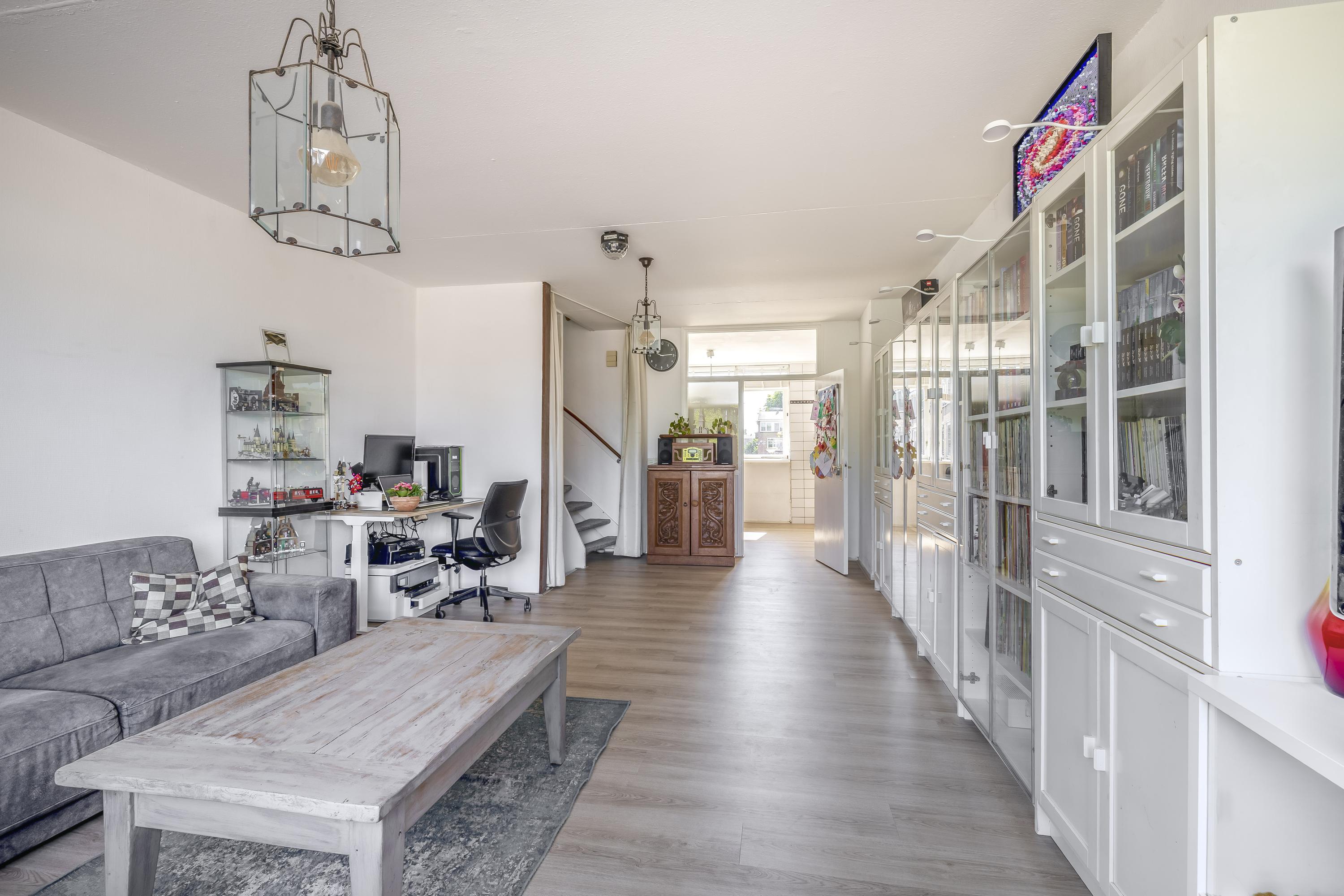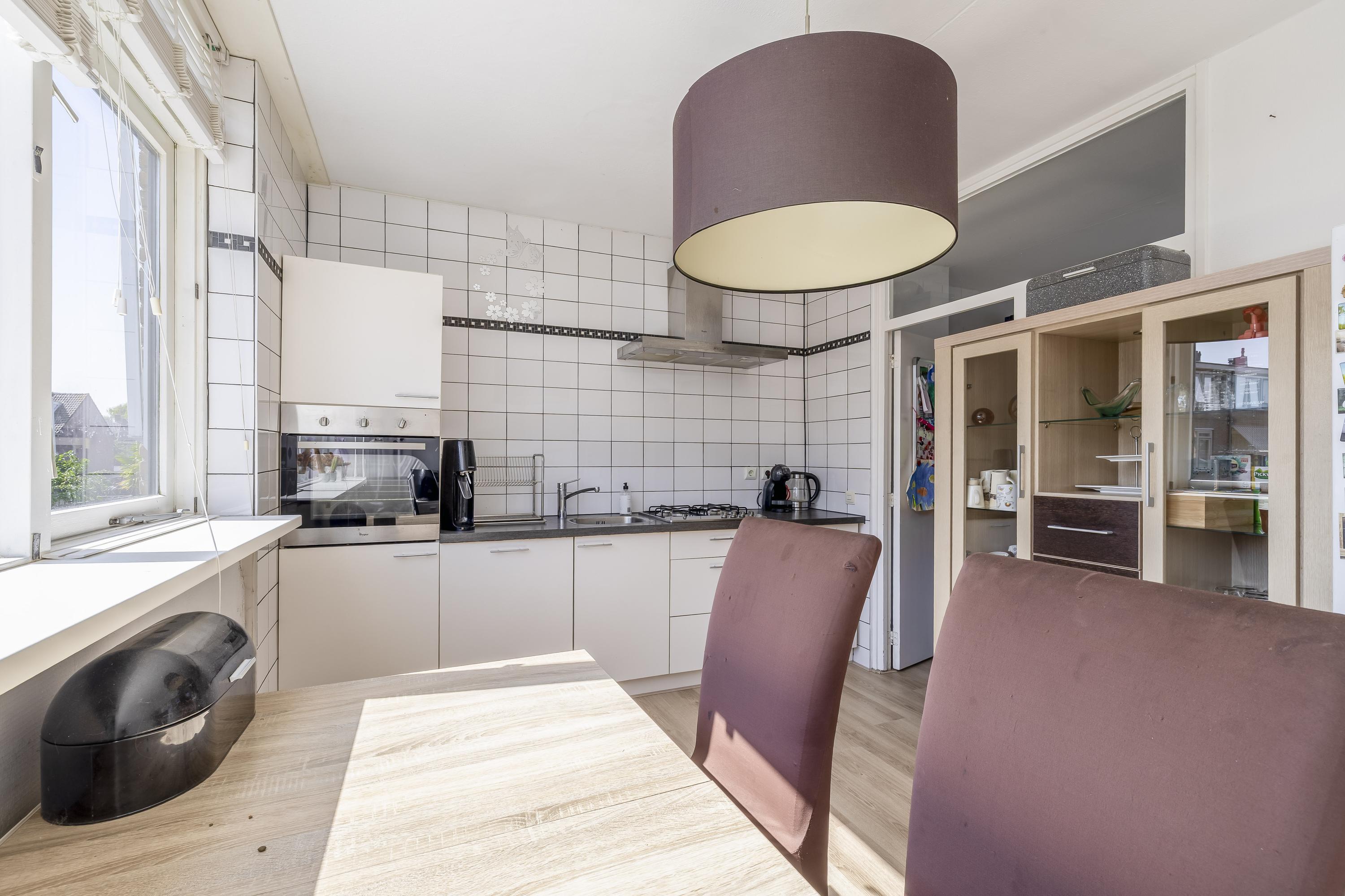 Via de trap in de hal kom je in de lichte en ruime woonkamer, gelegen aan de voorzijde van de woning. Hier is volop plek voor een gezellige zithoek en een grote eettafel. Aan de achterzijde bevindt zich de keuken, die is uitgerust met diverse inbouwapparatuur, waaronder een gaskookplaat, afzuigkap, oven en vaatwasser. Deze verdieping is afgewerkt met een laminaatvloer.