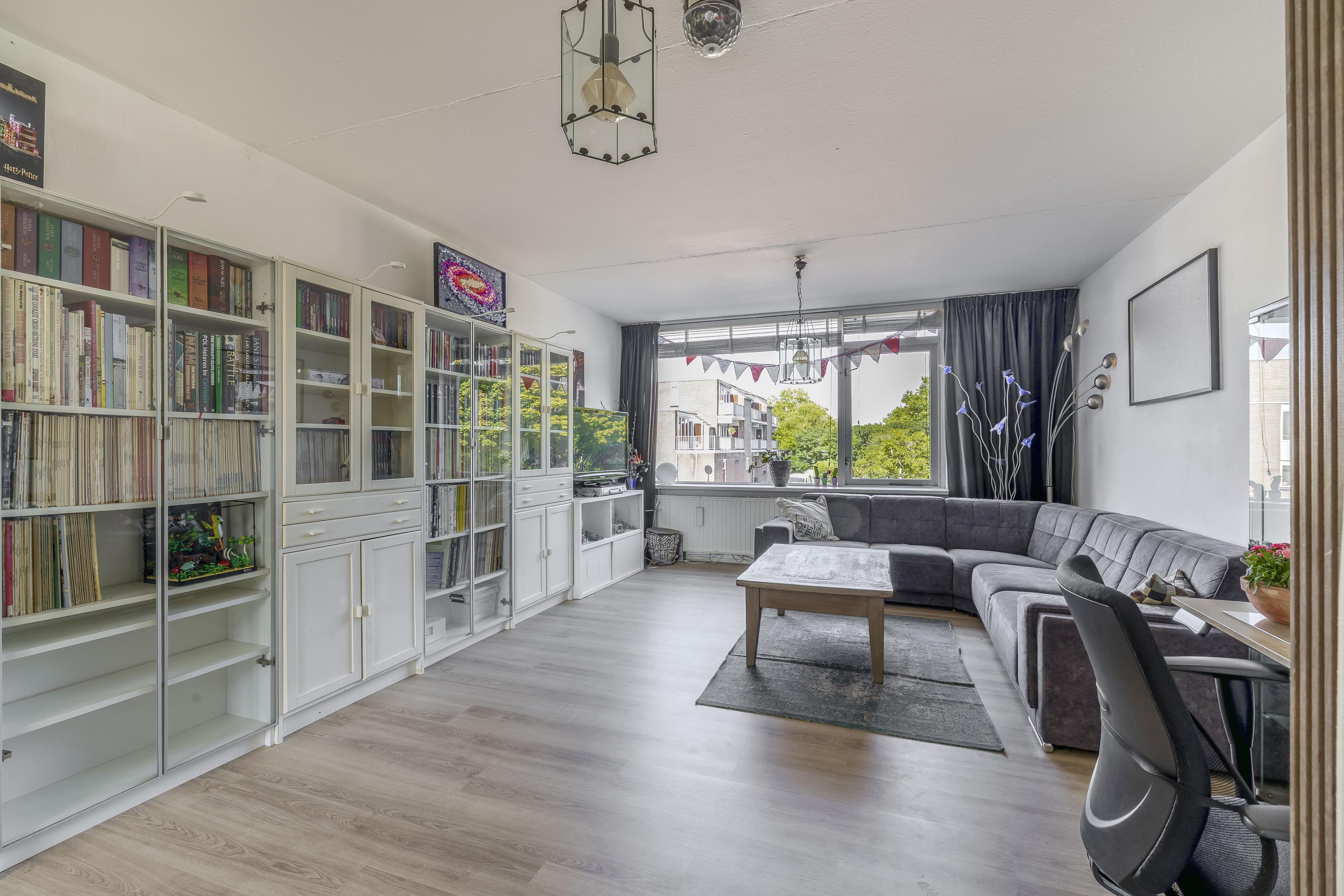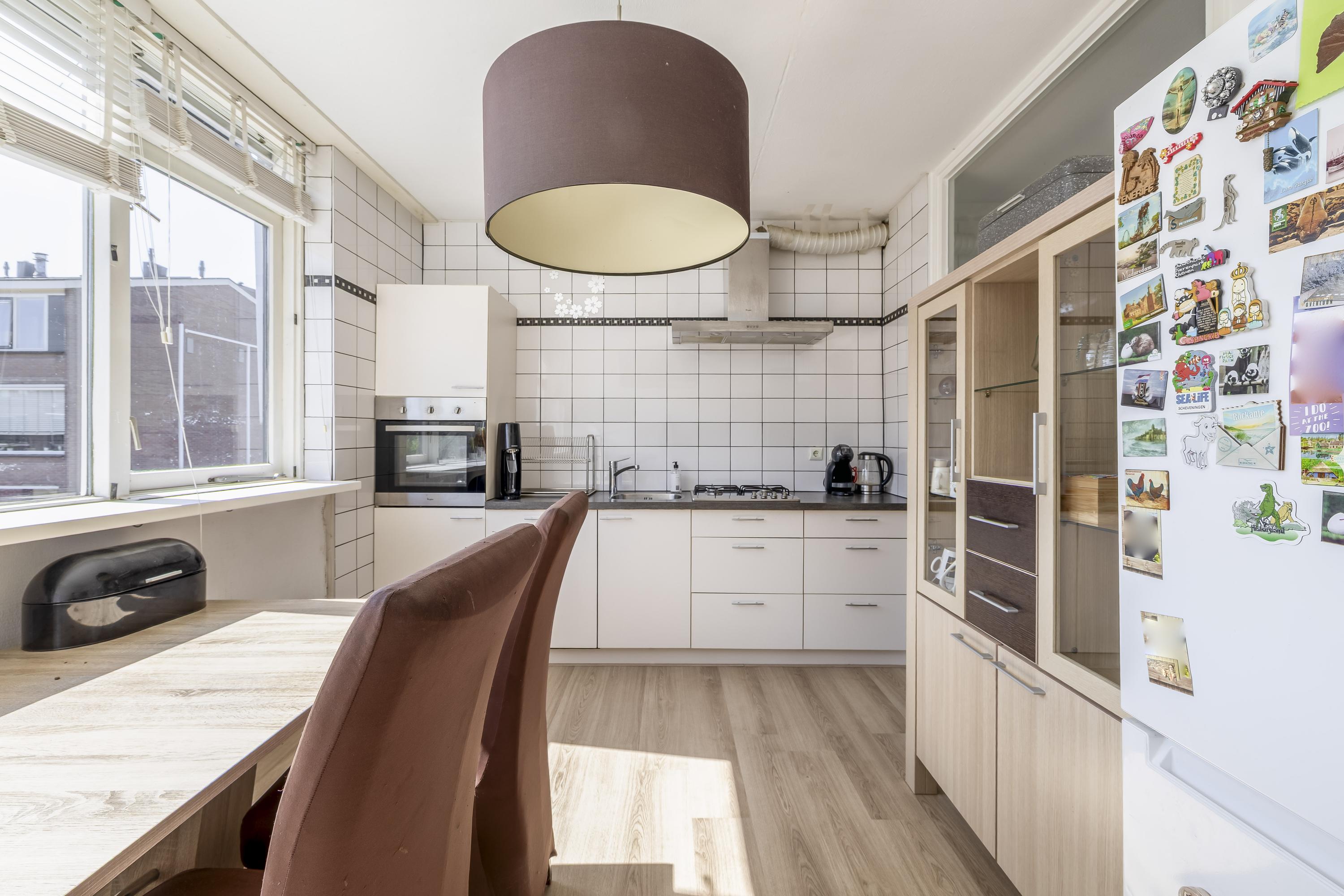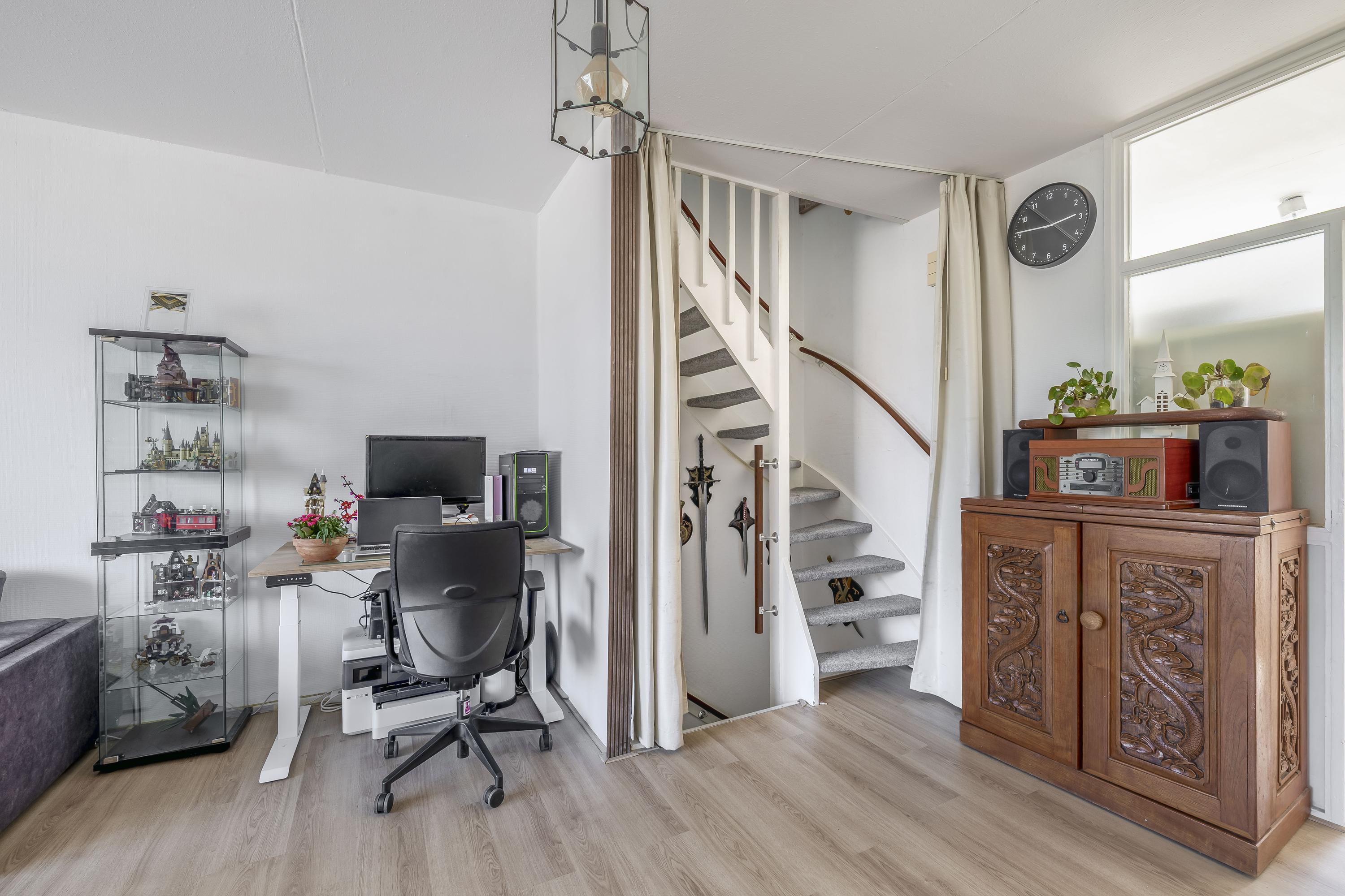 Via de trap in de hal kom je in de lichte en ruime woonkamer, gelegen aan de voorzijde van de woning. Hier is volop plek voor een gezellige zithoek en een grote eettafel. Aan de achterzijde bevindt zich de keuken, die is uitgerust met diverse inbouwapparatuur, waaronder een gaskookplaat, afzuigkap, oven en vaatwasser. Deze verdieping is afgewerkt met een laminaatvloer.