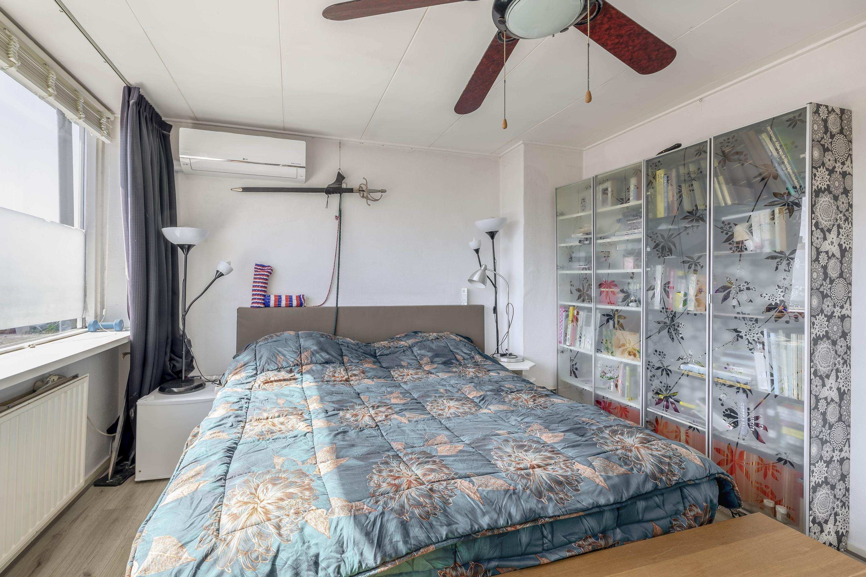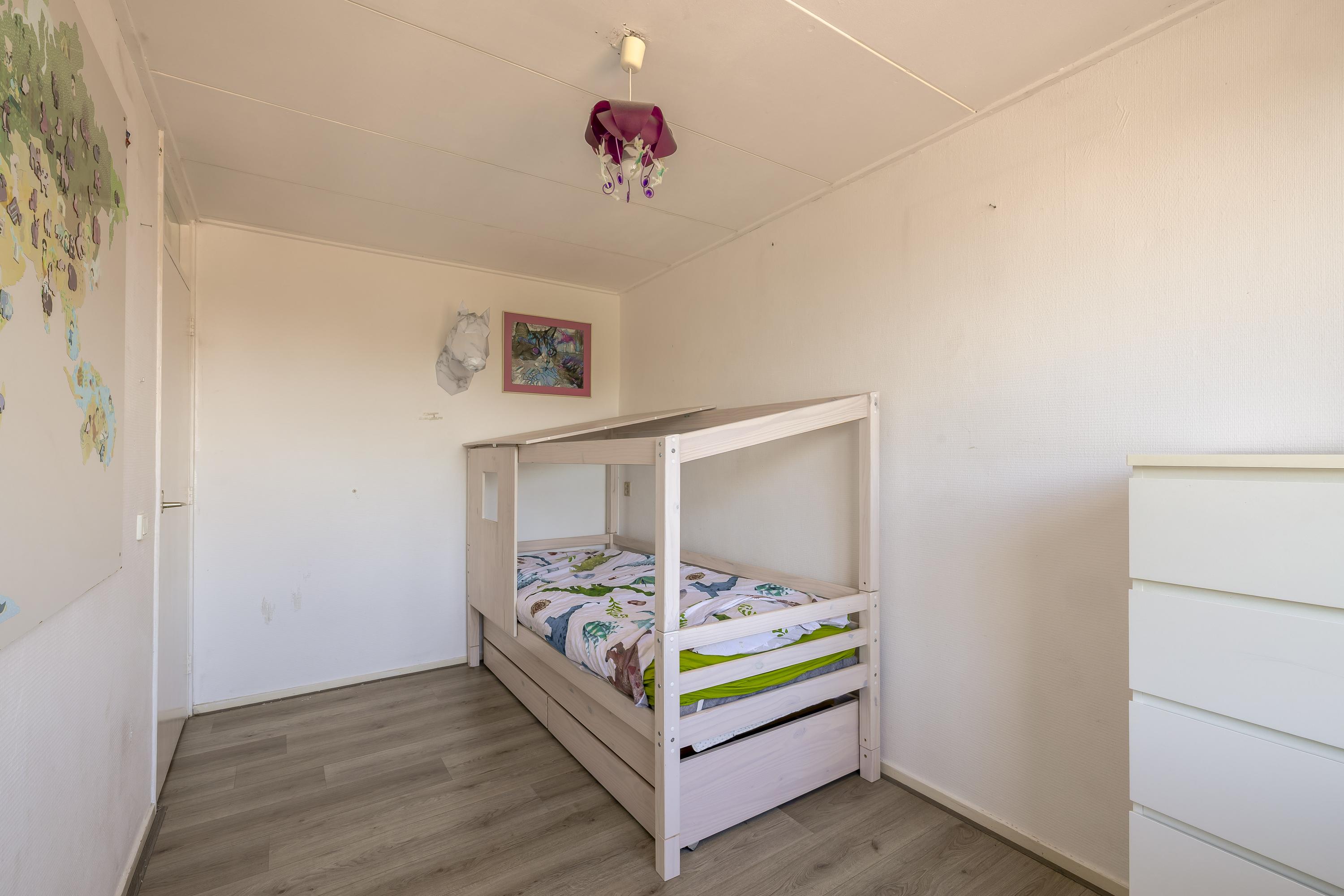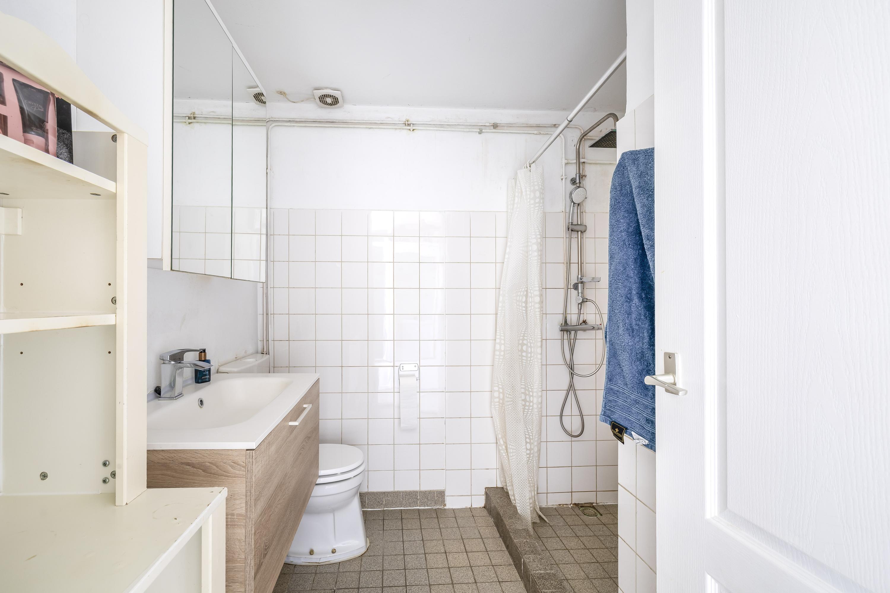 Via de trap in de woonkamer bereik je de overloop van de 2e verdieping, waar drie slaapkamers en de badkamer zijn gesitueerd. Aan de voorzijde bevinden zich twee slaapkamers, terwijl aan de achterzijde de ruime hoofdslaapkamer ligt, uitgerust met airconditioning voor extra comfort. De badkamer is voorzien van een wastafelmeubel, doucheruimte, toilet en er is een aansluiting voor de wasmachine/droger. Op de overloop vind je een kast met de opstelling van de cv-ketel (Intergas 2010) en een extra kast met handige bergruimte. Ook deze verdieping is afgewerkt met een laminaatvloer.