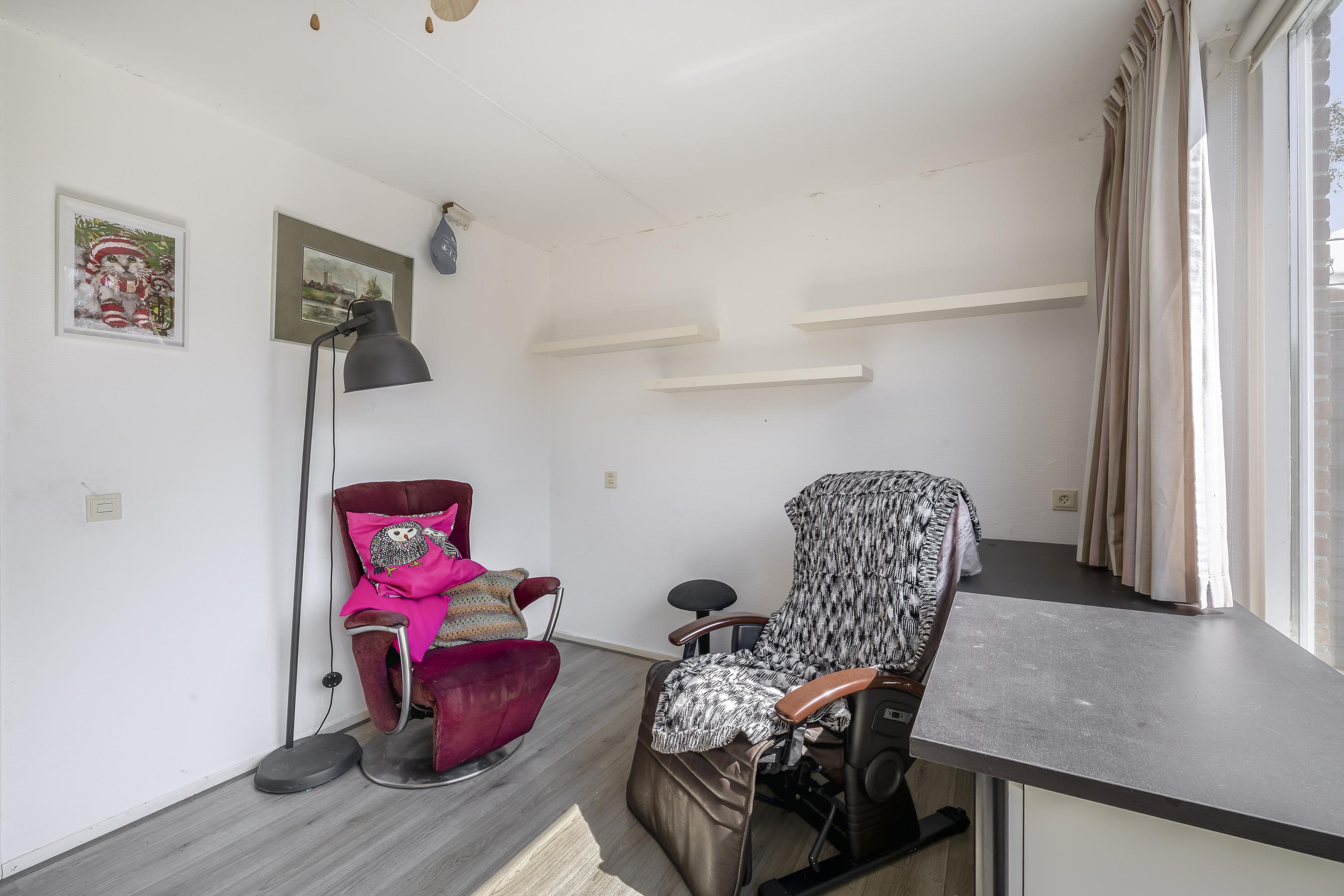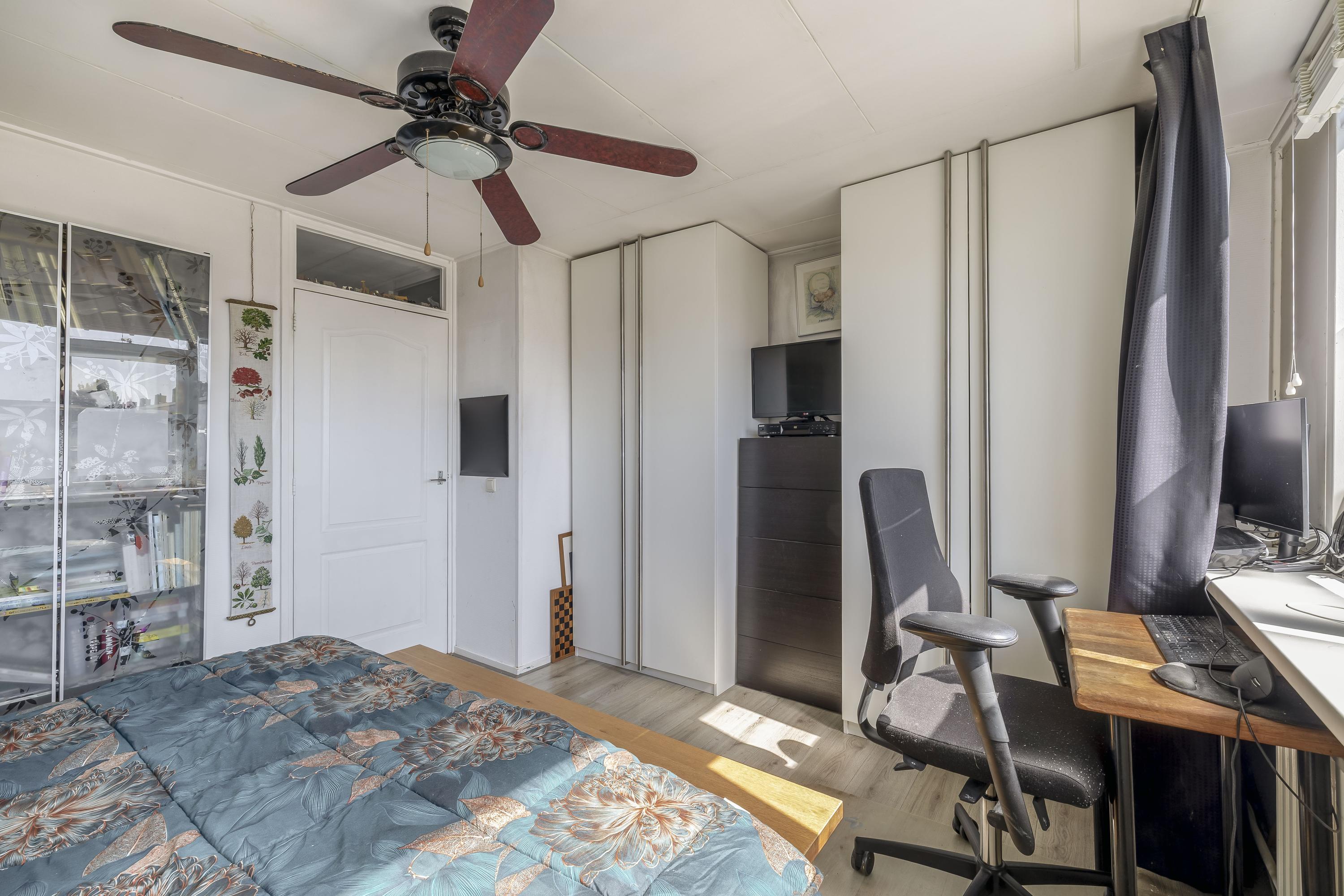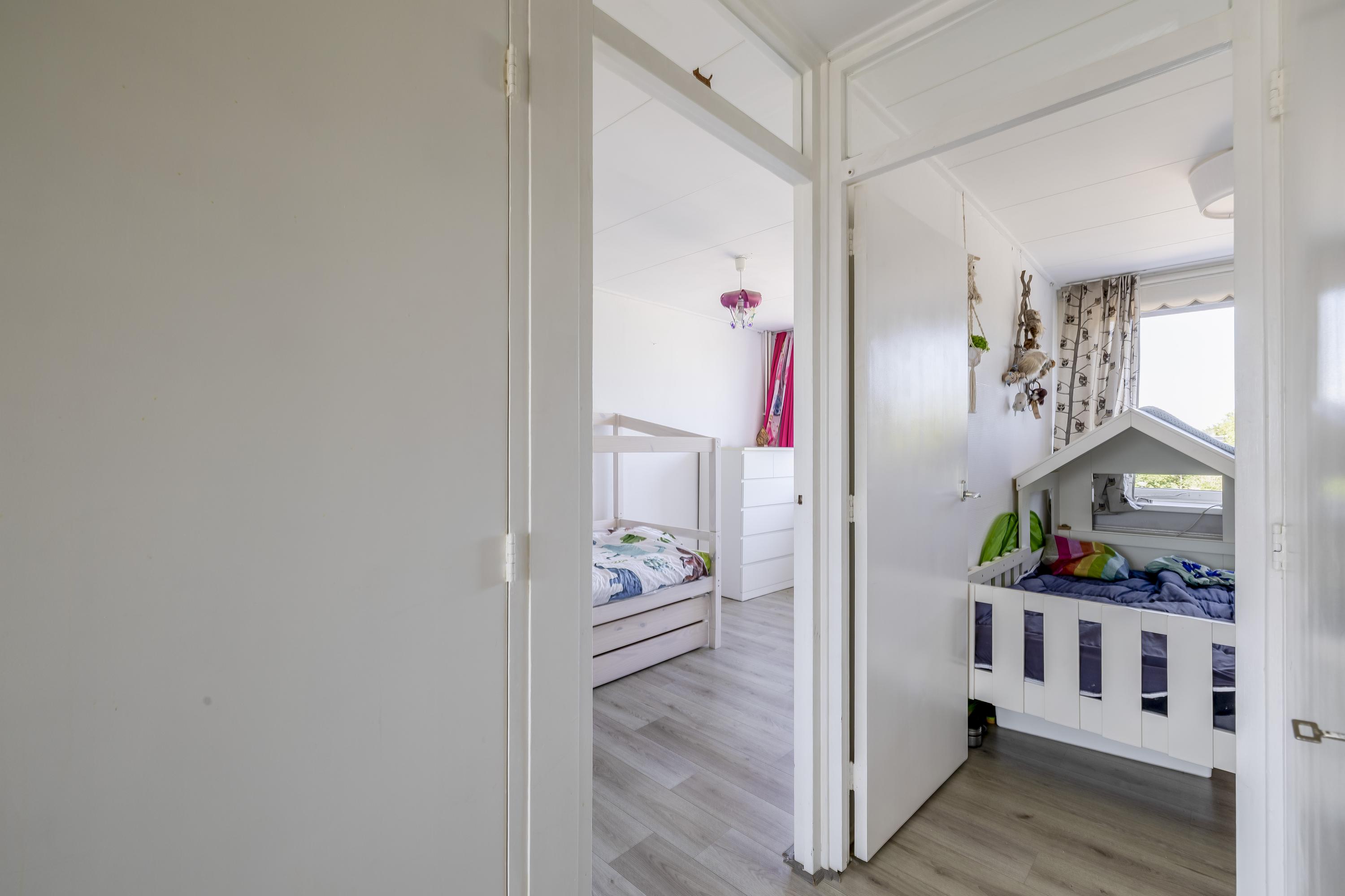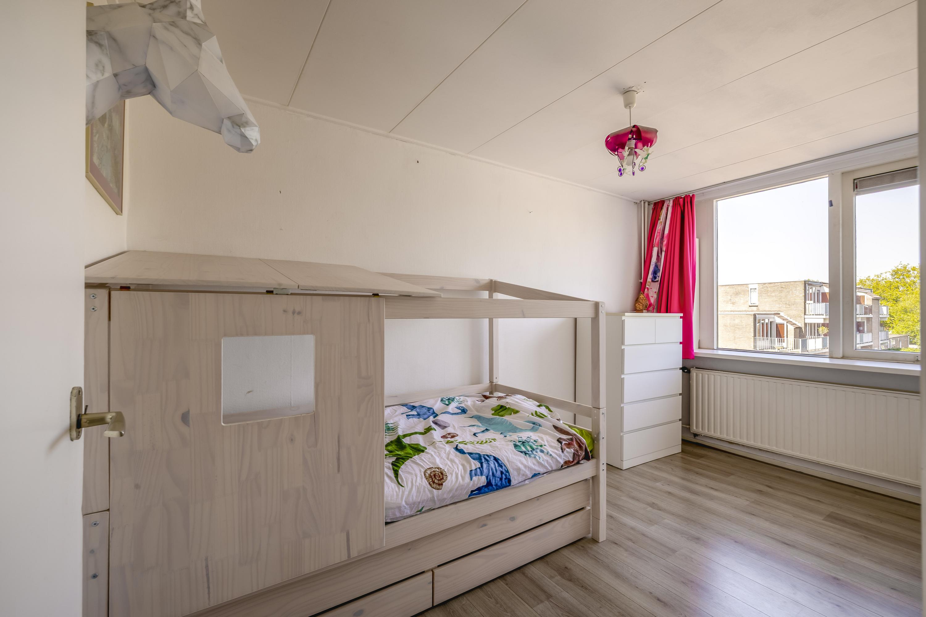 Via de trap in de woonkamer bereik je de overloop van de 2e verdieping, waar drie slaapkamers en de badkamer zijn gesitueerd. Aan de voorzijde bevinden zich twee slaapkamers, terwijl aan de achterzijde de ruime hoofdslaapkamer ligt, uitgerust met airconditioning voor extra comfort. De badkamer is voorzien van een wastafelmeubel, doucheruimte, toilet en er is een aansluiting voor de wasmachine/droger. Op de overloop vind je een kast met de opstelling van de cv-ketel (Intergas 2010) en een extra kast met handige bergruimte. Ook deze verdieping is afgewerkt met een laminaatvloer.