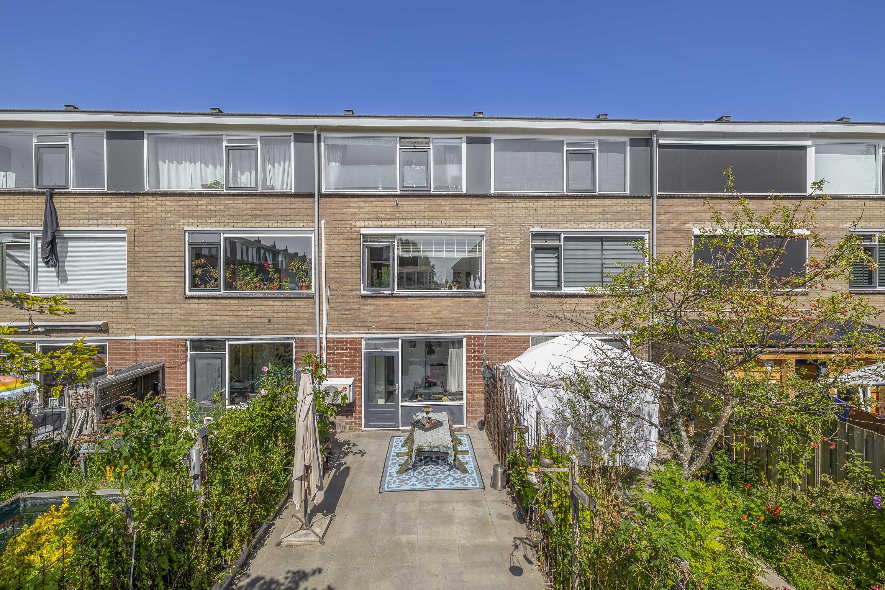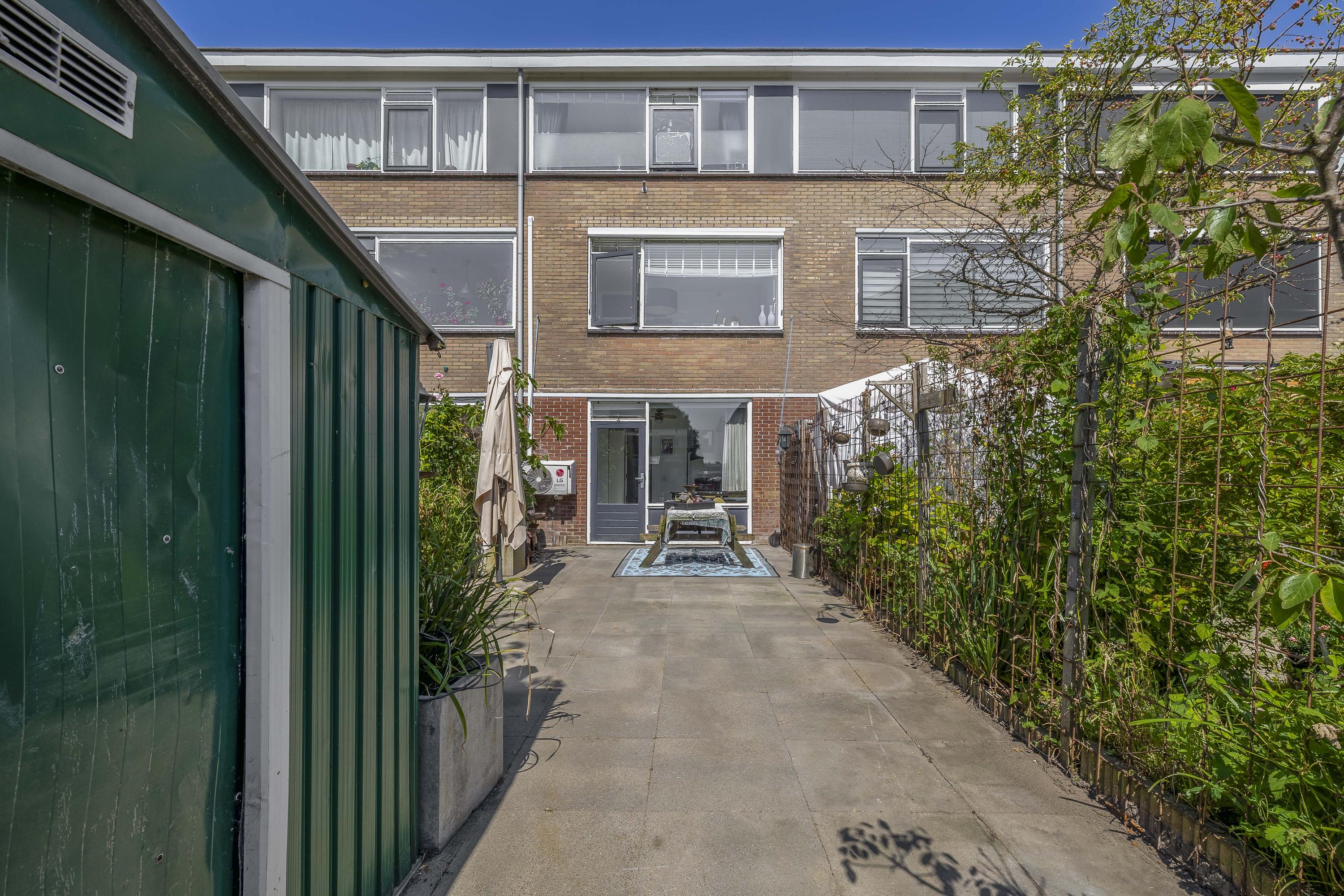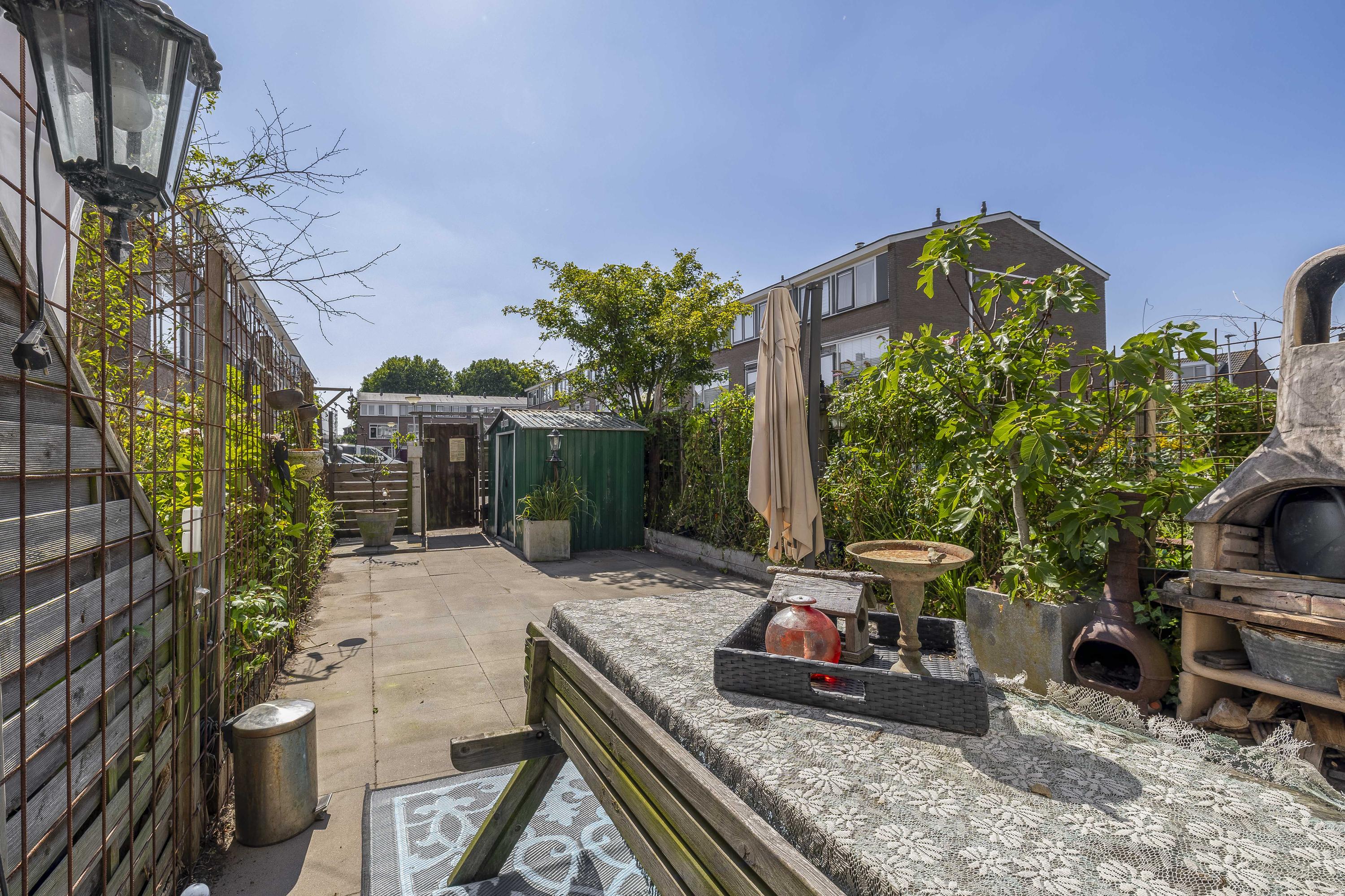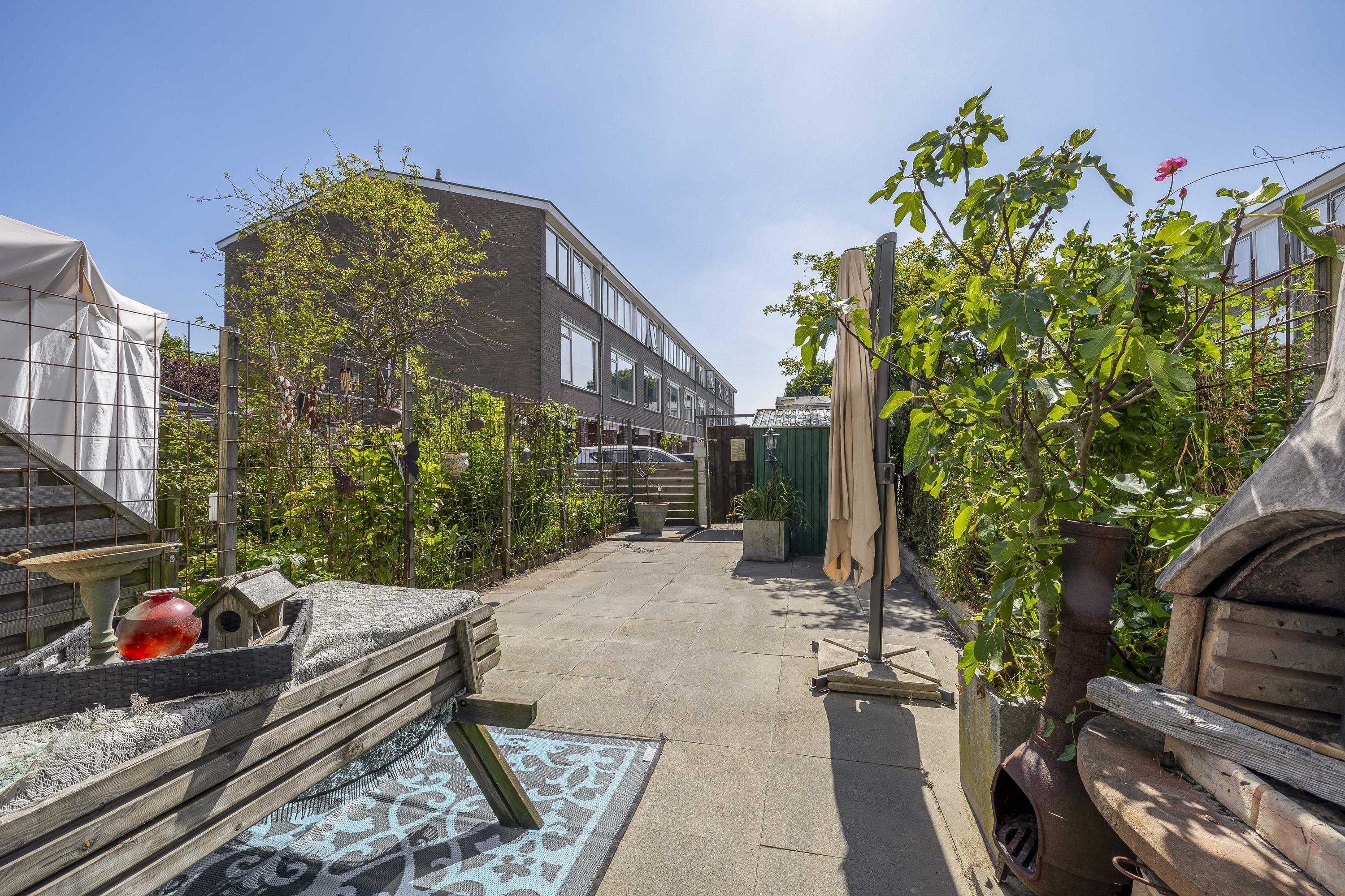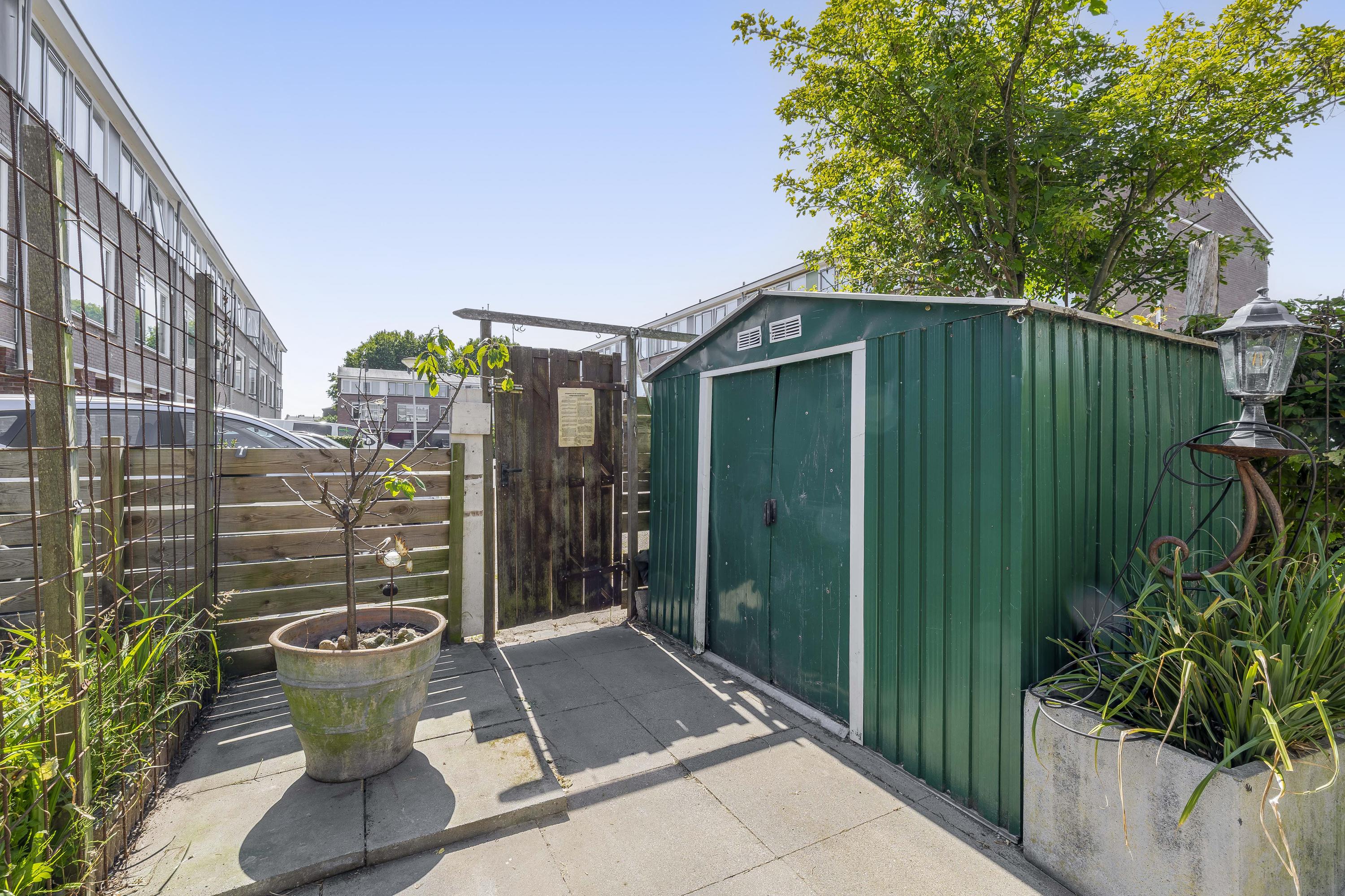Voortuin aangelegd met siertegels en voorzien van een elektra punt en oprit voor 1 auto. De achtertuin is gelegen op het zuidwesten en is volledig voorzien van terrastegels. Achter in de tuin is een vrijstaande berging te vinden, voorzien van elektra. De tuin is bereikbaar via een achterom.