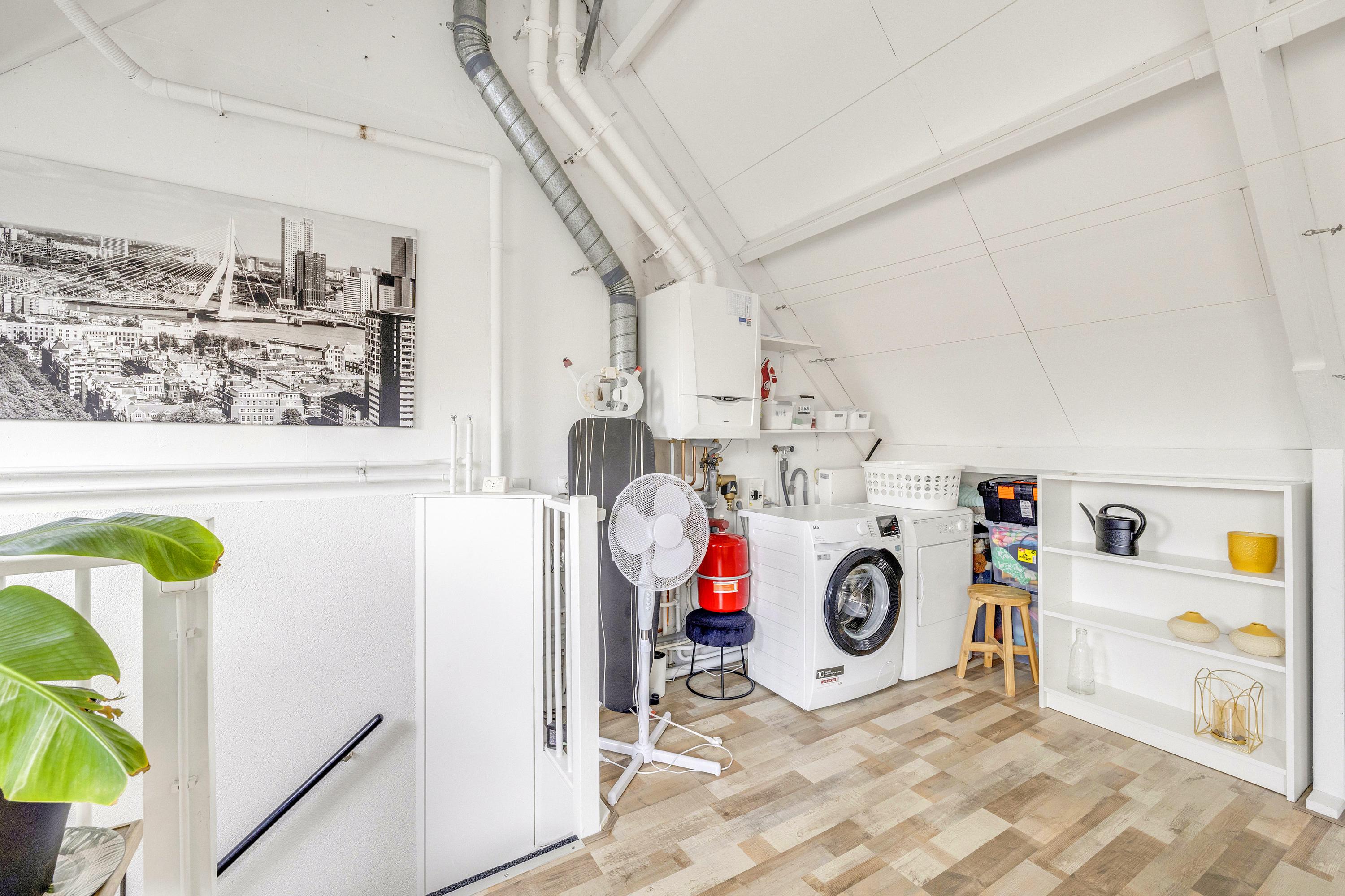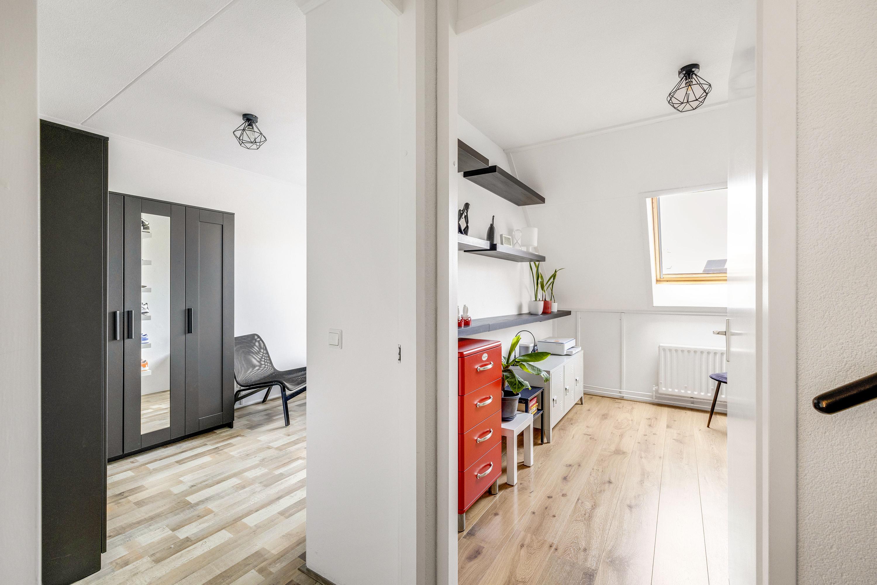 De 2e verdieping is bereikbaar via een vaste trap en bestaat uit één ruime, lichte ruimte die momenteel is ingericht als extra slaapkamer. In deze ruimte bevindt zich de opstelling van de cv-combiketel (Remeha, 2022), mechanische ventilatie box en de aansluitingen voor de wasmachine en droger, waardoor het functioneel en praktisch is. De verdieping beschikt over twee dakramen, die zijn vernieuwd en uitgevoerd in kunststof met HR-glas, welke zorgen voor veel natuurlijk licht. Hierdoor is de ruimte ideaal te gebruiken als slaapkamer, hobbyruimte of extra werkplek.