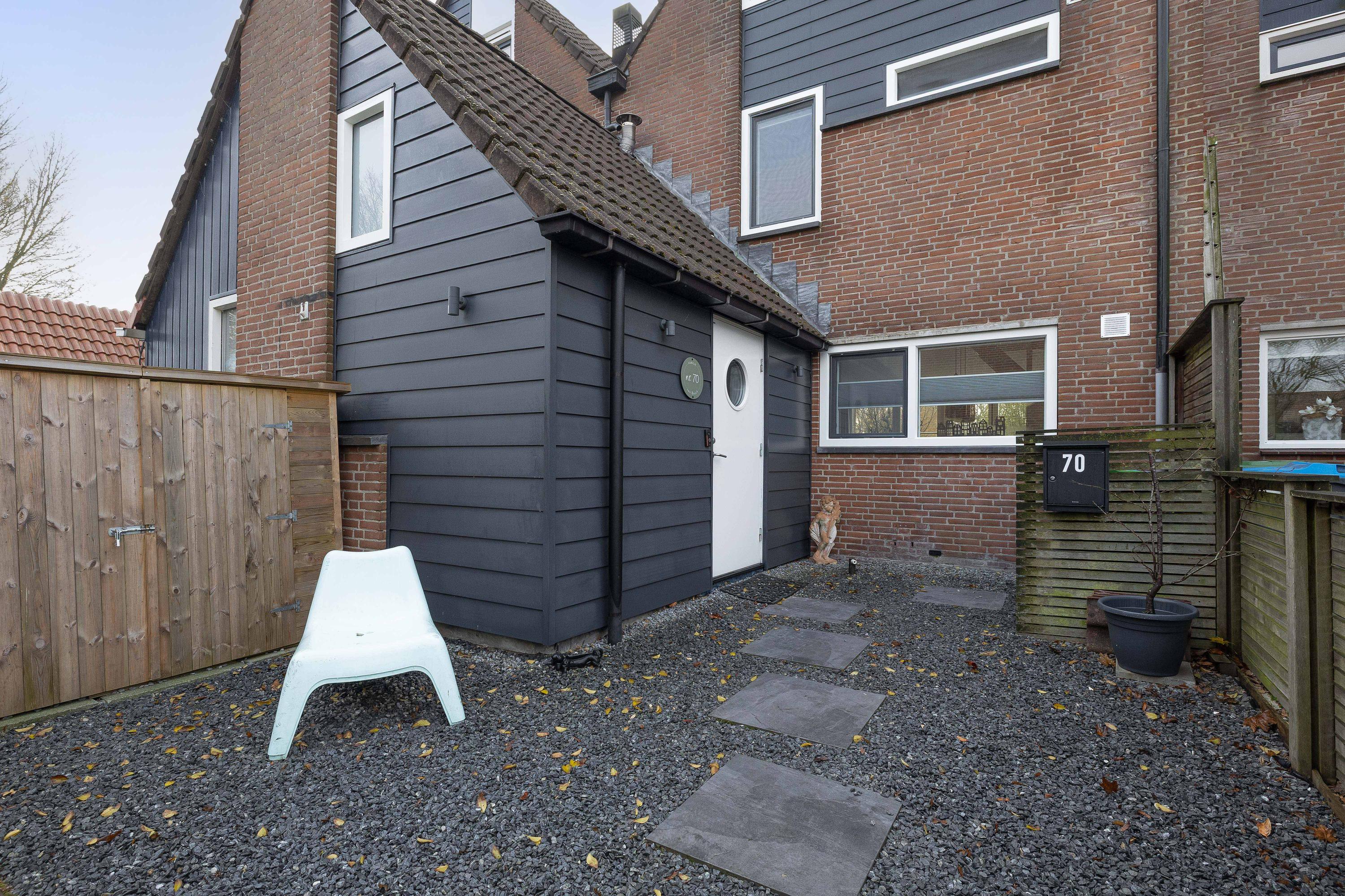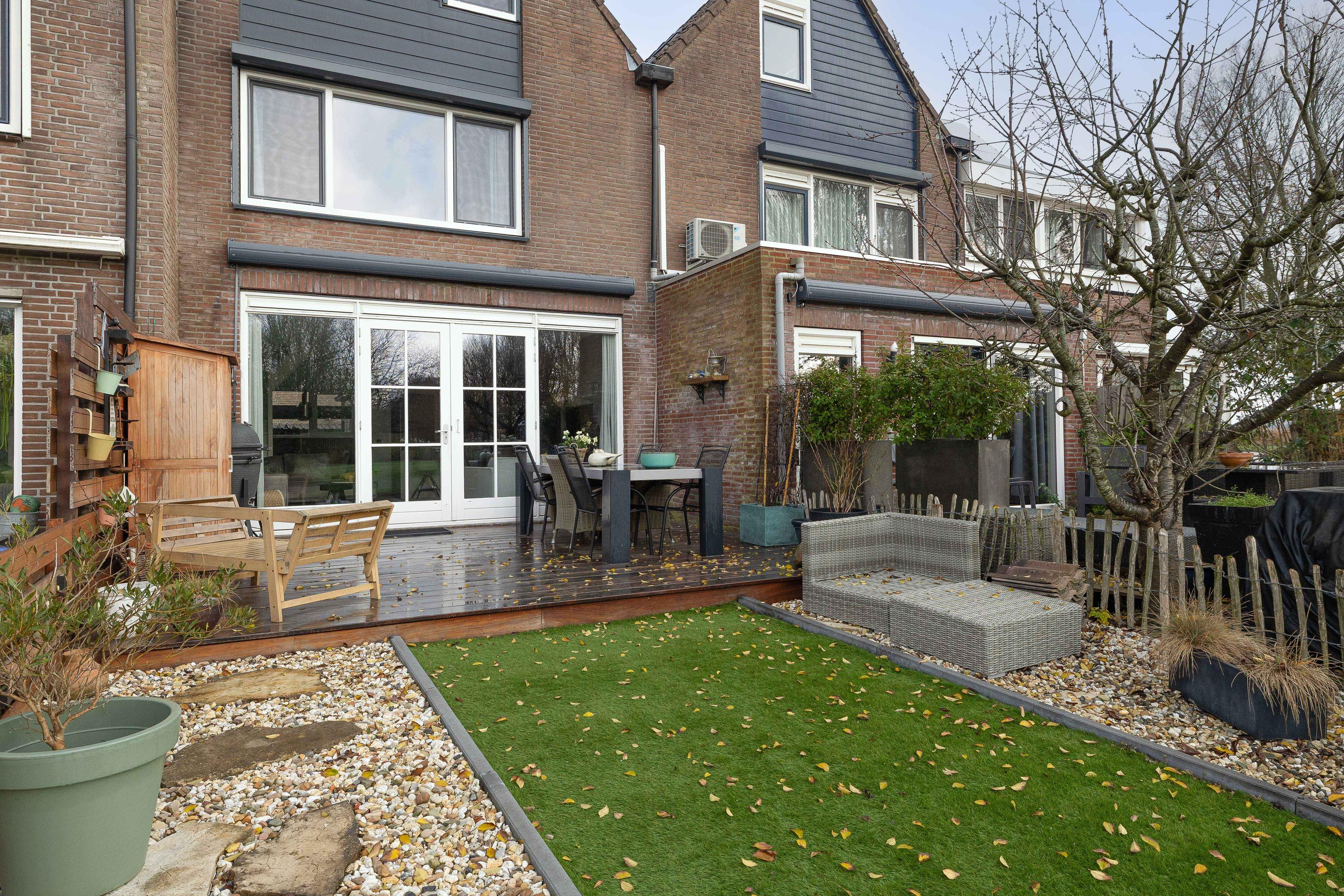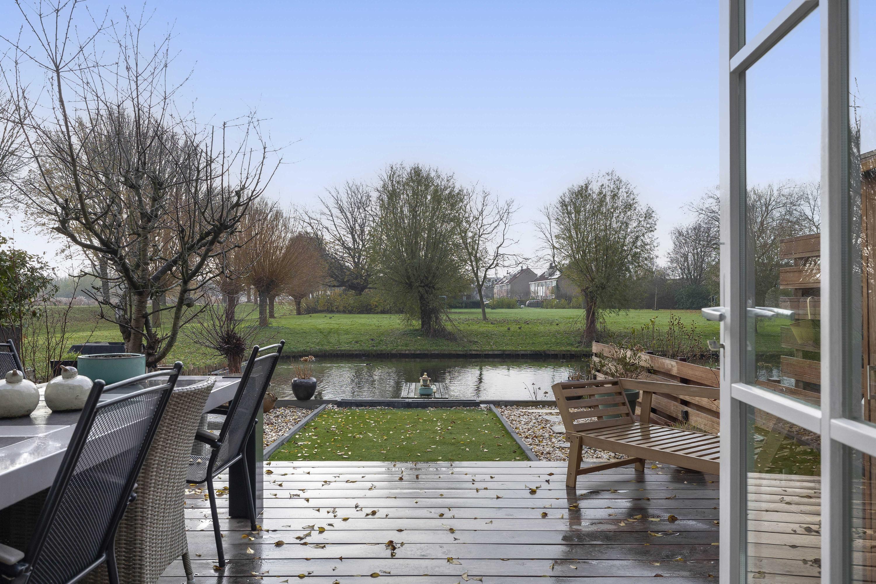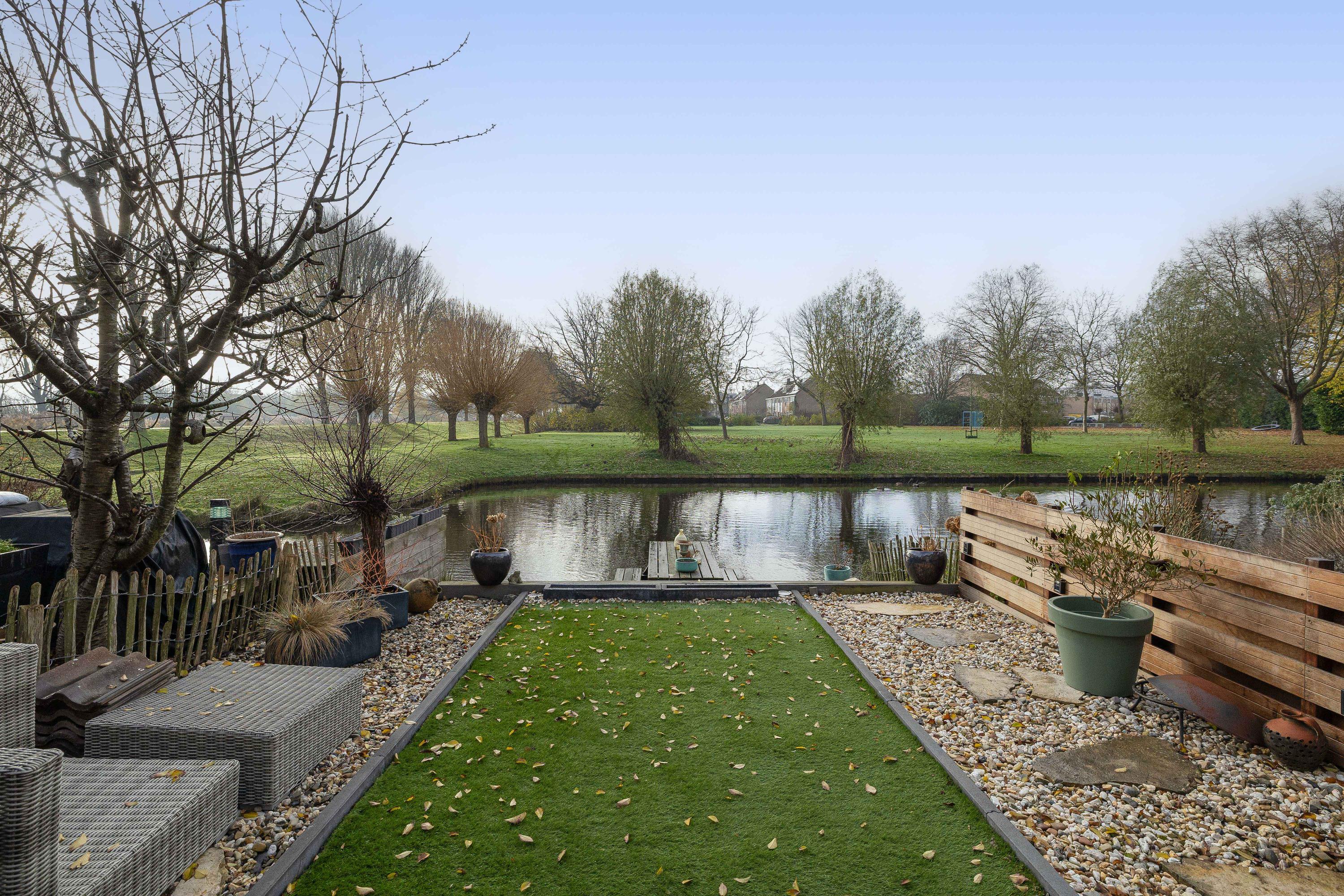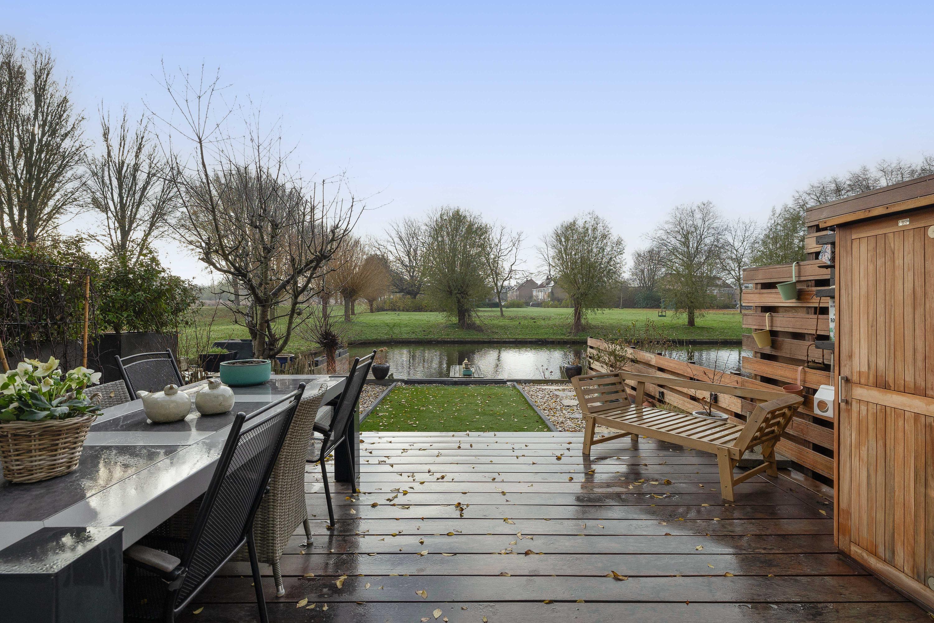 De woning beschikt over zowel een verzorgde voortuin als een ruime achtertuin. De voortuin is onderhoudsvriendelijk aangelegd. De achtertuin gelegen op het zonnige zuidwesten en grotendeels vernieuwd in 2024, vormt een heerlijke buitenruimte. Met een vlonder aan het water, vrij uitzicht over het rustige achtergelegen parkje is het hier optimaal genieten. Aan de achterzijde van de woning is een handige tuinkast te vinden voor het opbergen van spullen en de achterzijde is voorzien van elektrische zonwering.