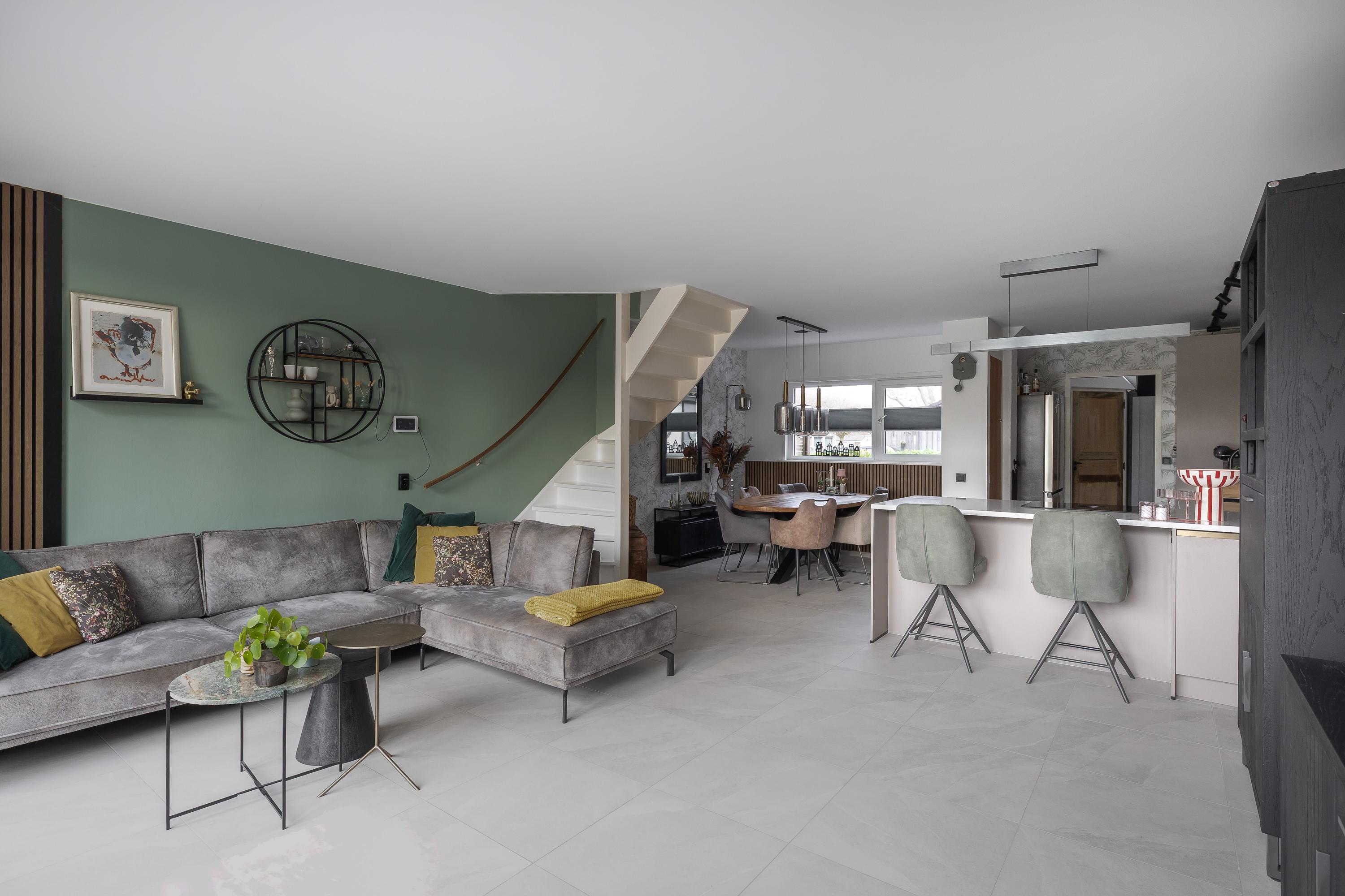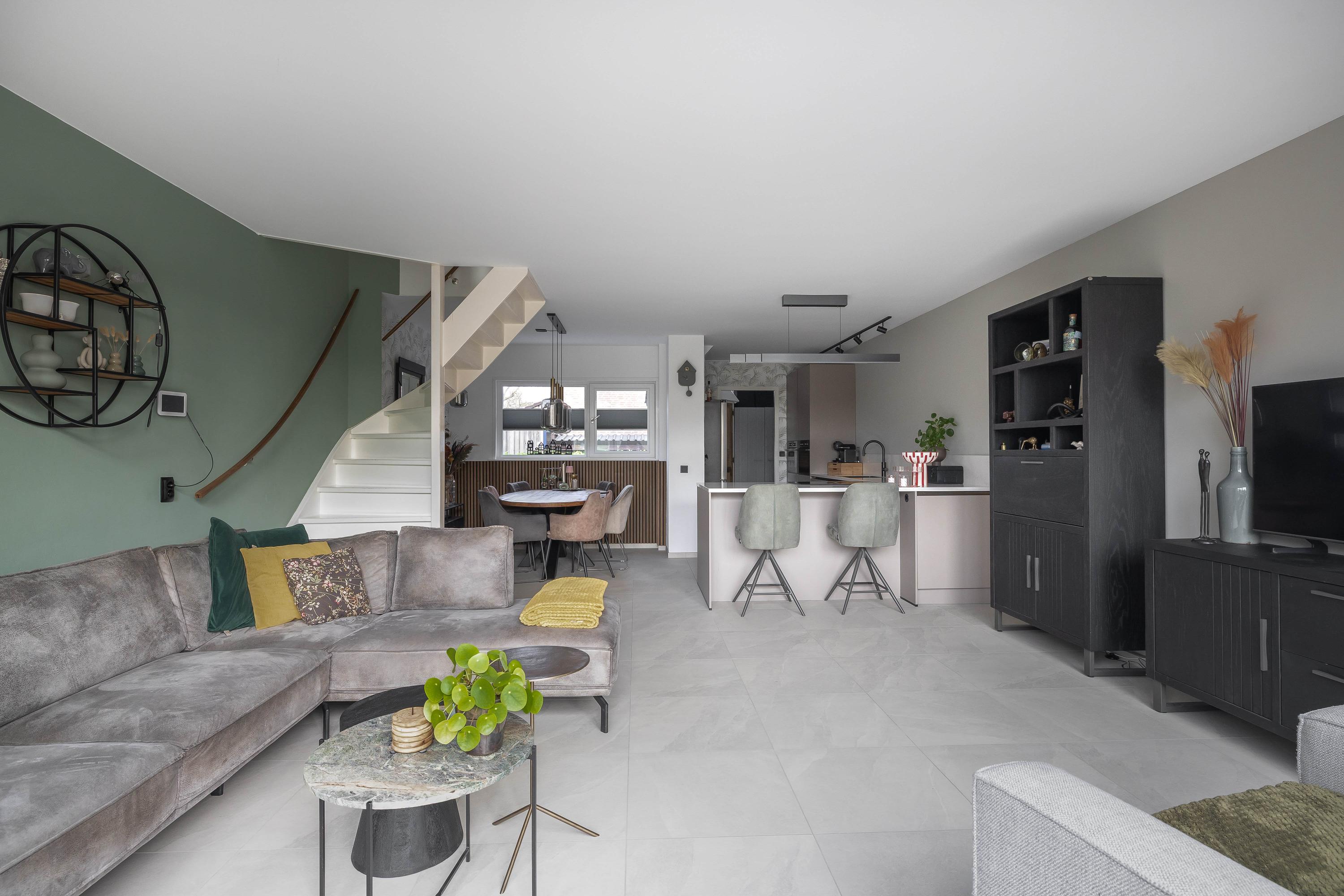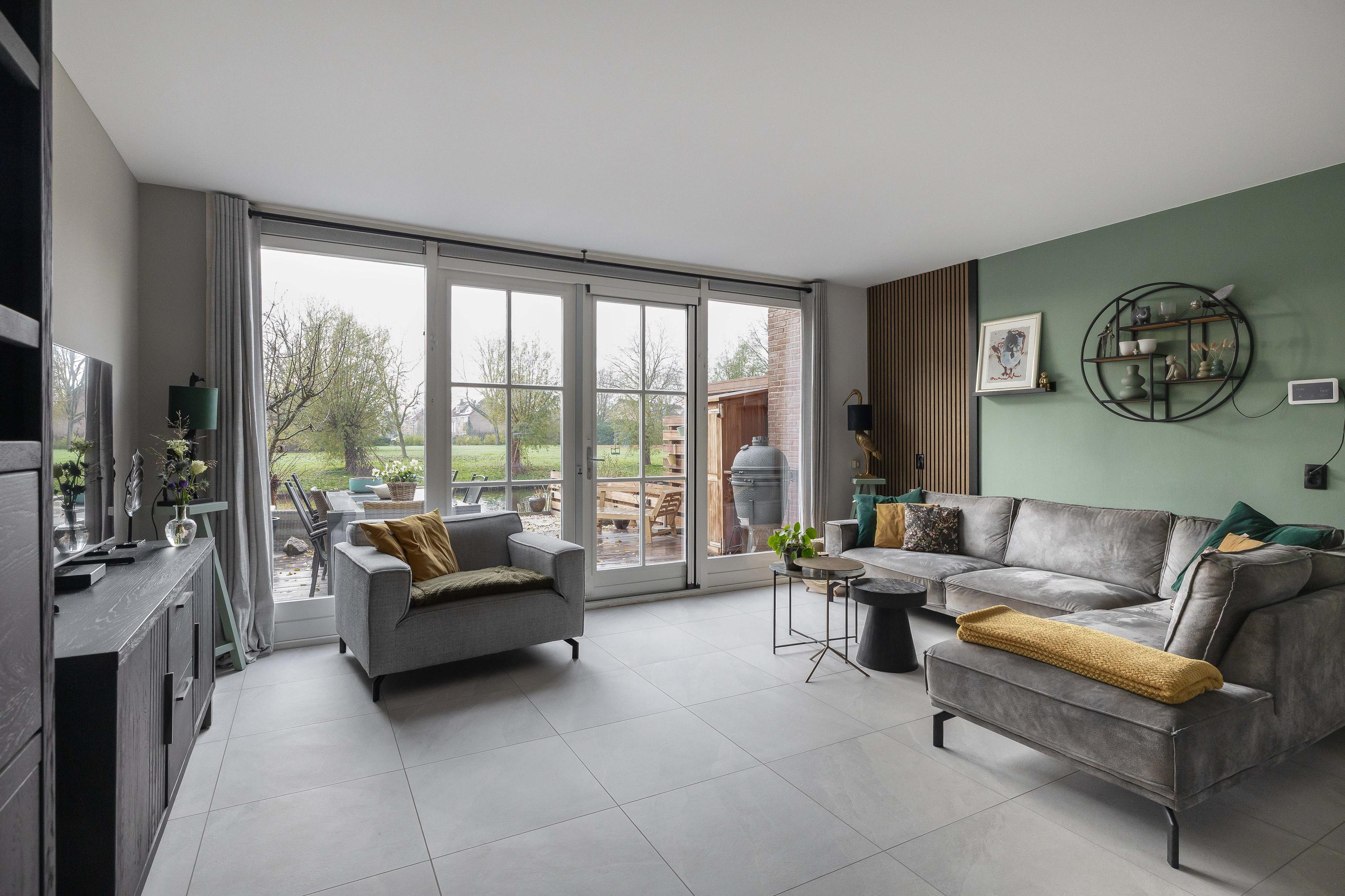 Je stapt binnen in een ruime entree, ontstaan doordat de voormalige berging bij de woning is betrokken, met aan de linkerzijde het deels betegelde toilet met hangend closet en fontein. De open keuken, geheel vernieuwd in 2025 en in L-opstelling, is voorzien van inductiekookplaat met afzuiging, combi-magnetron, stoomoven, Quooker en vaatwasser. Naast de keuken ligt de eethoek, ideaal om samen te koken en te tafelen. Door de uitbreiding en slimme indeling is de woonkamer aan de achterzijde ruimer geworden, deze is voorzien van openslaande deuren naar de zonnige achtertuin aan het water. De gehele begane grond is vernieuwd in 2025 en voorzien van vloerverwarming en een plavuizen vloer, wat zorgt voor een comfortabele en moderne uitstraling.