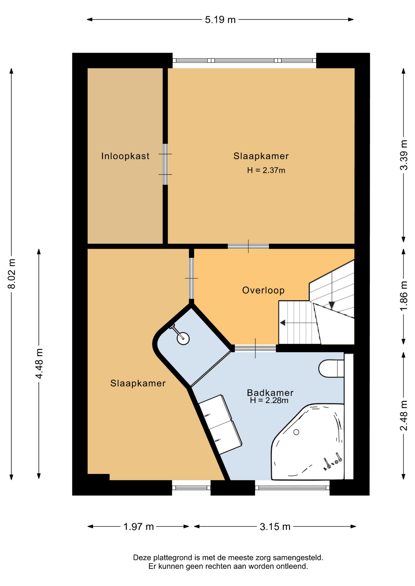 Deze informatie is door Van Ravens Makelaardij met de nodige zorgvuldigheid samengesteld. De informatie is echter van algemene aard en niet meer dan een uitnodiging om in onderhandeling te treden. Onzerzijds wordt echter geen enkele aansprakelijkheid aanvaard voor enige onvolledigheid, onjuistheid of anderszins, dan wel de gevolgen daarvan. Alle opgegeven maten en oppervlakten zijn indicatief.