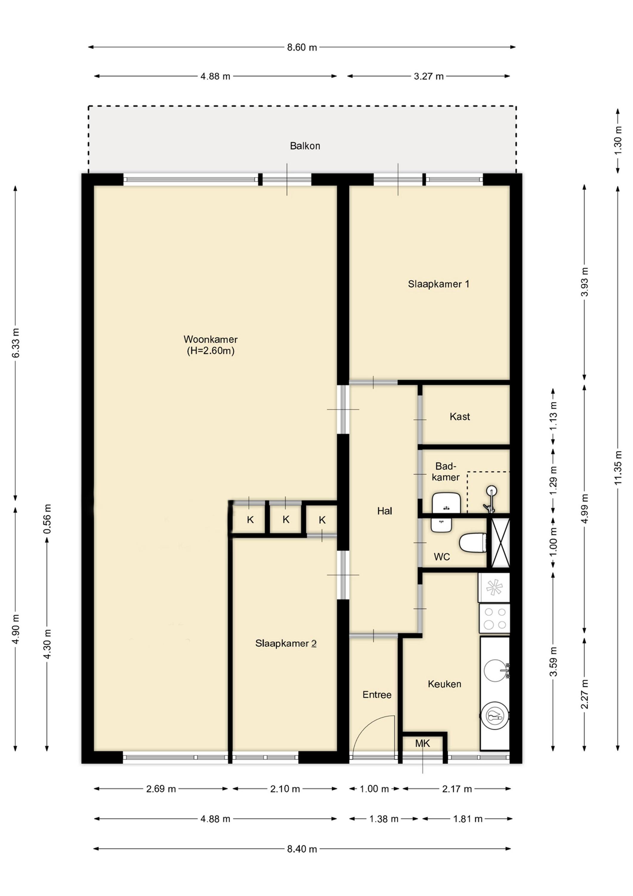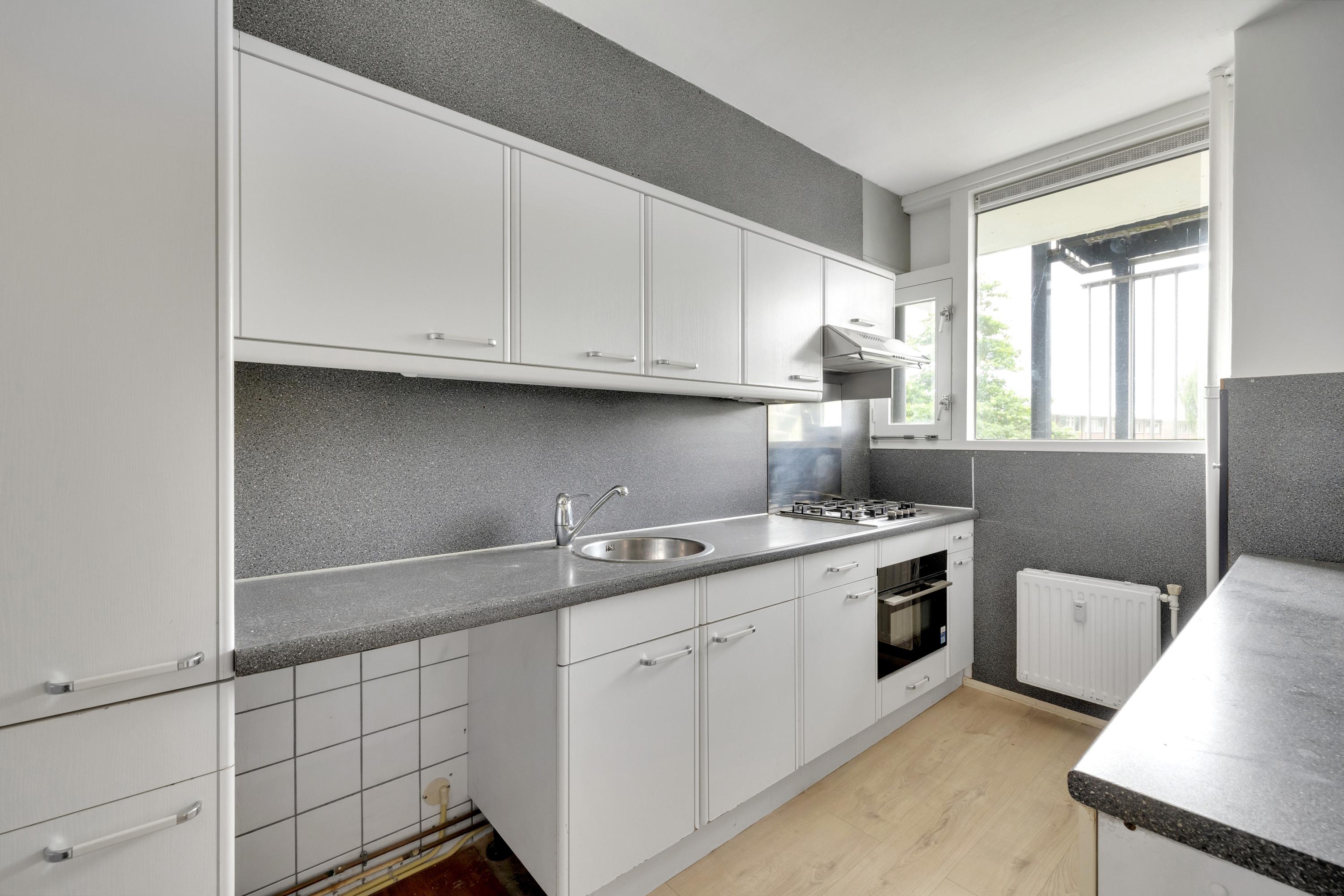 Je betreedt dit appartement via de galerij van het complex, waarbij je direct naast de voordeur de meterkast vindt. Vanuit de entree stap je de hal van het appartement binnen, waar direct aan de voorzijde de keuken is gesitueerd. Deze is voorzien van inbouwapparatuur en voldoende werk- en opbergruimte. Ook ligt aan de voorzijde 1 slaapkamer met vaste kastruimte, ook ideaal om te gebruiken als kastenkamer, werkkamer of hobbyruimte. Verder bevinden zich in de hal de ruime vaste kast met de elektrische boiler, toiletruimte en de badkamer, voorzien van een inloopdouche, wastafel en radiator. De royale woonkamer strekt zich uit van de voor- tot aan de achterzijde van het appartement en is dankzij de grote raampartijen heerlijk licht. De woonkamer geeft direct toegang tot het zonnige balkon van ca. 11 m² op het zuidoosten, waar je optimaal kunt genieten van de ochtend- en middag zon. Ook ligt aan de achterzijde de 2e slaapkamer, eveneens voorzien een deur naar het balkon, waardoor ook hier veel natuurlijk licht binnenkomt. Tot slot beschikt het appartement over een eigen berging, gunstig gelegen op dezelfde verdieping direct naast het trappenhuis. Handig voor het opbergen van gereedschap of andere spullen die je graag binnen handbereik hebt.