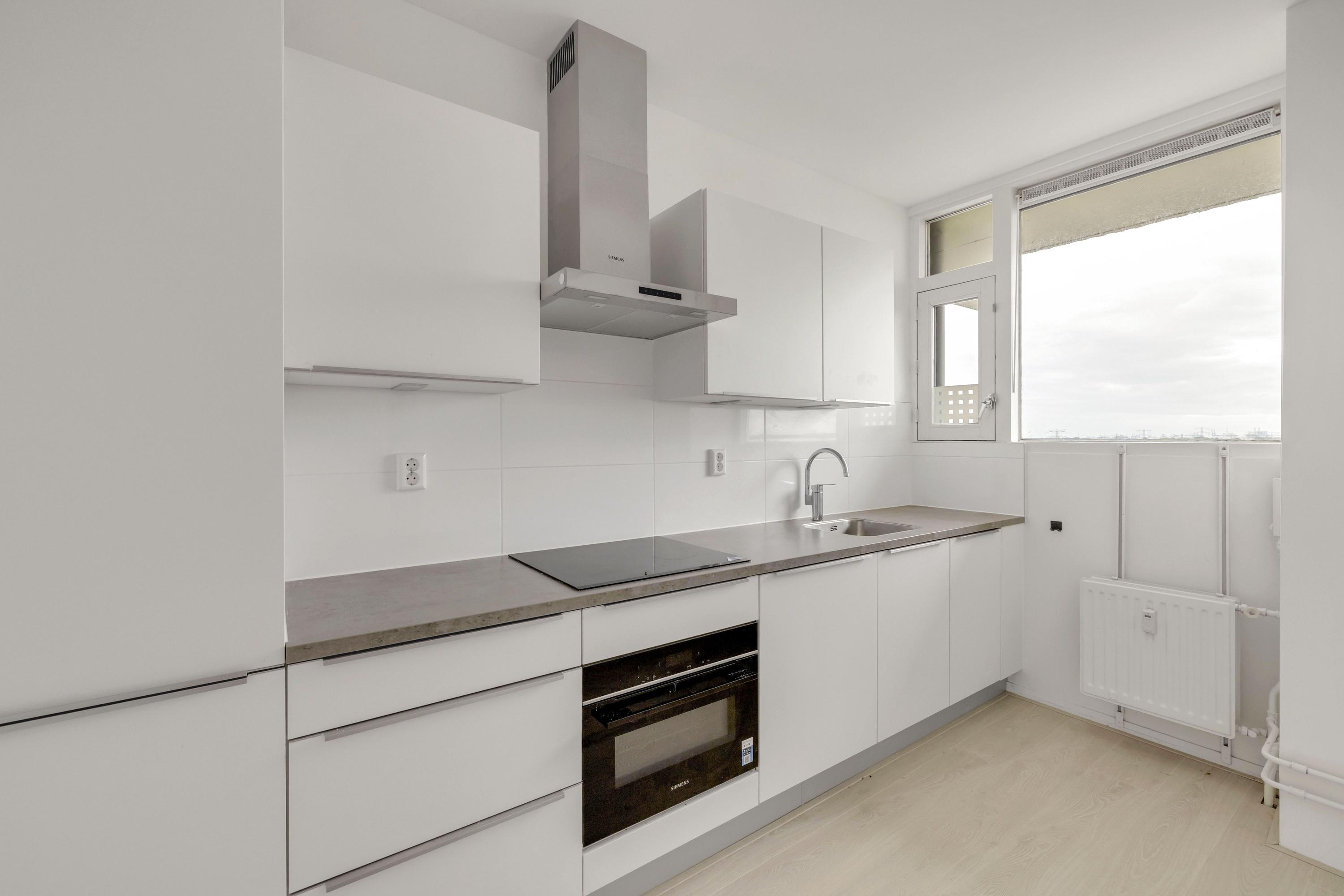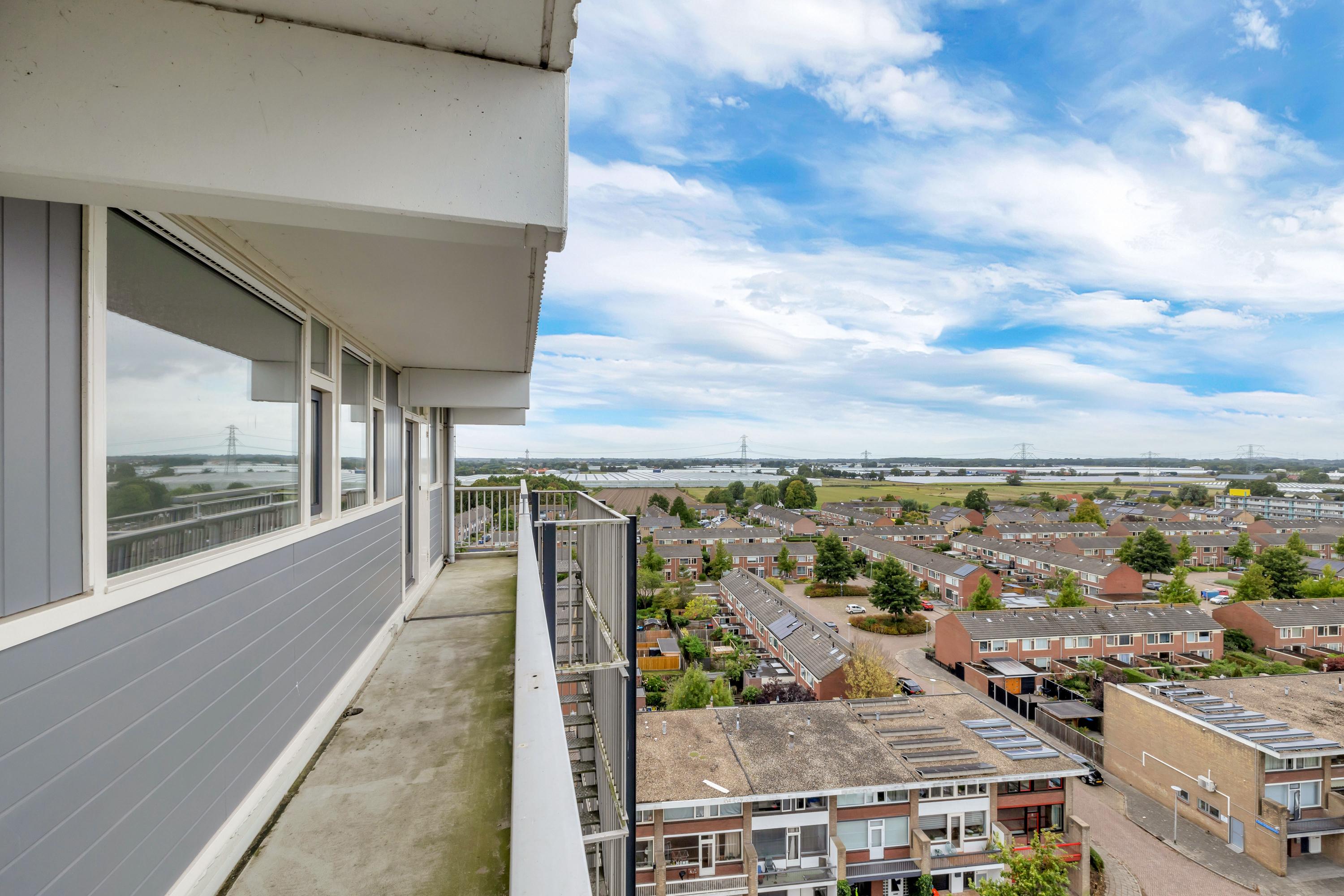 Je betreedt dit appartement via de galerij van het complex, waarbij je direct naast de voordeur de meterkast vindt. Vanuit de entree stap je de hal van het appartement binnen, waar direct aan de voorzijde de keuken is gesitueerd. Deze is voorzien van voldoende werk- en opbergruimte, een elektrische boiler voor de warm water voorziening én inbouwapparatuur zoals een kookplaat met afzuigkap, koel- vriescombinatie, combi-magnetron en een vaatwasser. Ook liggen aan de voorzijde twee slaapkamers met vaste kastruimten, ook ideaal om te gebruiken als kastenkamer, werkkamer of hobbyruimte. Verder bevinden zich in de hal ook de toiletruimte en de badkamer, netjes ingericht met een inloopdouche, designradiator en wastafel. De royale woonkamer ligt aan de achterzijde van het appartement en is dankzij de grote raampartijen heerlijk licht. De woonkamer heeft vaste kastruimte en je hebt direct toegang tot het zonnige balkon van 11 m² op het zuidoosten, waar je optimaal kunt genieten van de ochtend- en middagt zon. Ook ligt aan de achterzijde de 3e slaapkamer, eveneens voorzien van grote ramen en een deur naar het balkon, waardoor ook hier veel natuurlijk licht binnenkomt.