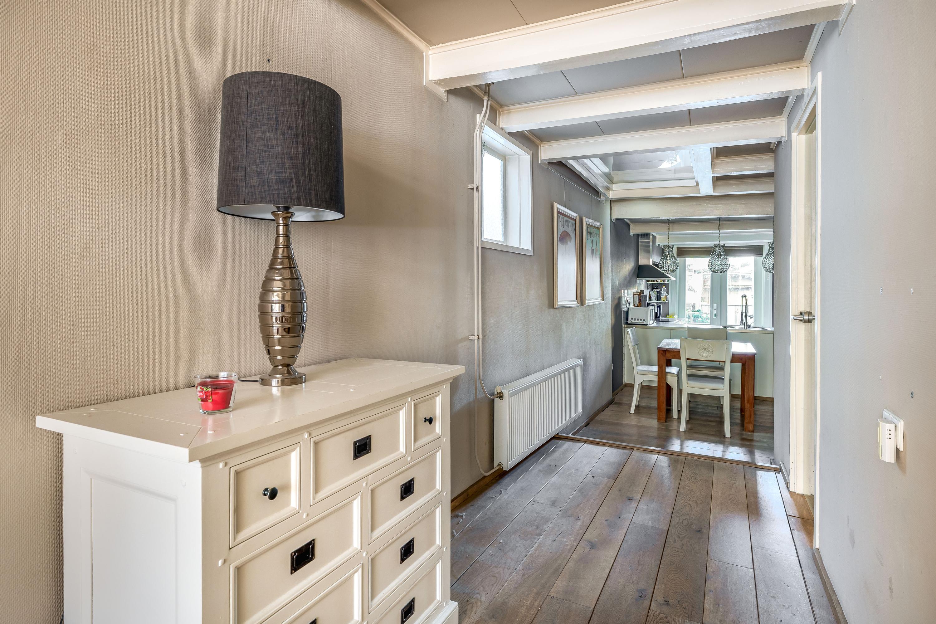 Via de entree met de meterkast betreed je de sfeervolle woonkamer aan de voorzijde. De ruimte kenmerkt zich door het originele balkenplafond, eikenhouten vloerdelen en extra daglicht dankzij een solartube. Vanuit de woonkamer loop je door naar de ruime woonkeuken aan de achterzijde, uitgevoerd in een hoekopstelling (gedateerd) en voorzien van een spoelunit, vaatwasmachine, oven, afzuigkap, kookplaat, koel- en vriescombinatie. Hier zit ook een solartube en openslaande deuren die naar de achtertuin leiden. Aansluitend ligt de bijkeuken/berging met wasmachineaansluiting en de opstelling van cv-combiketel (Remeha, 2012). Bij de keuken bevindt zich tevens de trap naar de eerste verdieping met daarnaast met de badkamer voorzien van douchecabine, dubbele wastafel met meubel, vloerverwarming, hangend closet en een designradiator.