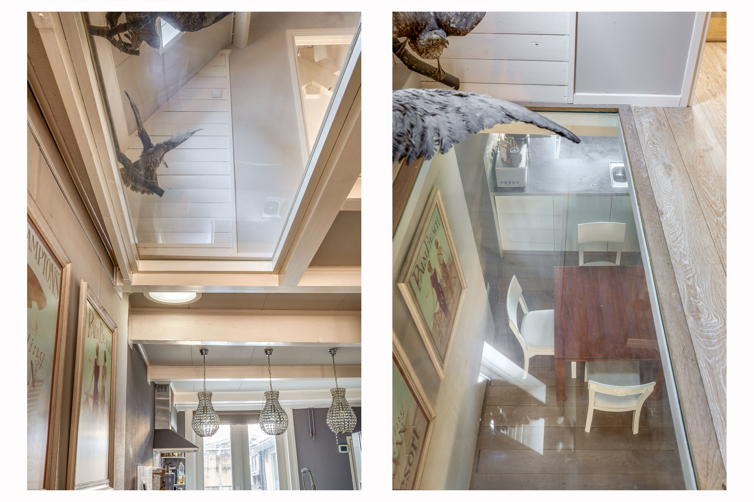 - Houten kozijnen met grotendeels dubbel glas en glas-in-loodramen.